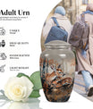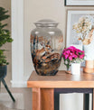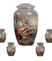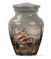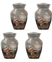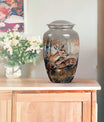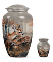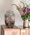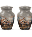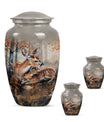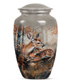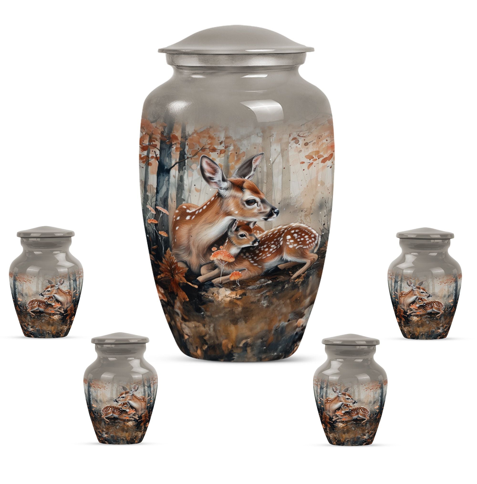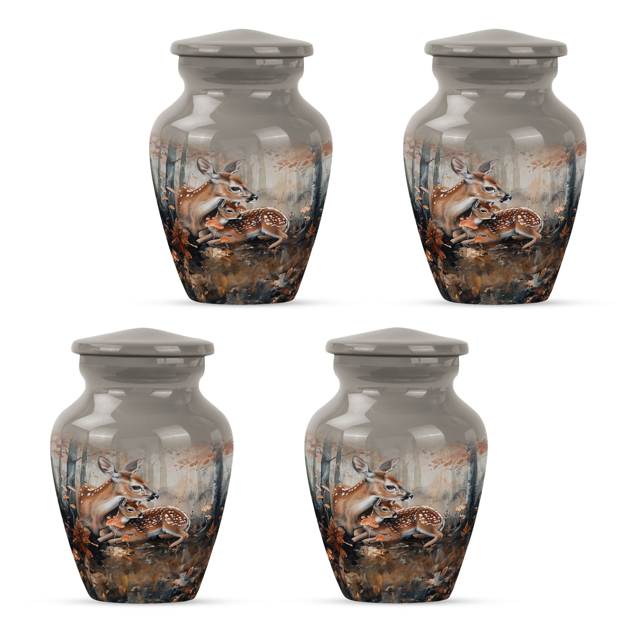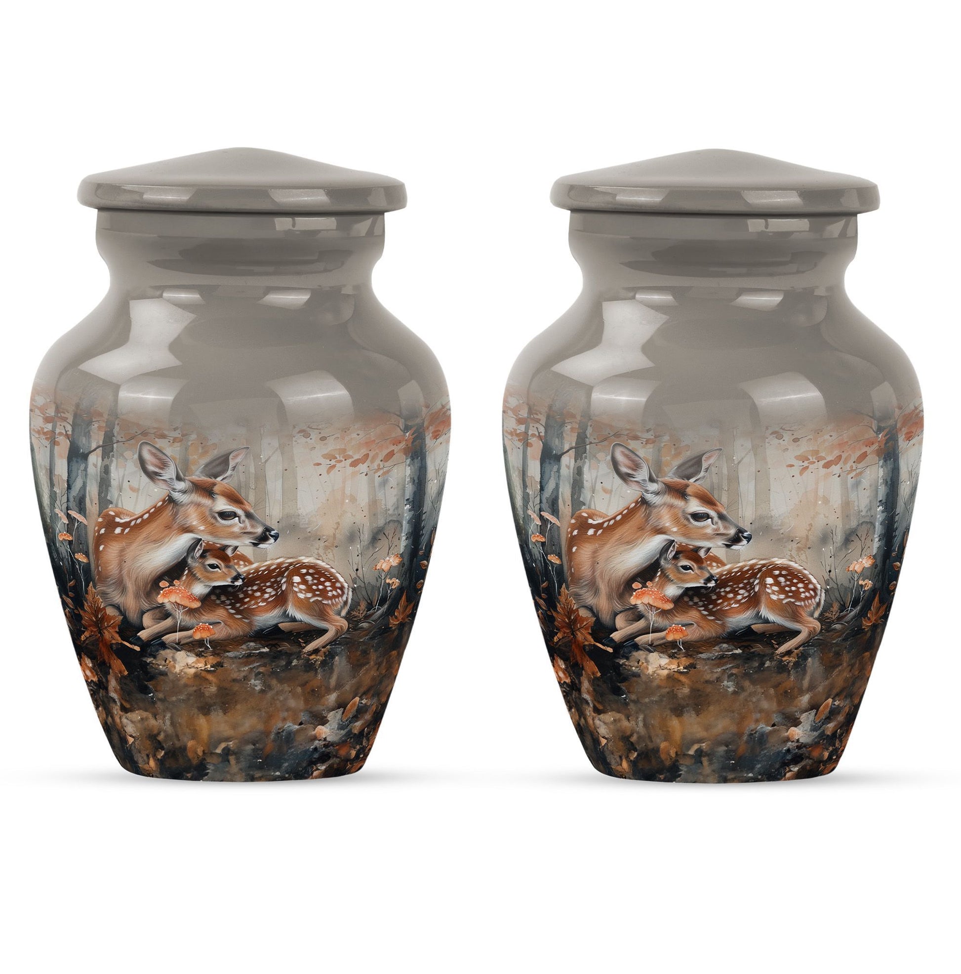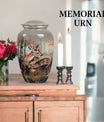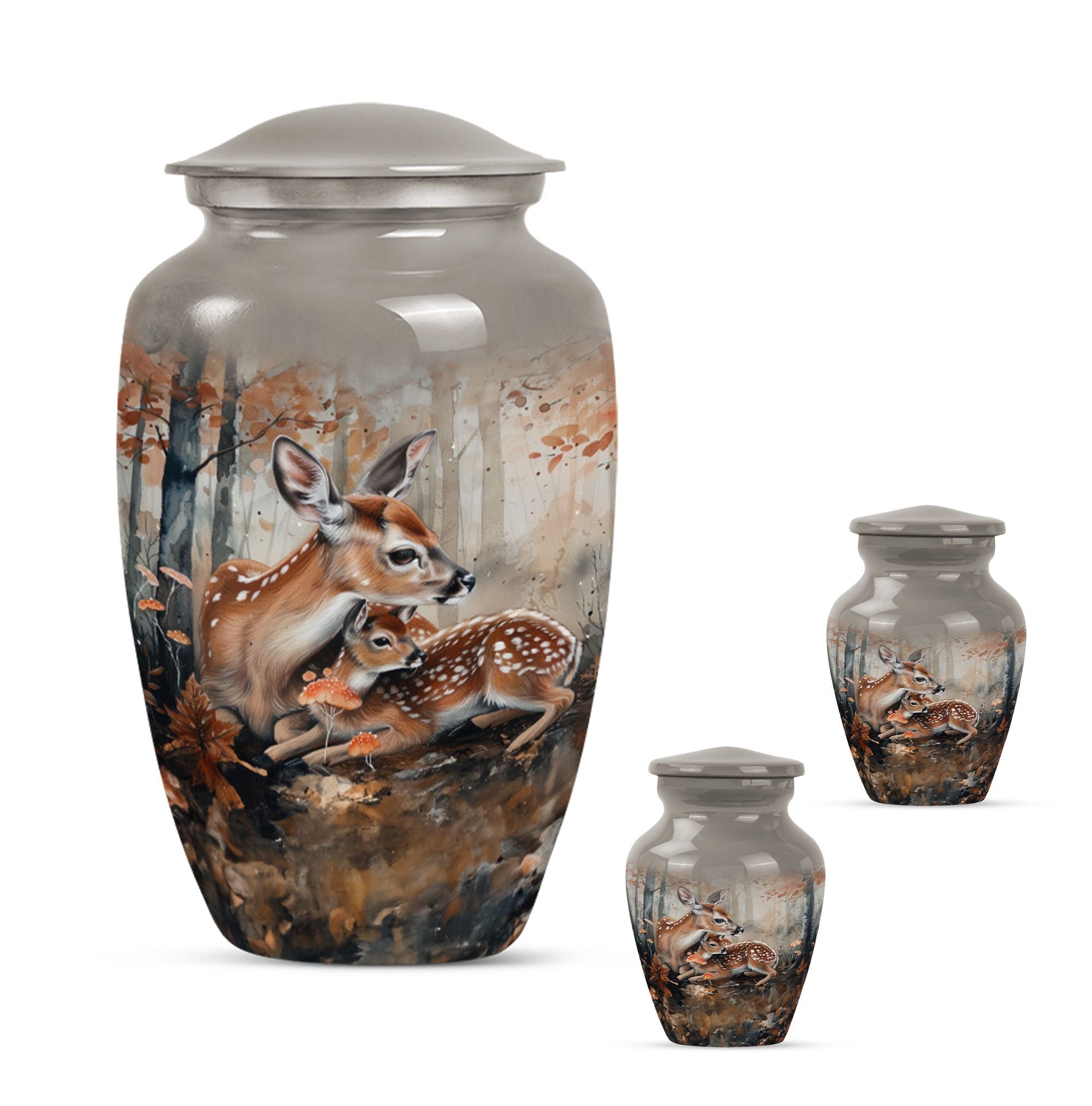 Cherish the memory of a loved one or cherish a memento from your past with our beautifully crafted Deer Family Urn. Sized at a comfortable 10 inches in height and with a weight of 3.3 pounds, this large aluminium cremation urn fits subtly into any space. The ‘Classic Urn’ theme, inspired by the timeless beauty of the gramophone, offers a tranquil memorial resting place for the ashes of those you hold dear. Our Deer Family Urn has an impressive capacity of 200 cubic inches, ensuring ample space to store ashes securely. This item comes with a velvet pouch, providing a dignified containment for the ashes. For a more personal touch, we offer the option to personalize the urn with engraved names for that truly individual touch. Terms such as 'Burial ash urns for humans', 'human ash urn ashes', ‘cremation urn for burial’, ‘cremation urn for dad’ are accepted pointers for locating this meaningful and essential item.
