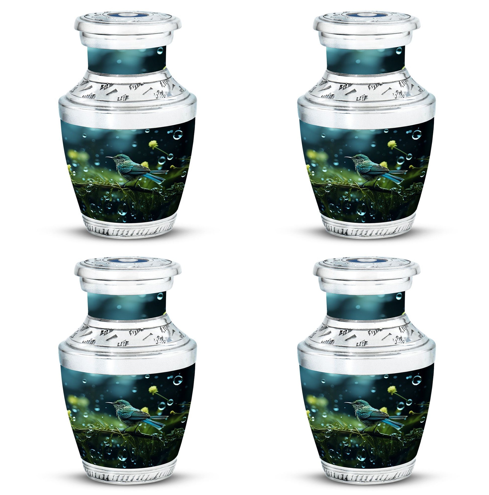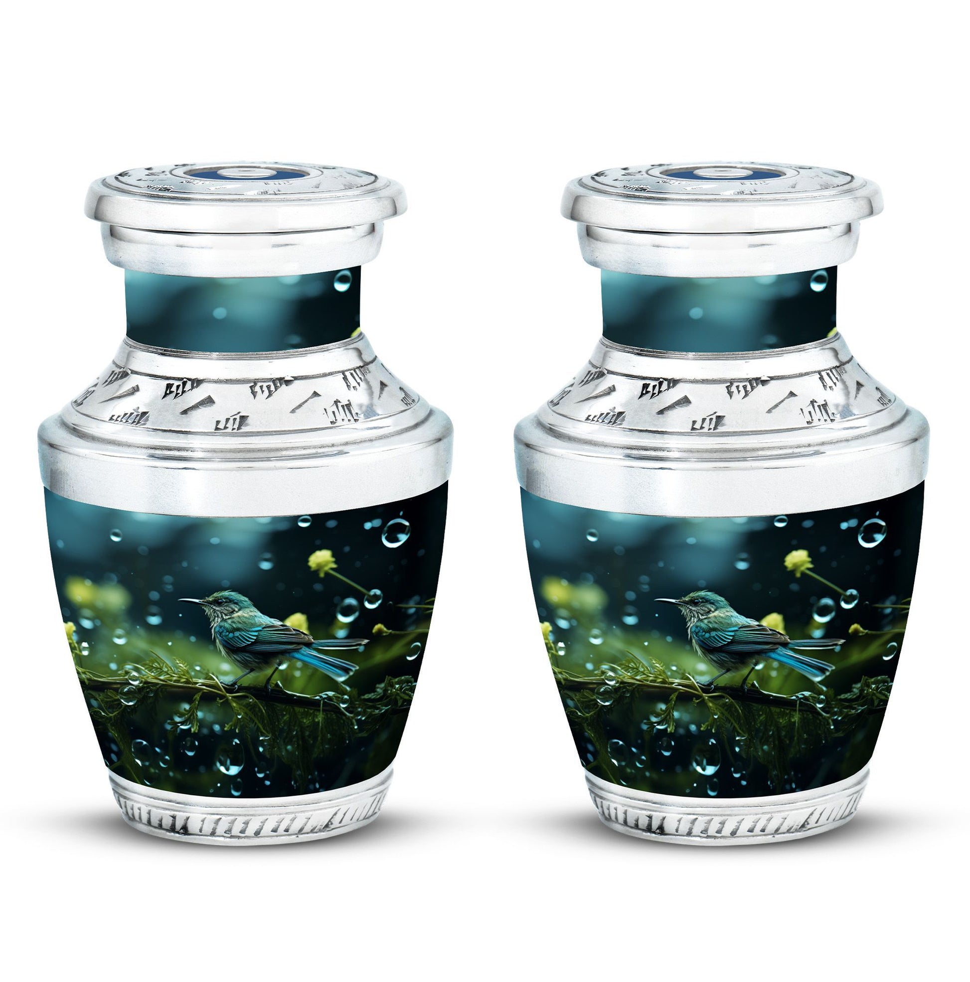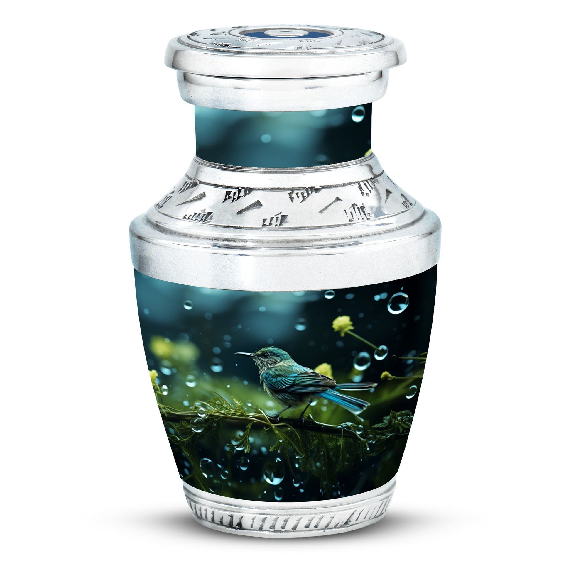 Honor the memory of your dearly departed mother with our exquisite Green Sparrow Cremation Urn. This urn, part of our large-sized urn offerings, stands at 10 inches in height, and can comfortably hold up to 200 cubic inches of ashes. Crafted with meticulous care from premium aluminum, this urn stands the test of time while safeguarding your loved one's remnants. With a slightly heavyweight feel at 3.3 pounds, this urn exudes a strong presence and resilience that mirrors the enduring nature of your love and memories. The urn comes with a sophisticated velvet pouch, an appropriate containment for your treasured ashes. To add a personal touch, we offer the option to engrave names on the urn, immortalizing the bond between you and the departed. In its simple elegance, this urn serves as a beautiful tribute in your memorial ceremonies. Please bear in mind that the urn design, while timeless, avoids ostentation, highlighting the serene dignity of your farewell rituals. This urn is ideal not only as a centerpiece but also as a keepsake, evoking memories of your loved ones every time you see it.