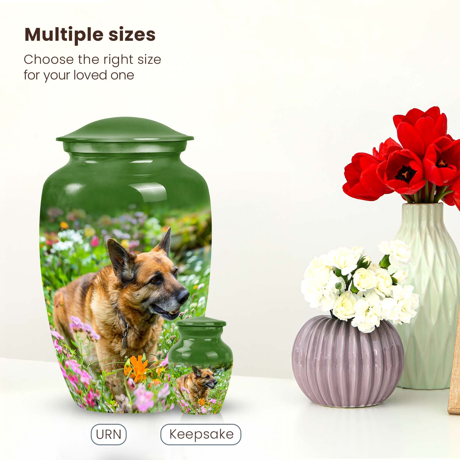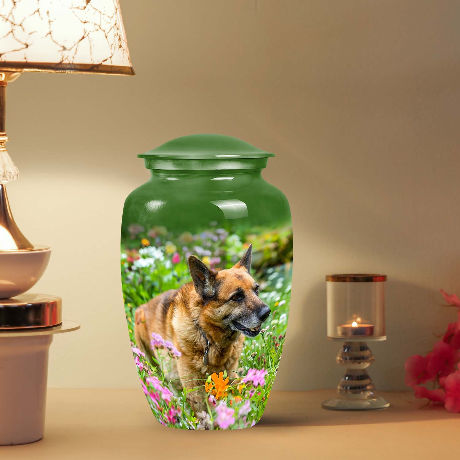 A German Shepherd’s devotion is fierce, faithful, and eternal. The German Shepherd Dog Pet Large Cremation Urn provides a dignified and beautiful way to remember your courageous companion. Thoughtfully designed as both a dog keepsake box and large dog urn, it offers a comforting tribute that reflects strength, loyalty, and everlasting love.