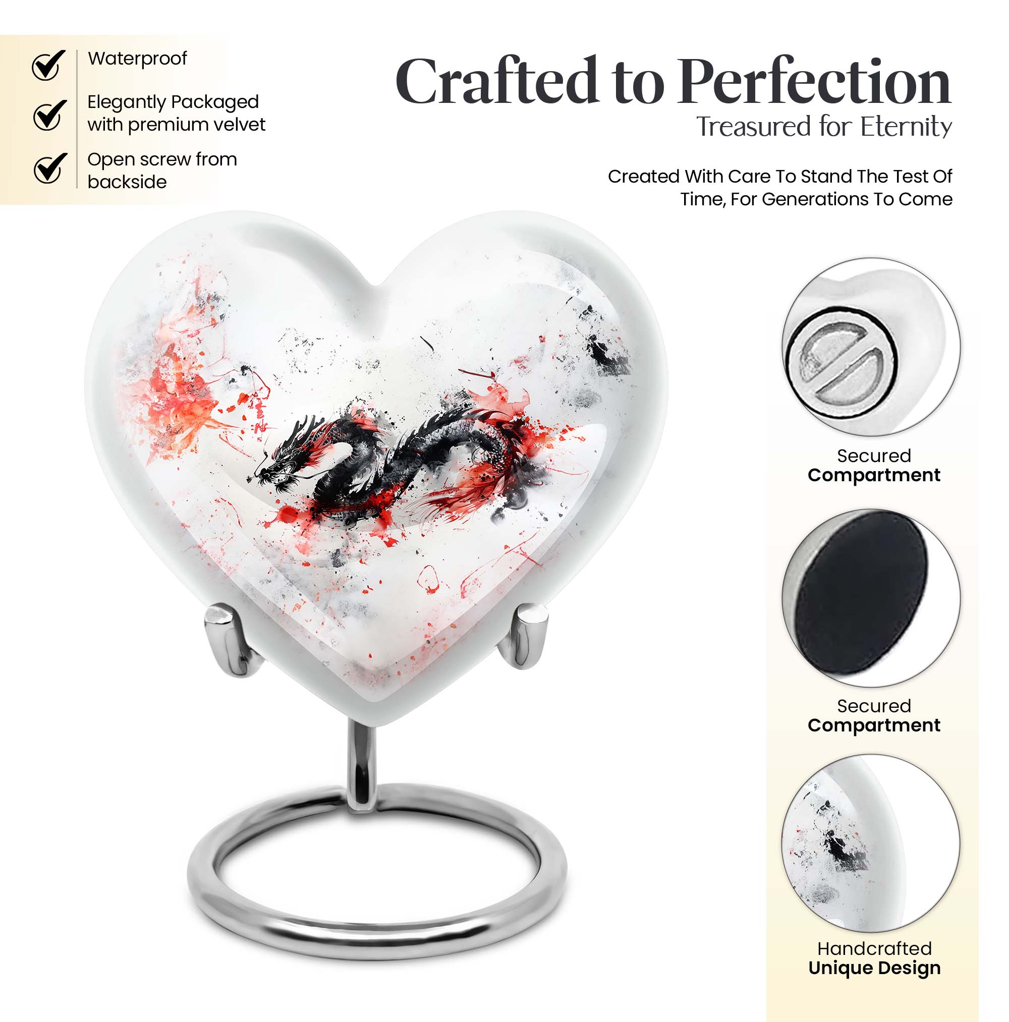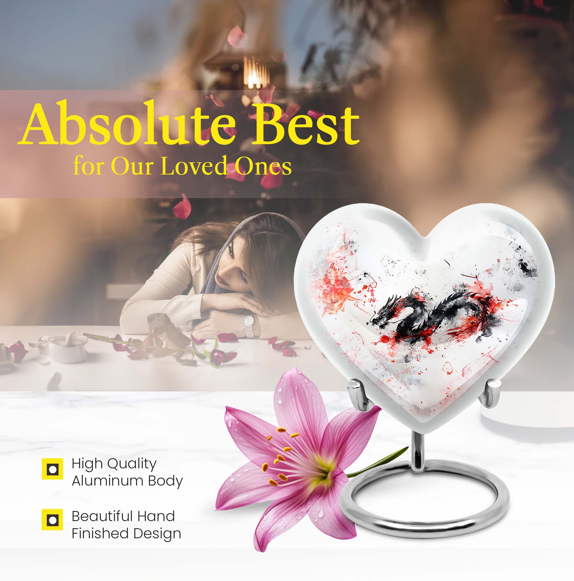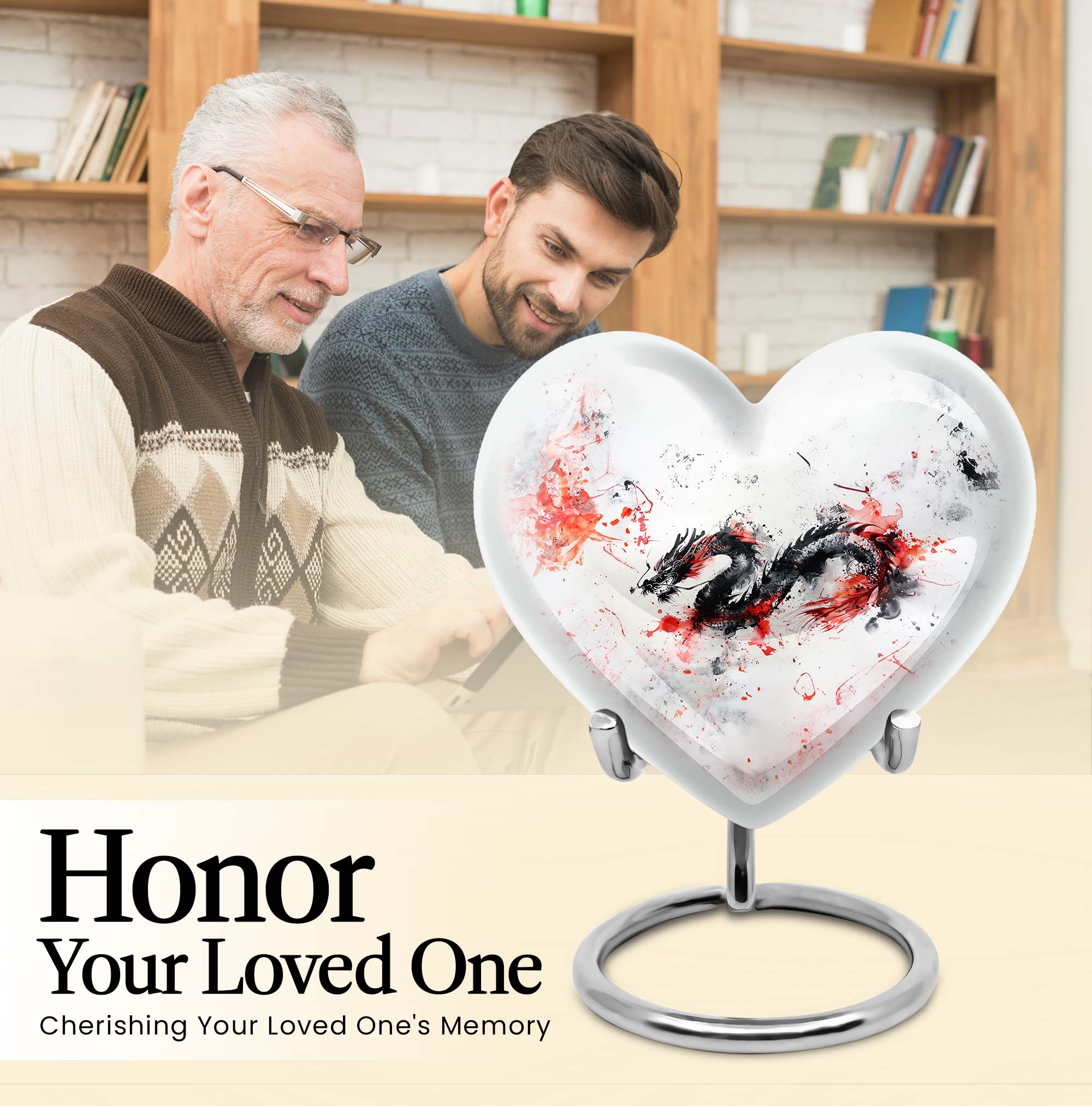 Honor your loved one with this beautifully designed Heart Shaped Dragon Urn, a meaningful tribute that symbolizes strength, protection, and everlasting love. With its unique heart shape and detailed dragon design, this urn is both a piece of art and a secure resting place among premium urns for adults men and women.