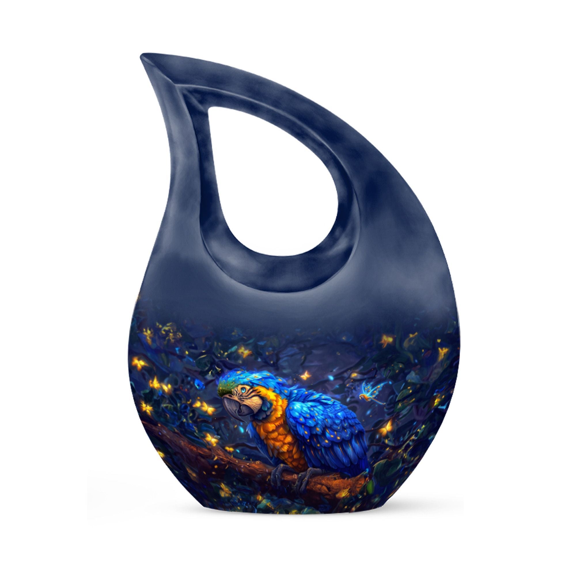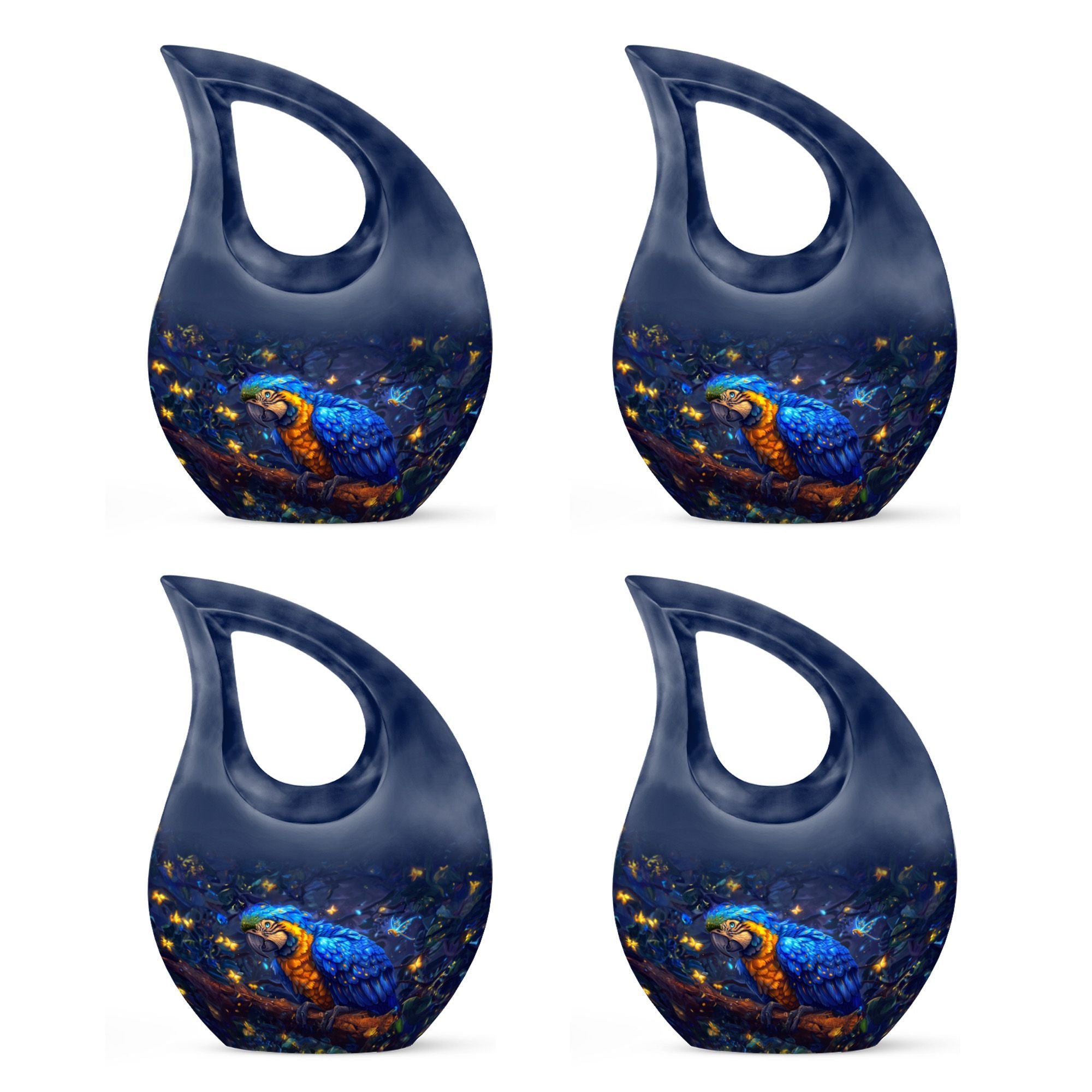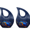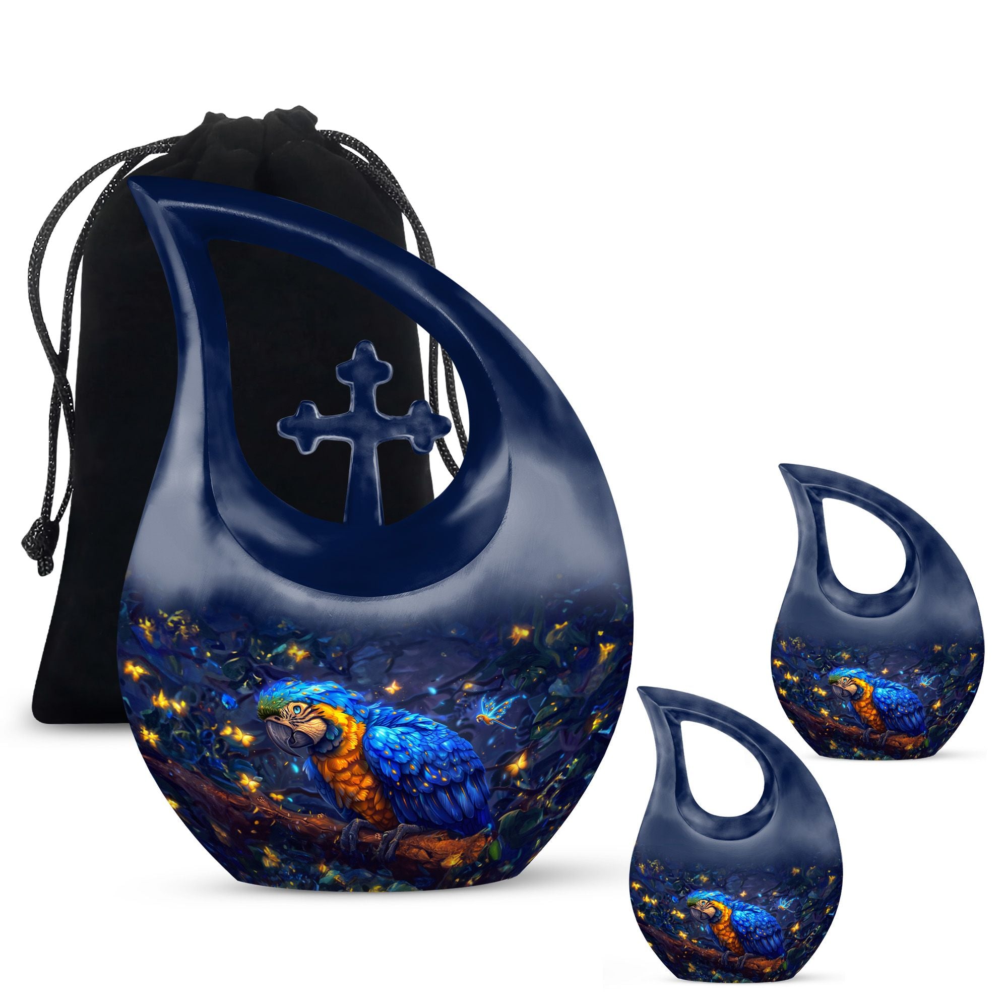 Invoke tranquility during times of sorrow with the 'Mystic Feather Glow Urn'. Hailed as one of the most meaningful memorial urns, its divine cross drop detailing offers a sense of spiritual solace. Sized at 10 inches, this urn provides ample space for containment, with a capacity of 200 cubic inches, ideal for keeping revered human ashes secure. Finely crafted from enduring aluminium, its weight of 3.3 pounds reinforces this urn's substance and durability. You can further personalize this piece with engraved names, to honor and remember your loved ones more intimately. The order includes a velvet pouch designed to hold the precious remains delicately. Though primarily a large urn for human ashes, it's also sought after as an Urn Mini and under 'urns with love'. Celebrate the lives of those departed and let their spirit gleam, just like this urn's mystic feather glow.
