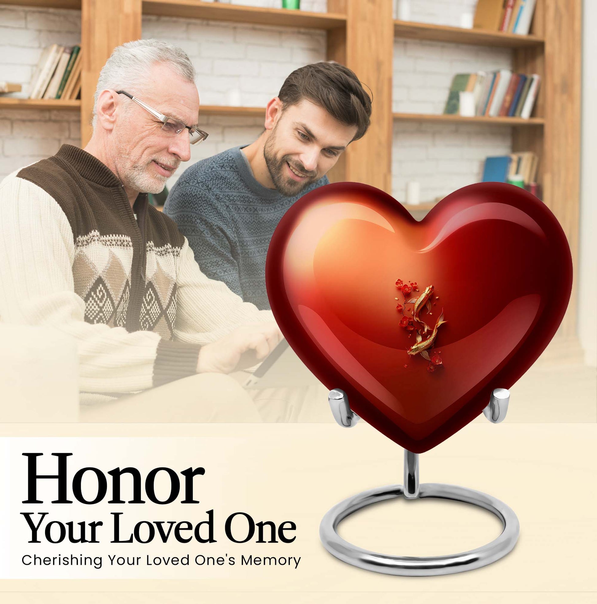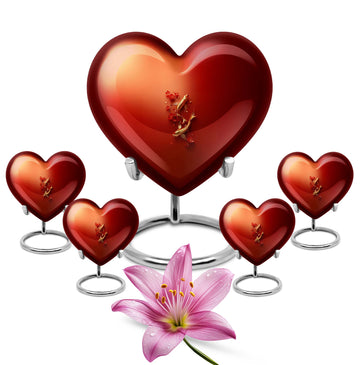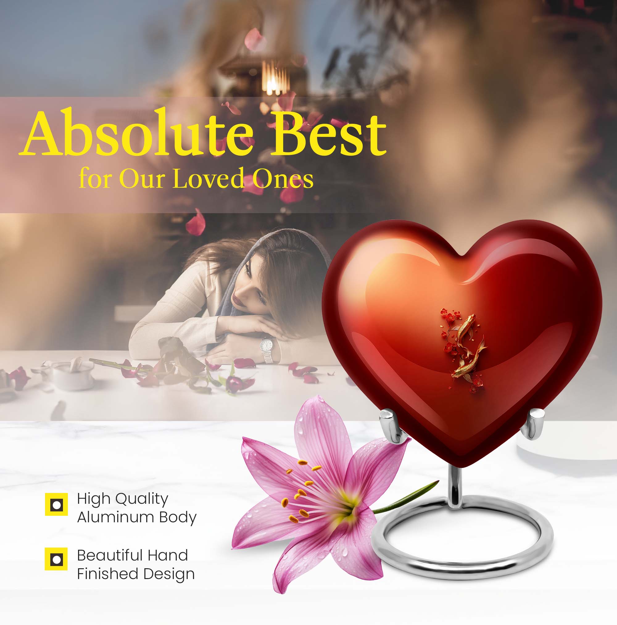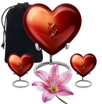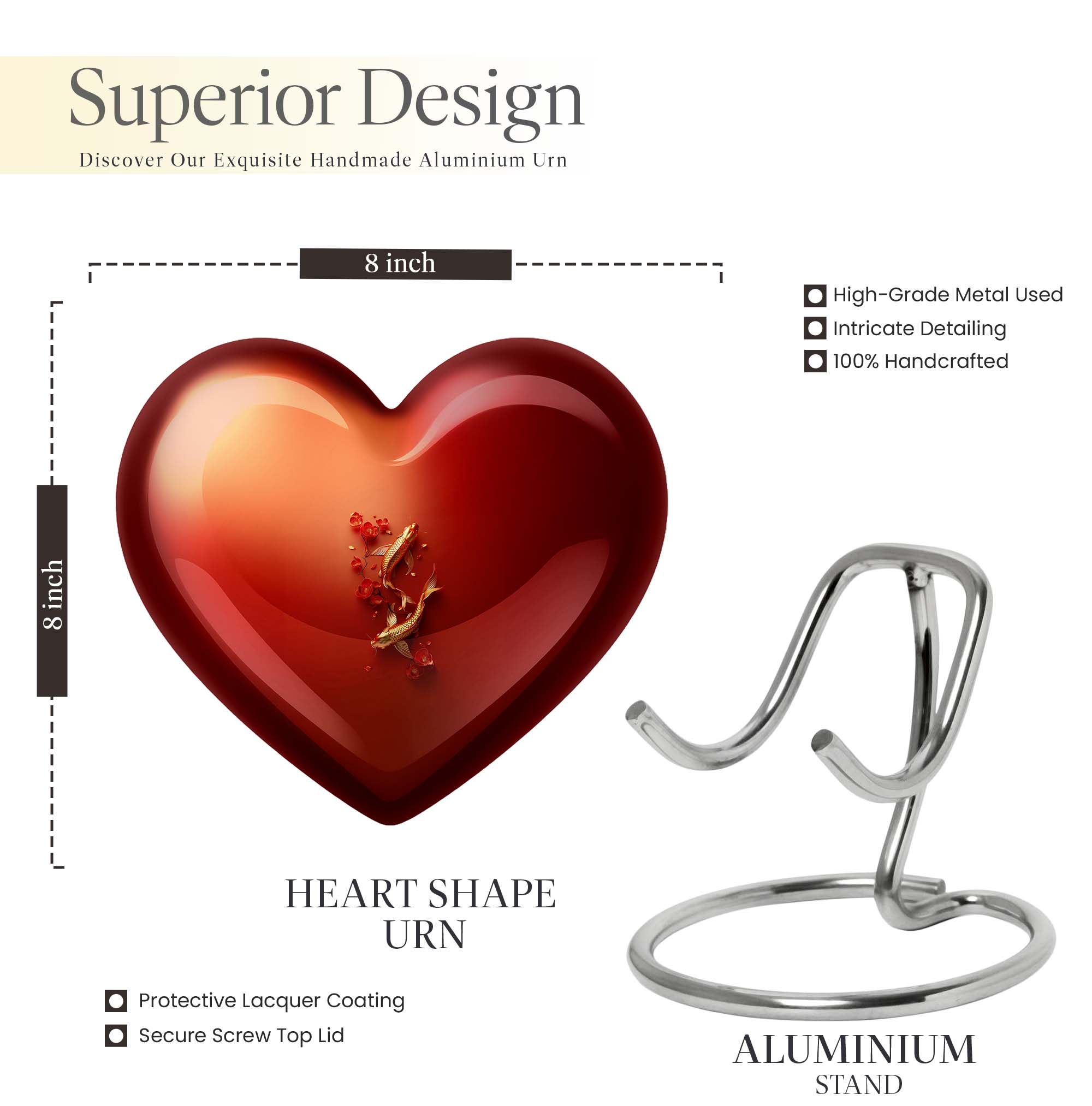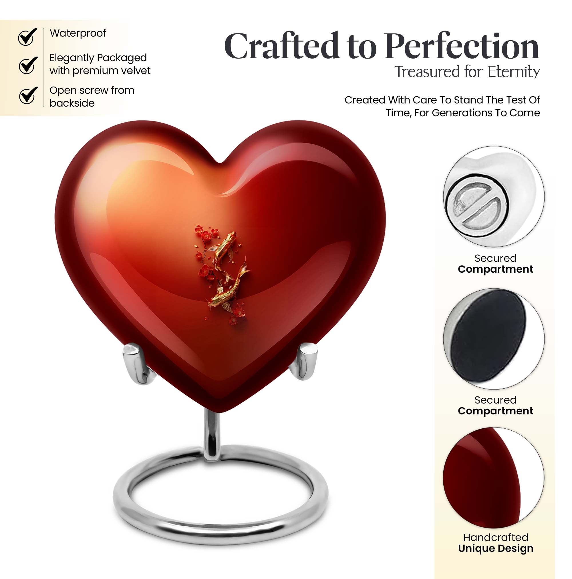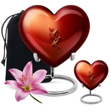 Illuminate the memorial essence of your loved ones with our elegantly designed 10-inch Gold Fish Urn from our collection of large sized memorial urns. Precision crafted in heartwarming 'Heart Urn' design, this product is made of robust, high-quality aluminum and weighs a 3.3 pounds, ensuring long-lasting durability. With a generous capacity of 200 cubic inches, it comfortably accommodates adult ashes. This unique urn is designed to resonate with the 'Butterfly' theme, symbolizing freedom and transformation that your loved ones have embarked on. Adding a touch of personal connection, we offer customization options to engrave names on it. Upon arrival, this large urn for ashes comes with a velvet pouch for respectful containment of sacred ashes. An excellent choice within our funeral urns for human ashes, this decor piece offers a significant remembrance of the departed adult female or male. Note: Does not include marketplace-specific decor or designs.