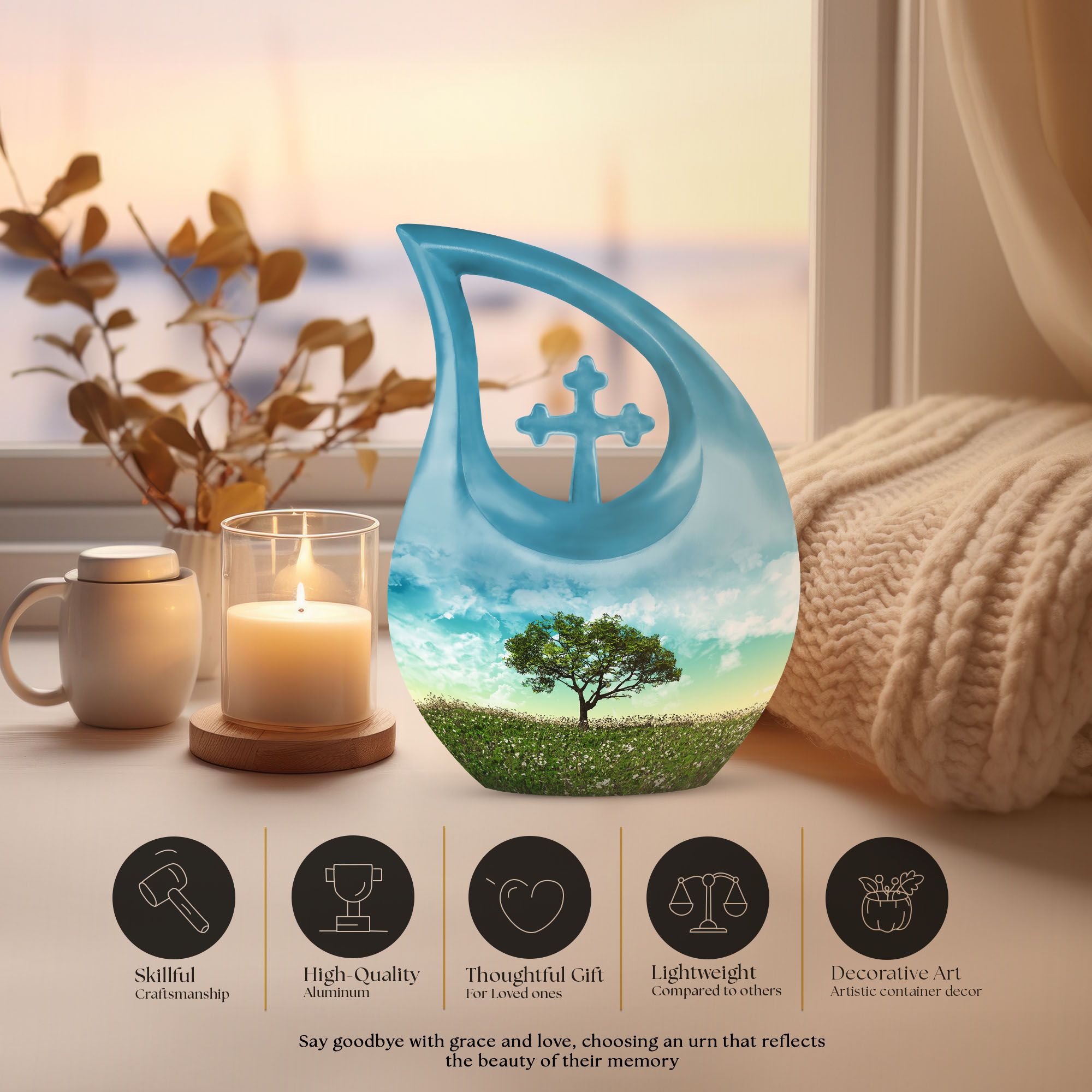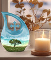 The Tree in a Garden Memorial Urn for Funeral embodies serenity, remembrance, and the circle of life. With its tranquil tree design set against a soft, natural backdrop, this large urn for ashes for women or men represents harmony between life and eternity. Perfect for honoring a loved one’s spirit, it offers a peaceful and elegant final resting place.