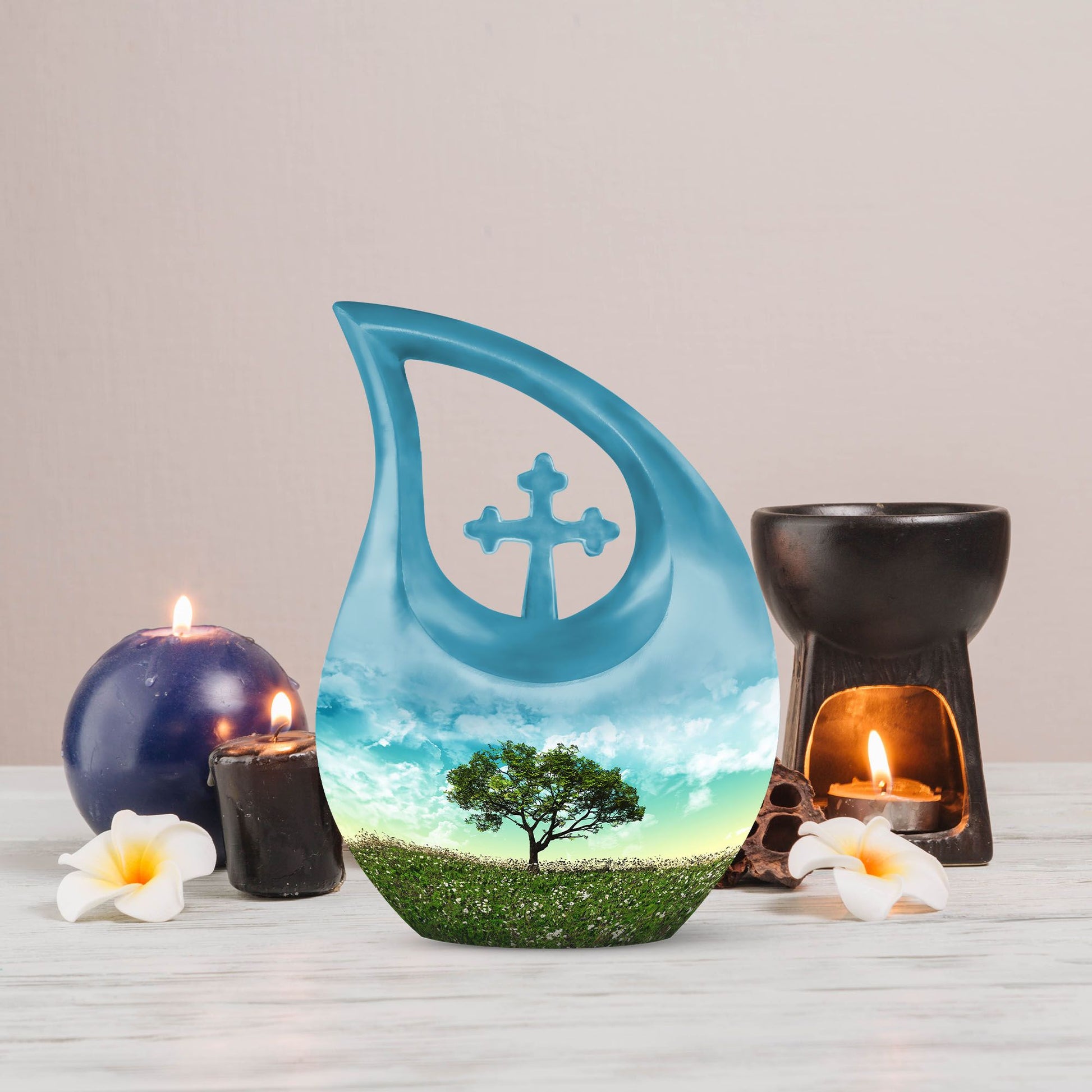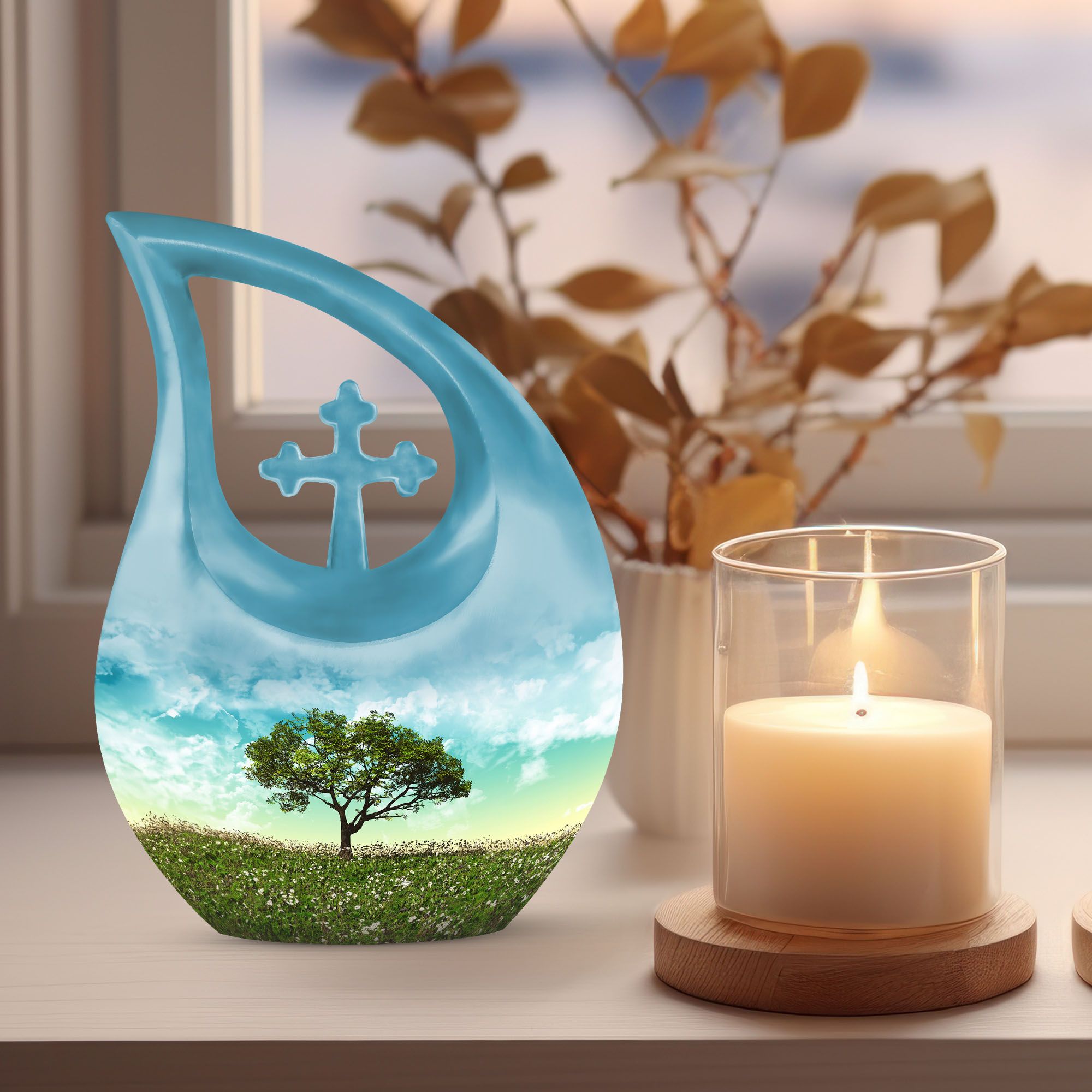 Whether you seek large urns for human ashes adult female or urns for human ashes large adult, the Tree in a Garden Memorial Urn provides a heartfelt tribute to your loved one’s legacy — a peaceful reminder that like a tree, their spirit continues to grow and shelter those they loved.
