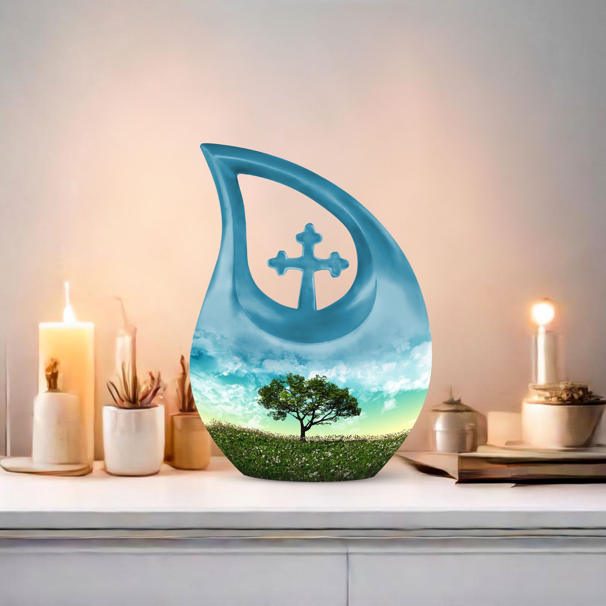 This large human ashes urn serves as a timeless urn for ashes adult male large or female, offering families a dignified way to celebrate a life full of love and peace. Its gentle colors and meaningful imagery bring calmness and comfort to any memorial space.