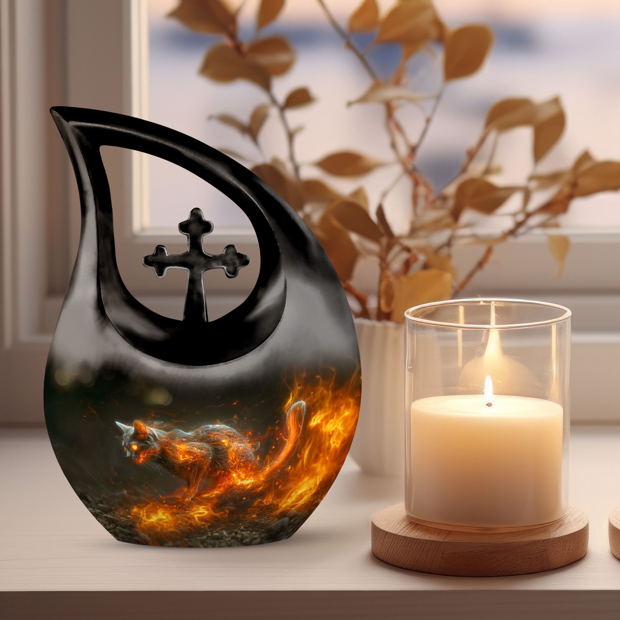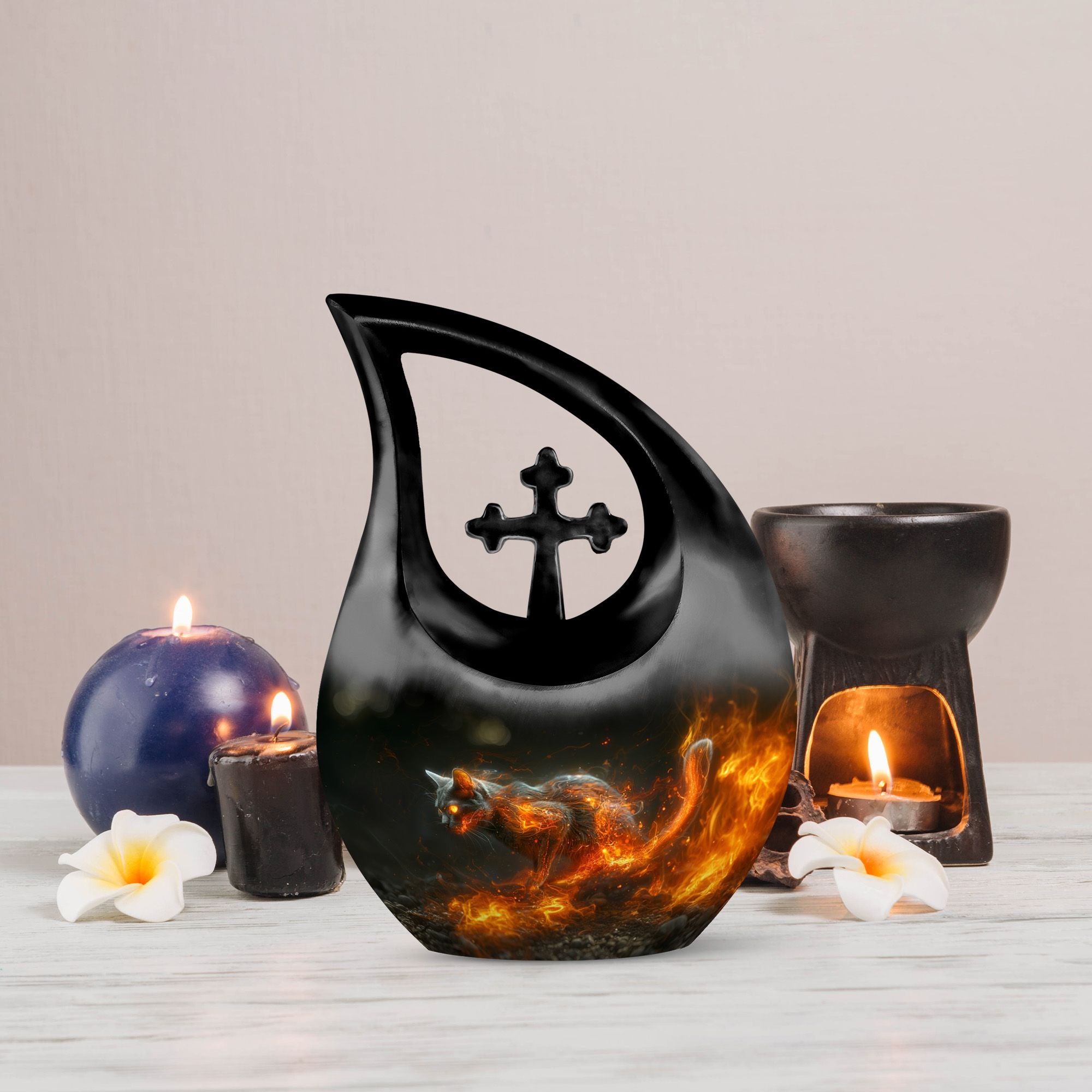 Honor your cherished companion with the Fiery Cat Memorial Urn for Ashes – Flaming Cat Themed Urn for Pet. Crafted for cat lovers who want a tribute as bold and unforgettable as their feline’s personality, this design captures the power of devotion and the enduring flame of love. A radiant choice among modern pet urns, it’s ideal for cat memorials and keepsakes that express both passion and remembrance.