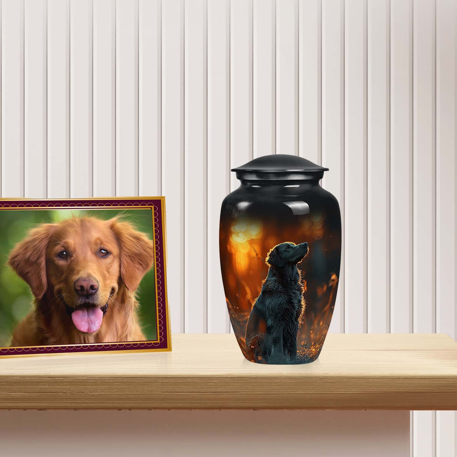 Crafted from premium materials, this Wooden Urn Pet Urns for Dogs Ashe embodies elegance and durability. Each urn is meticulously designed with fine details that reflect both artistry and care. The secure screw-top lid ensures ashes are safely preserved, while the warm tones of the finish complement any home décor. Our dog pet cremation urns are ideal for remembrance or display, designed to celebrate your loyal companion’s life. Whether you choose a bronze King Charles Spaniel dog figurine walnut pet cremation urn or prefer a simple pet cremation urn for dogs, every design carries a message of eternal love. Perfect for small dog pet cremation urns or urns for pet cremation remains large dogs, each piece radiates warmth and respect.