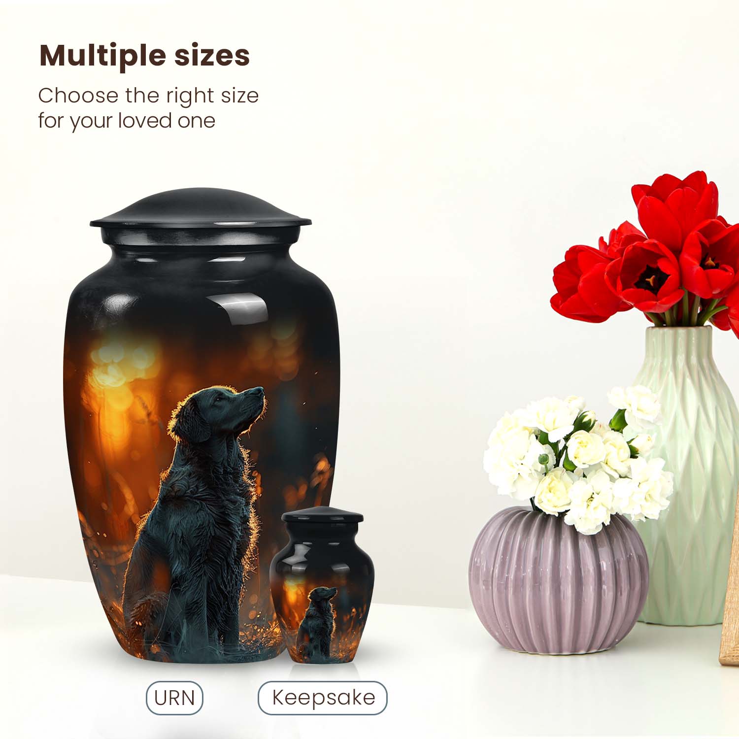 Use: Suitable for adult dogs or large breeds, ideal for display or burial