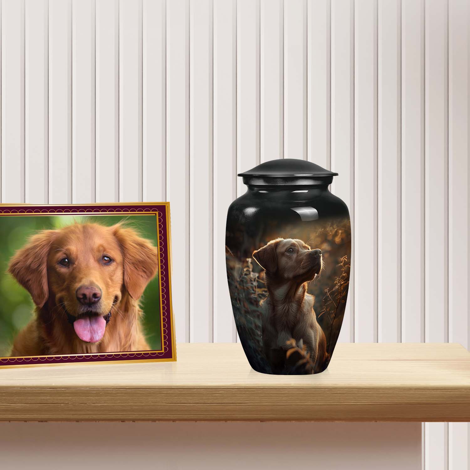 For those searching for pet urns near me, this exquisite urn offers heartfelt craftsmanship and modern elegance. The Golden Labrador Morning Light Memorial is more than a vessel — it’s a glowing reminder that love, like morning light, never truly fades.