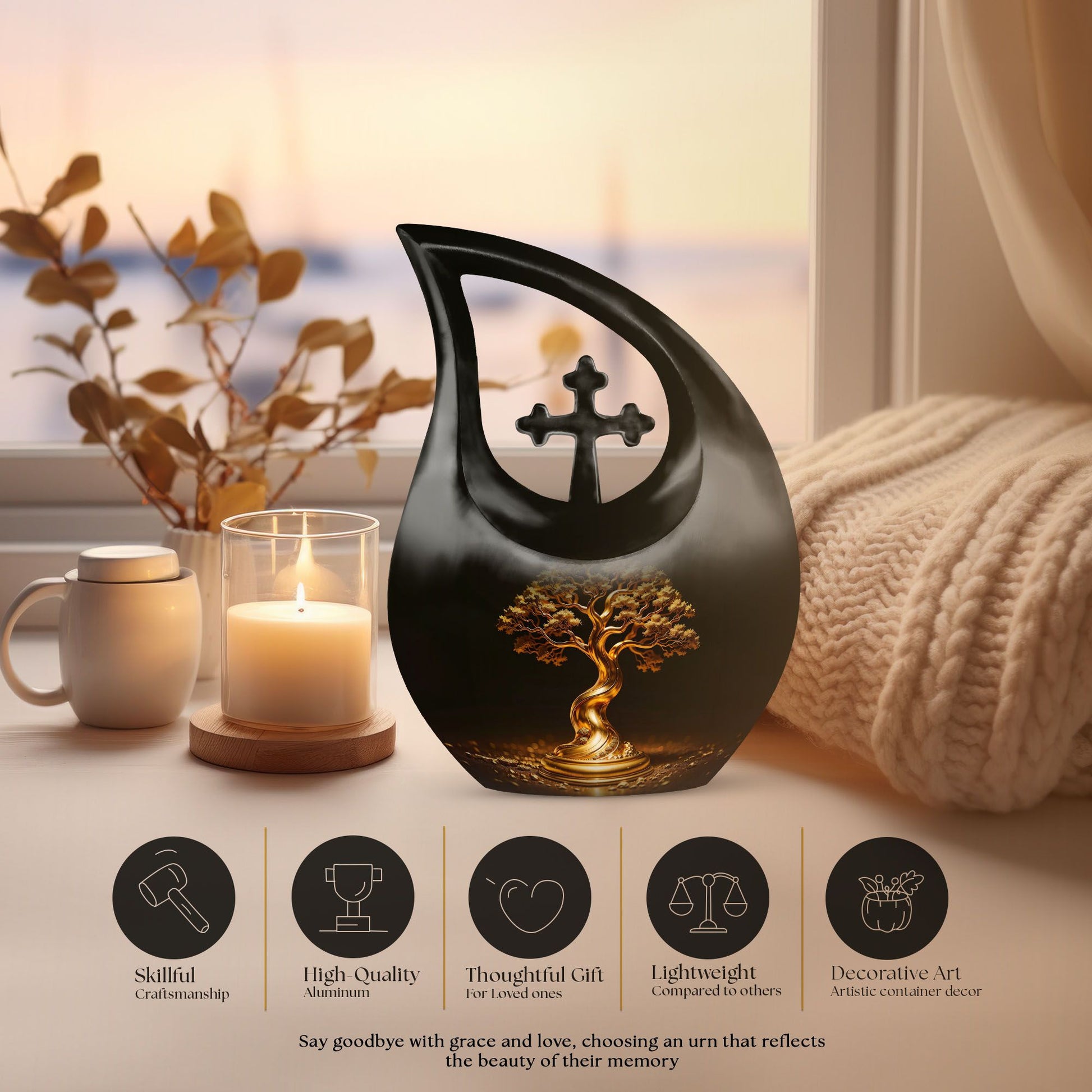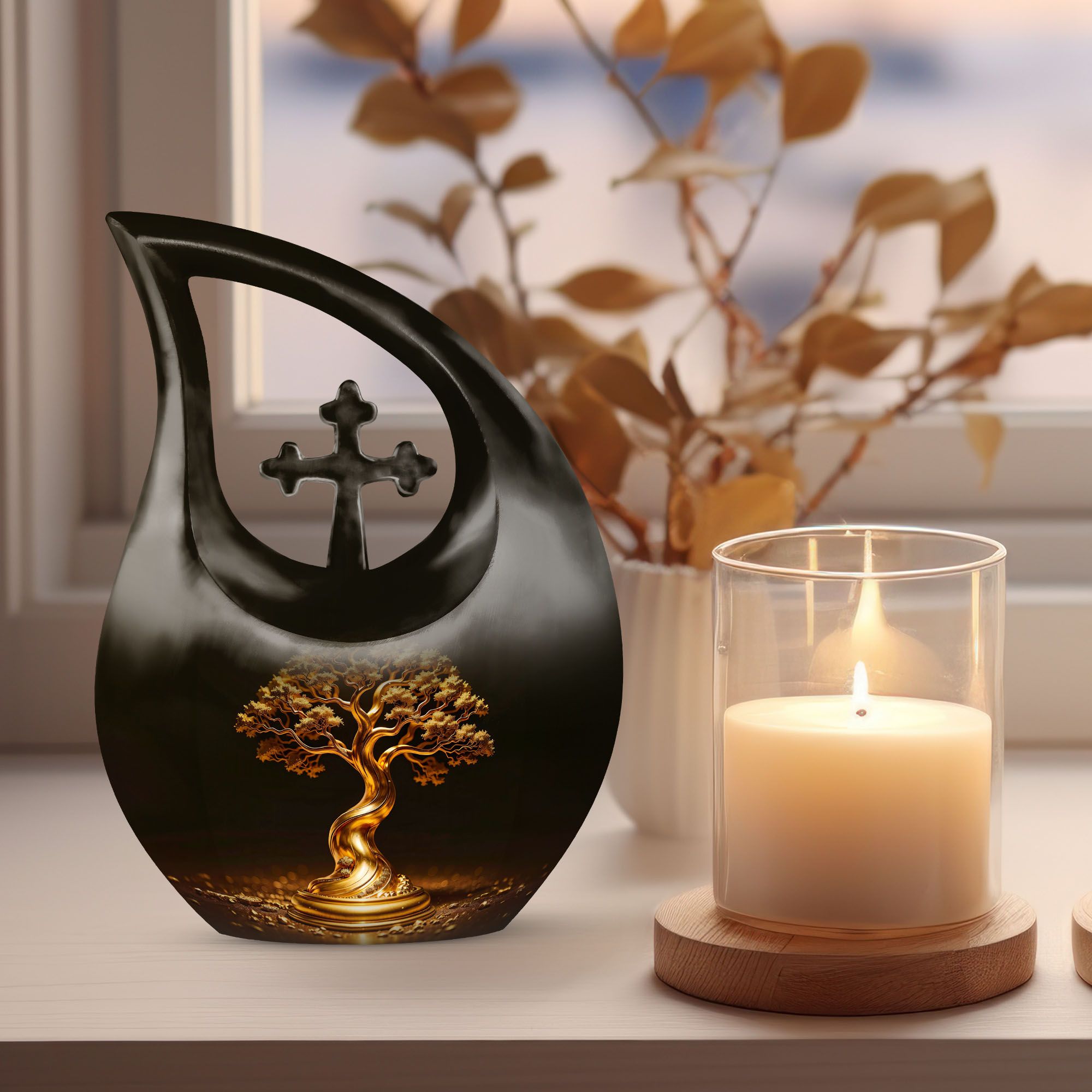 This urn also functions beautifully as small urns for human ashes keepsake mom or dad, offering a heartfelt way to honor loved ones. Whether used for small urn for ashes keepsake or small keepsake urns, the Golden Tree of Eternity Urn ensures every memory is cherished.
