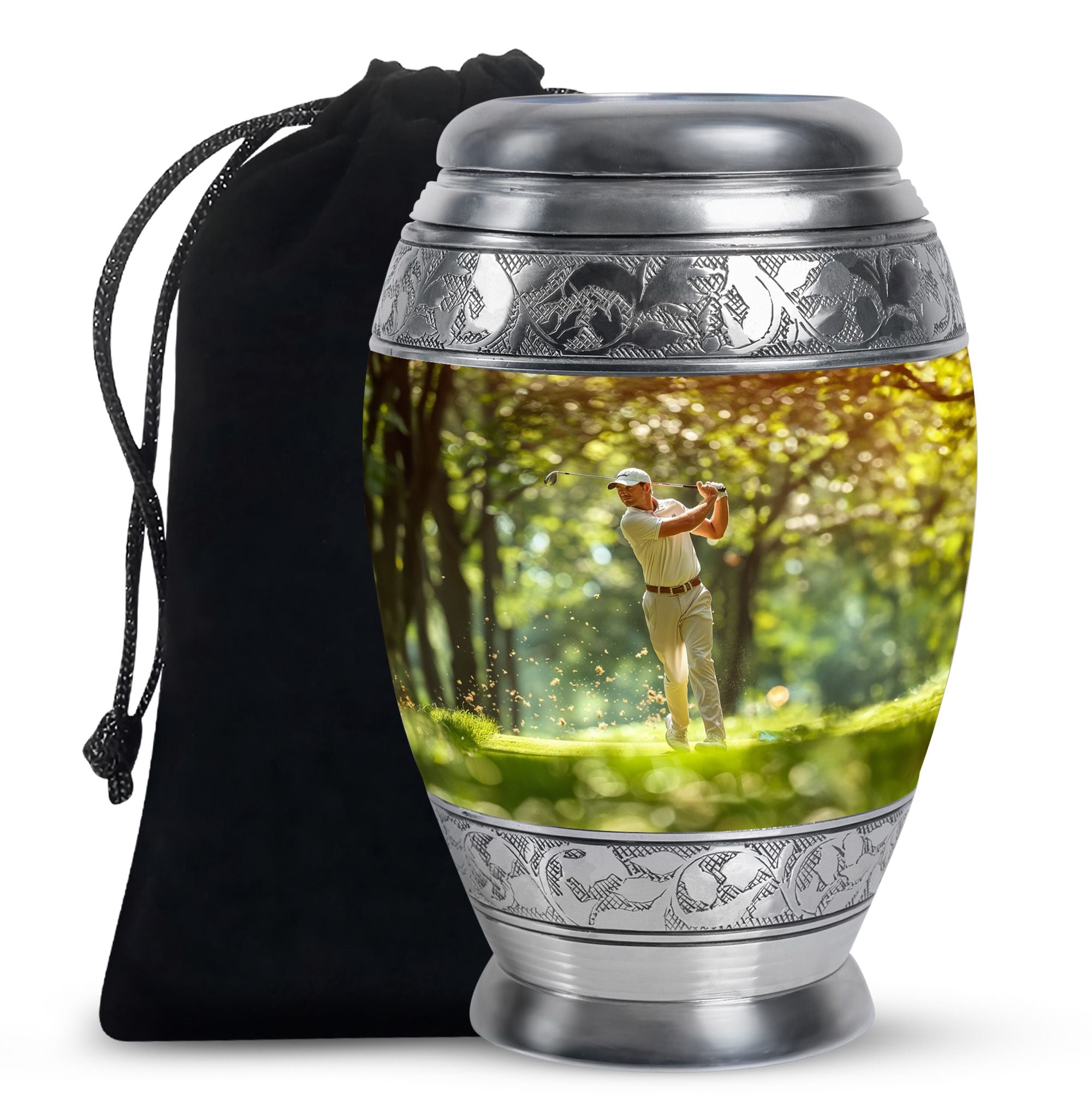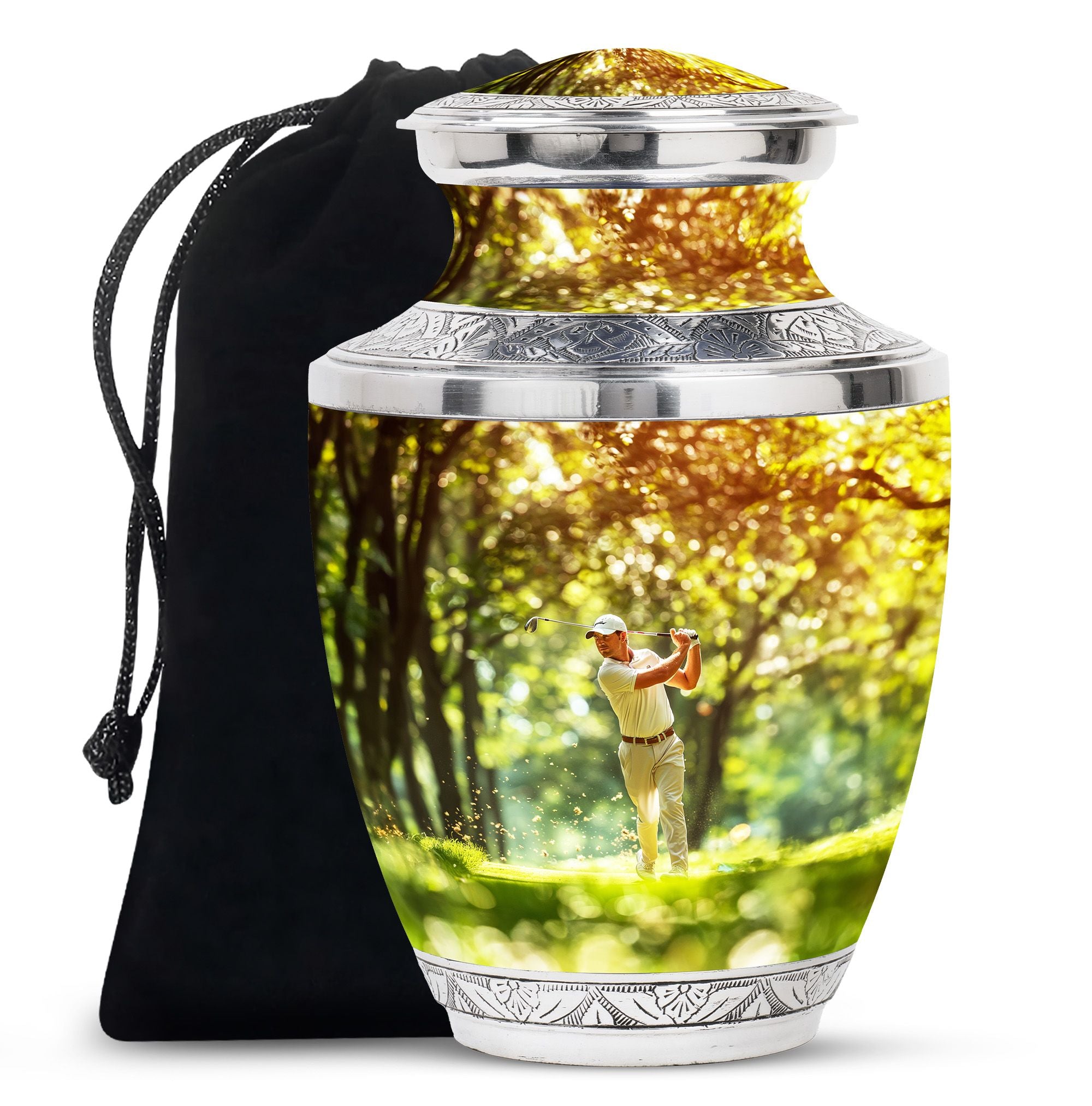Honor your loved one's love for the sport with the **Golf Burial Urn for Adult Human Ashes**. Shop today for a meaningful tribute.