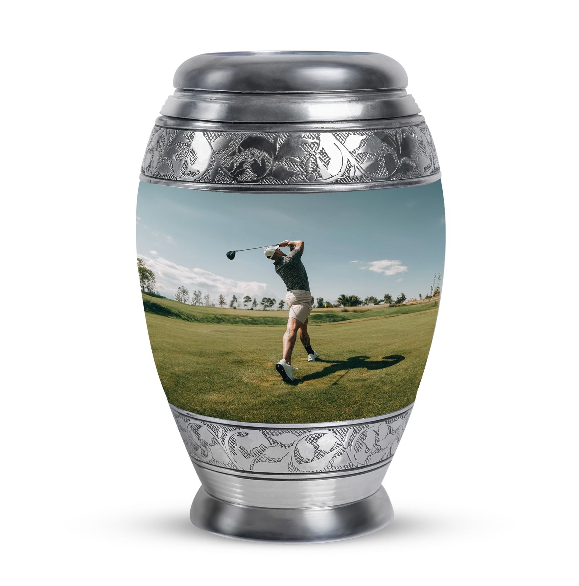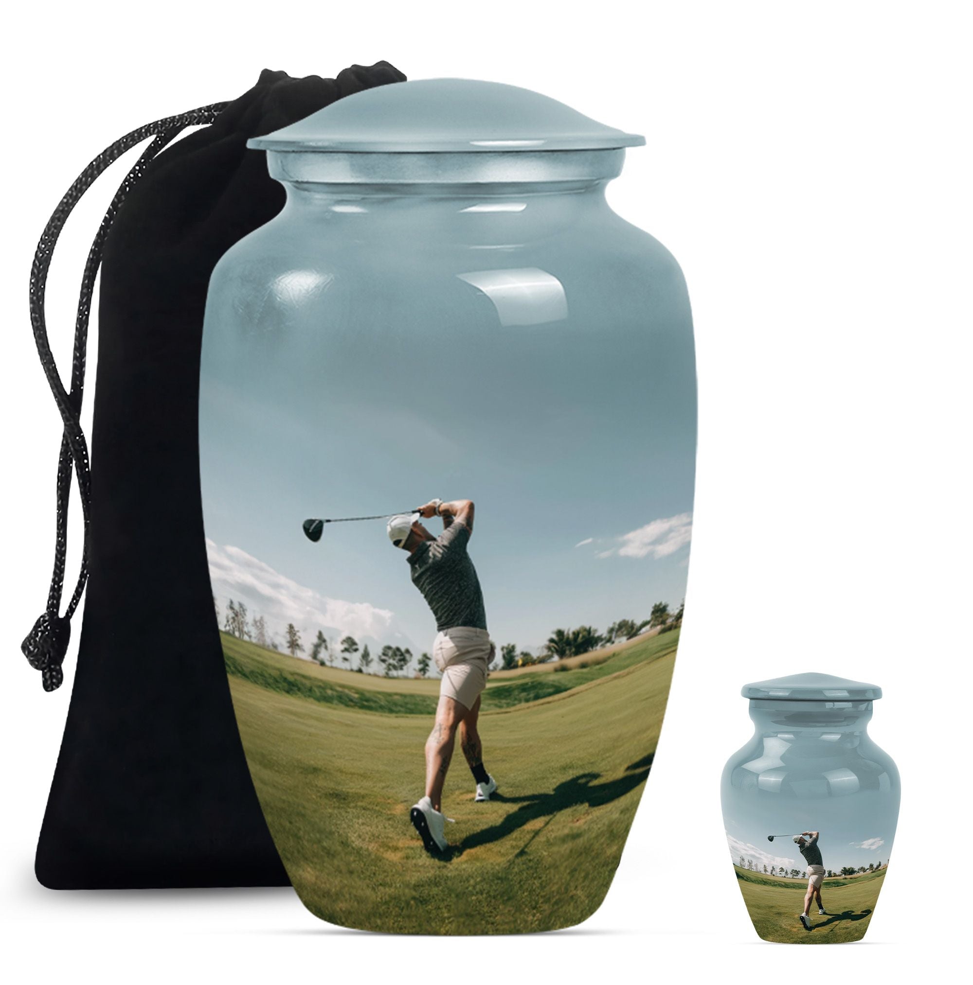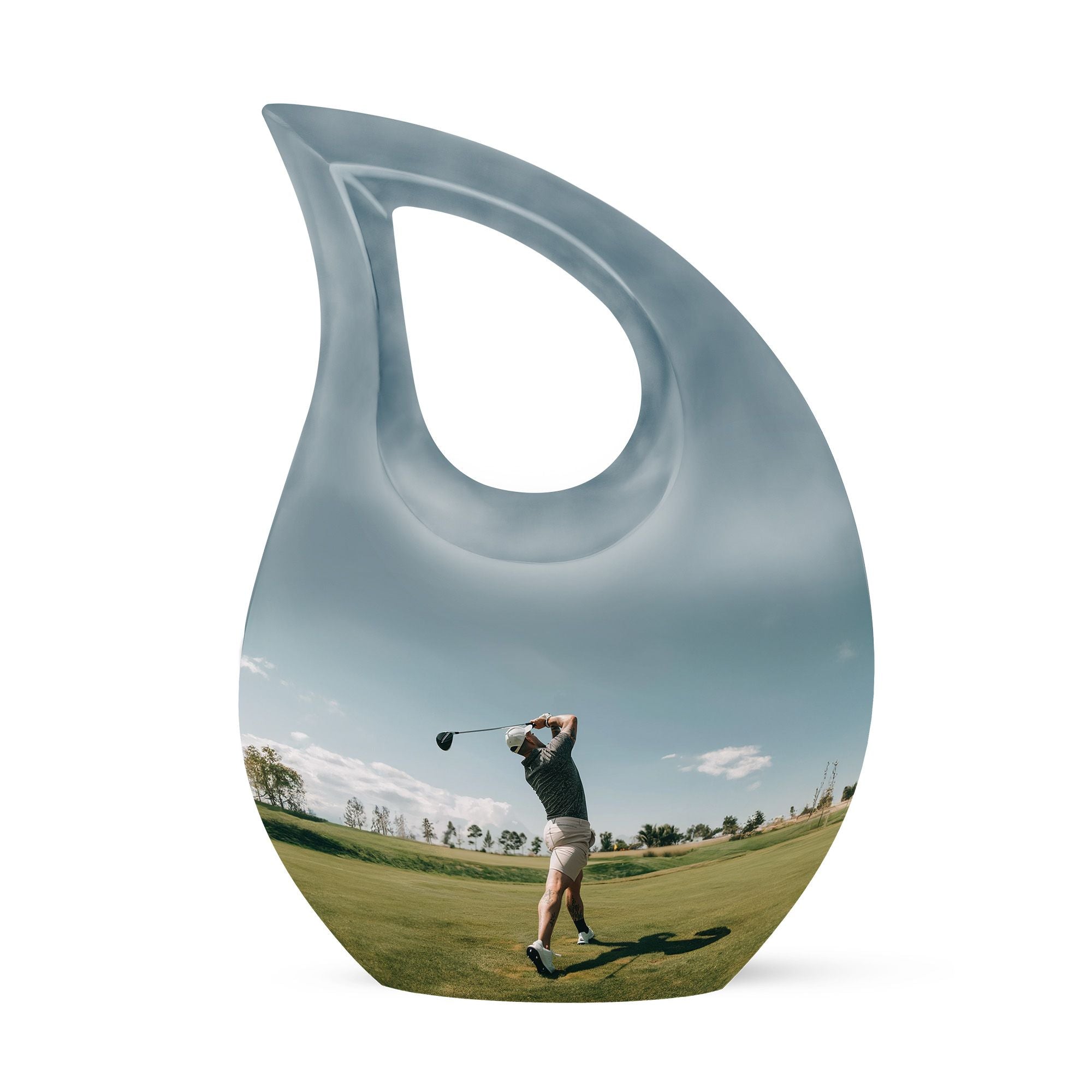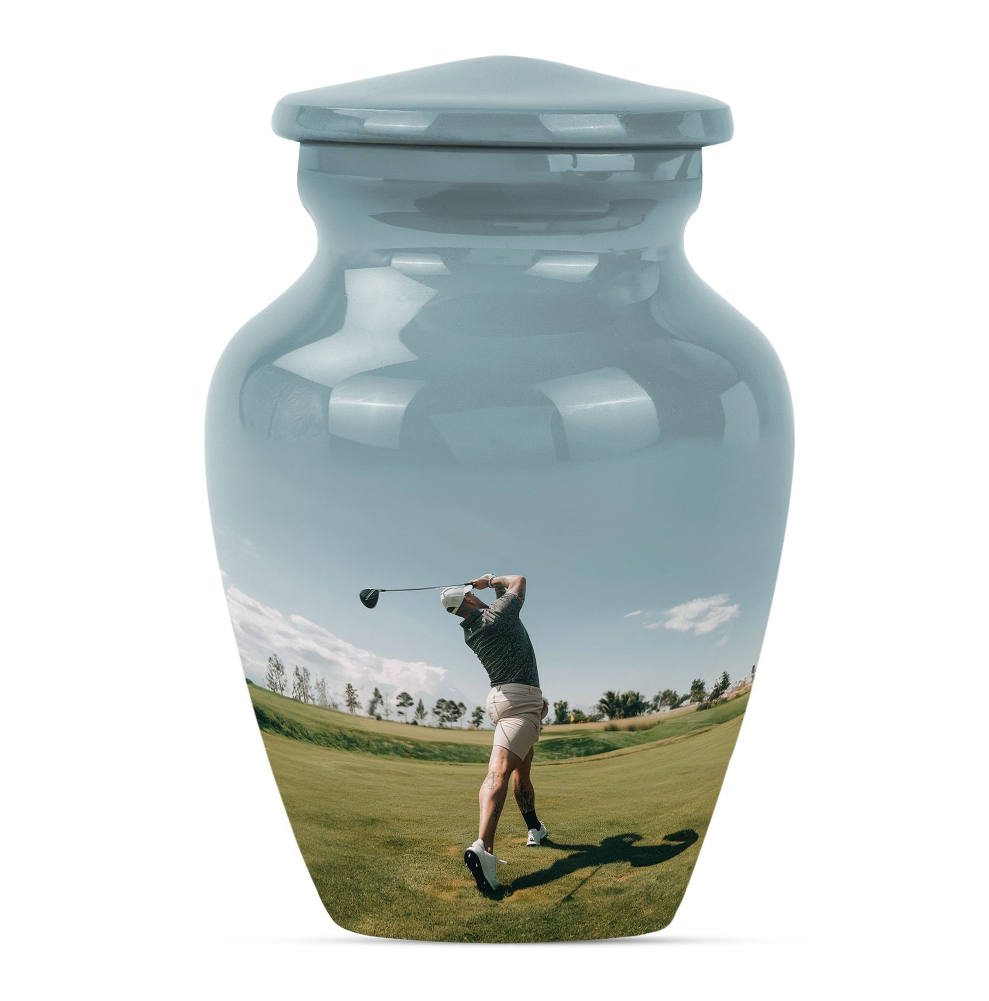 Honor a life filled with love and cherished memories with this golf cremation urn for human ashes. Thoughtfully designed, it provides families with a dignified way to preserve and celebrate the legacy of a loved one. Whether chosen as one of our adult cremation urns or as a small cremation urn for ashes, this design offers comfort and remembrance.
