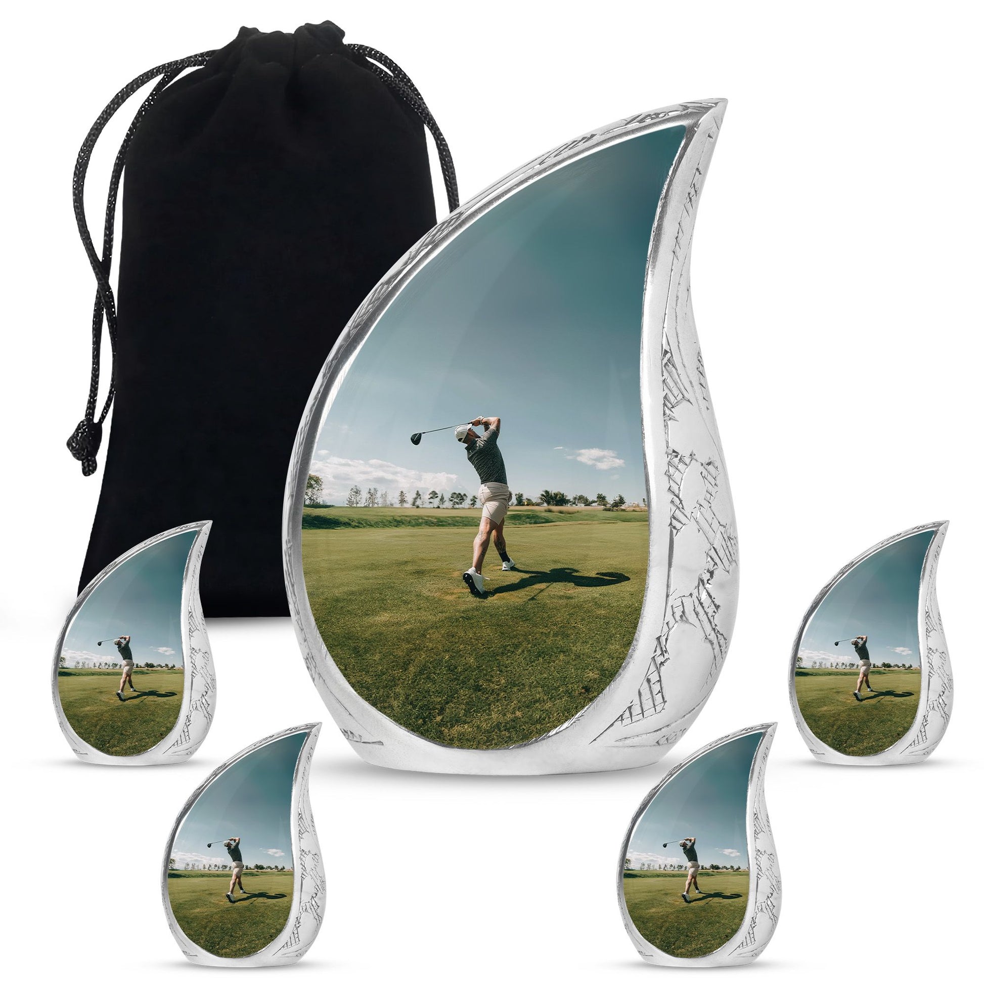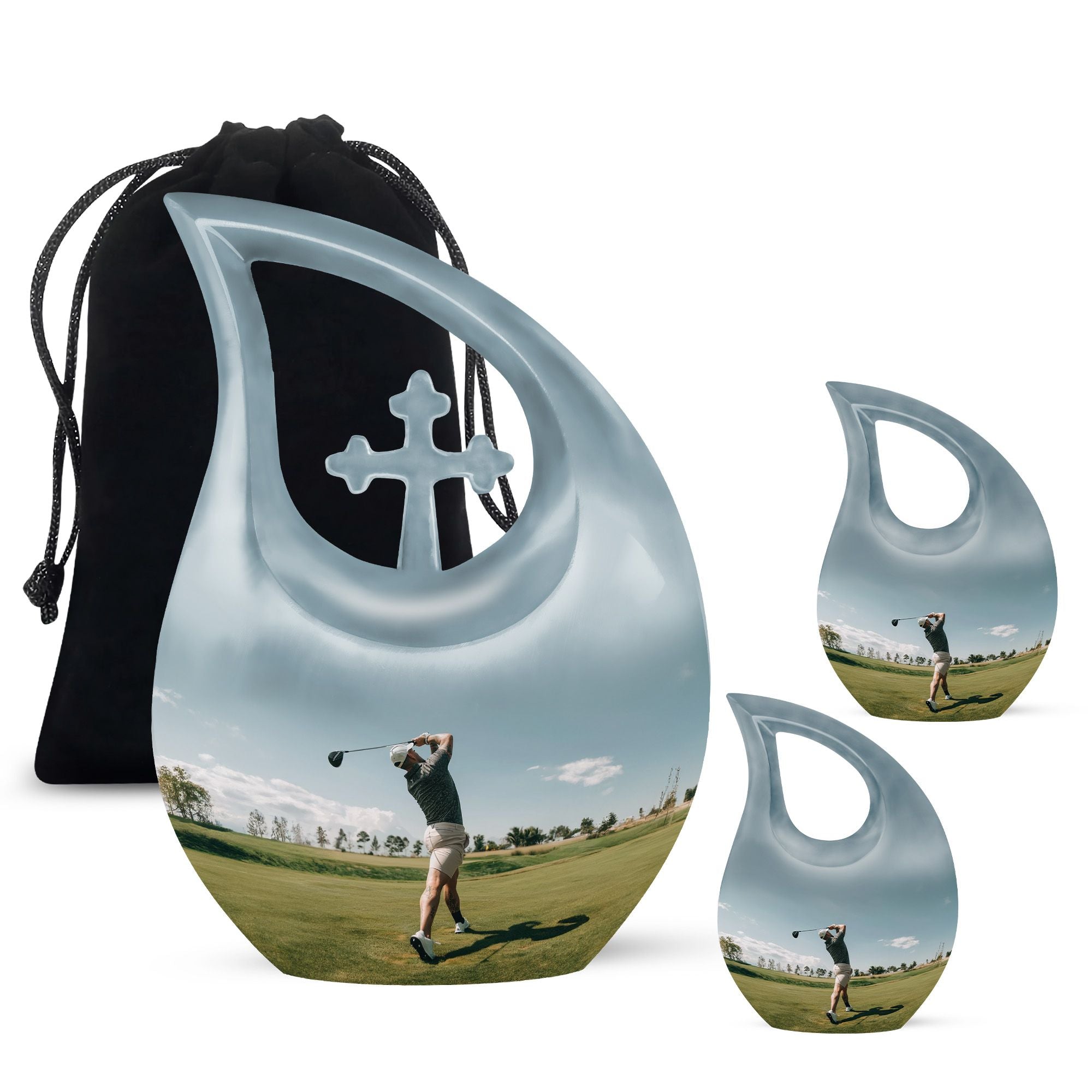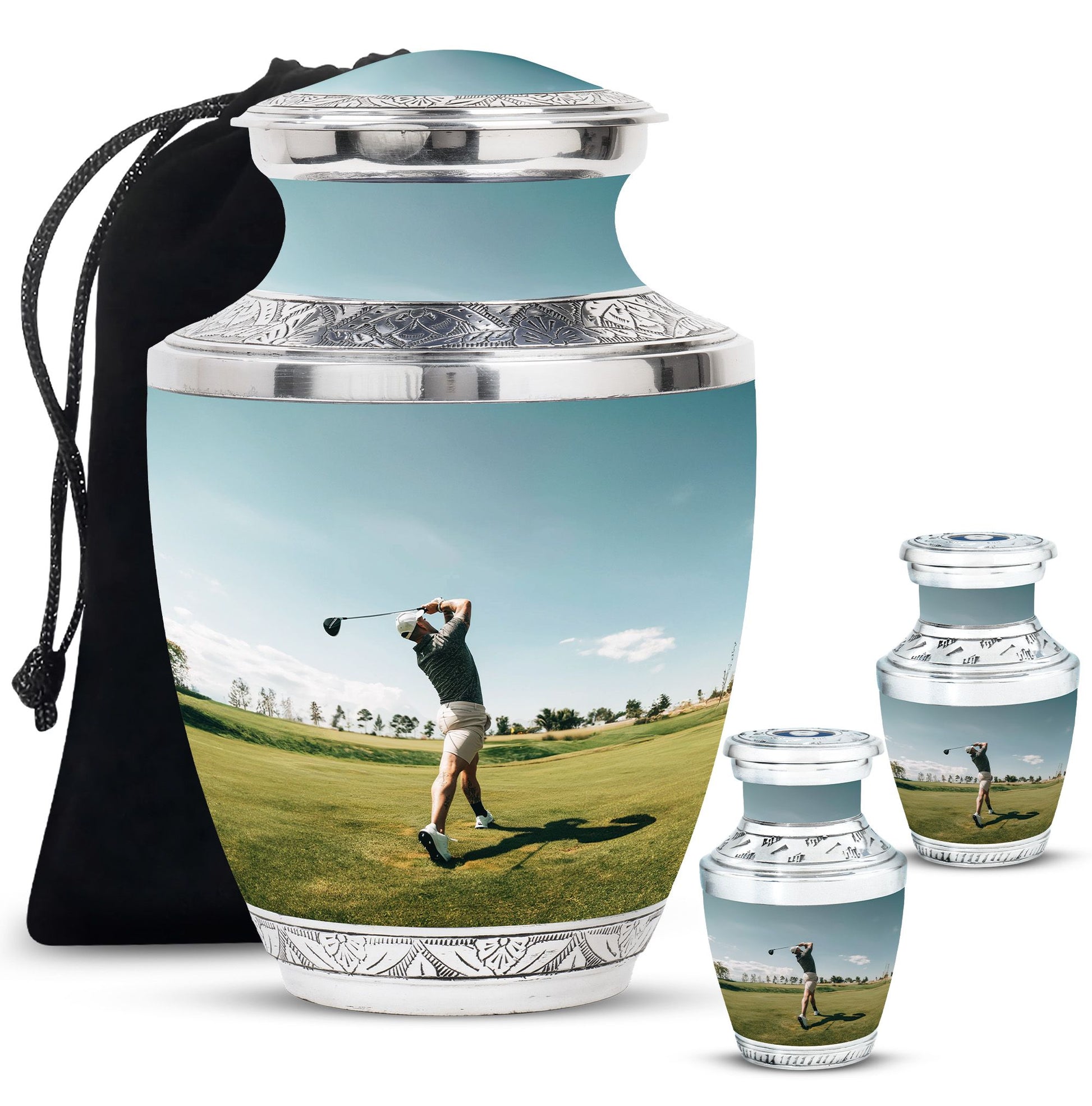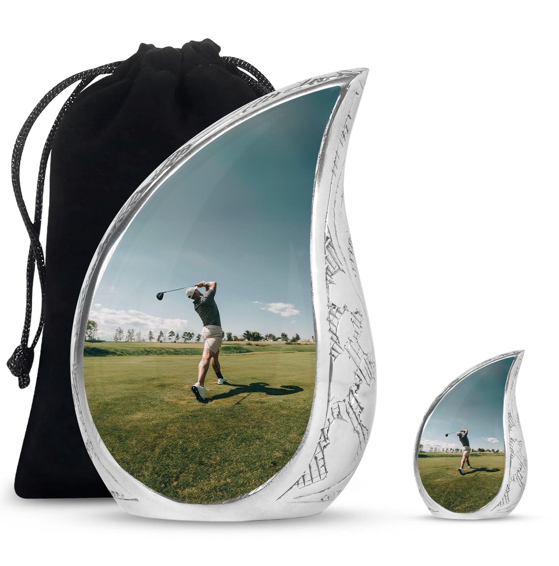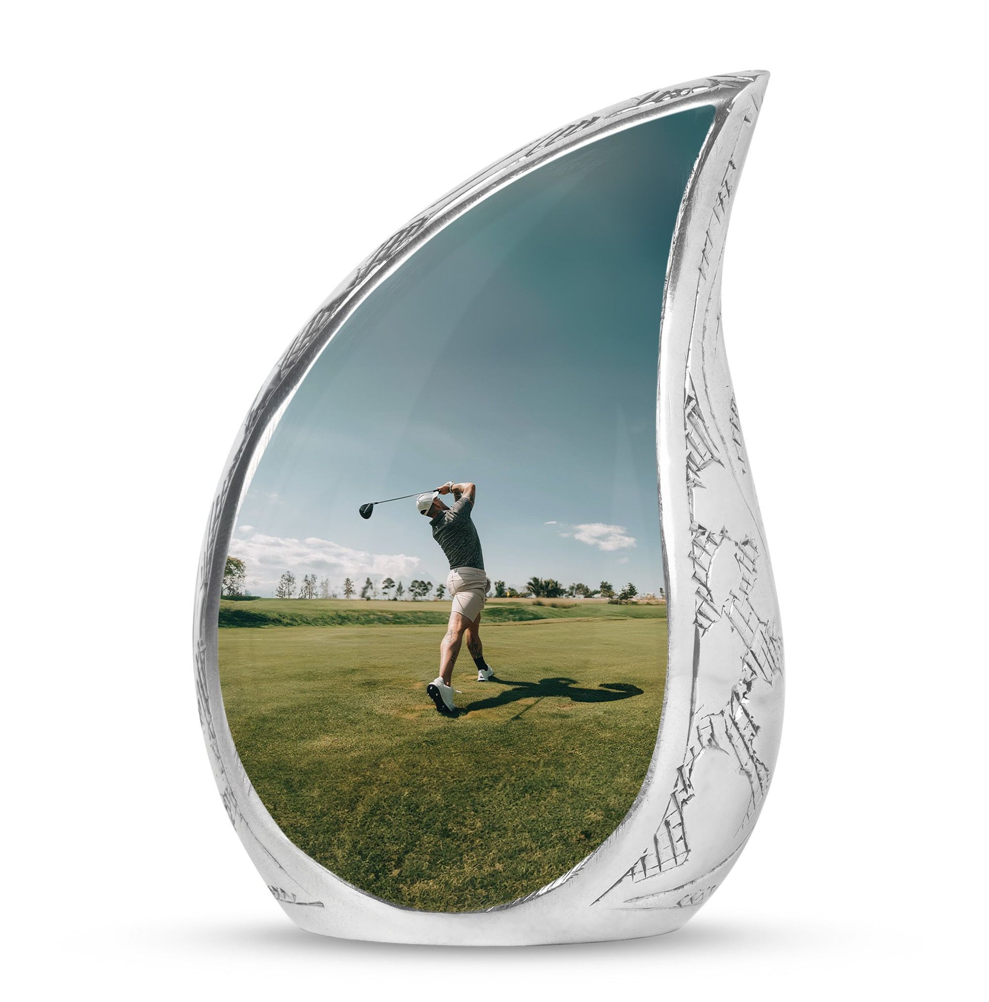 Honor a life filled with love and cherished memories with this golf cremation urn for human ashes. Thoughtfully designed, it provides families with a dignified way to preserve and celebrate the legacy of a loved one. Whether chosen as one of our adult cremation urns or as a small cremation urn for ashes, this design offers comfort and remembrance.