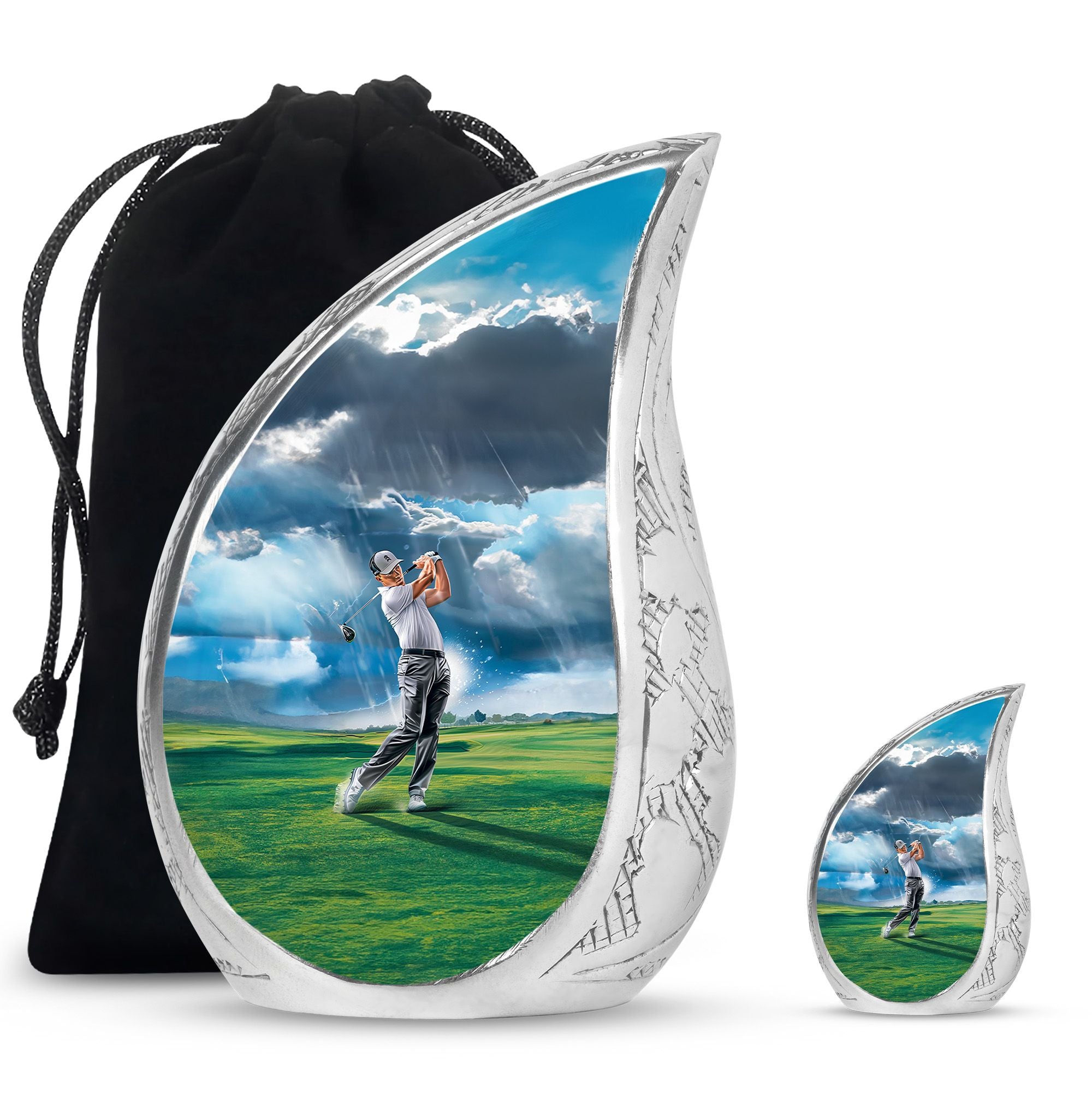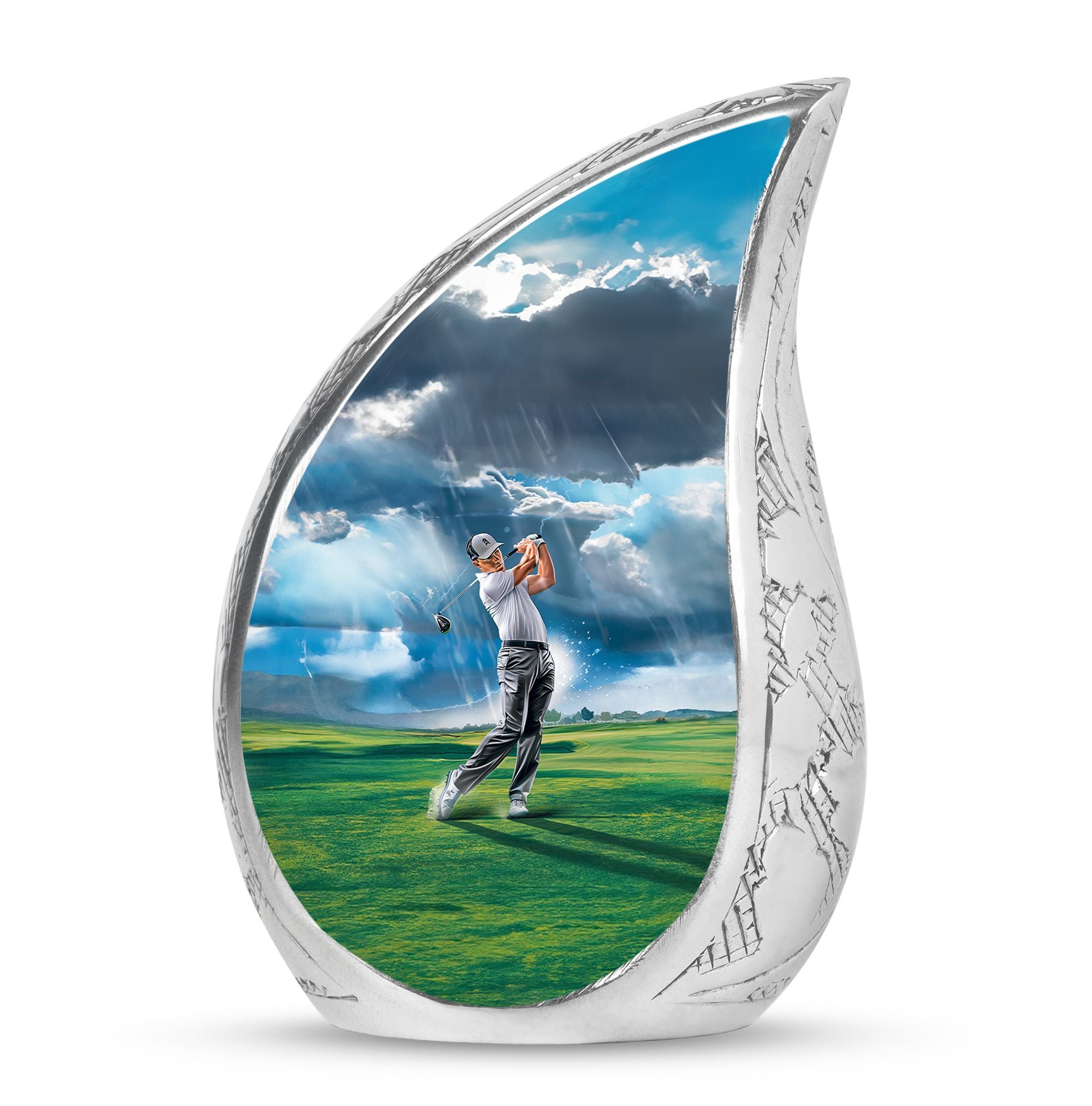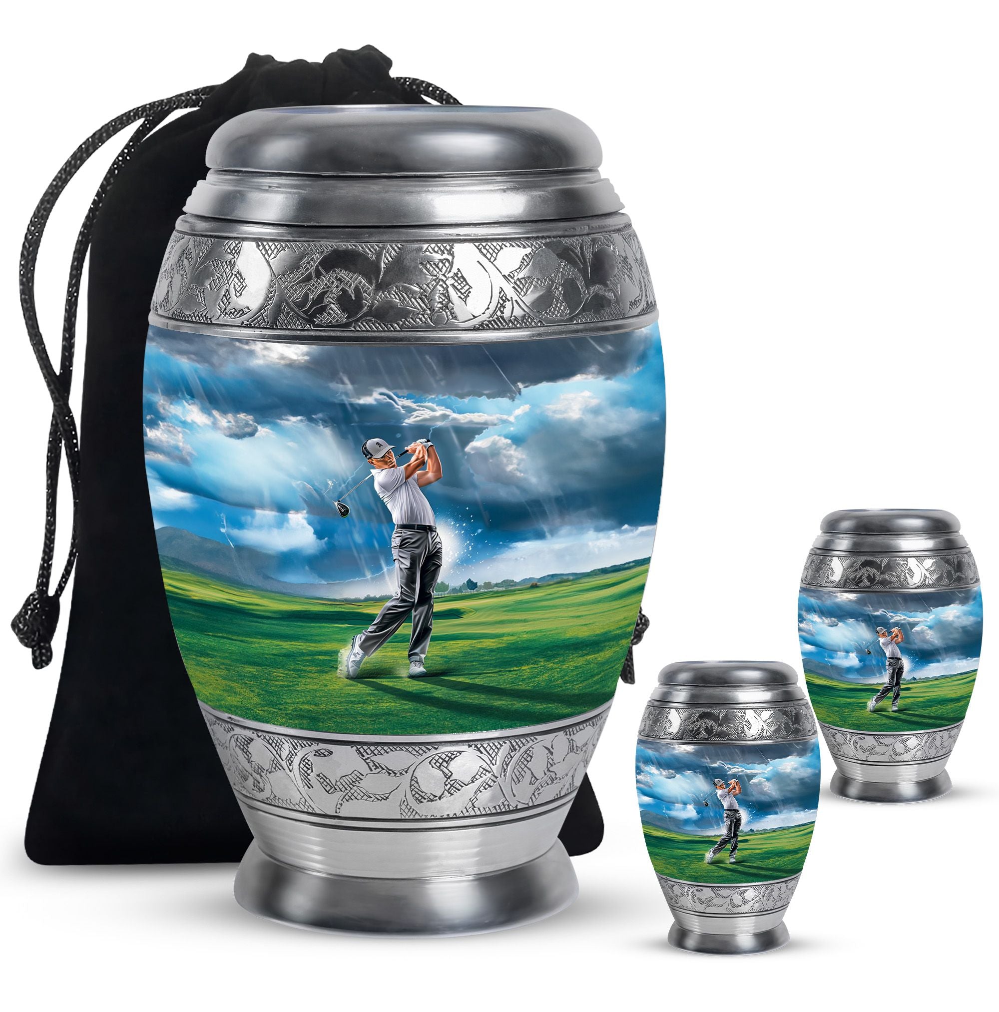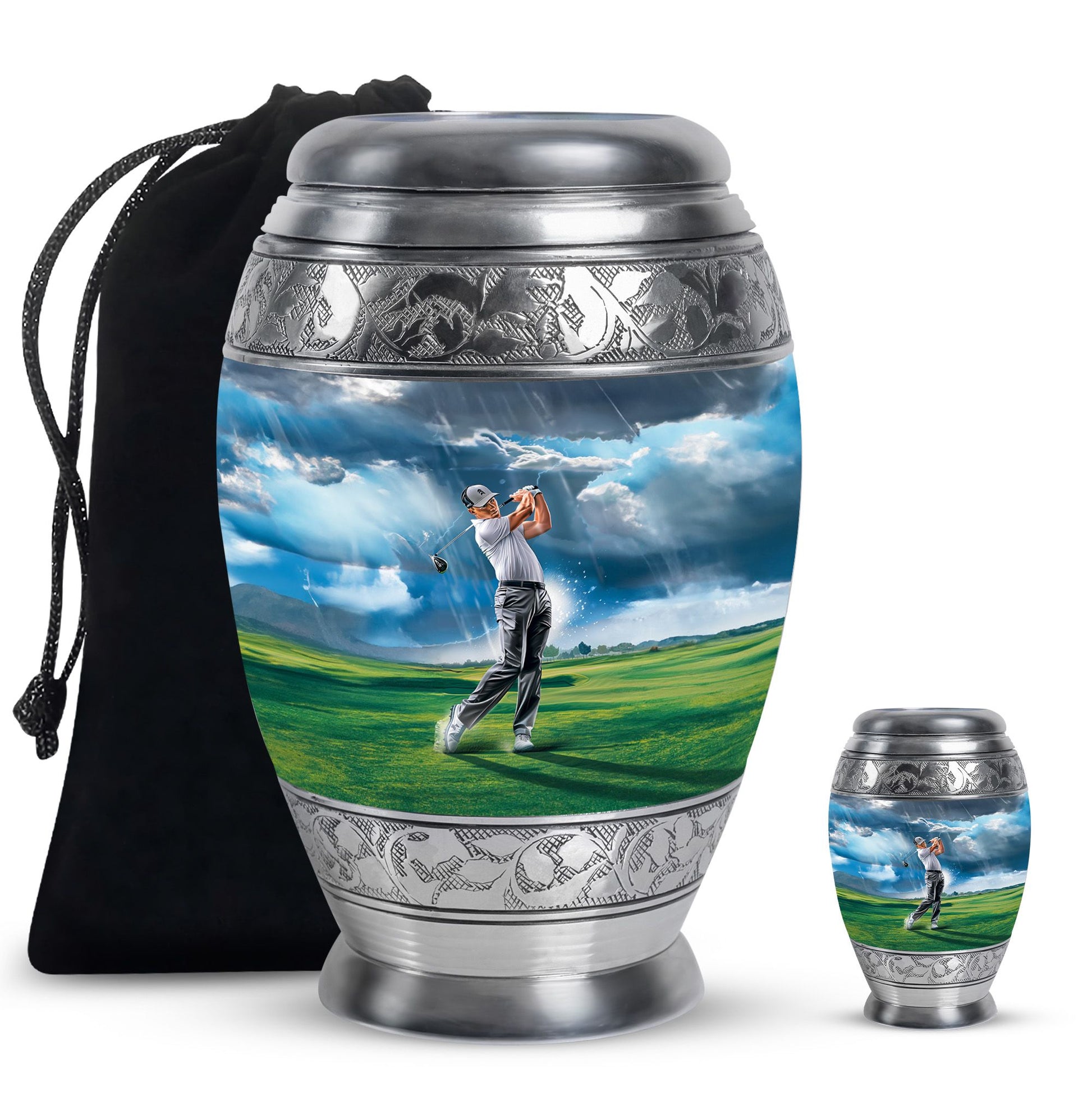 Crafted from durable aluminum, this urn combines artistry and strength. Its elegant golf motif and polished finish make it a distinctive piece among funeral urns for human ashes. With a secure screw-top lid and ample capacity, it is perfect as one of the urns ashes adult male families trust, while also serving as a meaningful choice for urns ashes adult female.