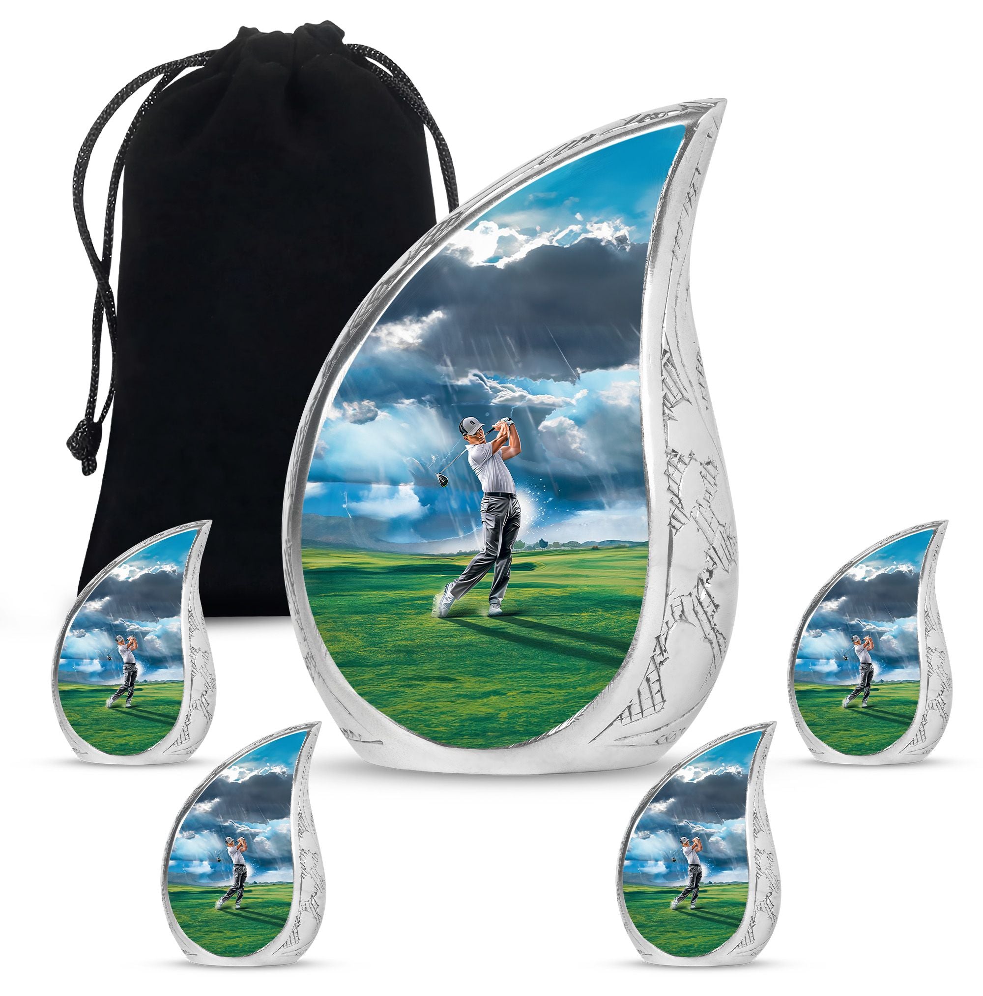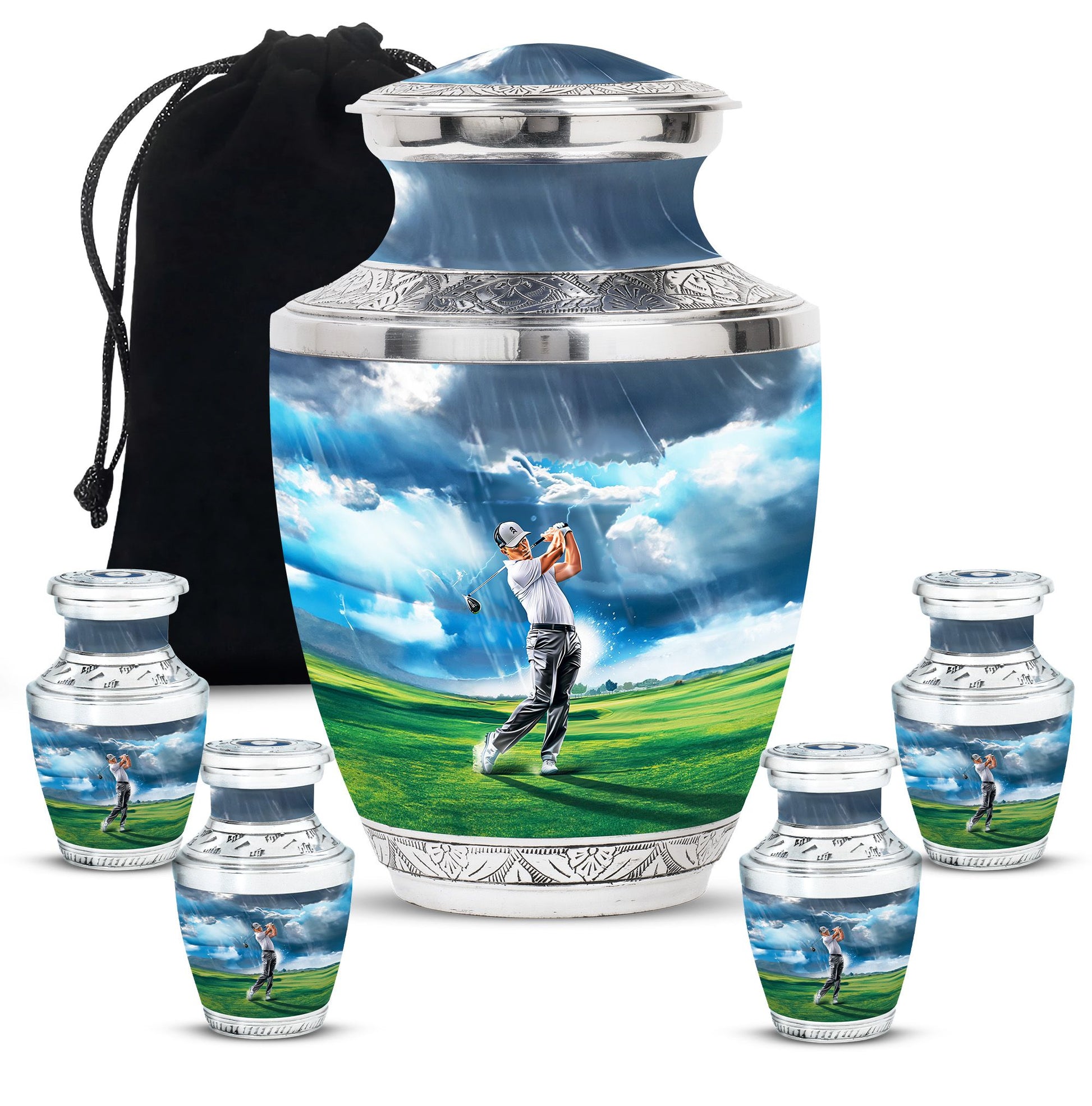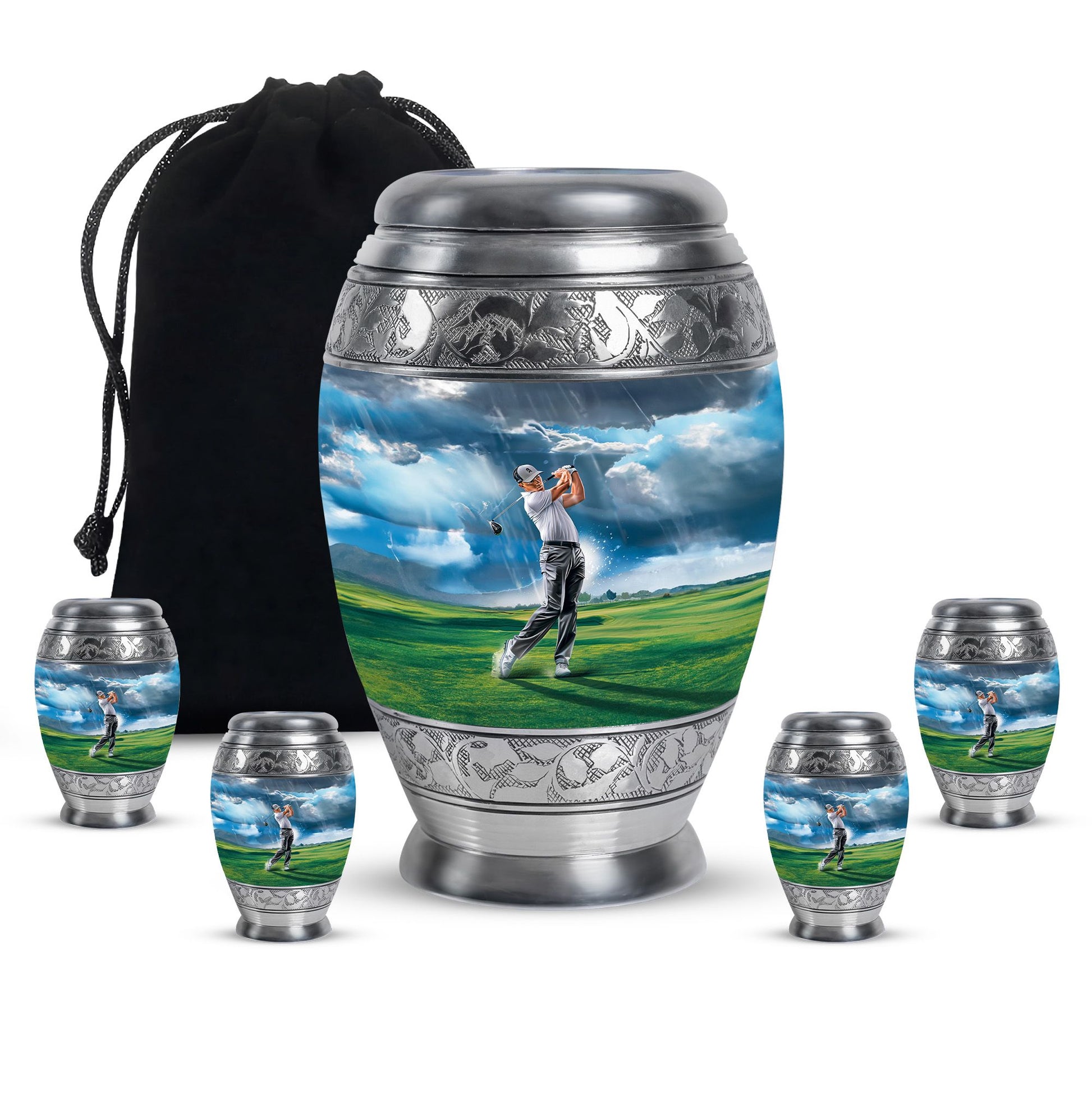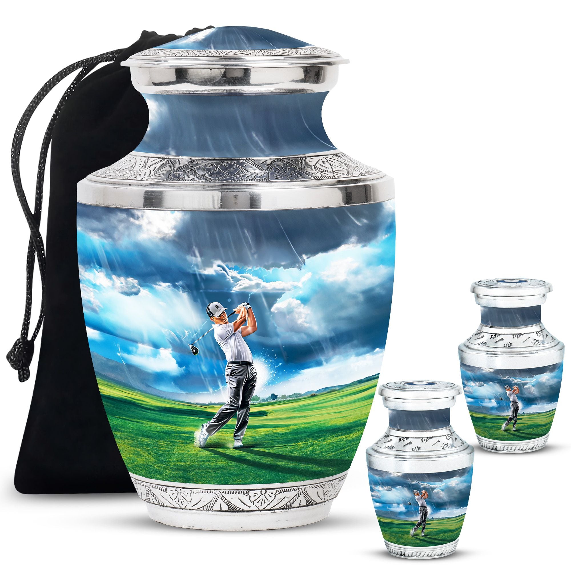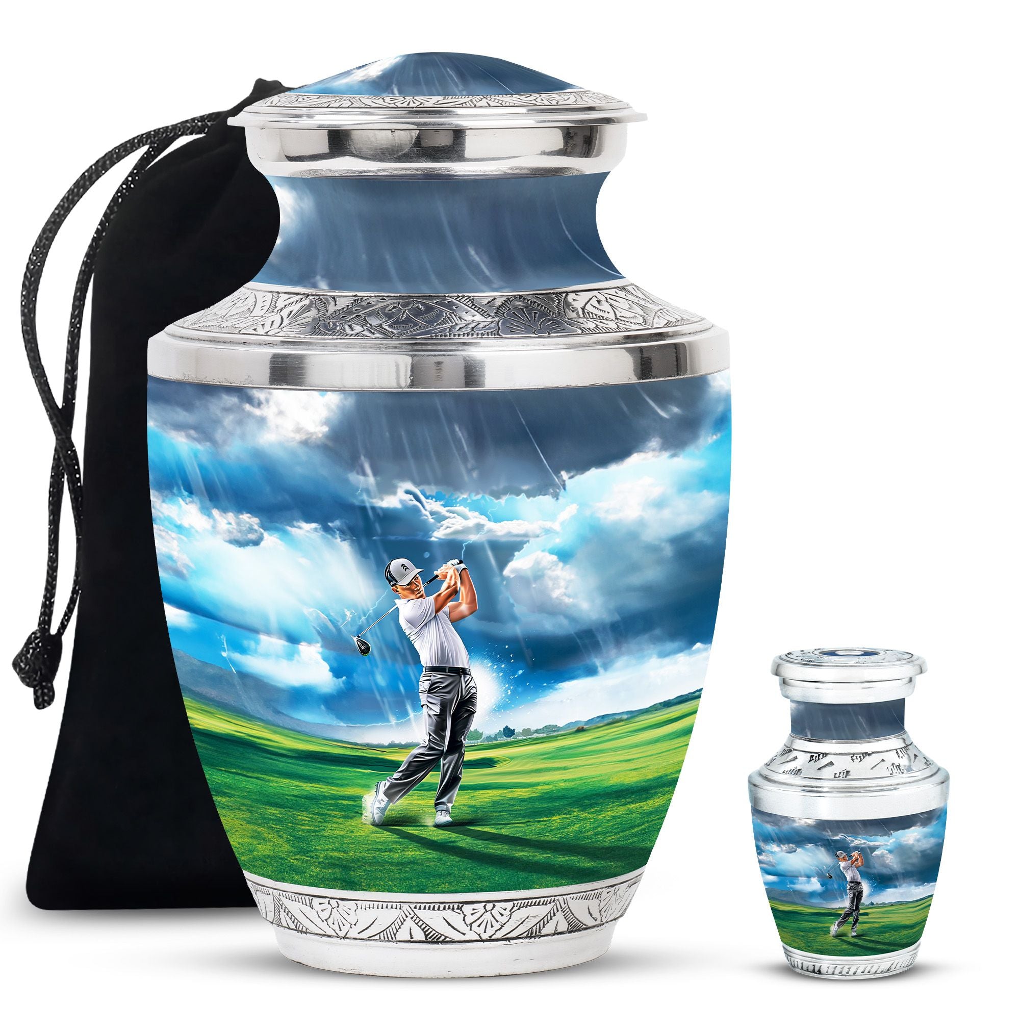 Crafted from durable aluminum, this urn combines artistry and strength. Its elegant golf motif and polished finish make it a distinctive piece among funeral urns for human ashes. With a secure screw-top lid and ample capacity, it is perfect as one of the urns ashes adult male families trust, while also serving as a meaningful choice for urns ashes adult female.