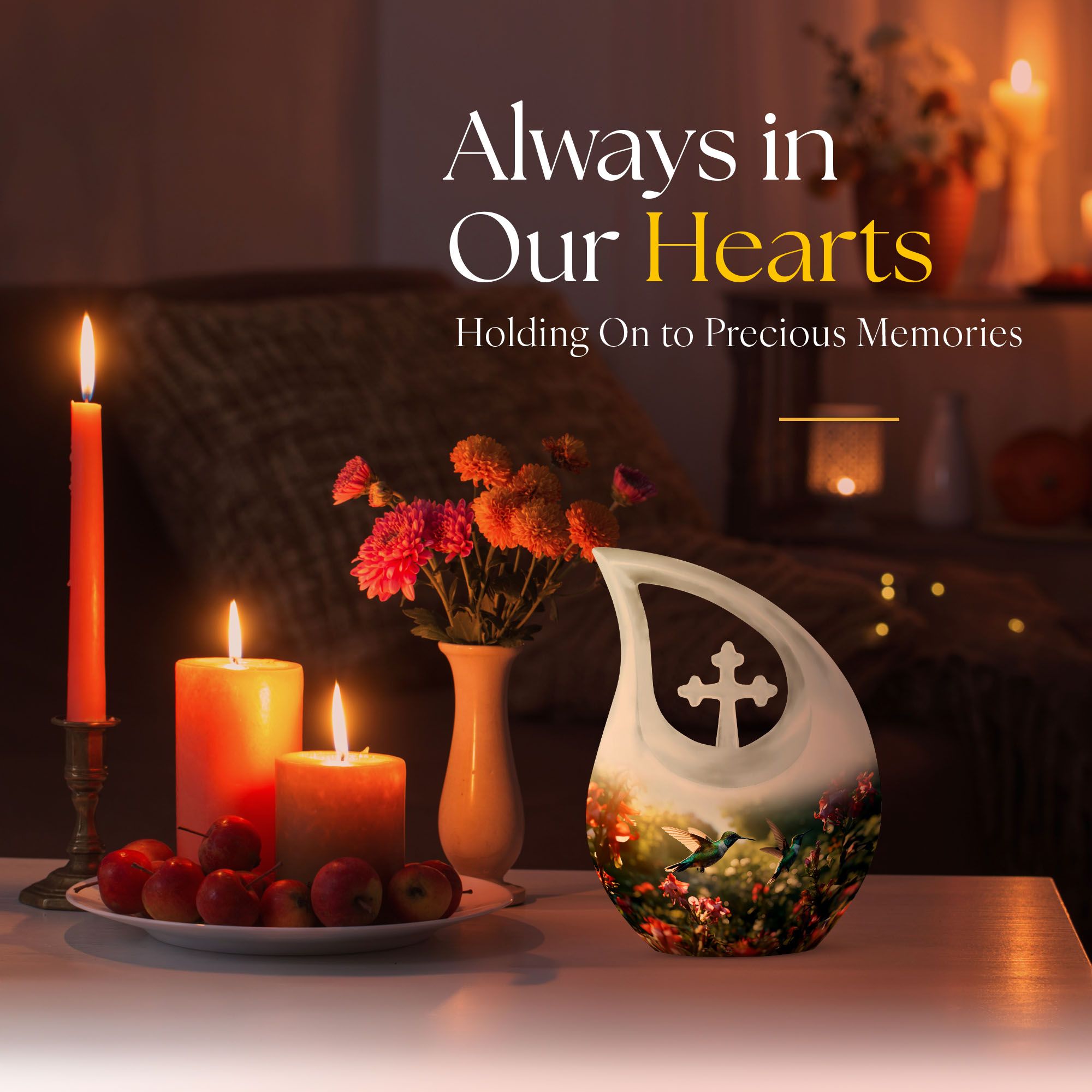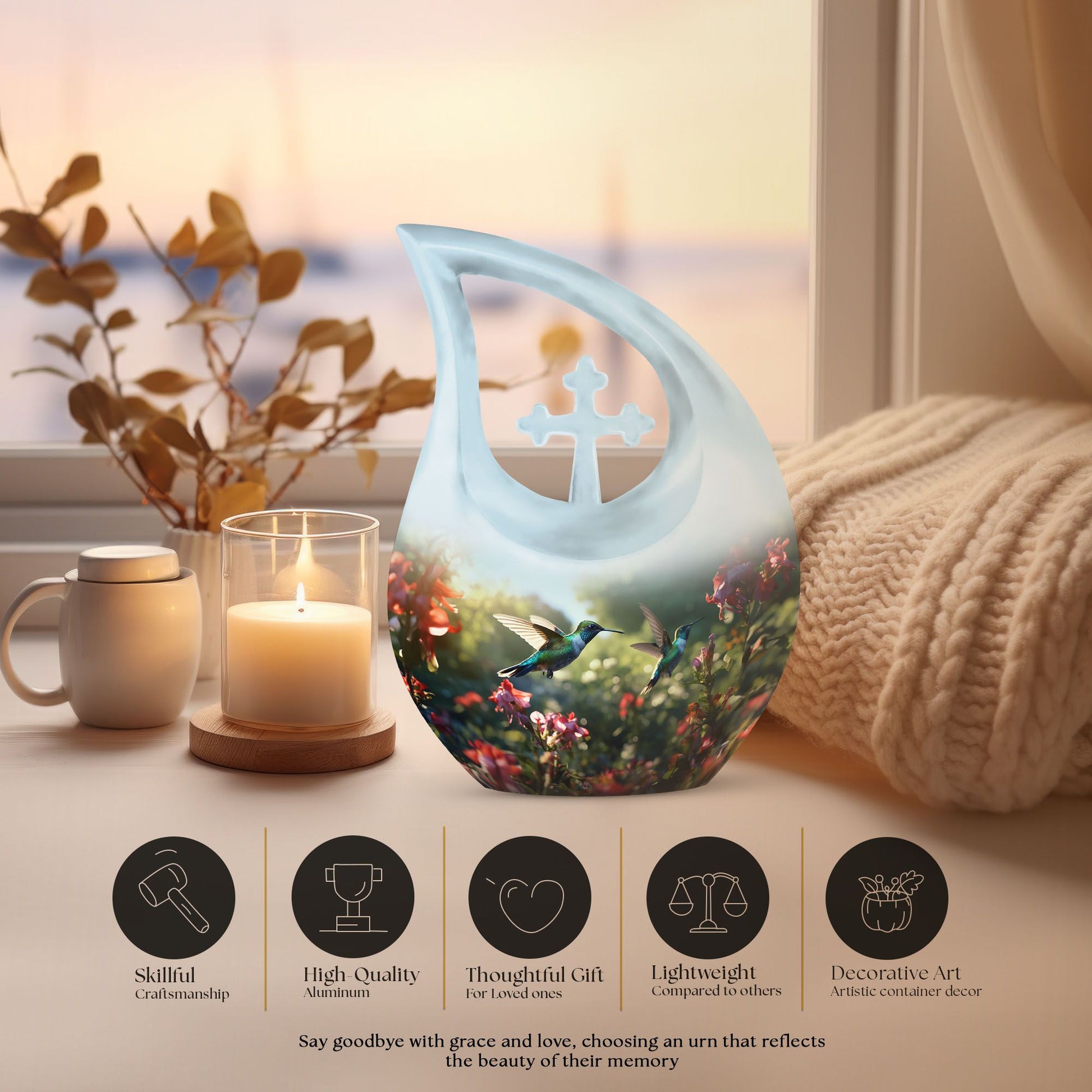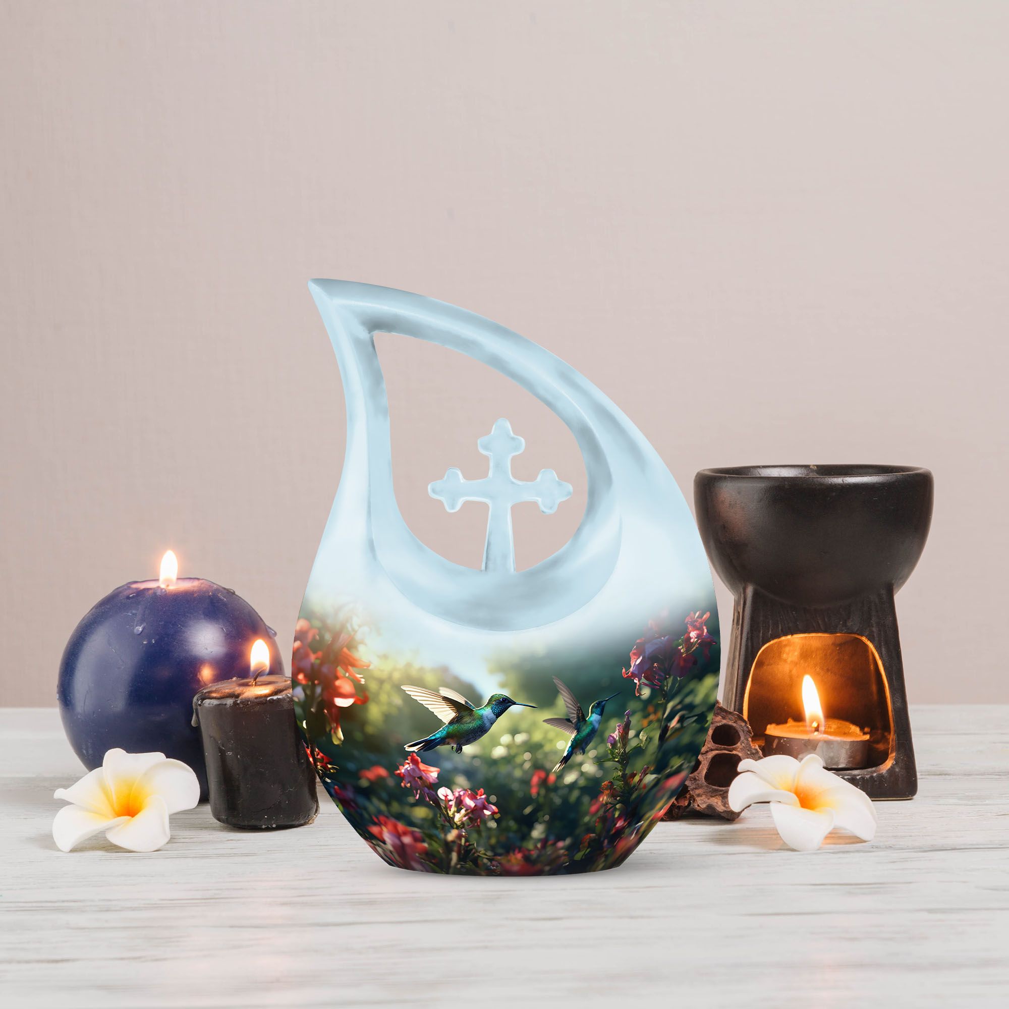 Whether chosen as an adult cremation urn, urn for cremation, or part of urns cremation collections, this Green Hummingbird Urn Combo reflects harmony, serenity, and the everlasting presence of love — just as a hummingbird continues to soar through time and memory.