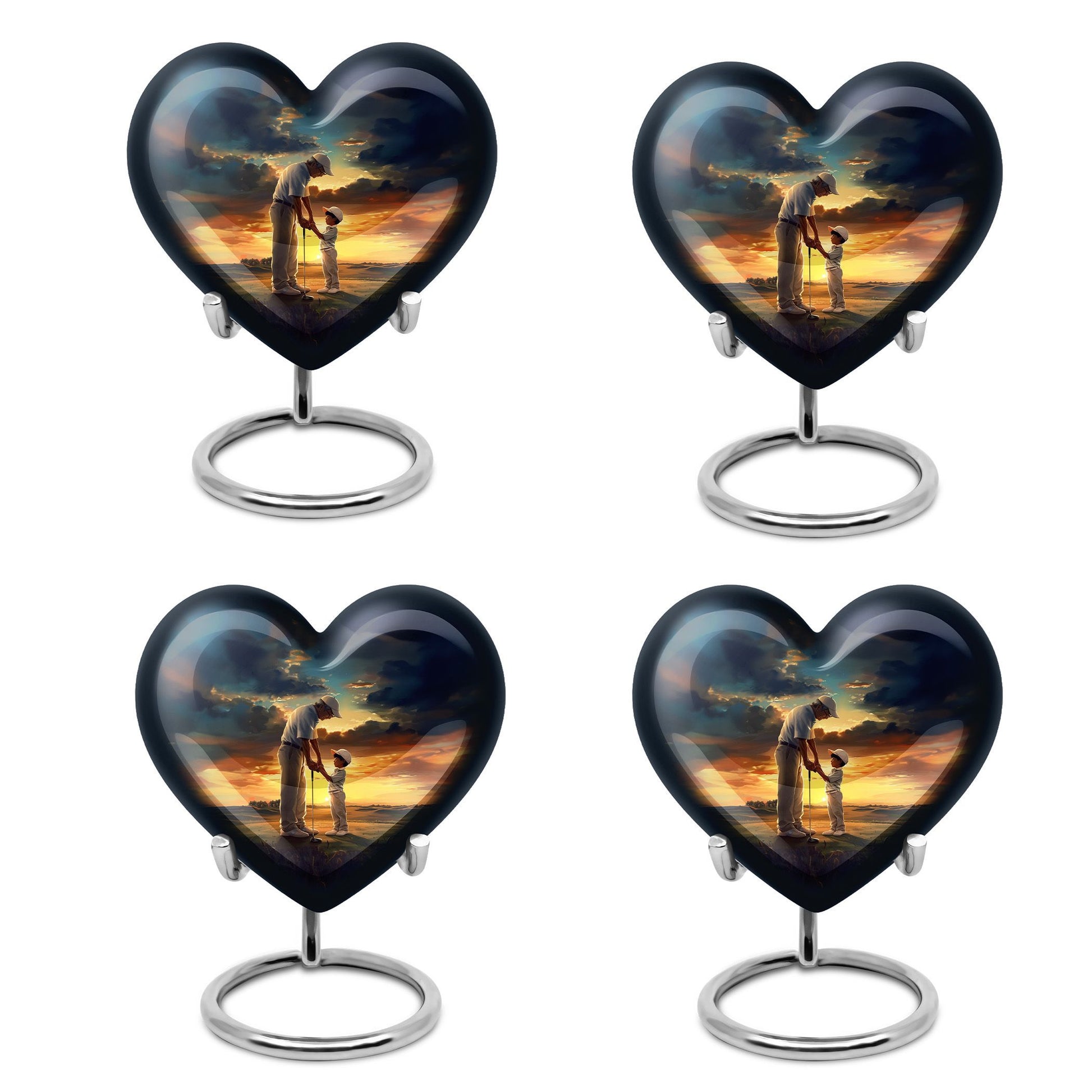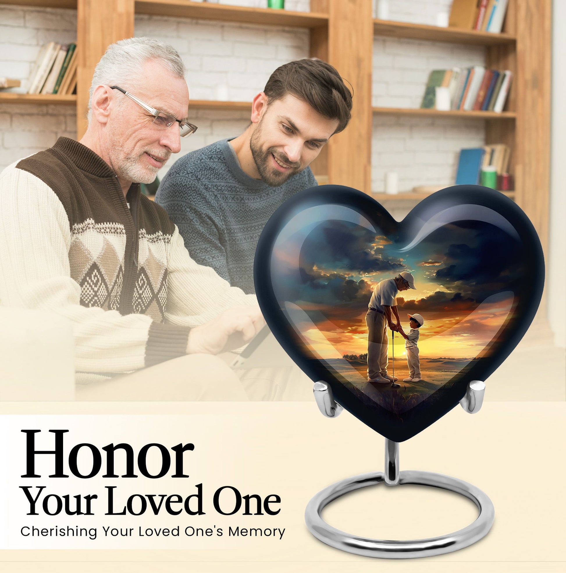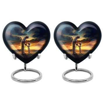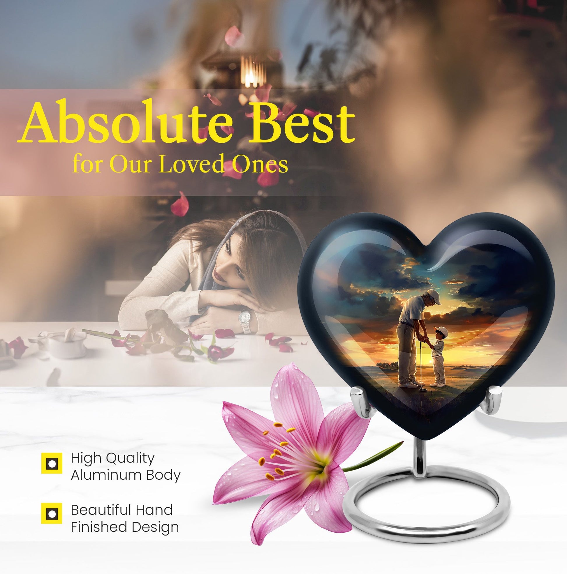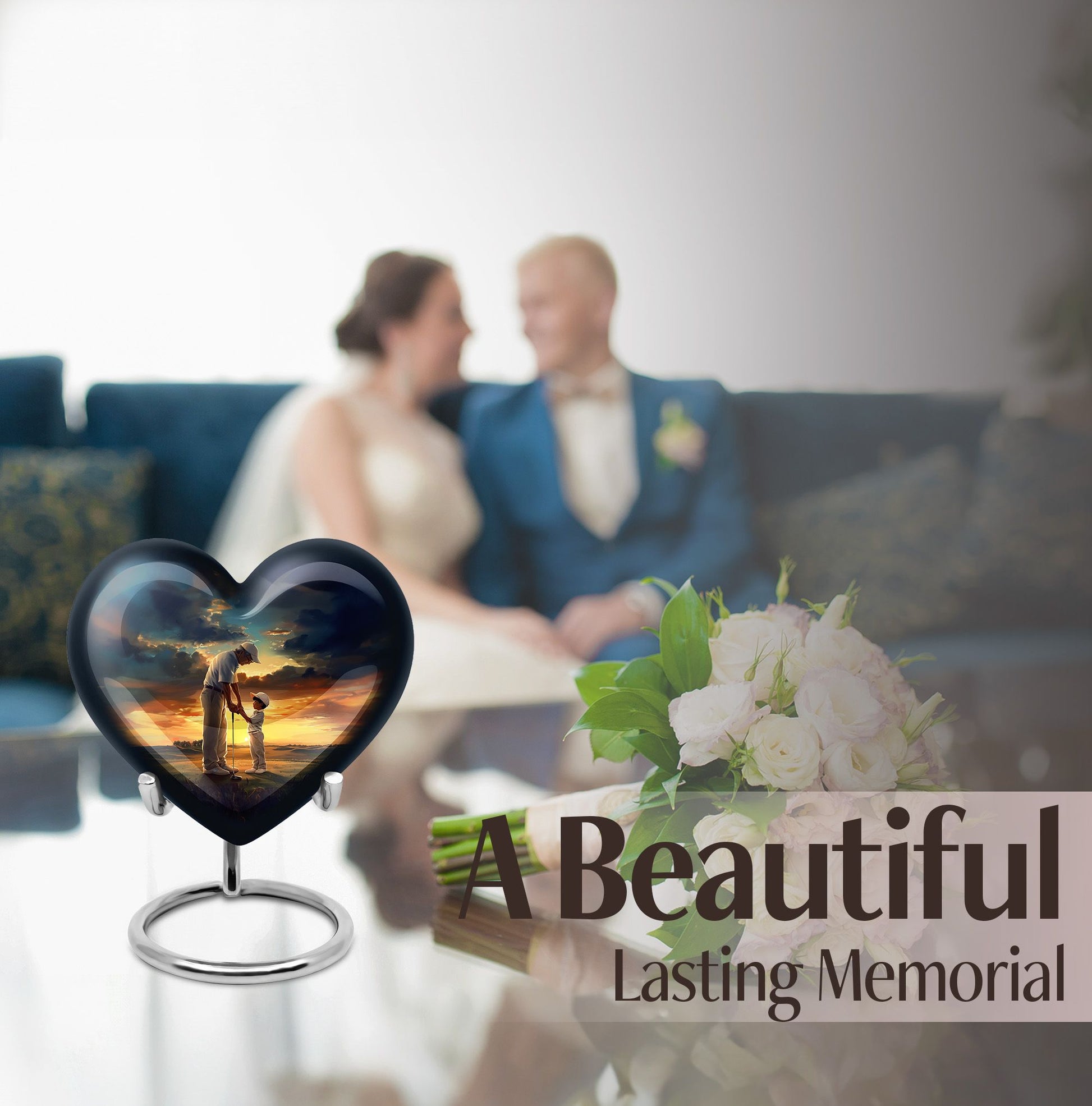 A striking embodiment of love and respect, the Heart Urn stands 10 inches tall, constructed from durable and appealing aluminum. As a symbolic focal point for memorial ceremonies, it's more than just a golf urn or large urns regularly seen. This heart-themed abstract design urn, with a hefty weight of 3.3 pounds, ensures a significant solidity. With a remarkable capacity of 200 cubic inches, it can accommodate not only adult ashes for women but is capable as a funeral extra large urn for adult male ashes as well. Along with this purchase, you will receive a velvet pouch intended for the containment of the beloved one's ashes. Additionally, engraving names on the urn is an available option, allowing you to add a personalized touch. This diversely described as a 'memorial urn,' 'cremation urn', or 'burial urn' assures strength, durability, and peace of mind.