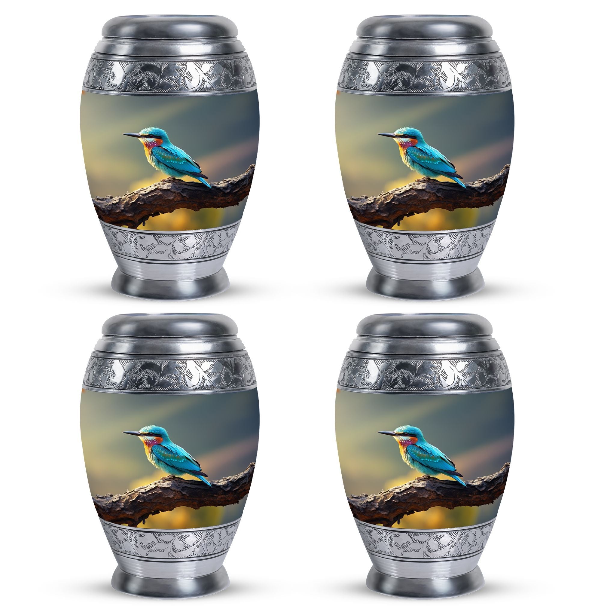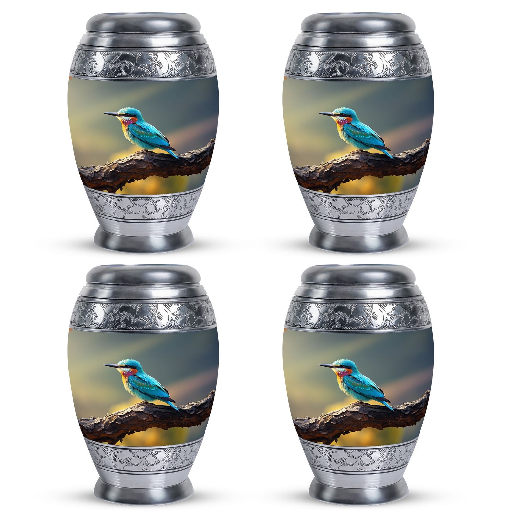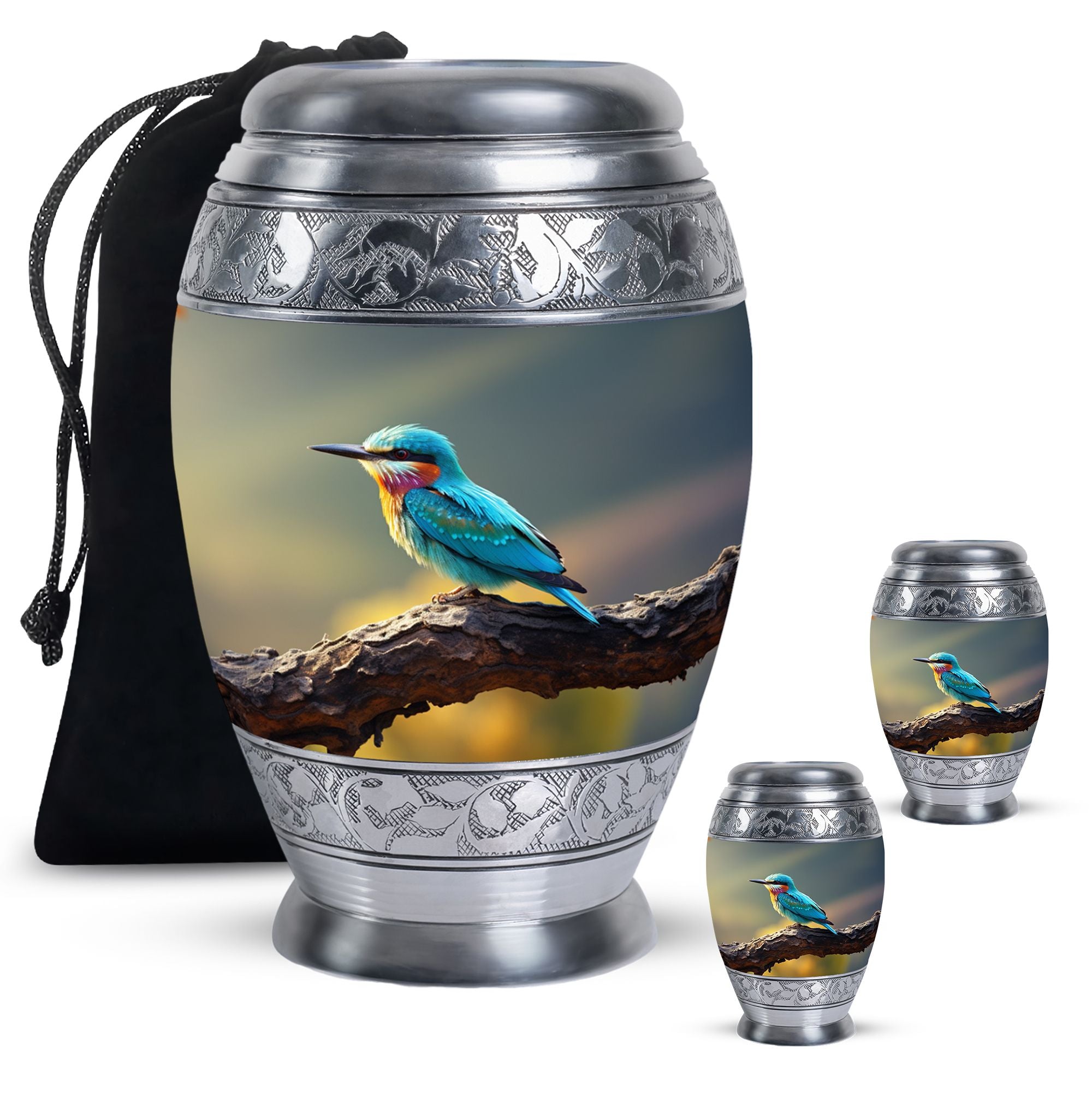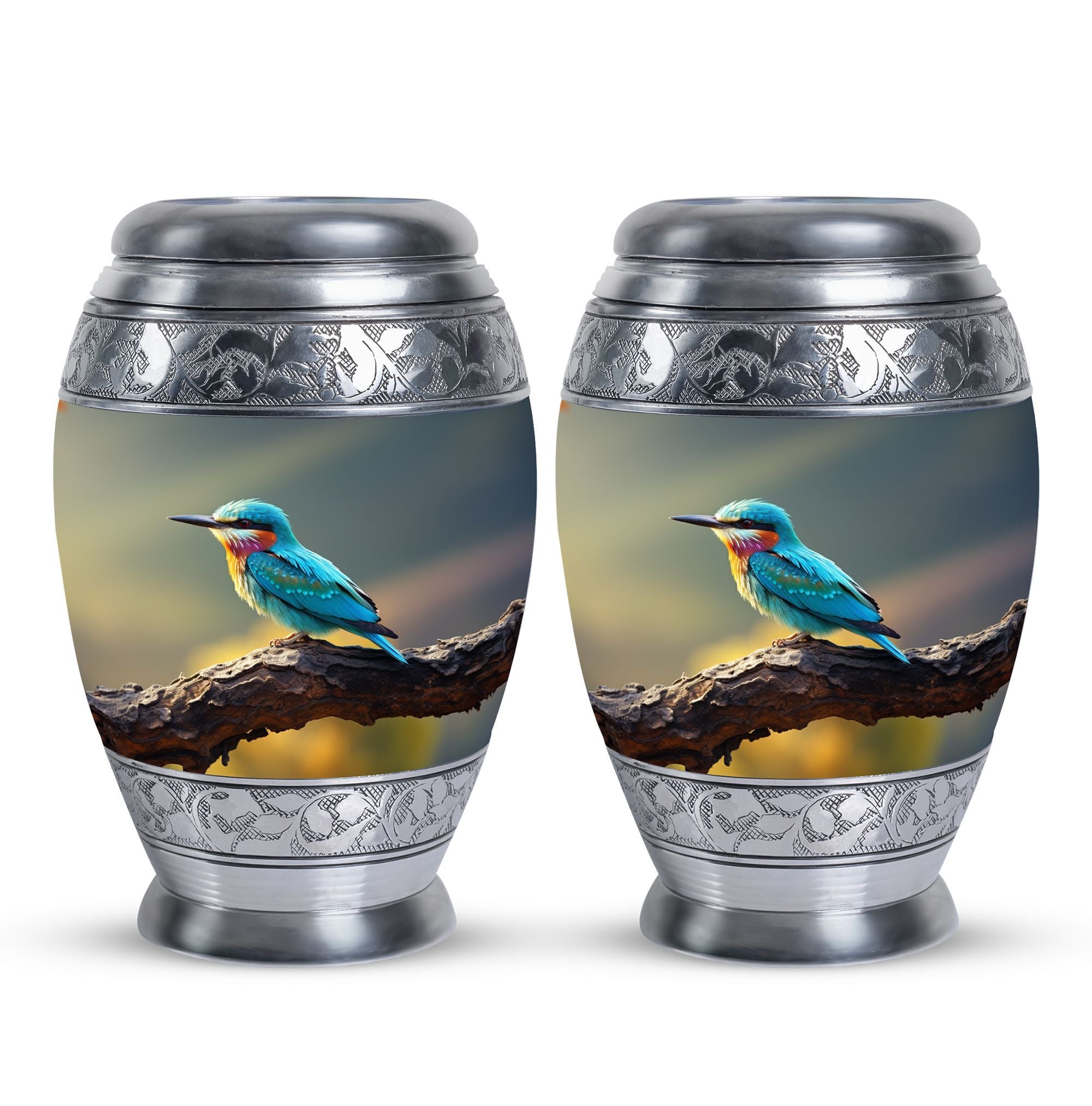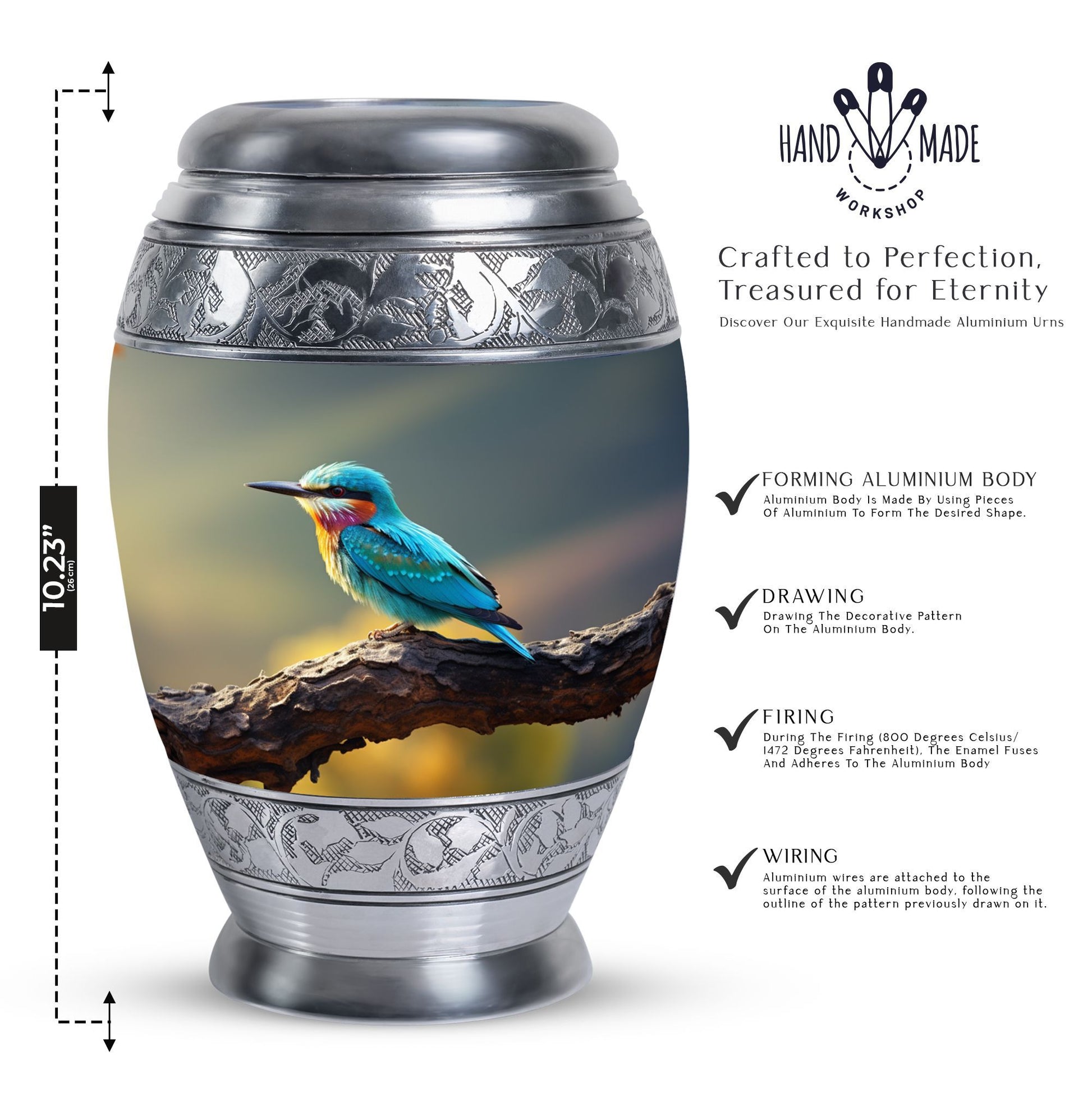 Experience the intimate tranquility of remembering your loved one with the Green Sparrow Memorial Urn. This large urn, crafted from durable Aluminium, houses a generous capacity of 200 cubic inches, serving as a worthy resting space for those we hold dear. With dimensions standing at 10 inches in height, the urn is designed to be unobtrusive yet poignant, a touchstone for moments of remembrance. We understand the solemnity of your search for 'memorial urns'. This eternity encapsulating urn comes with a velvet pouch for the containment of ashes, enhancing the reverence of the urn. Customizable features allow for personalization with engraved names, enabling you to create a befitting piece. Weighing at 3.3 pounds, this urn, nestled in a 3 Inch size, offers stability and gravity.