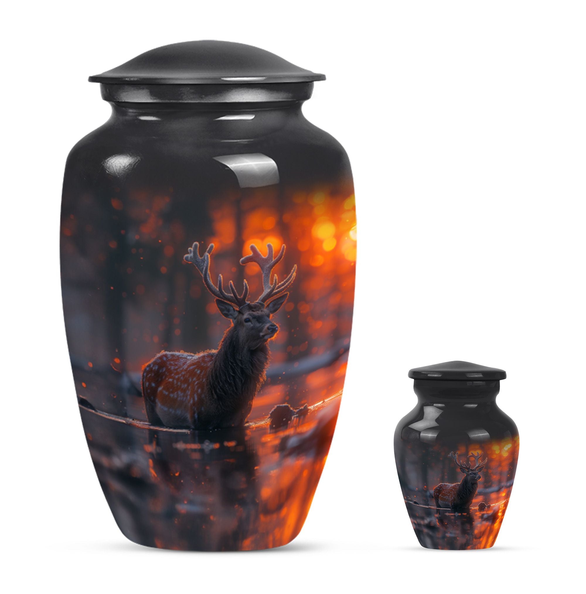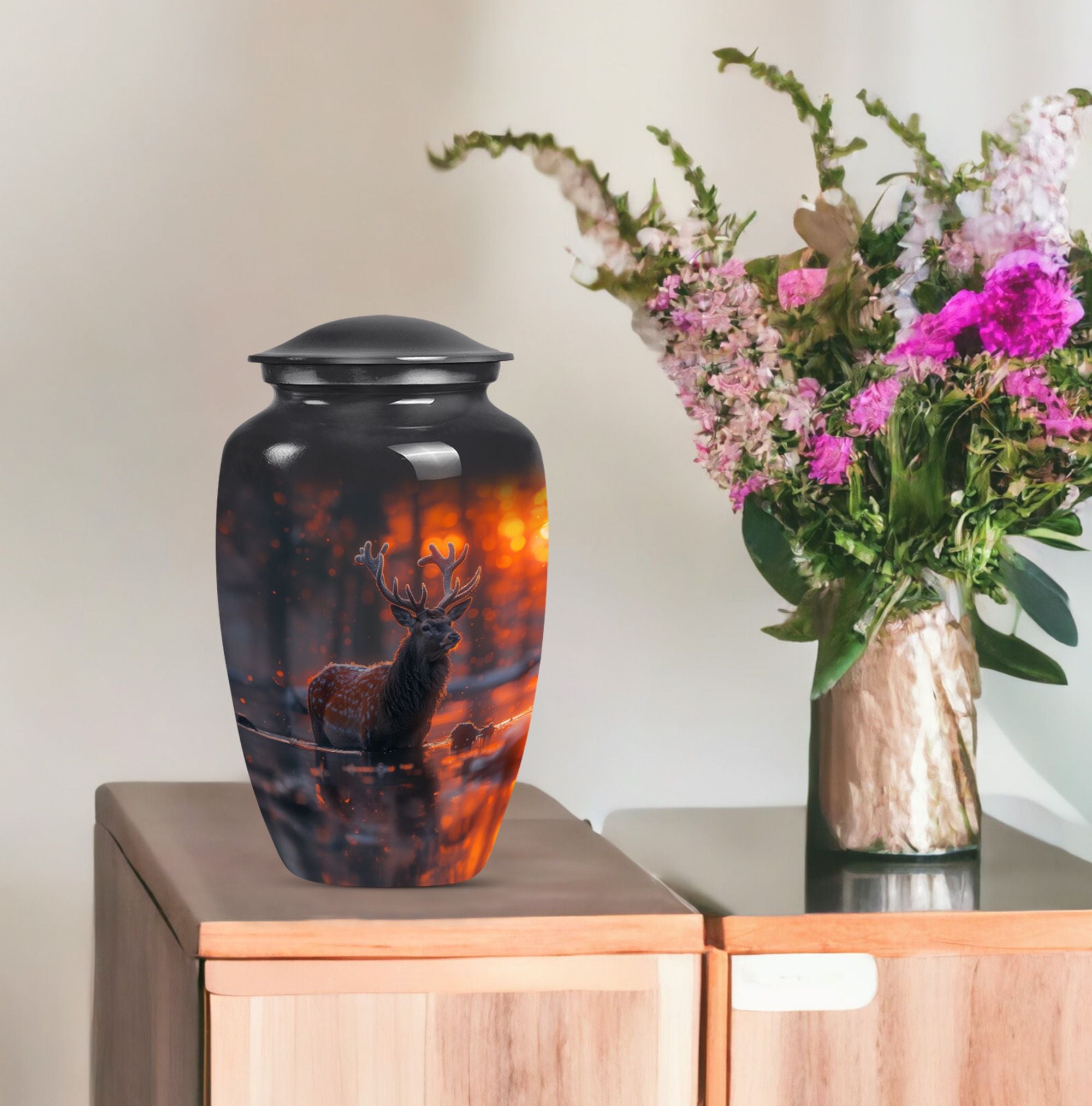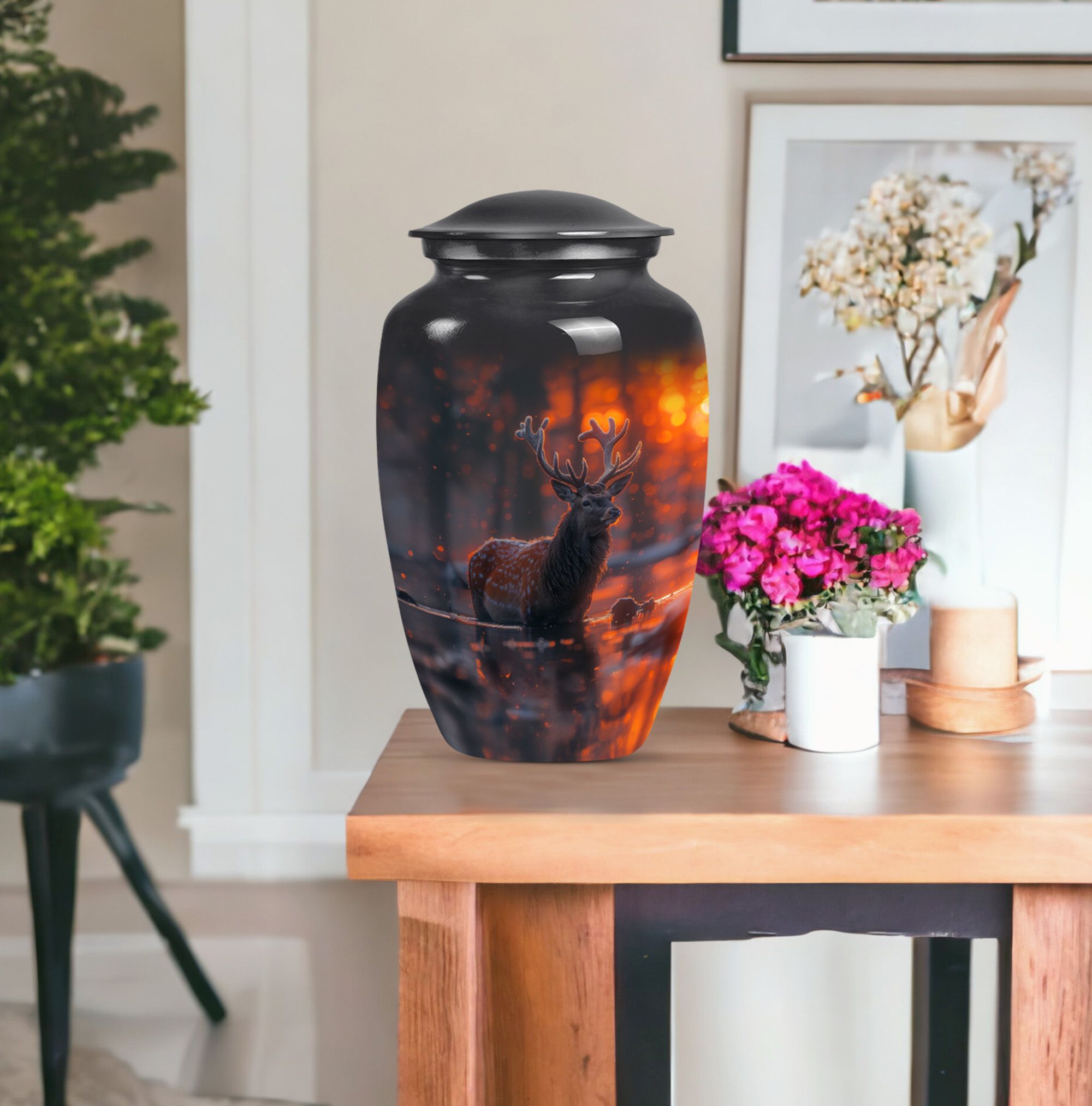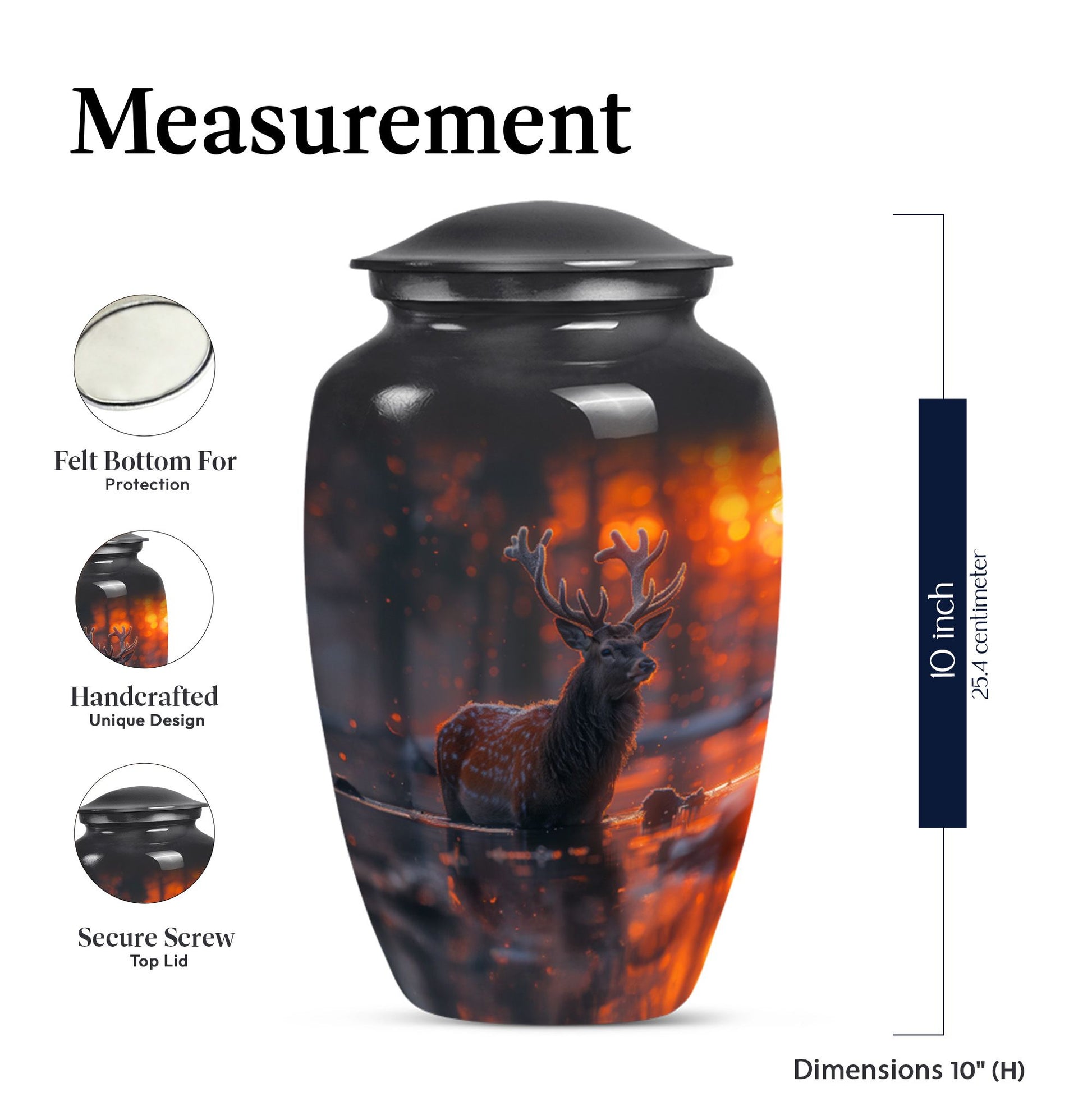 Treasure the memory of your loved one with this unique 'Gramophone' cremation urn. An artistic embodiment of spiritual beliefs and convictions. Its 10 inches in height and a capacity of 200 cubic inches, this large urn is ideal for containing cremation remains. Skillfully crafted from premium Aluminium, this deer urn weighs just 3.3 pounds - easy to transport or relocate as per your wishes. The package includes a velvet pouch for containment of ashes, complementing the overall quality of this cremation monument. Not just an urn, it's an epitome of remembrance that can also be personalized; engrave your loved one's name onto it to create a long-lasting memorial. Suitable both as cremation urns for men and funeral urns for women. This timeless design merges durability, refinement and tranquility; perfect piece for remembrance and celebration of a life lived.