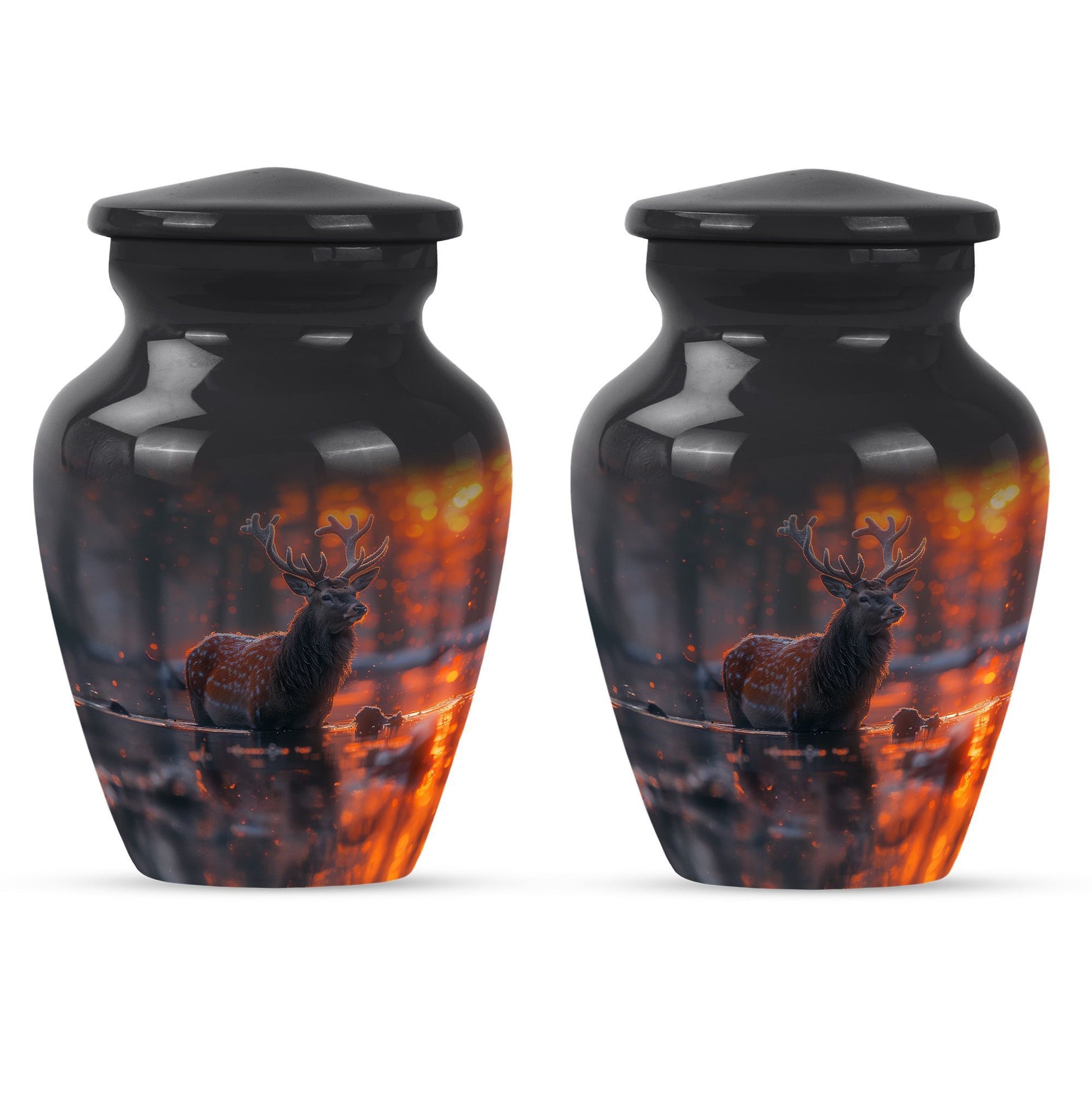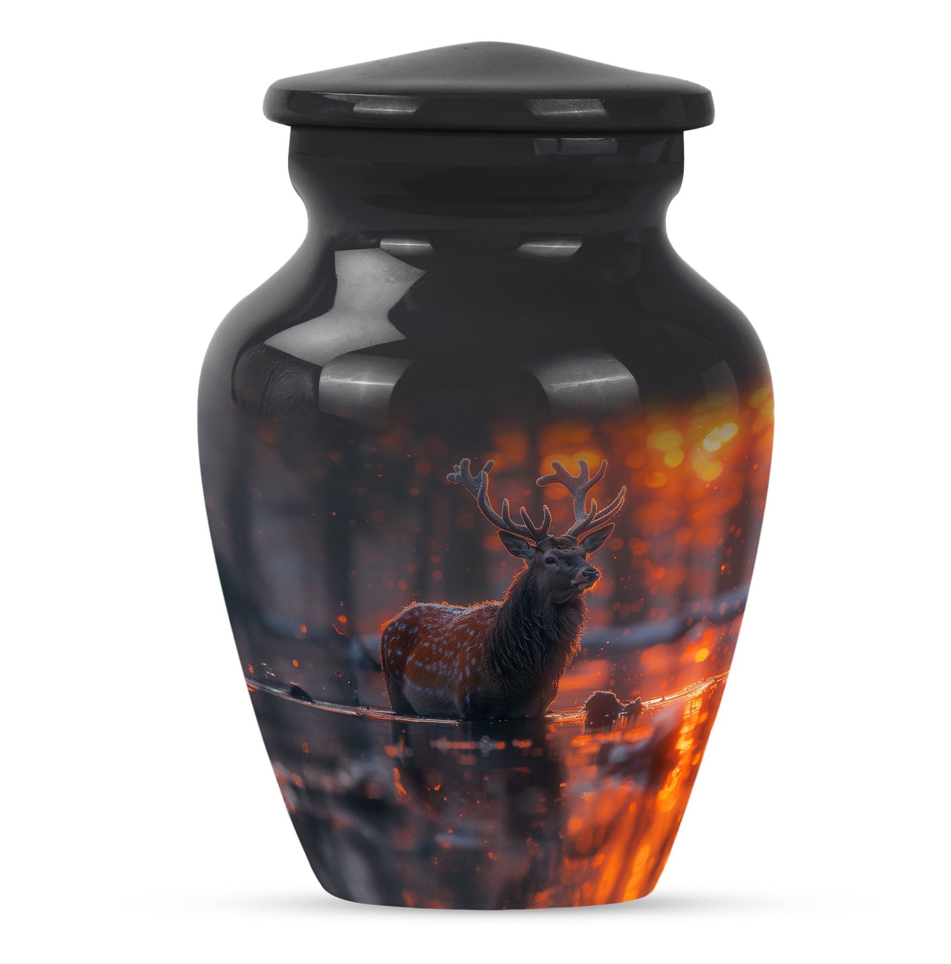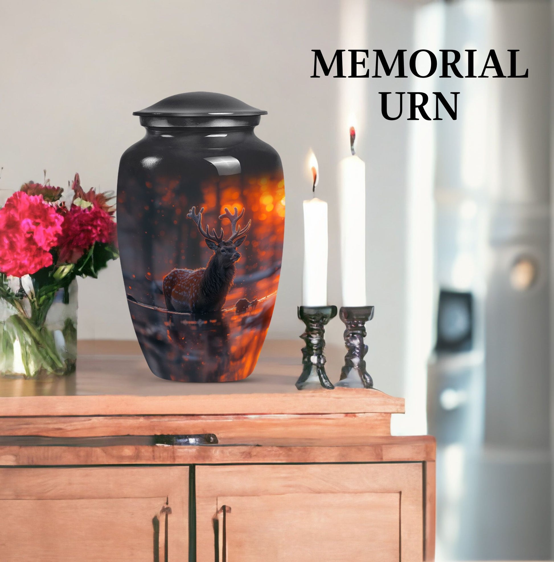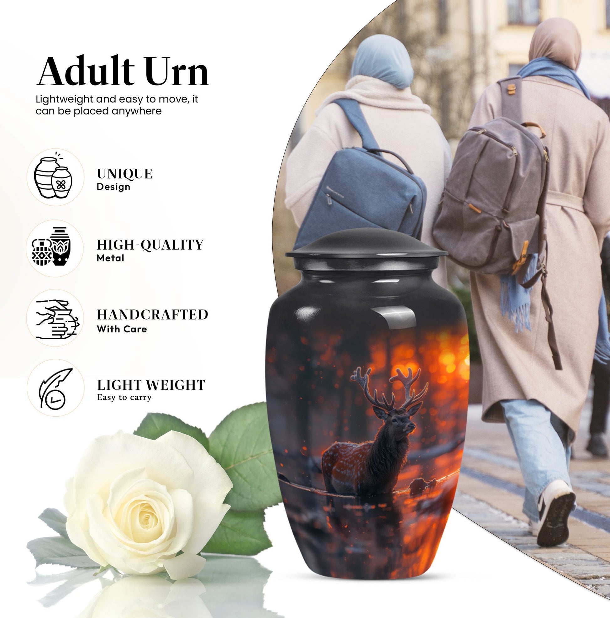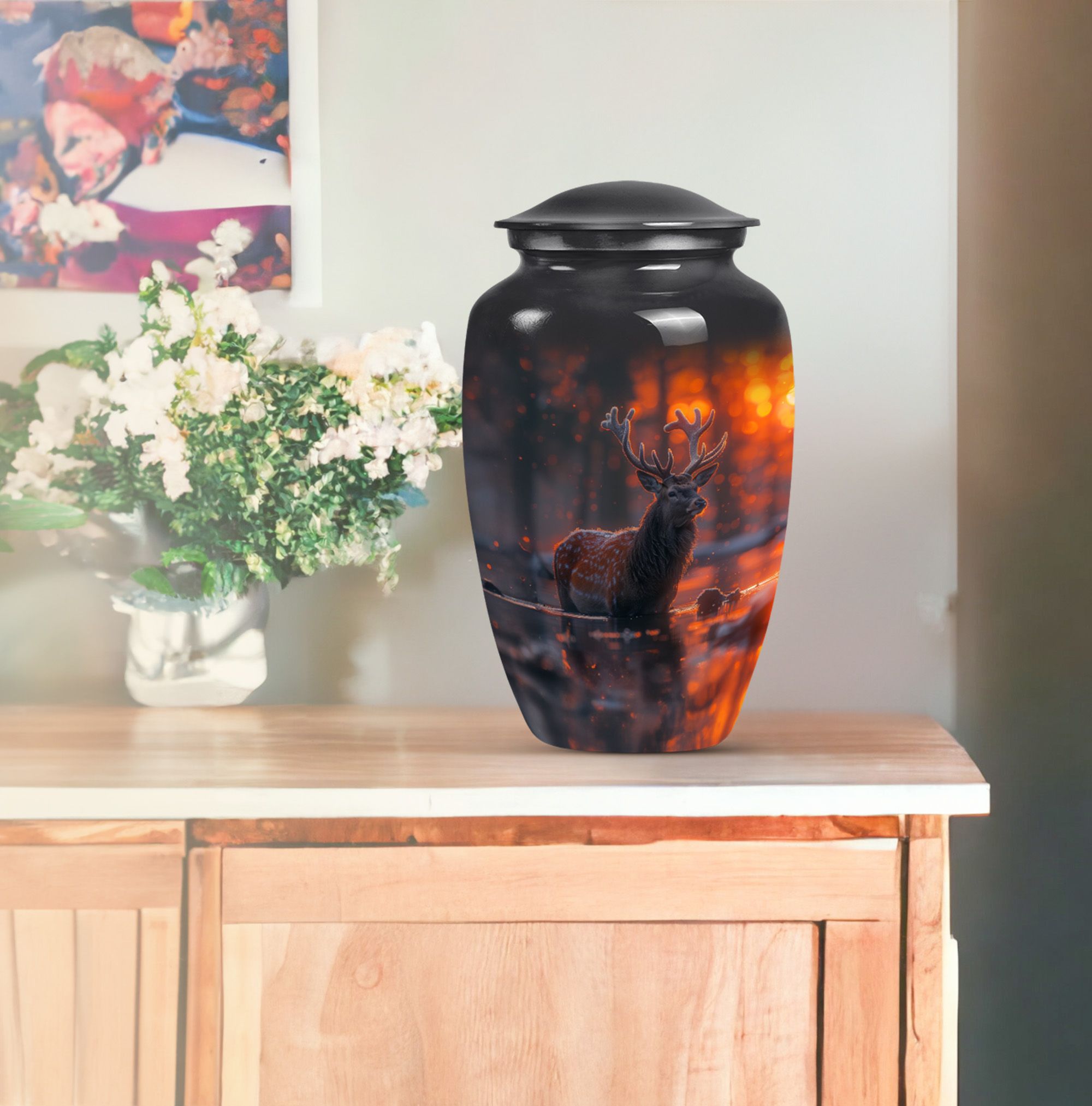 Treasure the memory of your loved one with this unique 'Gramophone' cremation urn. An artistic embodiment of spiritual beliefs and convictions. Its 10 inches in height and a capacity of 200 cubic inches, this large urn is ideal for containing cremation remains. Skillfully crafted from premium Aluminium, this deer urn weighs just 3.3 pounds - easy to transport or relocate as per your wishes. The package includes a velvet pouch for containment of ashes, complementing the overall quality of this cremation monument. Not just an urn, it's an epitome of remembrance that can also be personalized; engrave your loved one's name onto it to create a long-lasting memorial. Suitable both as cremation urns for men and funeral urns for women. This timeless design merges durability, refinement and tranquility; perfect piece for remembrance and celebration of a life lived.