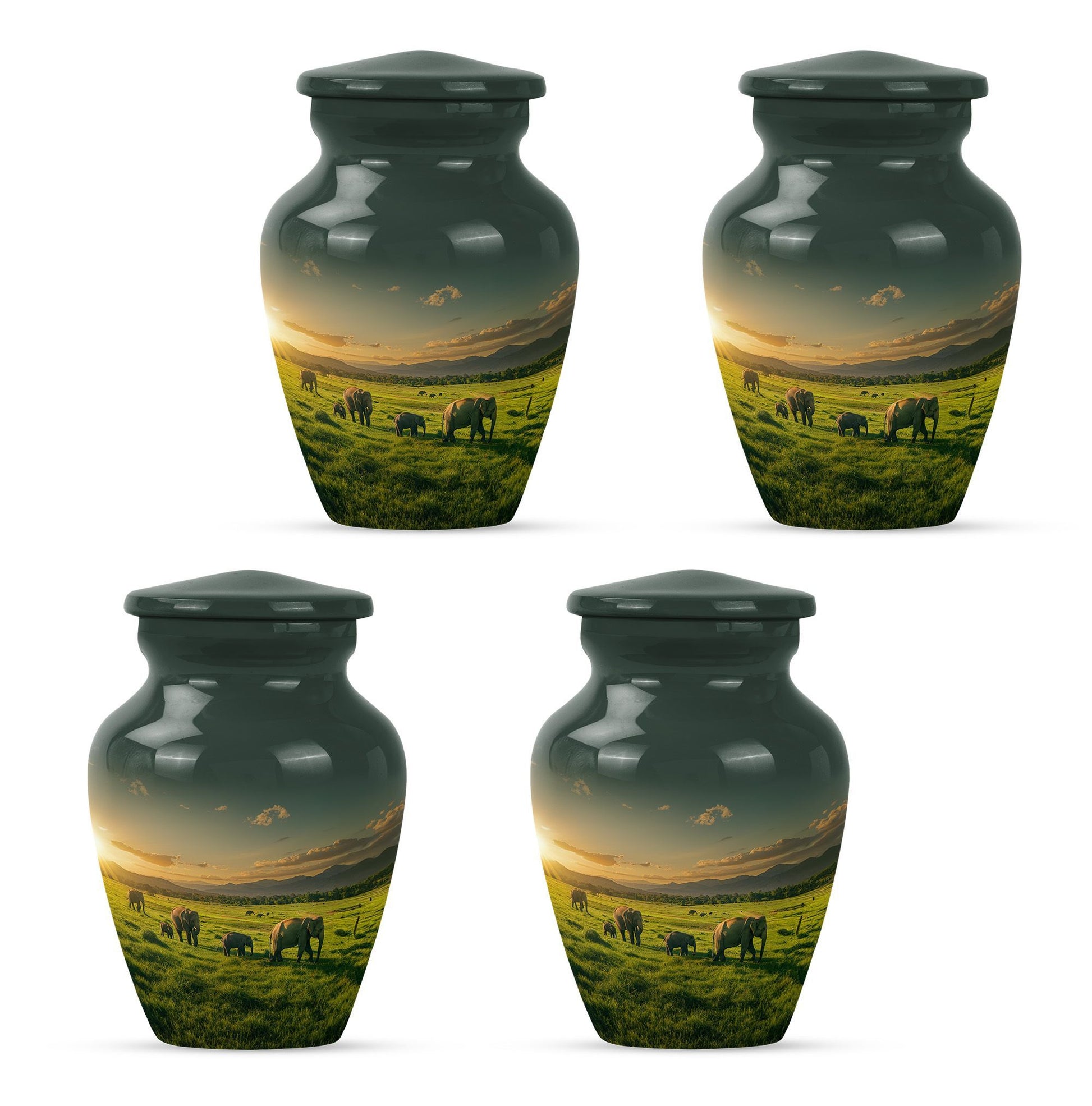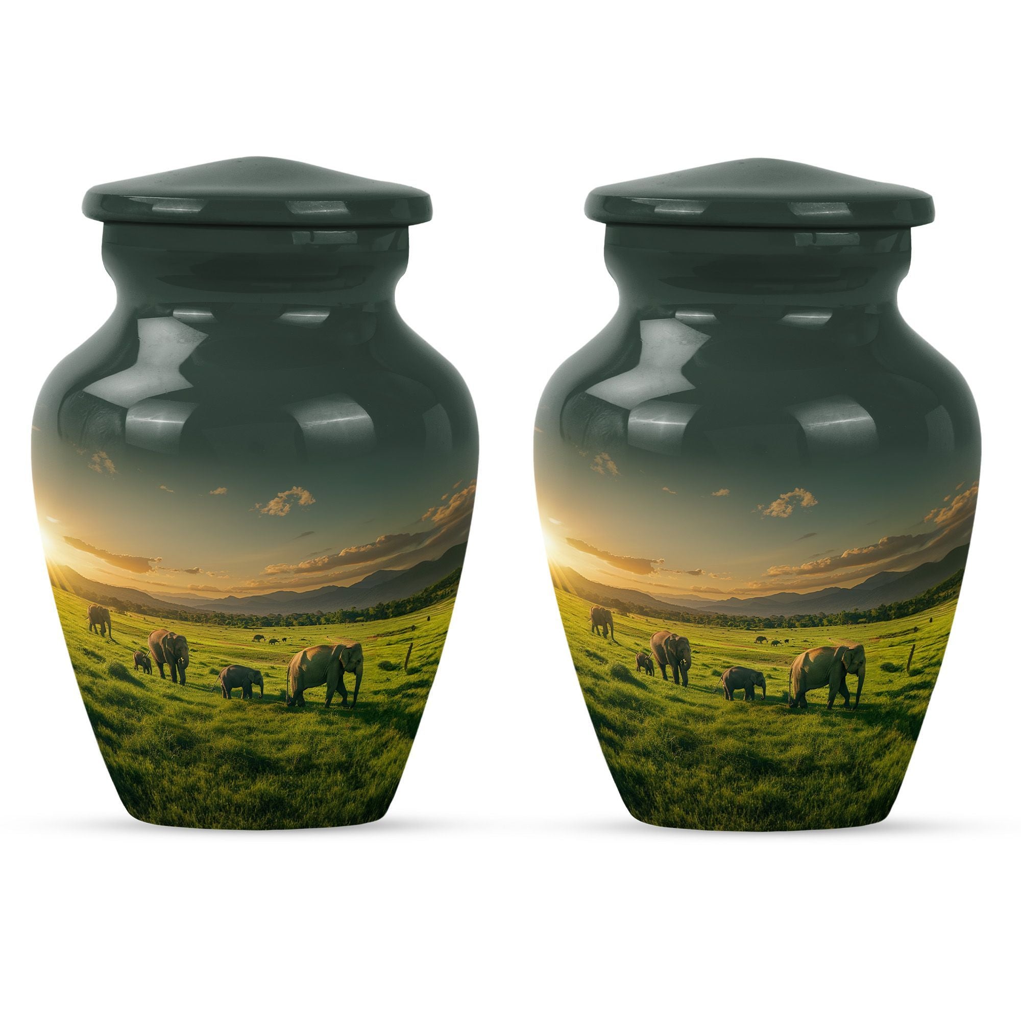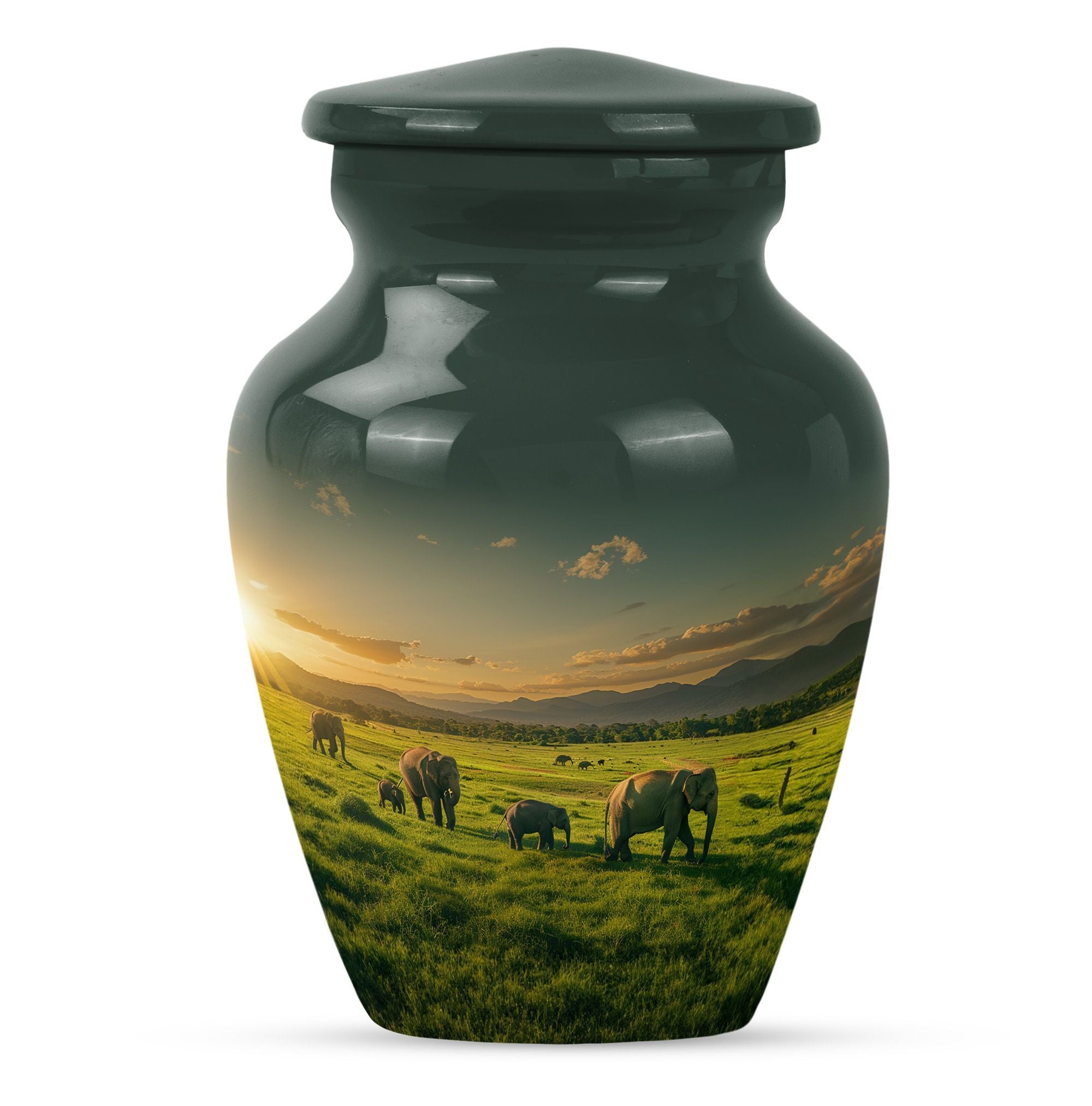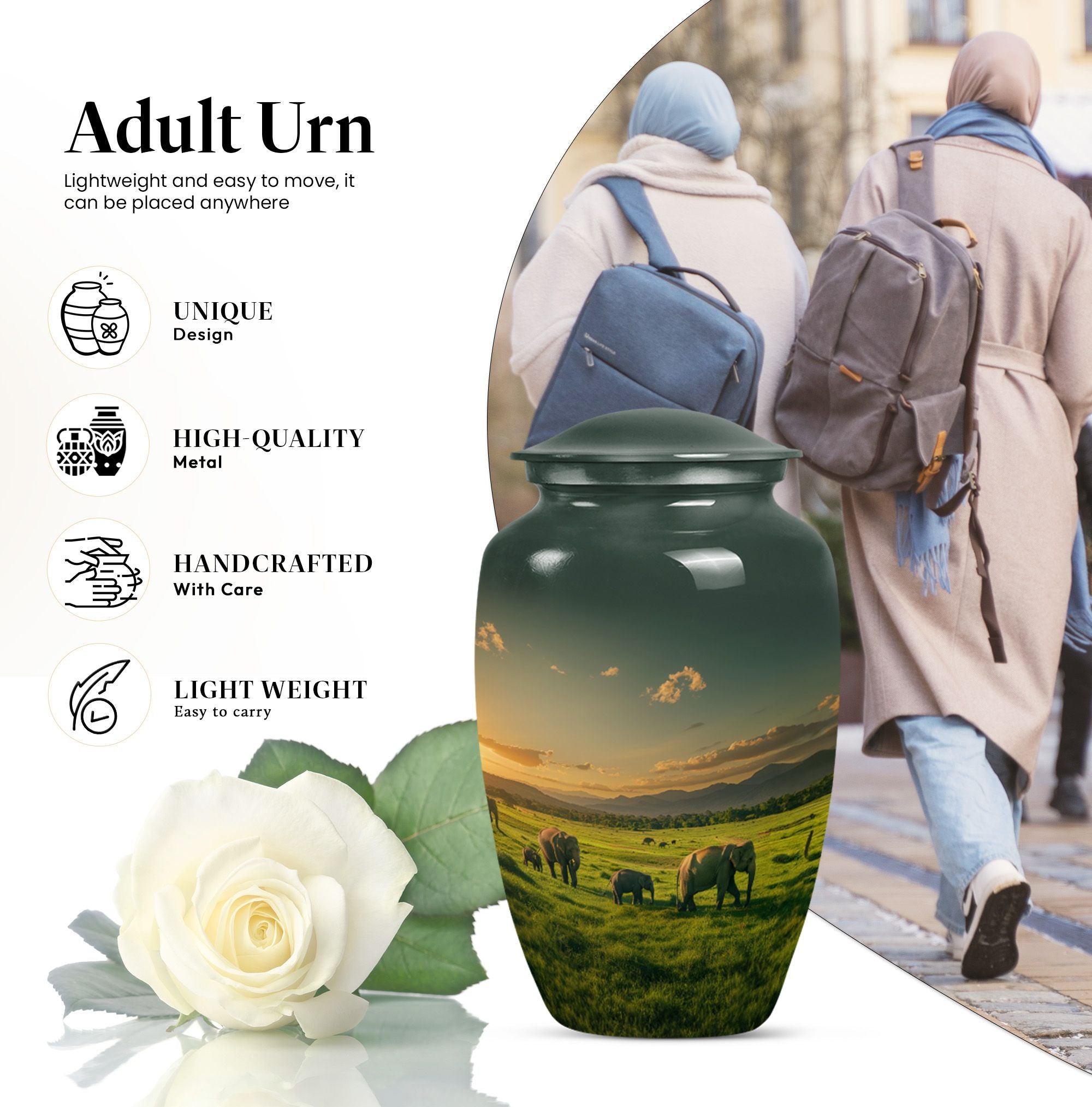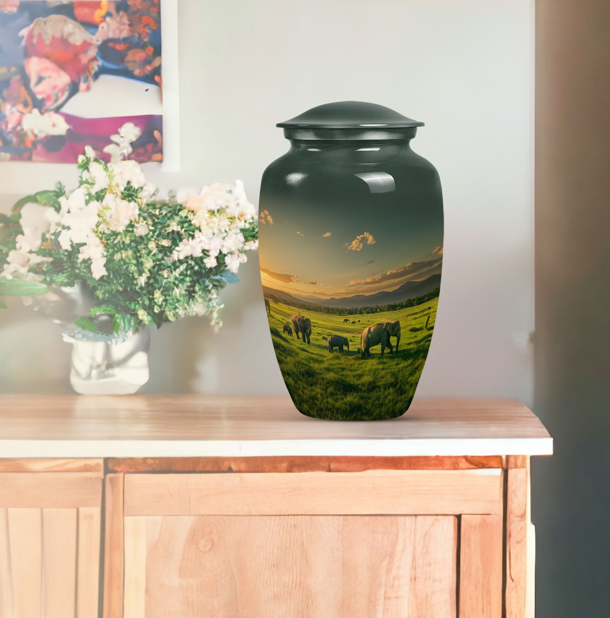The Guardian Elephant Family Large Cremation Memorial Urn is a beautifully crafted tribute designed to honor the memory of your loved one with dignity and grace. This urn features an intricate design of a protective elephant family, symbolizing strength, loyalty, and eternal love. Made from high-quality materials, it offers a durable and secure resting place for the ashes of an adult. The large capacity ensures ample space, while the detailed artistry of the elephant family adds a touch of elegance and meaning to any memorial setting. This urn serves as a lasting tribute, providing comfort and peace as you cherish the memories of your loved one.