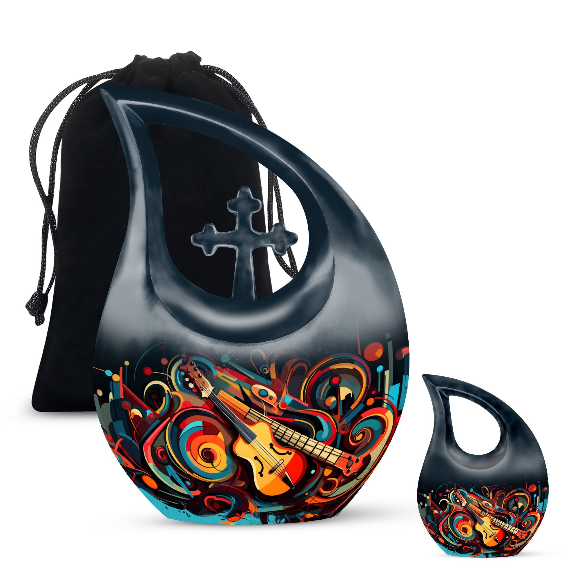 Crafted from durable aluminium, this urn features expressive violin-themed artwork that symbolizes harmony, love, and cherished memories. Its polished finish makes it a beautiful choice for those looking for urns for adult male dad, urns for human ashes adult female mom, or dignified urns for human ashes adult male burial. The secure screw-top lid protects the ashes, while the 10-inch size offers ample capacity for memorial display at home, burial, or service use. Matching keepsake options, such as an urn for ashes adult male small keepsake or small urns for human ashes adult female, offer meaningful ways to share or keep a portion of ashes close.