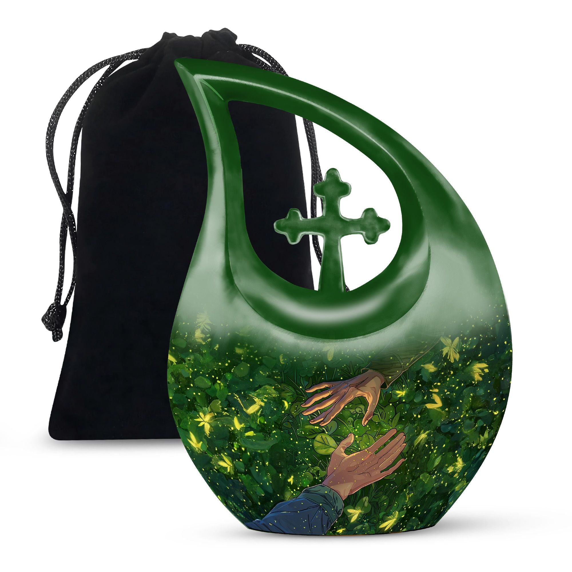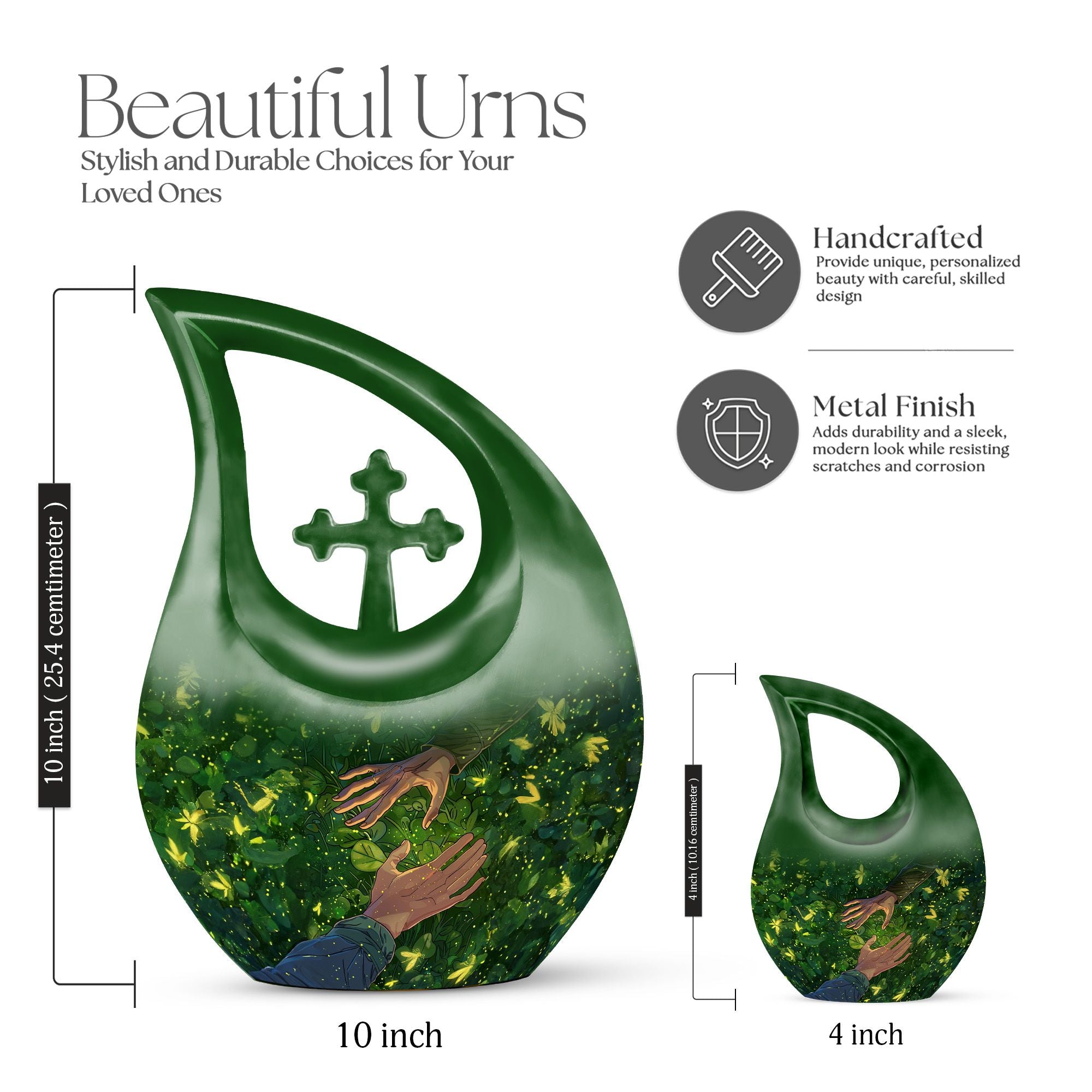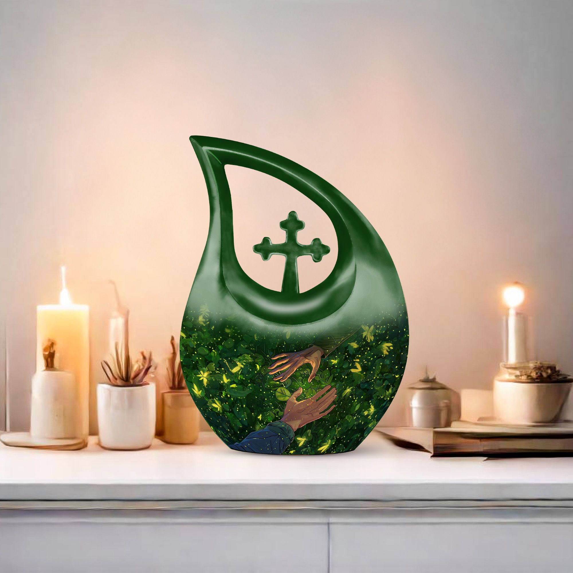 Made from durable aluminum, this urn features a symbolic hand-themed motif representing care, protection, and everlasting connection. Its polished finish and spacious capacity make it ideal for those needing a cremation urn for human ashes adult, traditional cremation urns human, or a refined option suitable for home display or burial ceremonies. Families searching for elegant cremation urns for human ashes adult black or classic cremation urns adult human will appreciate the depth and beauty of this design. Matching keepsake pieces such as cremation urn for ashes small, cremation urns for adult ashes small, or additional urn adult cremation selections can also complement this full-size urn for shared remembrance.