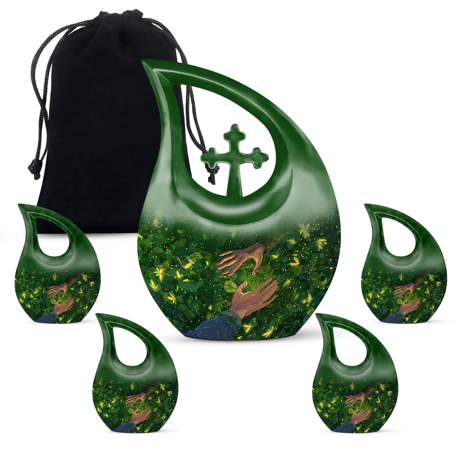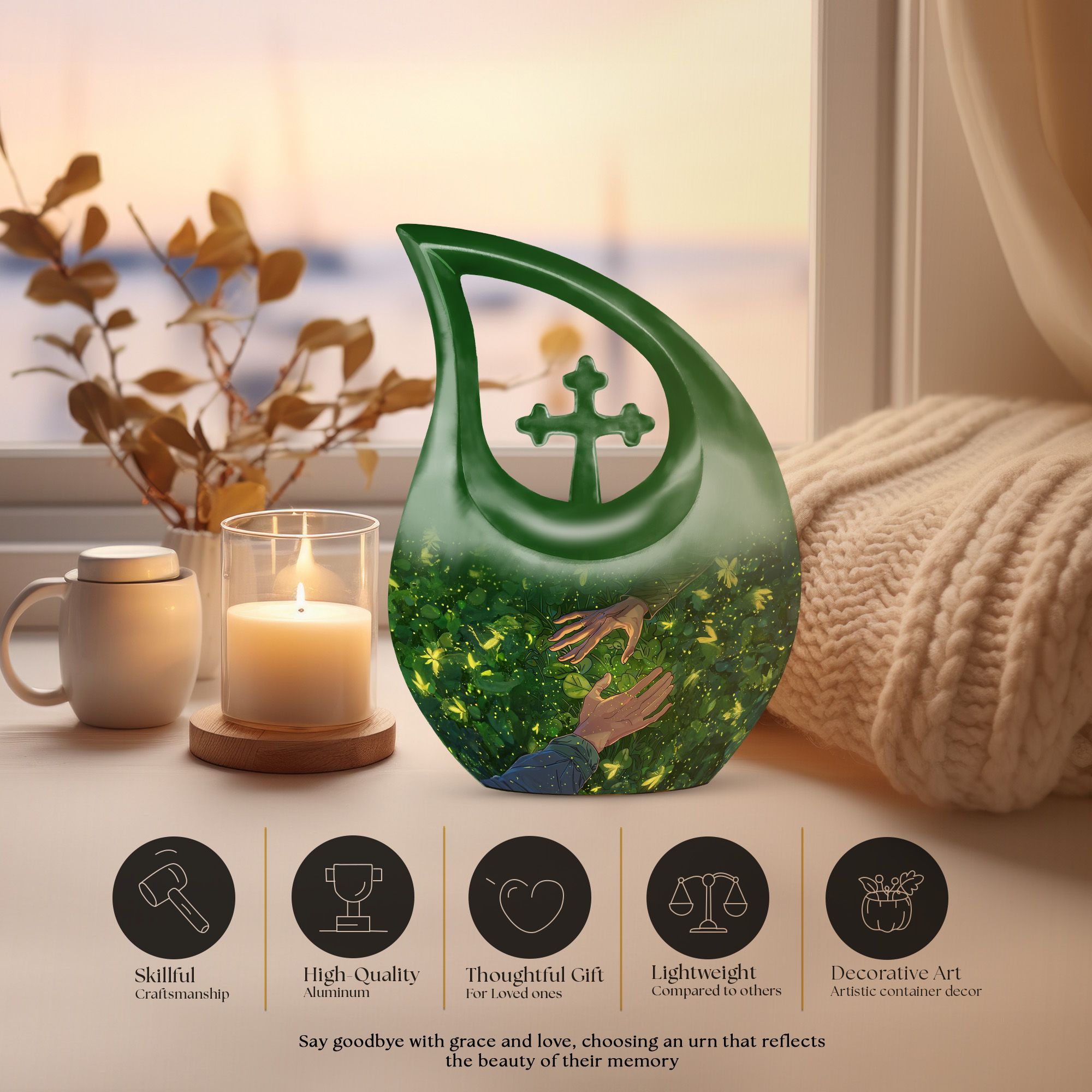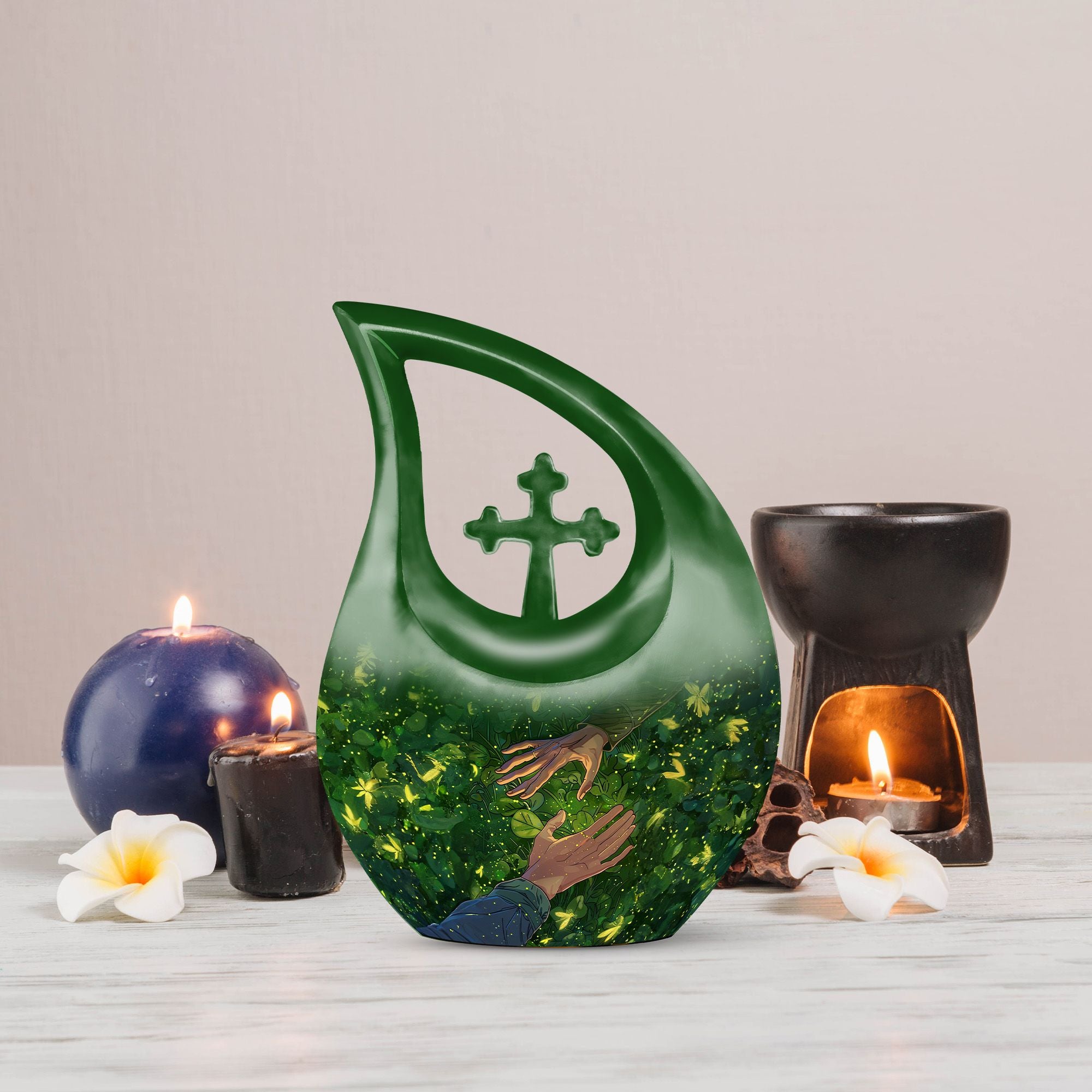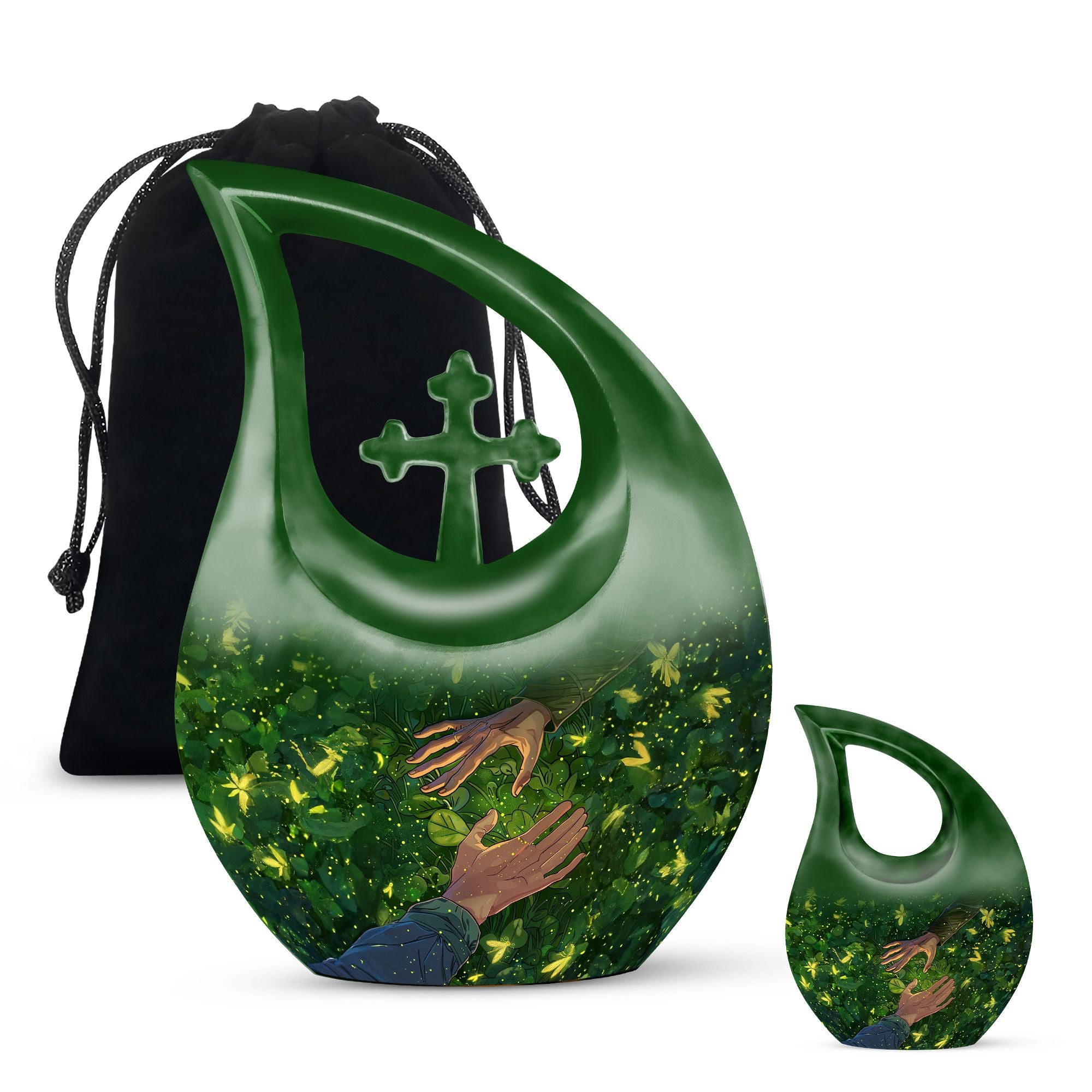 Made from durable aluminum, this urn features a symbolic hand-themed motif representing care, protection, and everlasting connection. Its polished finish and spacious capacity make it ideal for those needing a cremation urn for human ashes adult, traditional cremation urns human, or a refined option suitable for home display or burial ceremonies. Families searching for elegant cremation urns for human ashes adult black or classic cremation urns adult human will appreciate the depth and beauty of this design. Matching keepsake pieces such as cremation urn for ashes small, cremation urns for adult ashes small, or additional urn adult cremation selections can also complement this full-size urn for shared remembrance.