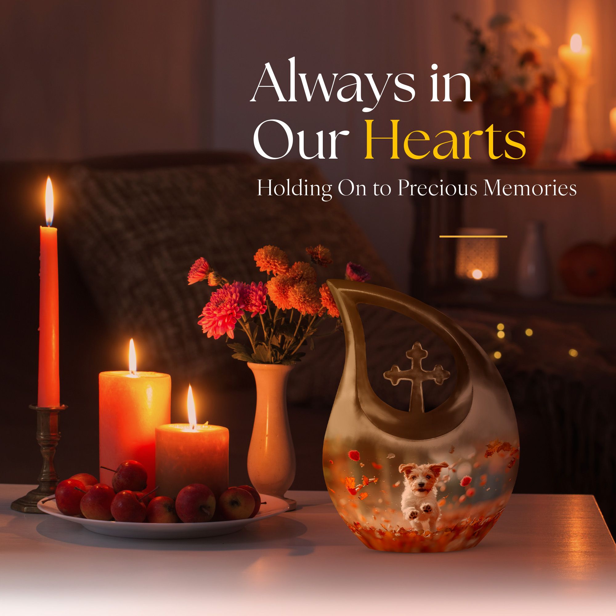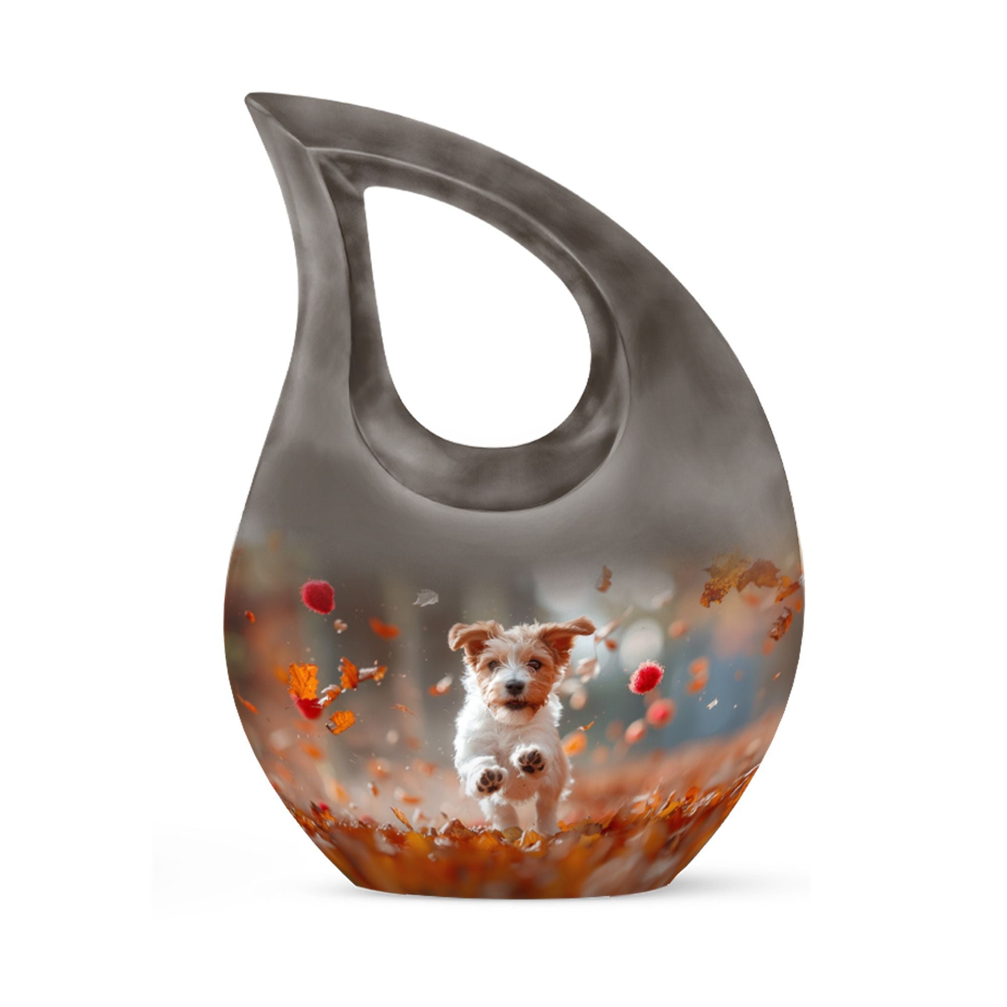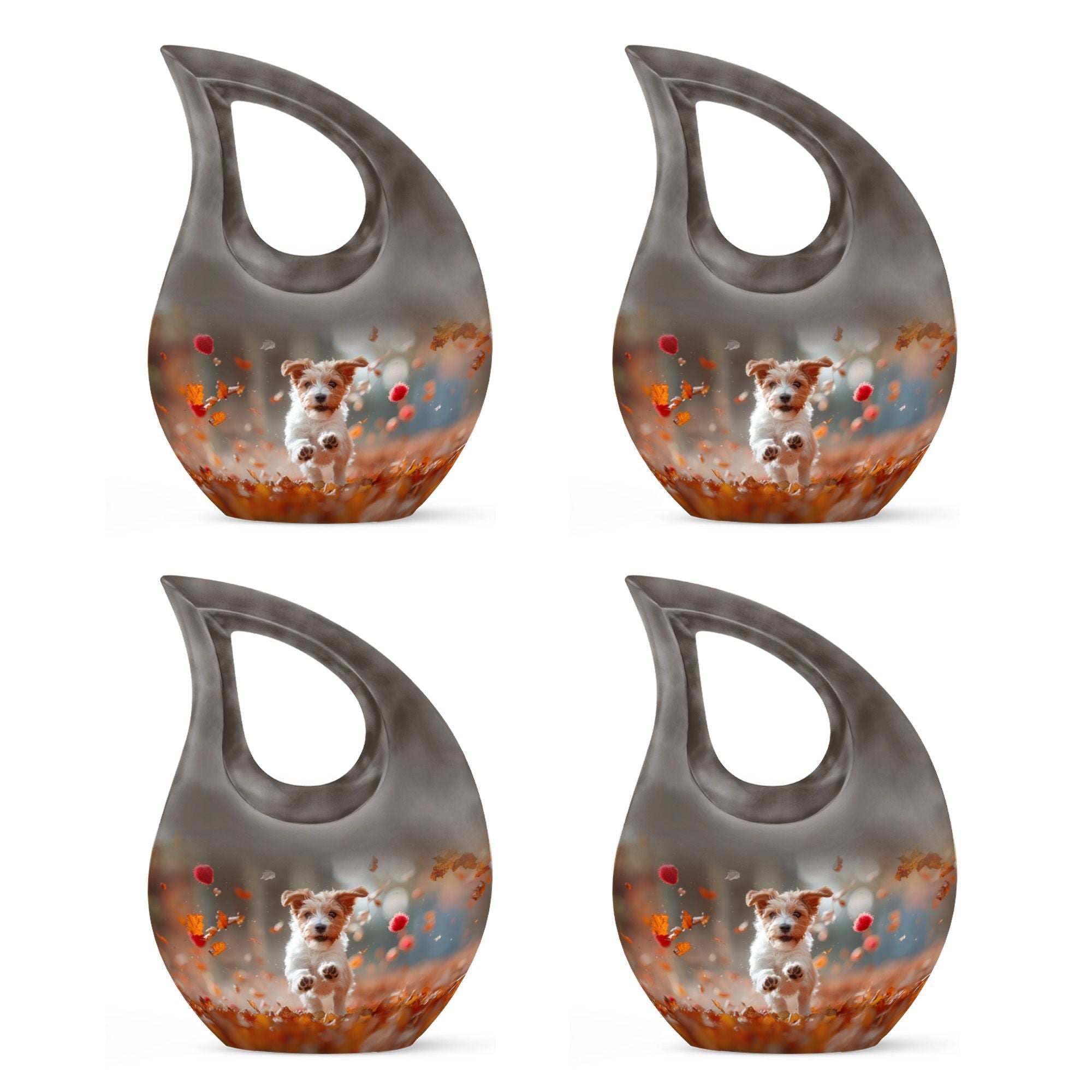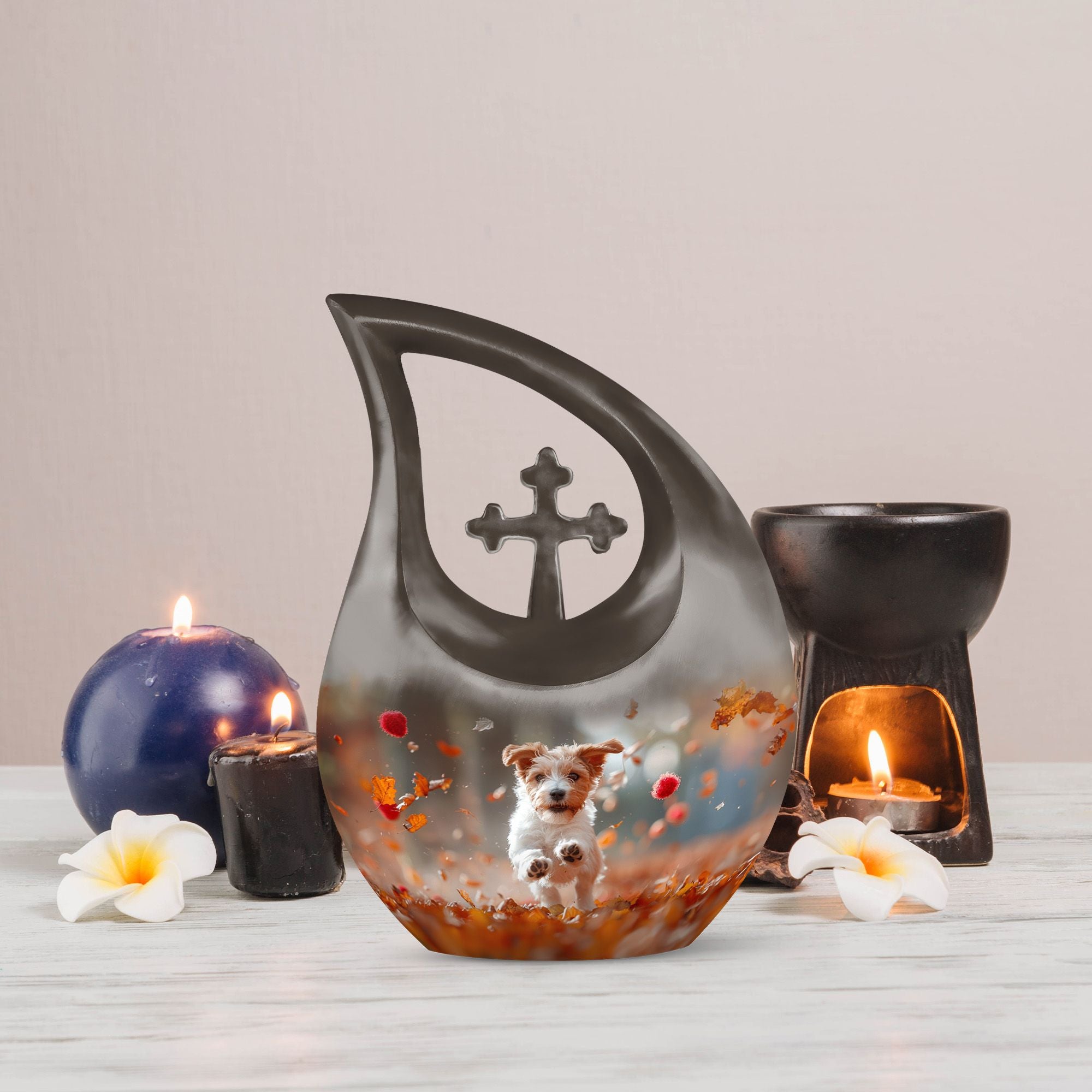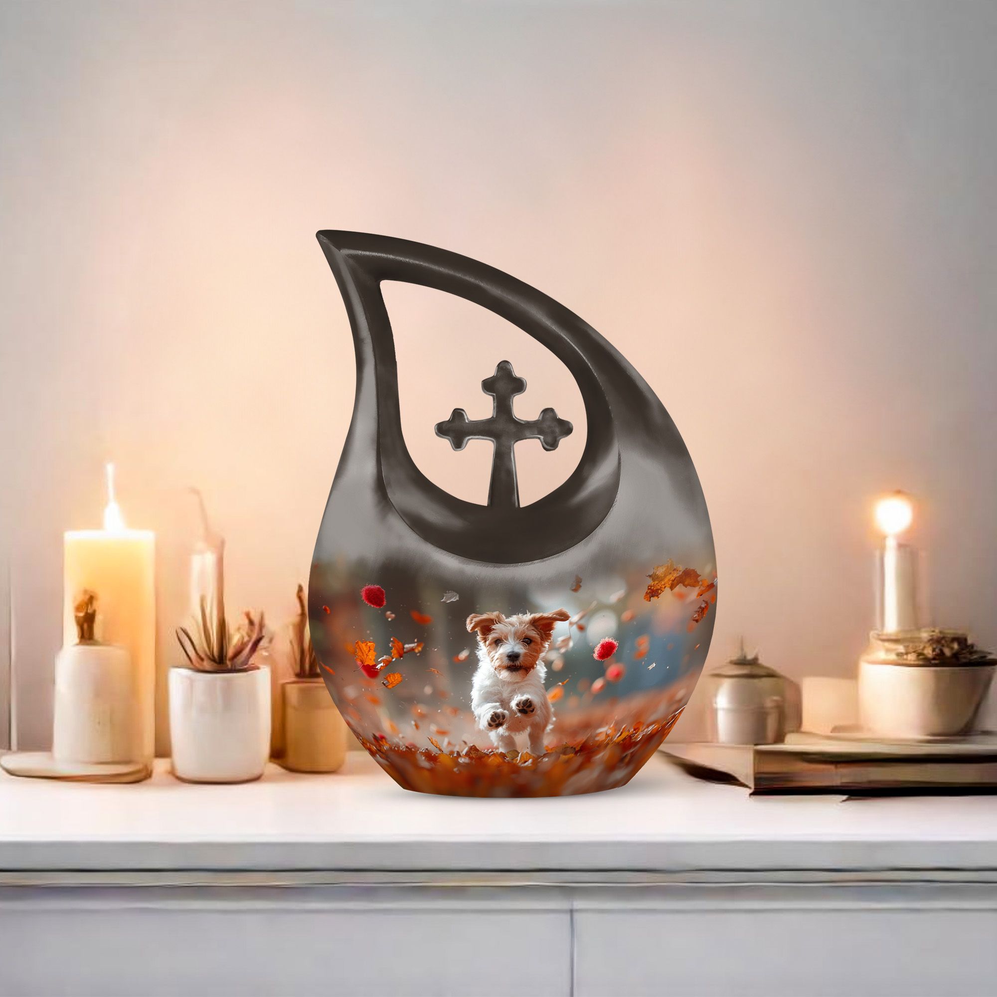 Solemn yet beautiful, the Harvest Pup Frolic Urn is an elegant solution for storing the ashes of your cherished ones. Crafted from durable aluminium, it has a weight of 3.3 pounds and stands 10 inches tall. Not just a mere repository, this urn invokes an essence of peace and remembrance with its Cross Drop design and Harvest Pup Frolic theme. Its size constitutes a generous capacity of 200 cubic inches, ample to accommodate the ashes of adults. The cremation urn comes with a plush velvet pouch for containment and thoughtful handling of the ashes. You can further personalize this urn by engraving names onto it, enhancing the intimacy of this precious keepsake. Ideal for those searching for 'Cremation Ash Vases', 'Personalized Urns', 'Decorative Urns For Ashes', or 'Containers For Ashes Of Loved Ones', the Harvest Pup Frolic Urn is a lasting tribute to your loved one's memory.