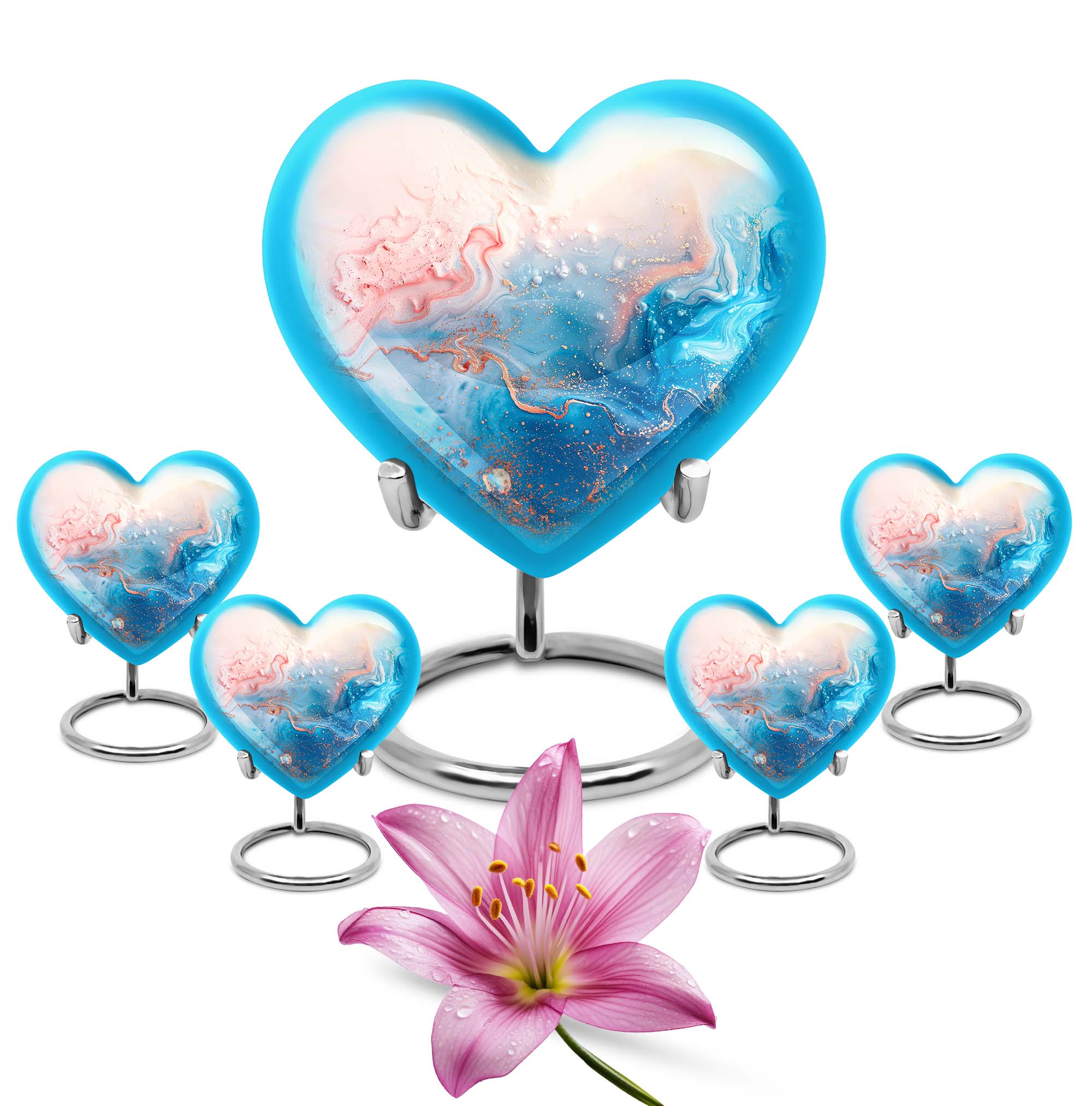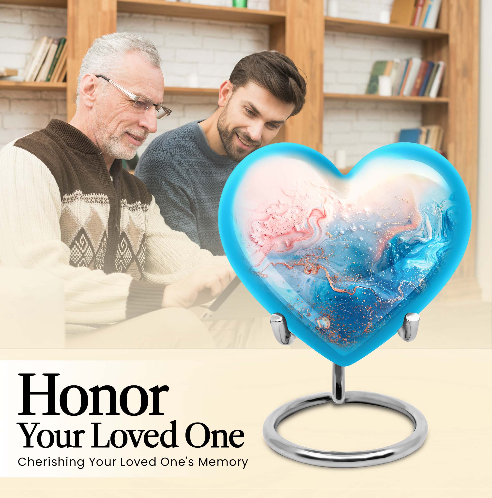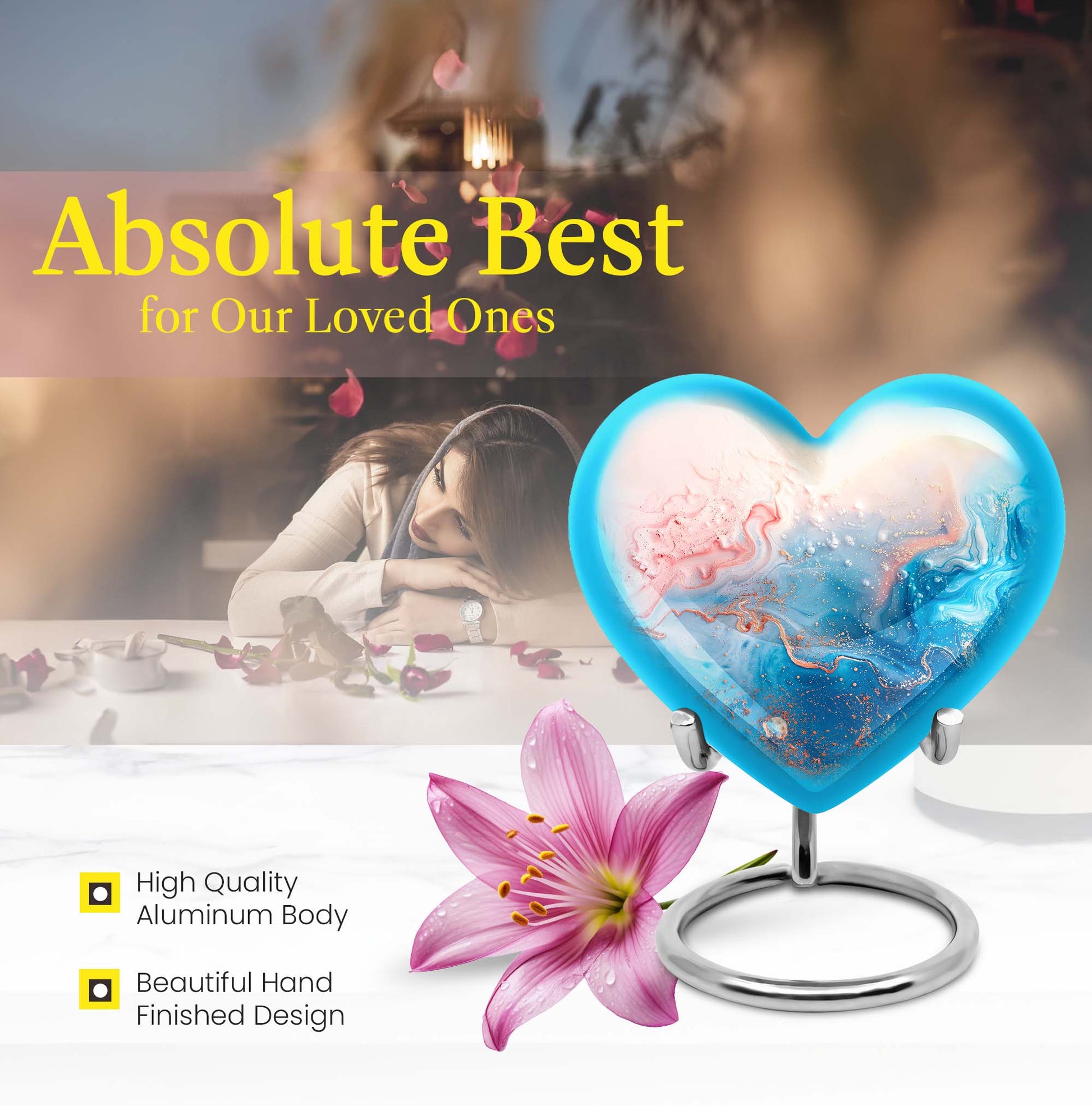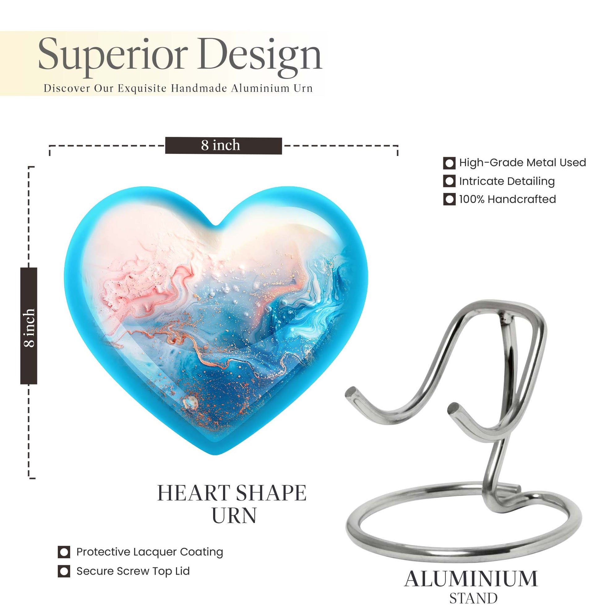 Gracefully remember your loved one with our unique Abstract Urn. Each 10-inch heart urn, delicately made from robust aluminium, exudes an eloquent simplicity, presenting an abstract theme that signifies eternal love. Weighing 3.3 pounds, this large memorial burial urn comfortably accommodates 200 cubic inches, ensuring ample space for human ashes. We provide a soft velvet pouch for secure containment of ashes, adding a tasteful touch to this important gesture. Make your tribute even more special by personalizing it. You can engrave names onto the urn, adding a heartfelt layer of intimacy. Never forgetting the significance of your remembrance, we've created a timeless piece to honor those who hold a special place in your heart. A universally appealing design, sought by adults and seniors alike, our memorial urns subtly voice a poignant message of longing and respect. Practical yet meaningful, this work of art is the perfect tribute to celebrate the immeasurable life lived.