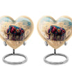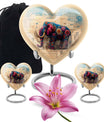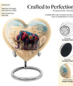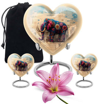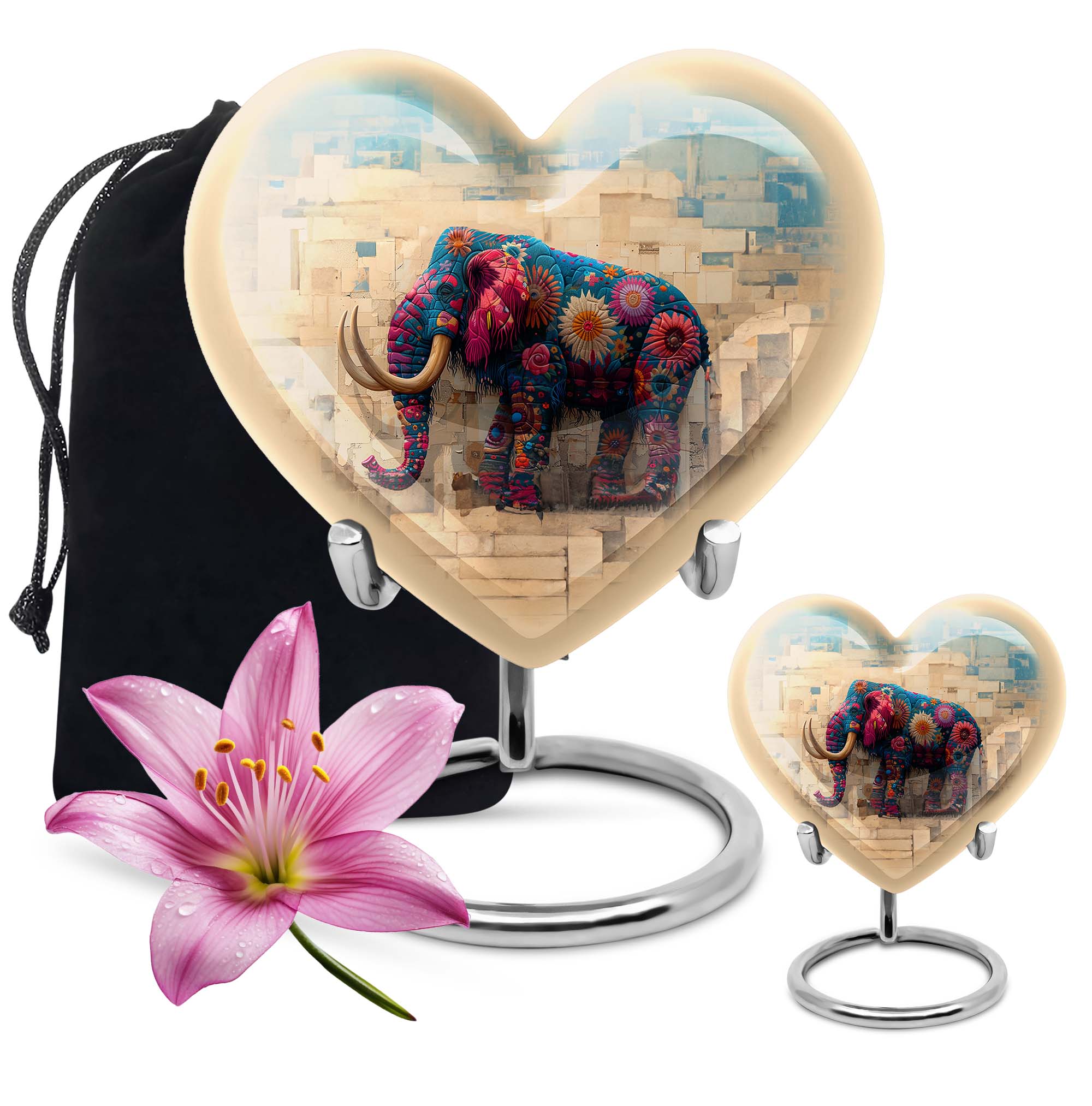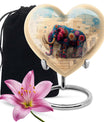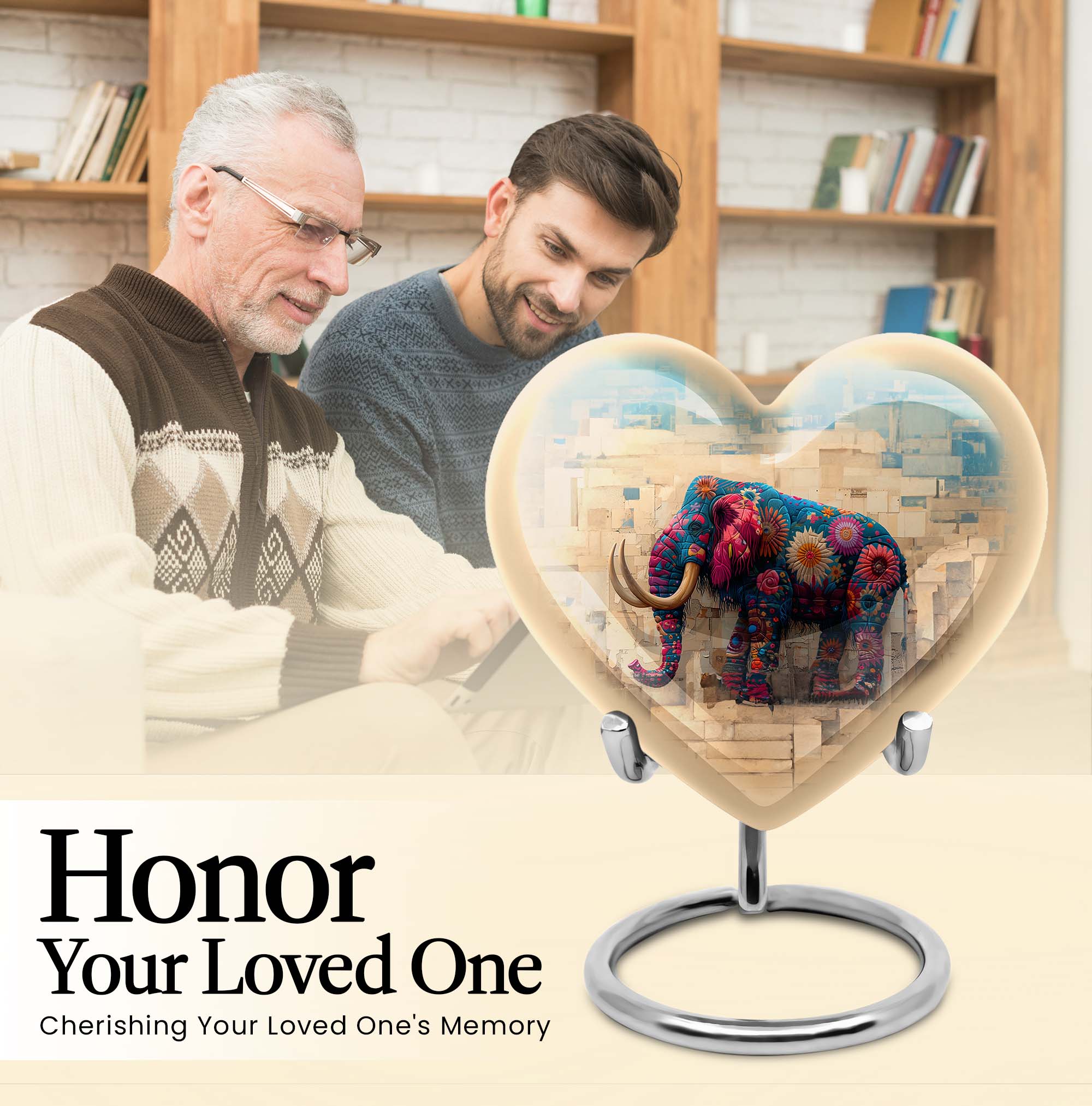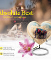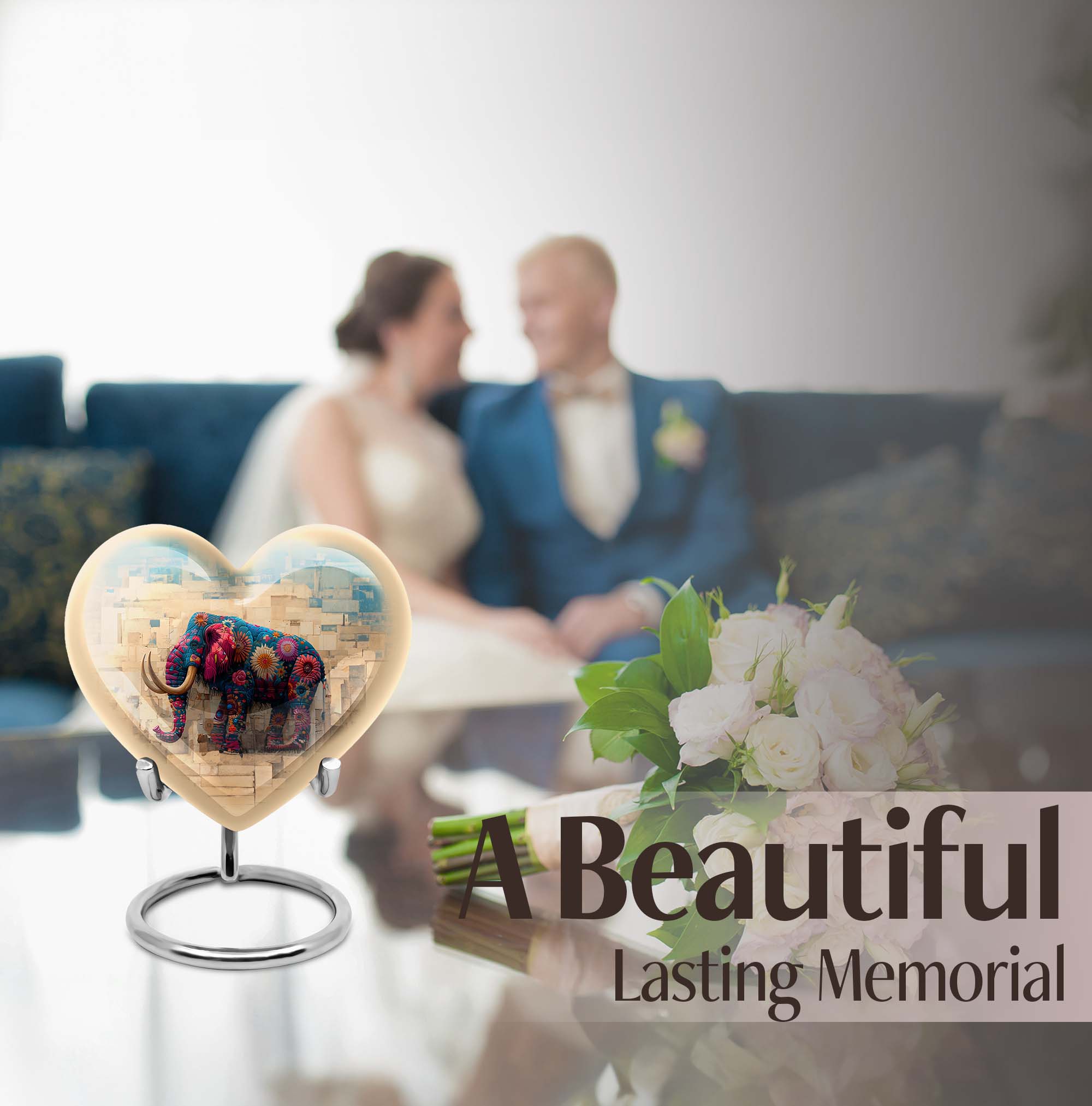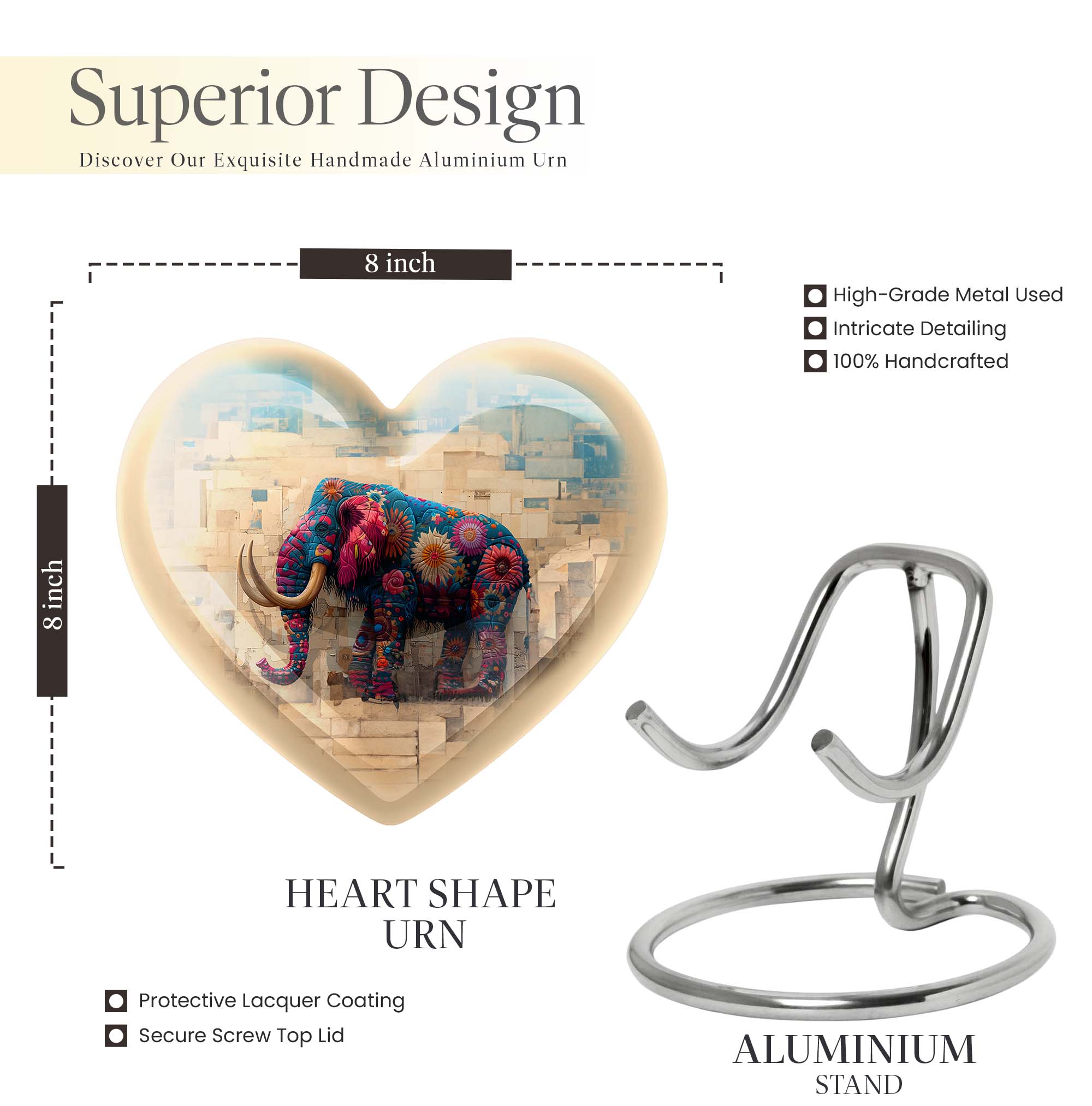 Pay your respects in a dignified and heartfelt way, with our premium-quality, large Wolf Howling themed mammoth urn. Made from robust aluminum, this burial medium-sized urn is perfect to store up to 200 cubic inches of precious remains comfortably. Height measures at a convenient 10 inches and the urn's total weight clocks in at 3.3 pounds, resulting in a substantial yet manageable vessel. Versatile in nature, this cremation urn expands its appeal not just to women, but also suits as ash adult urn for ashes. This Artistic urn uniquely integrates the concept of 'Heart Urn' into its design, providing a tender touch to an otherwise somber object. Metal urns are proven to stand the test of time when buried in the ground, and this particular urn reinforces that reliability. You have the added option to personalize the urn with engraved names on outer surface, fostering a deep connection with your beloved. In addition, a velvet pouch is provided for secure containment of ashes. So, remember your loved ones in your own special way with our high-quality, memorial urns.