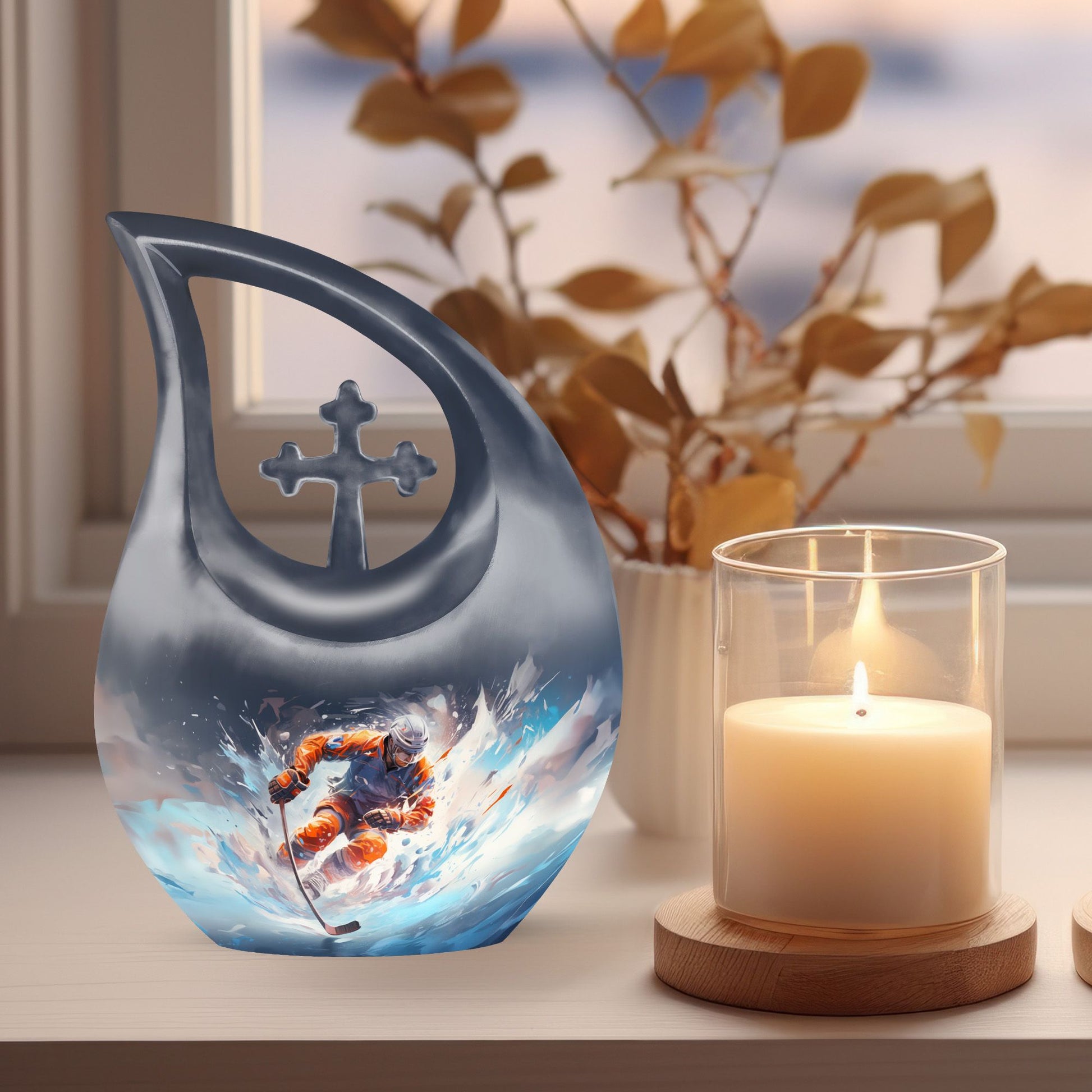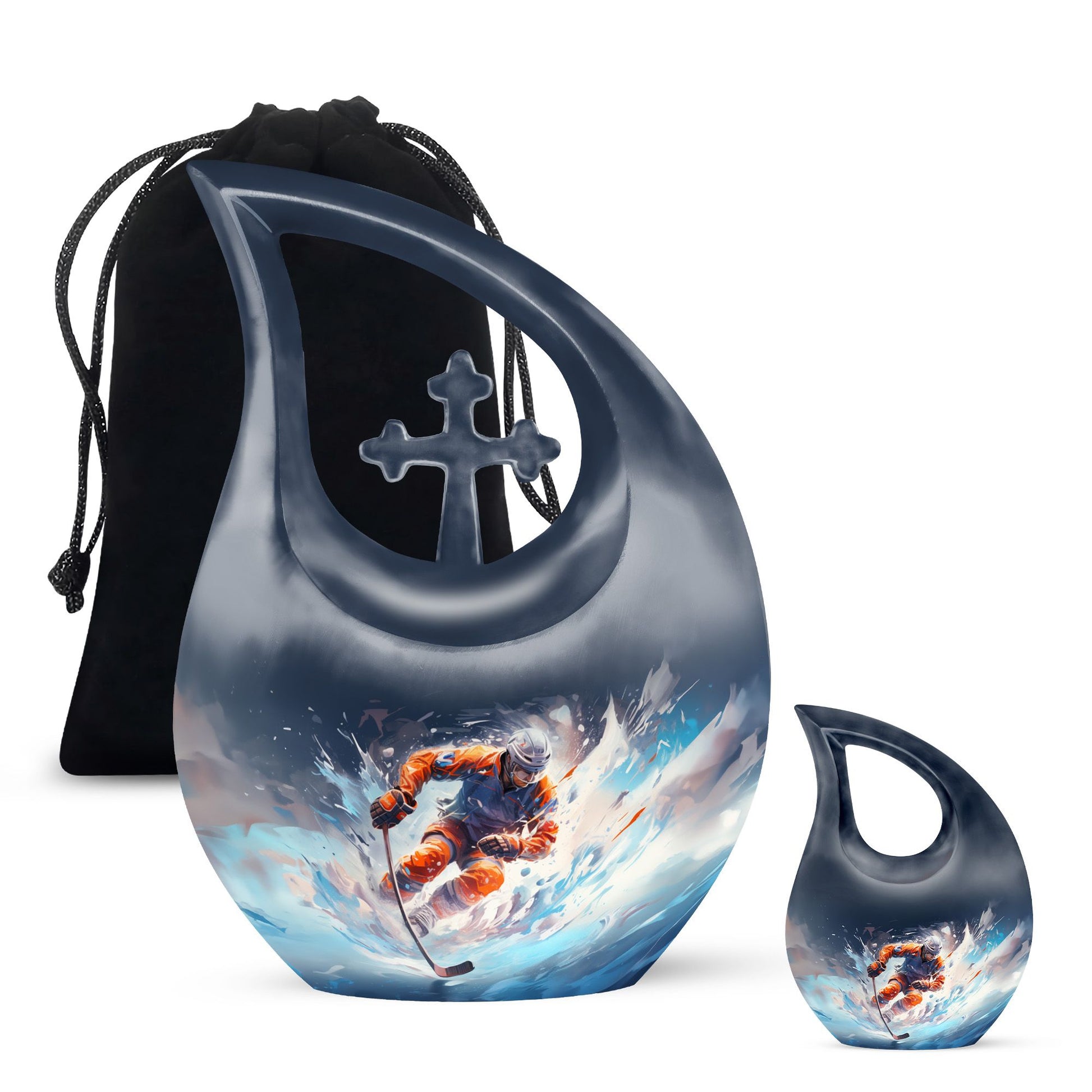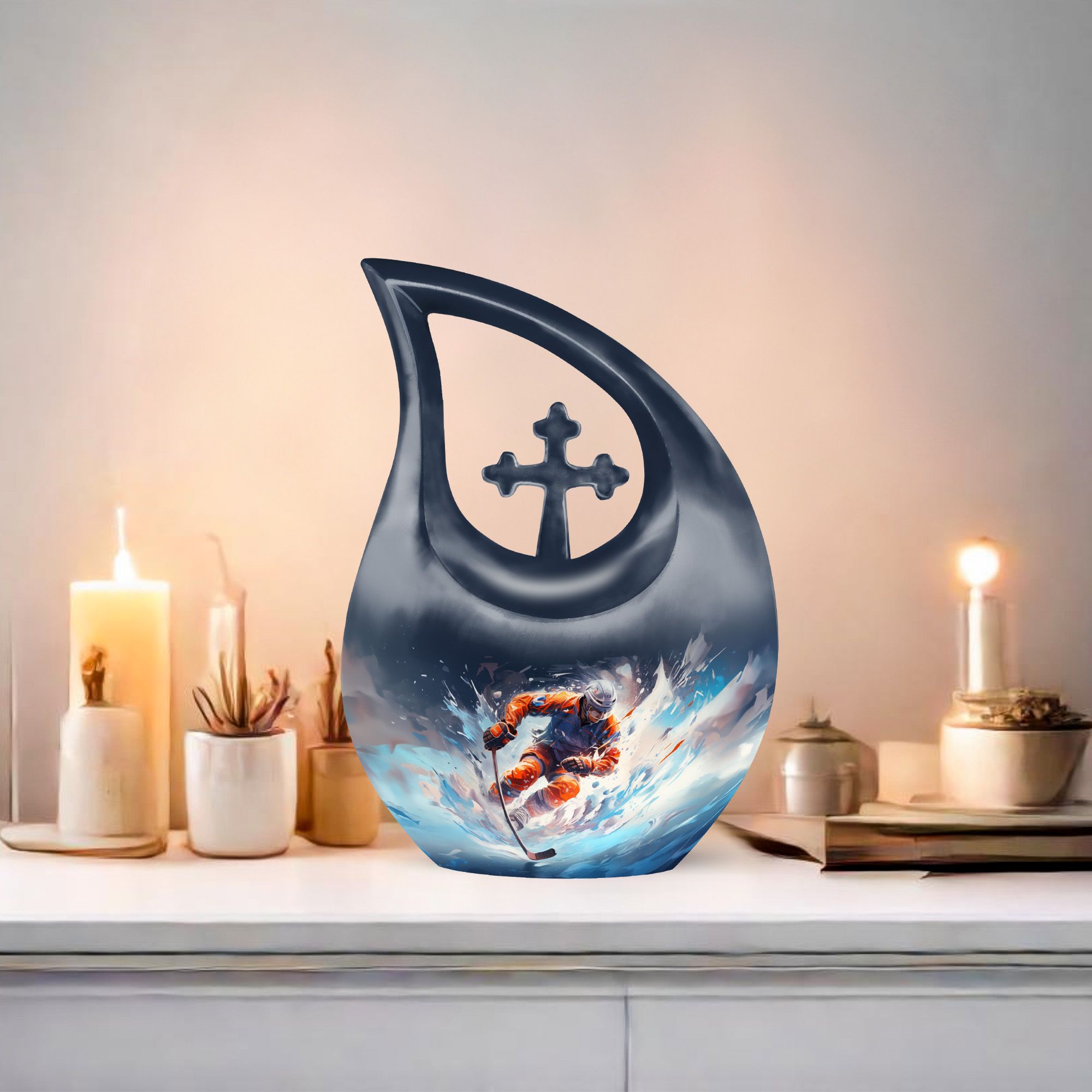A powerful and meaningful tribute, this Ice Hockey Urn for Cremation Remains honors the passion, courage, and spirit of a loved one who cherished the game. Designed as a large and keepsake urn combo set, it allows families to keep a unified memorial while also sharing cherished memories through matching keepsake pieces. Perfect for those seeking a symbolic human ashes keepsake with a bold sports theme.