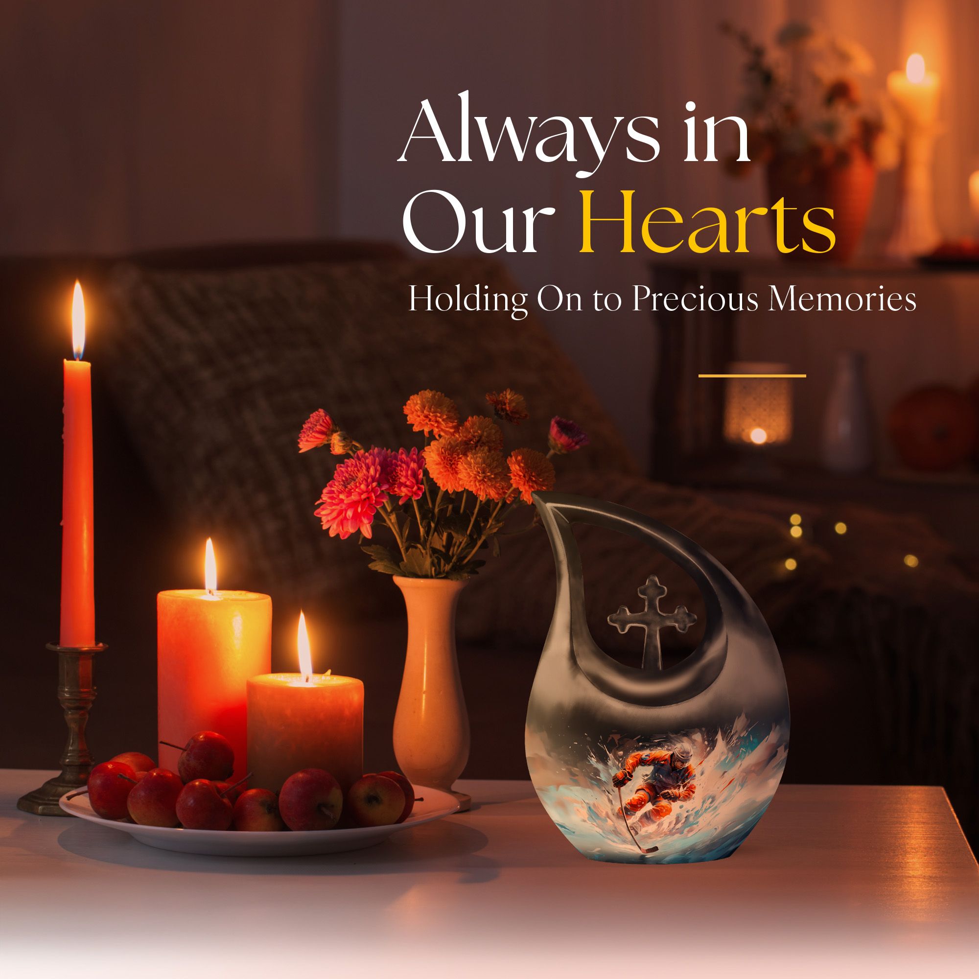 This combo set is especially meaningful for families looking for keepsake for ashes, keepsake urns for ashes, keepsake for human ashes, mini urn for human ashes, or a full memorial keepsake collection that represents strength, dedication, and love.