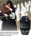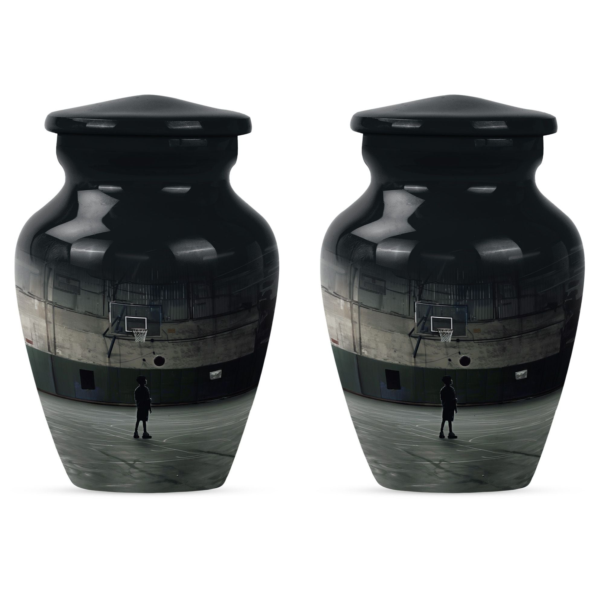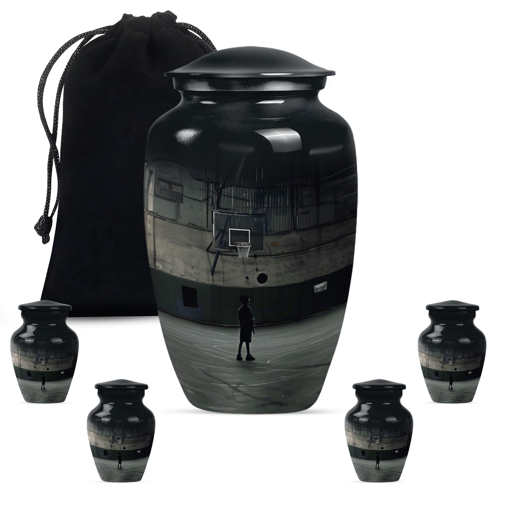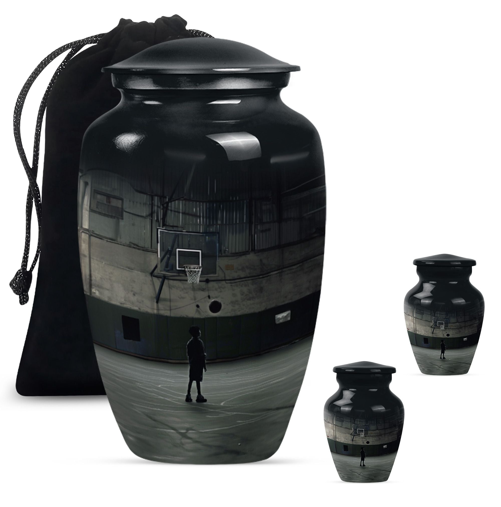 Carry the cherished memory of a man who lived for the court with this abstract-themed, aluminum made, Basketball Cremation Urn. Tailored to fit the 'memorial urns' keyword phrase, this large-sized urn can carry up to 200 cubic inches of cremains securely. Towering at a sturdy 10 inches in height, it has a substantial weight of 3.3 pounds and brings an imposing presence in the room, very much like your loving one did on the basketball playground. You'll receive a velvet pouch that ensures the honorable containment of the cremains with every purchase. Add a personal touch by customizing it with engraved names, making it a monumental tribute to a life well-lived. Remember, it’s not just an urn; it’s a cornerstone linking the love and memories between you and the departed. Among the widely searched 'funeral ashes urns', this one stands out with its unique fusion of the sporty theme with a classic urn shape, distinctly designed for adults and seniors looking for 'cremation urns for men'.