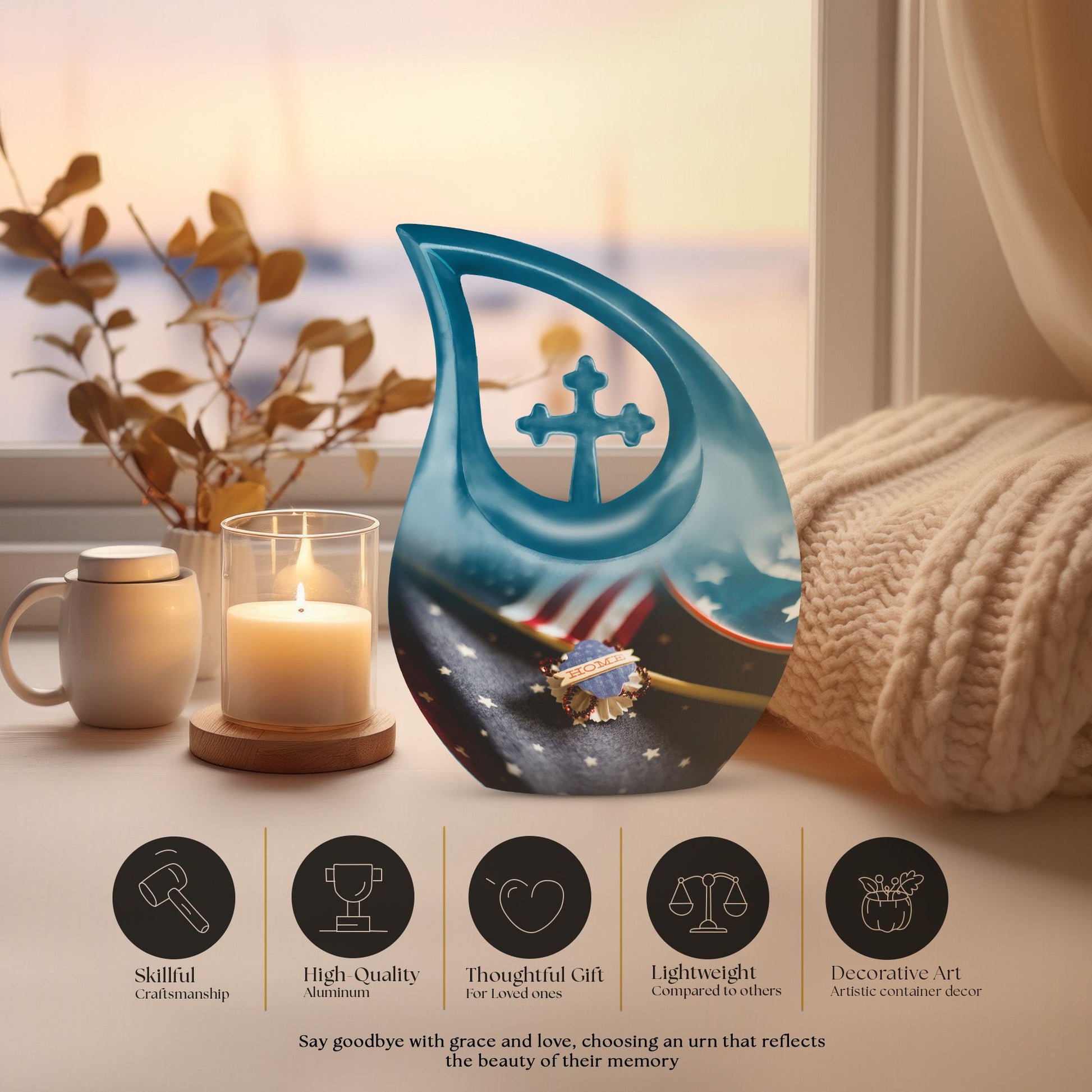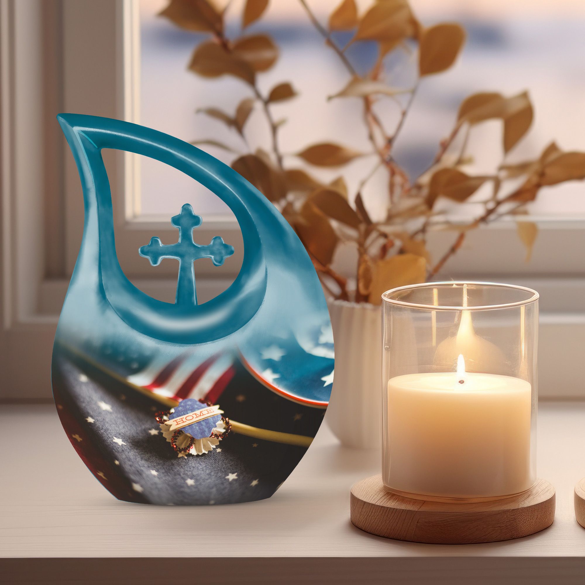 This urn also supports families who prefer memorial keepsakes for ashes, offering a complete remembrance set that honors love, legacy, and national pride. Its symbolic design makes it especially meaningful for veterans, military families, and anyone who held devotion to their country.