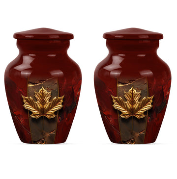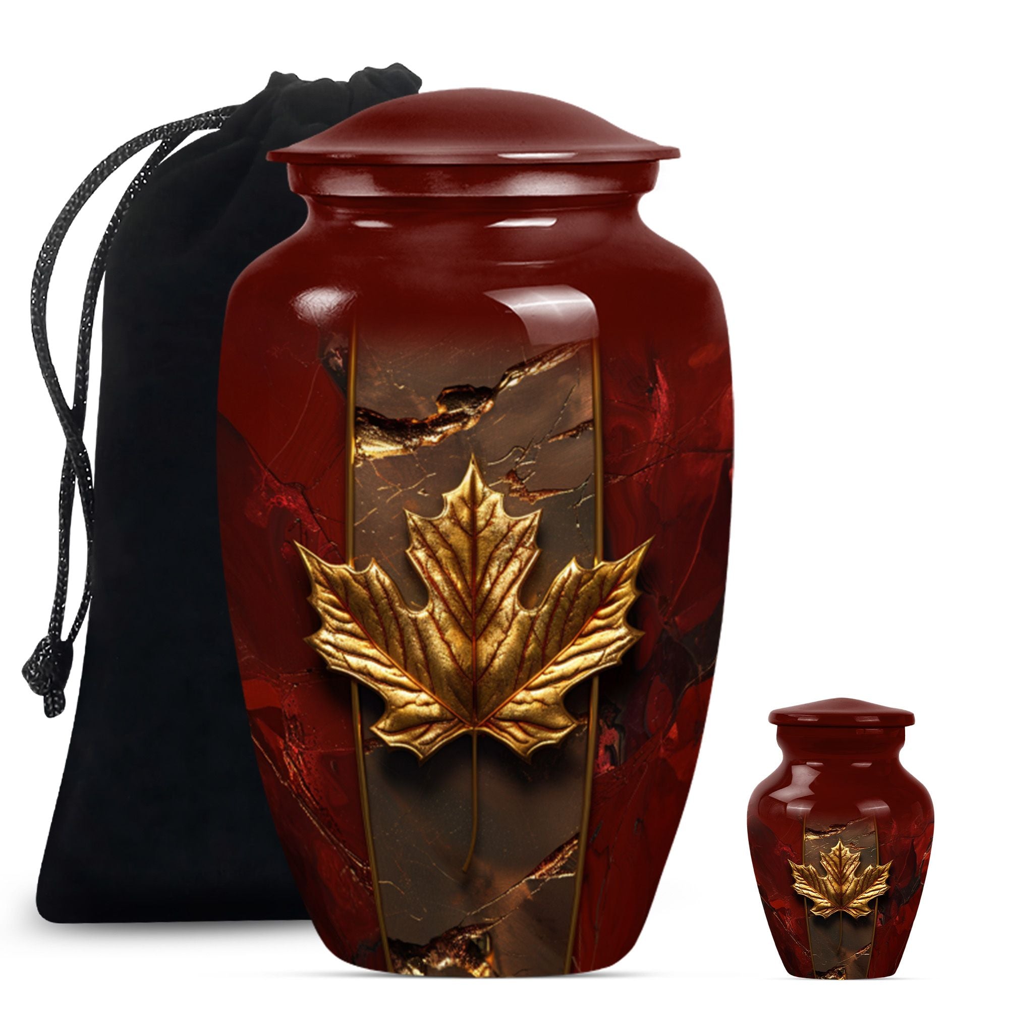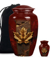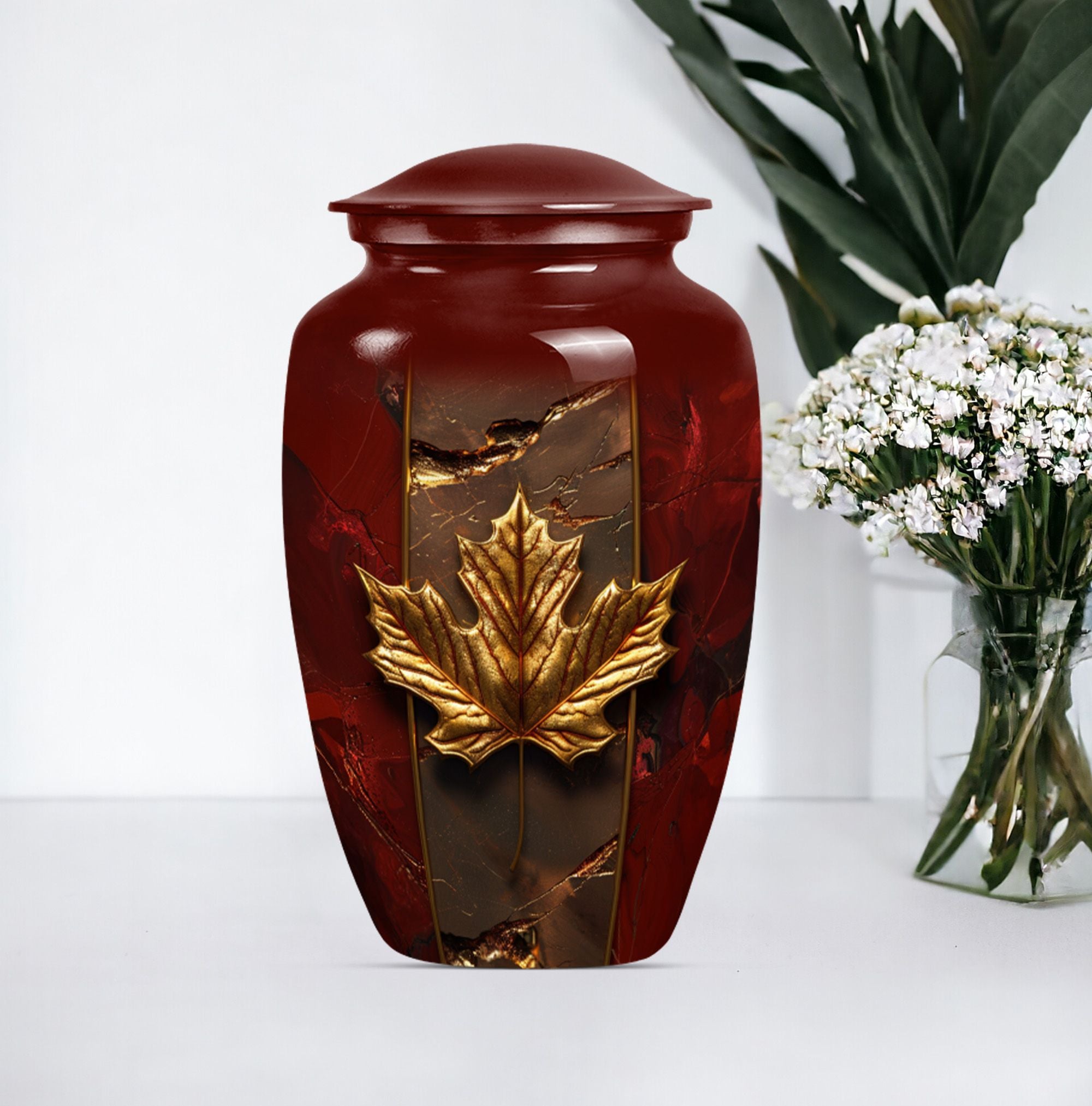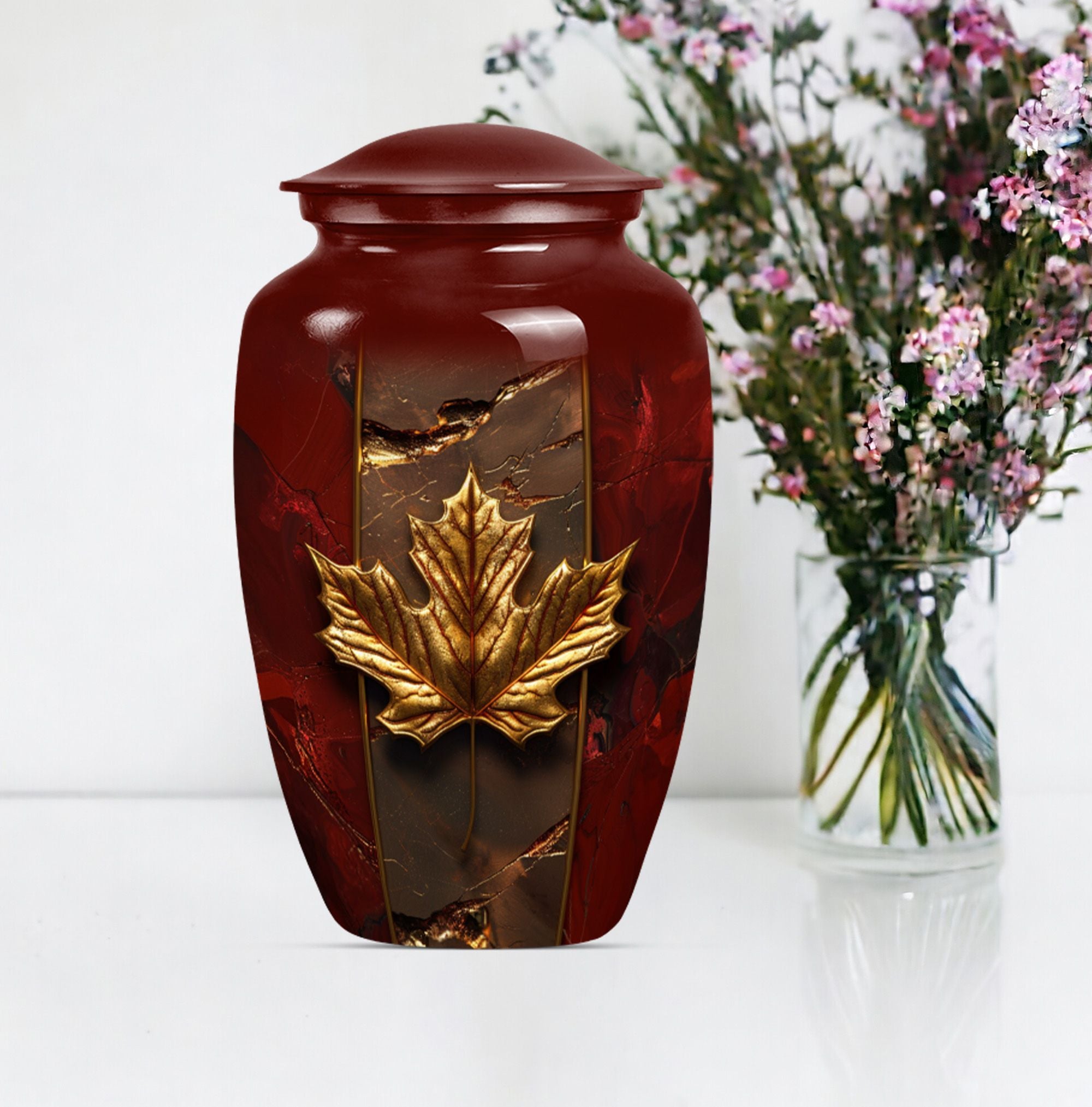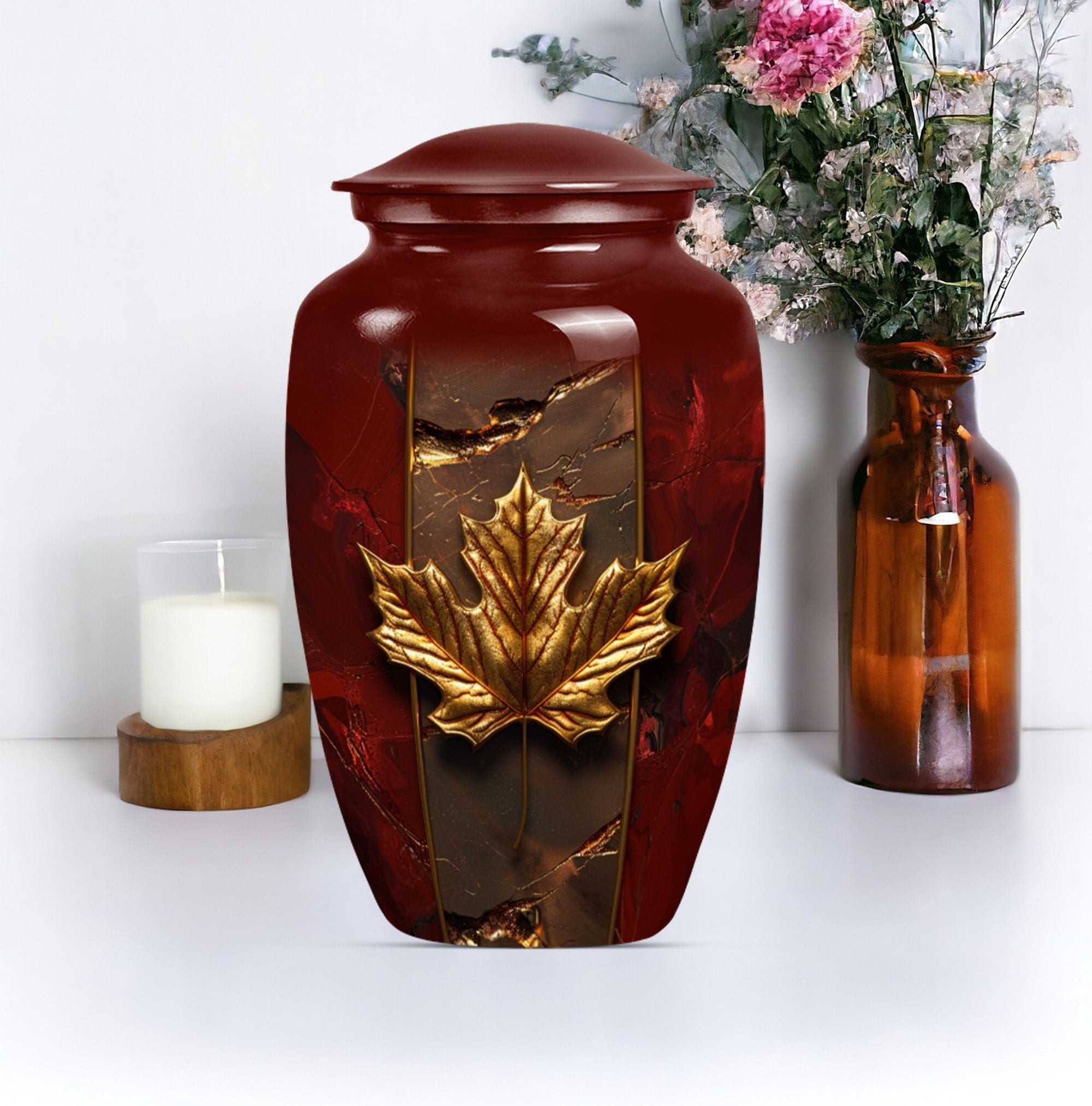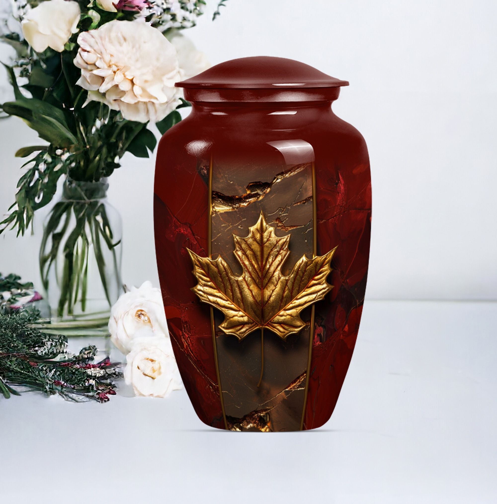 Commemorate the memory of your departed loved ones with our magnificent Mapple Leaf Memorial Urn. A tangible symbol of remembrance, this large urn, sized at 10 inches, has been specifically catered towards male adults but can truly be appropriate for any gender. Made of sturdy aluminium, the urn is designed to maintain its durability, weighing in at 3.3 pounds. It features an intricate flower theme on the exterior, evoking some of nature’s purest and most beautiful elements. The urn has a considerable capacity of 200 cubic inches, ensuring every memory will have its place. Your package will also include a velvet pouch. Intended for containment of ashes, it manifests respect and sensitivity towards your precious keepsake. Personalize this classic urn with the engraved names of your choice as a special touch. Also, a wonderful addition for those searching for female urns, companion urns for two adults, or even large metal urns for ashes. Our product is a heartfelt way to honor and cherish your beloved.