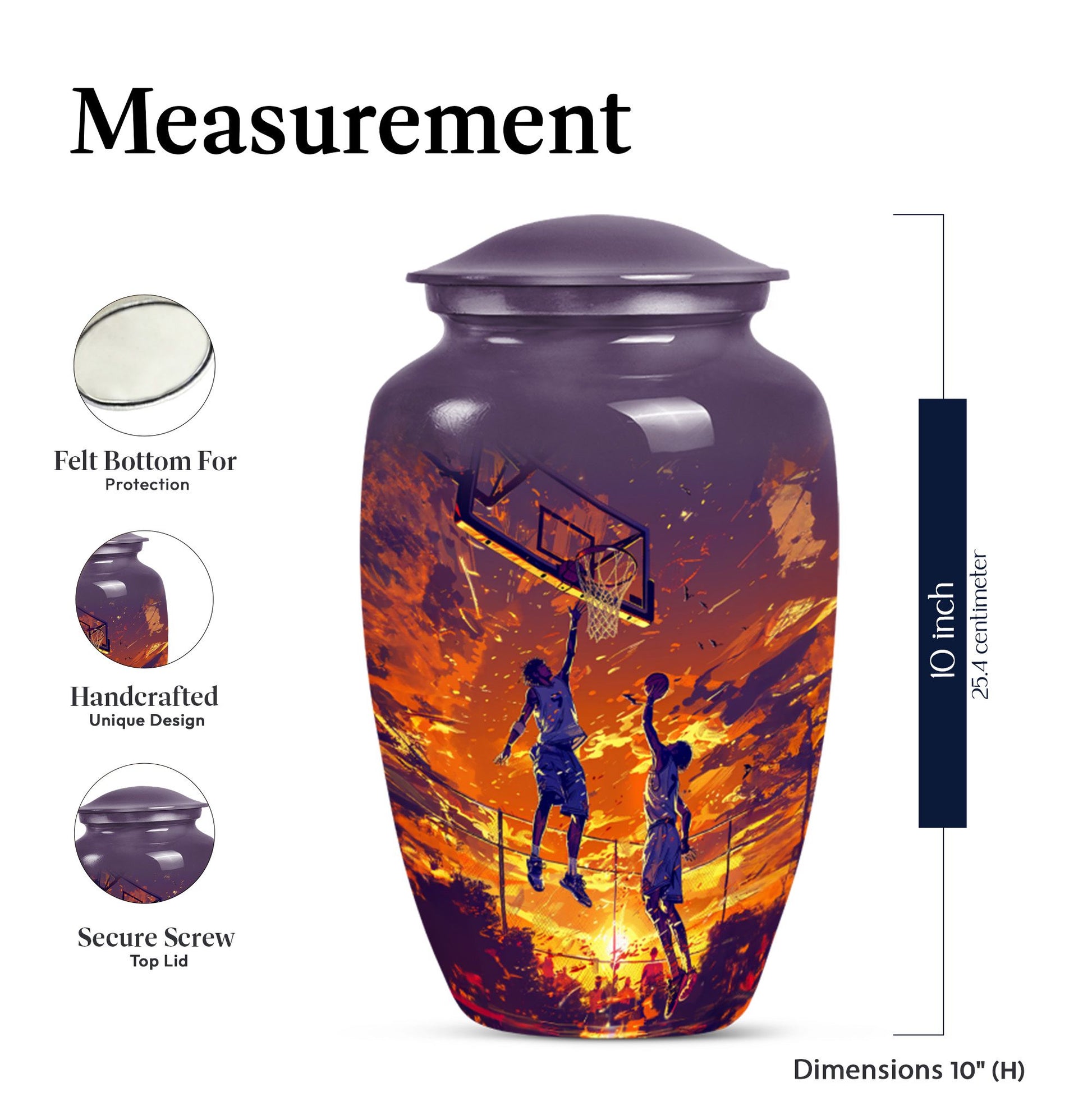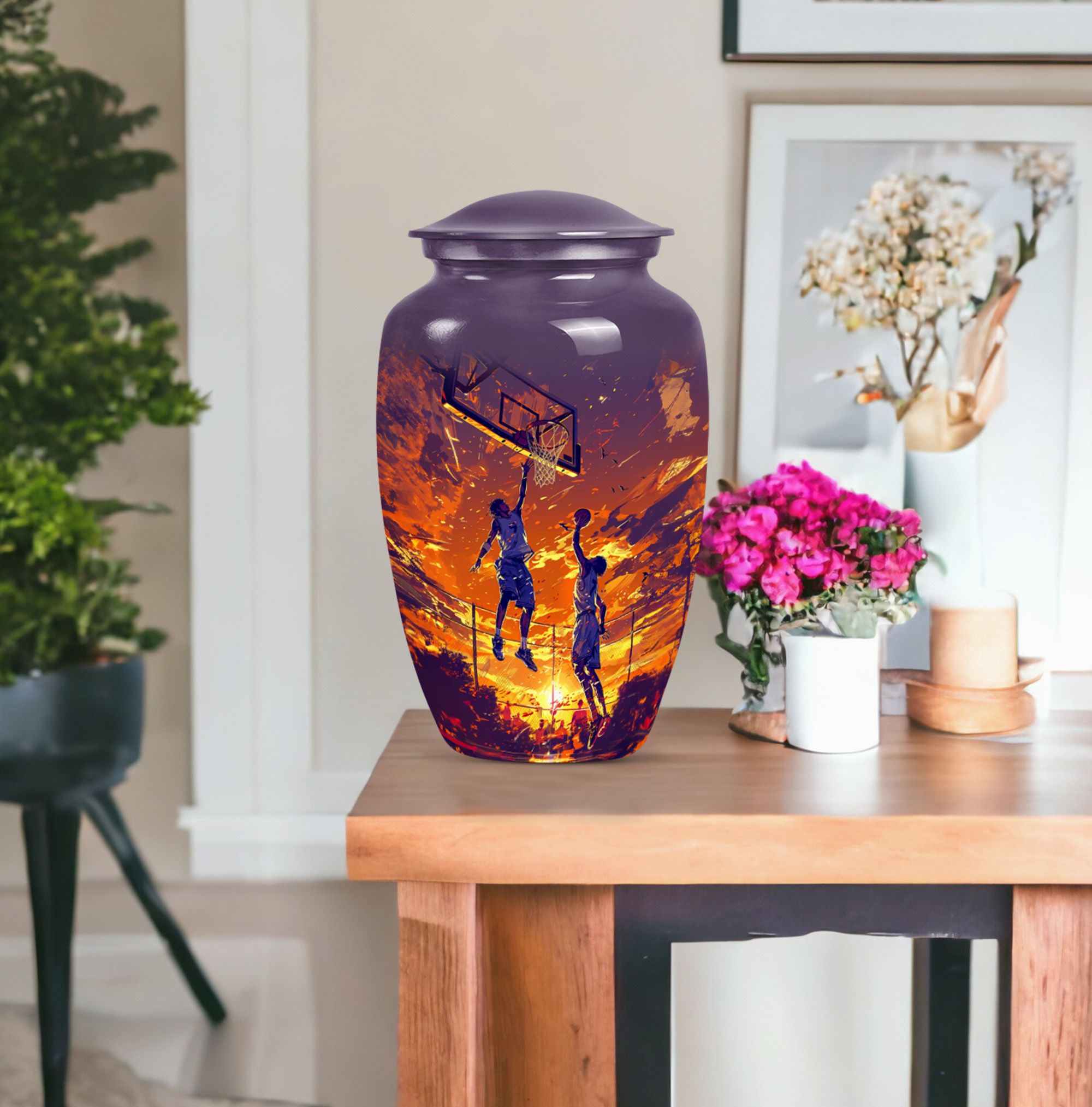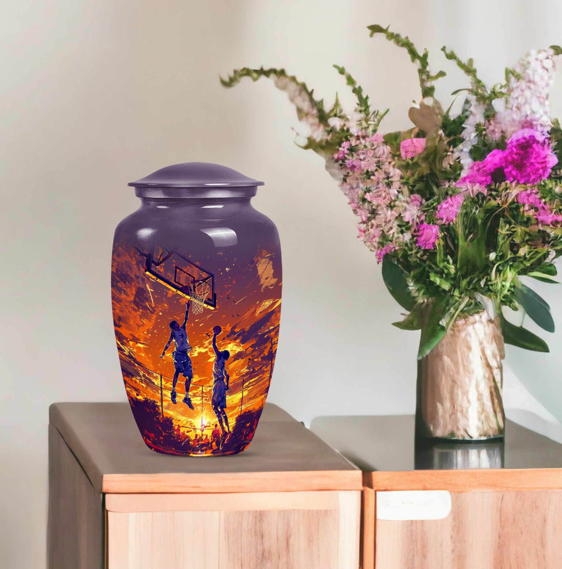 Presenting our exquisite Aurora Borealis themed Classic Urn – an elegant resting place for your loved ones. This ethereal 10-Inch memorial urn is perfect for commemorating a life well-lived. Made from durable Aluminium, it stands at a striking height of 10 inches with a weight of 3.3 pounds, ensuring longevity and sturdy structure. This large urn has the capacity to hold 200 cubic inches of ashes, making it ideal not only as a basketball urn, but also for funeral ash containment or for outdoor burial purposes. Personalize it by engraving names, enhancing the distinctiveness of this memorial urn for ashes. The package comes complete with a velvet pouch for the containment of ashes, adding a touch of dignified grace. Far from common, this burial urn combines unique flair with the reverent purpose of serving as an enduring commemoration. Uncommon keywords to note in your search for this product are 'memorial urn for ashes for mom', 'funeral urns for adult ashes', 'ash urn ashes adult', and 'burial urns metal'.