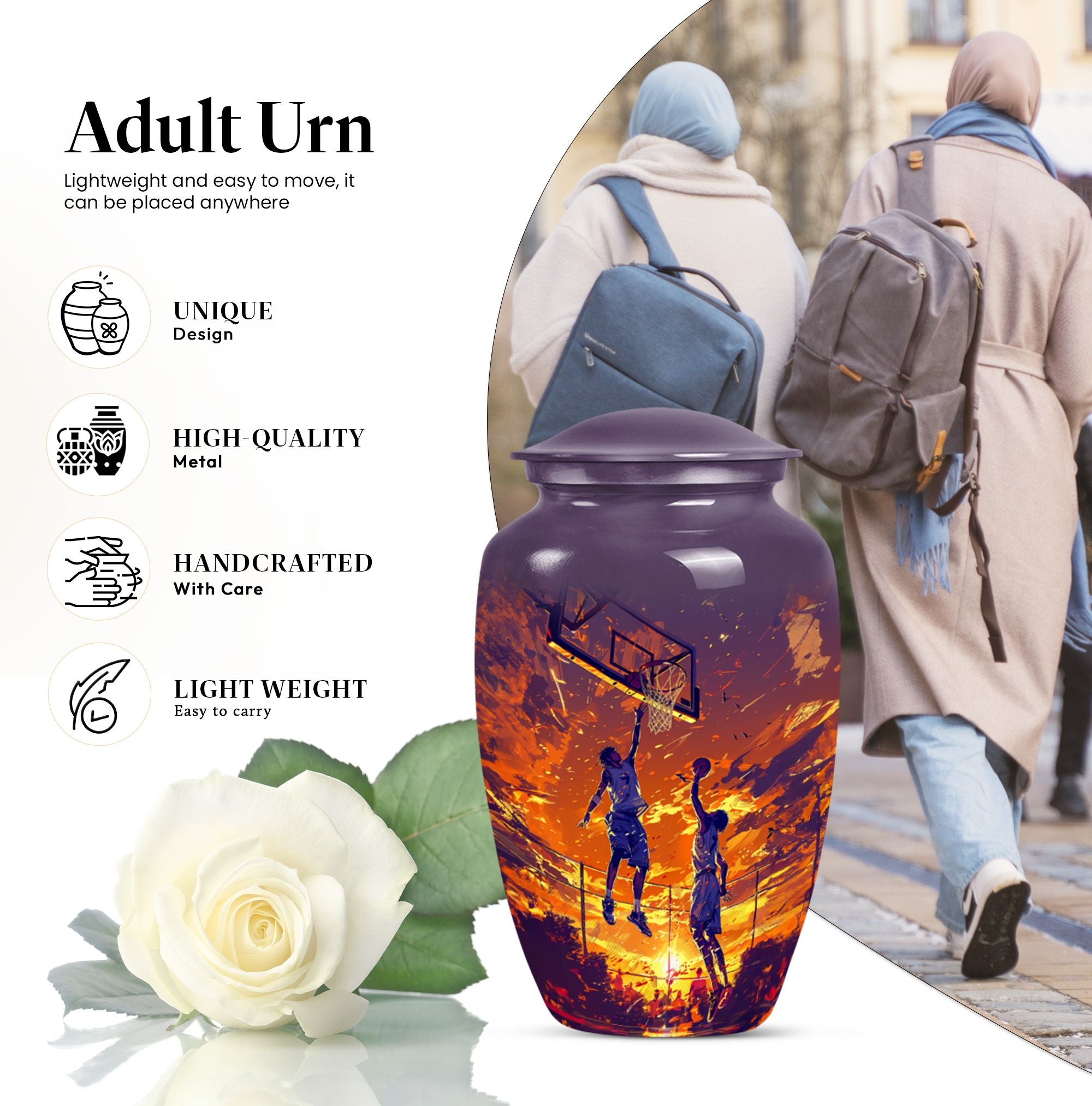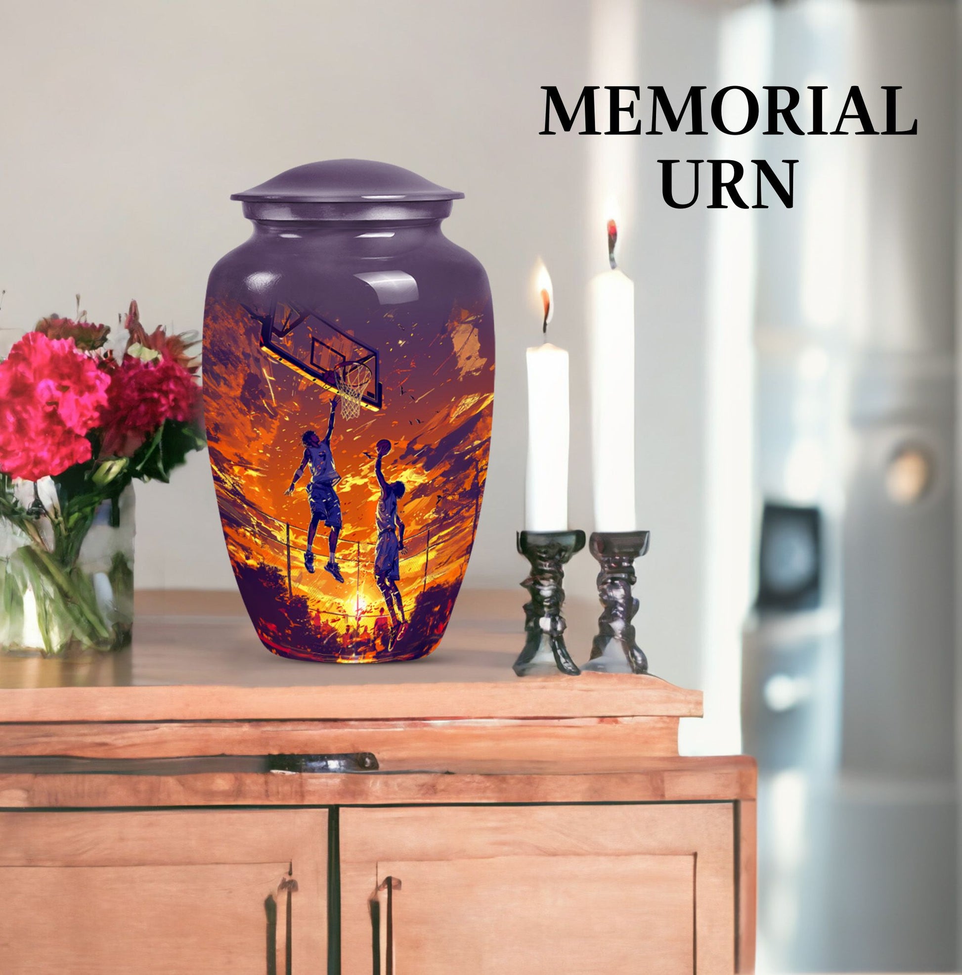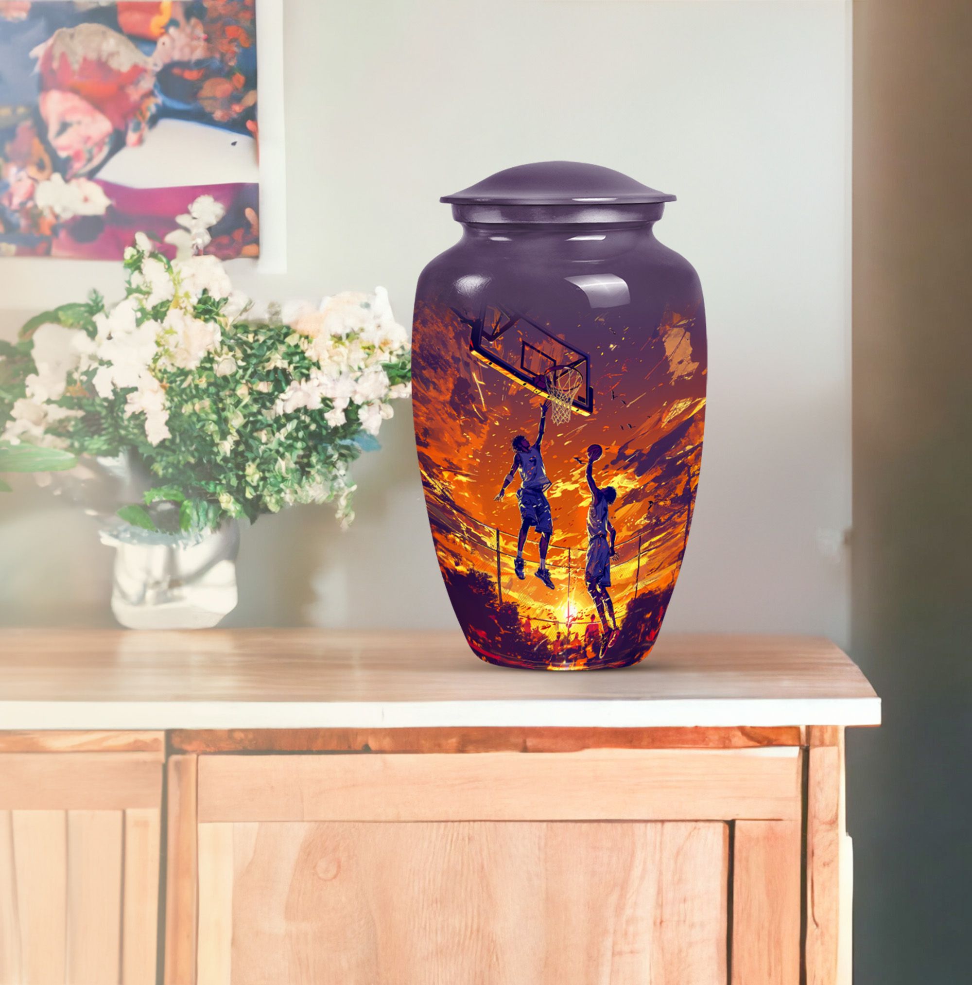 Presenting our exquisite Aurora Borealis themed Classic Urn – an elegant resting place for your loved ones. This ethereal 10-Inch memorial urn is perfect for commemorating a life well-lived. Made from durable Aluminium, it stands at a striking height of 10 inches with a weight of 3.3 pounds, ensuring longevity and sturdy structure. This large urn has the capacity to hold 200 cubic inches of ashes, making it ideal not only as a basketball urn, but also for funeral ash containment or for outdoor burial purposes. Personalize it by engraving names, enhancing the distinctiveness of this memorial urn for ashes. The package comes complete with a velvet pouch for the containment of ashes, adding a touch of dignified grace. Far from common, this burial urn combines unique flair with the reverent purpose of serving as an enduring commemoration. Uncommon keywords to note in your search for this product are 'memorial urn for ashes for mom', 'funeral urns for adult ashes', 'ash urn ashes adult', and 'burial urns metal'.