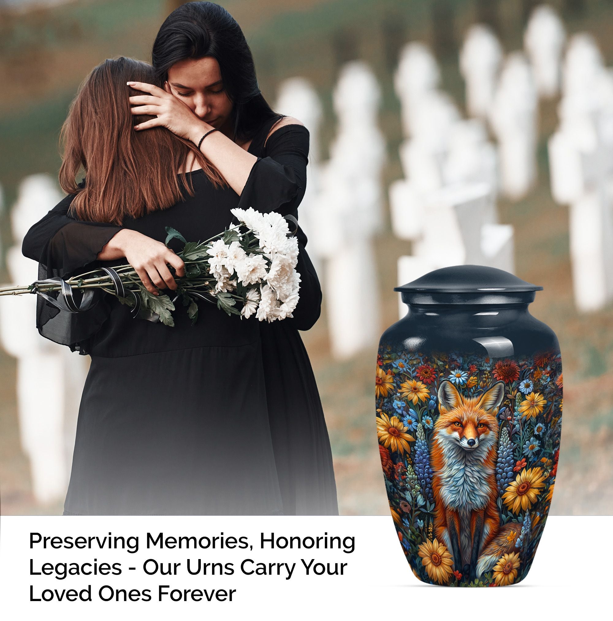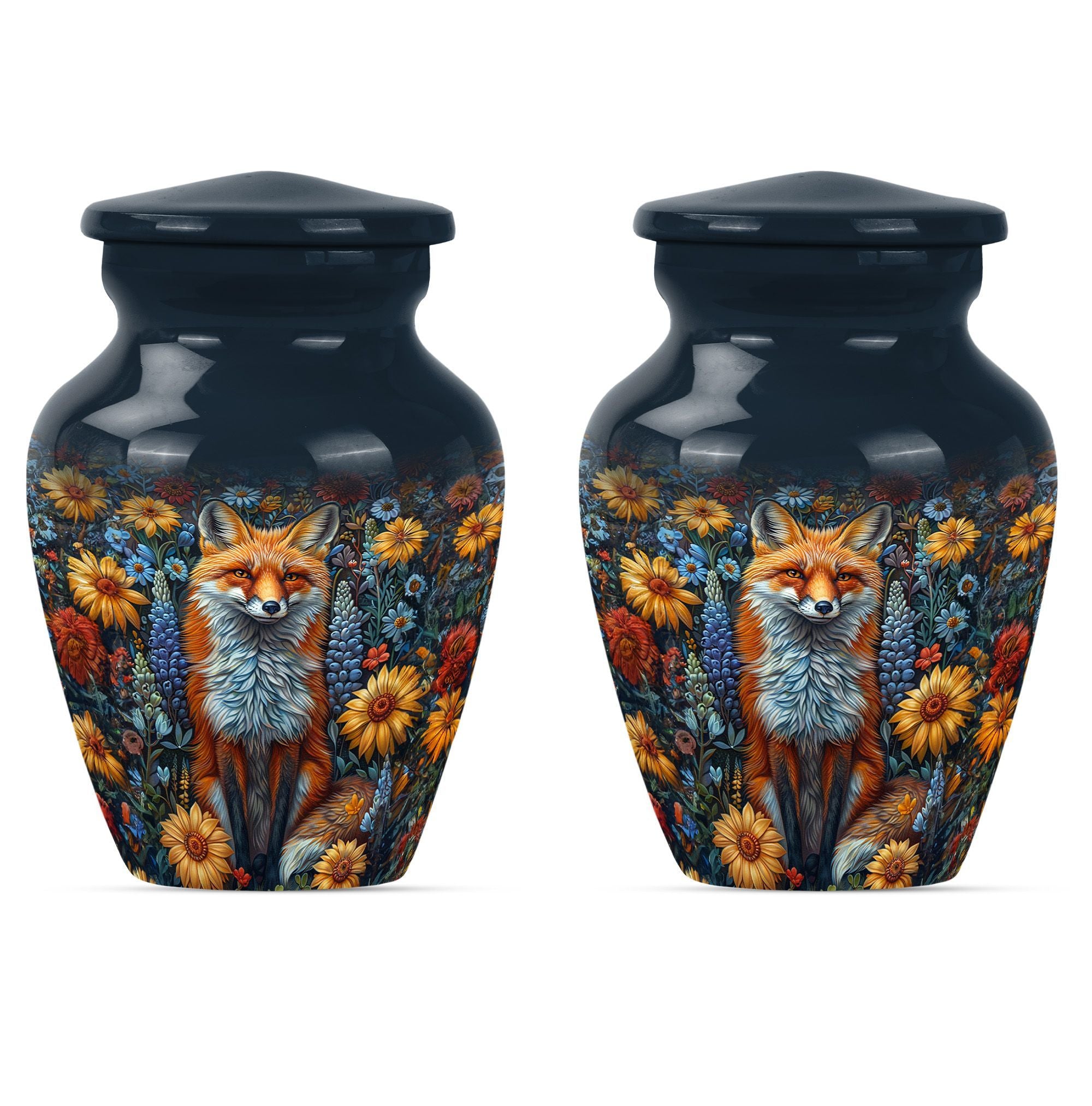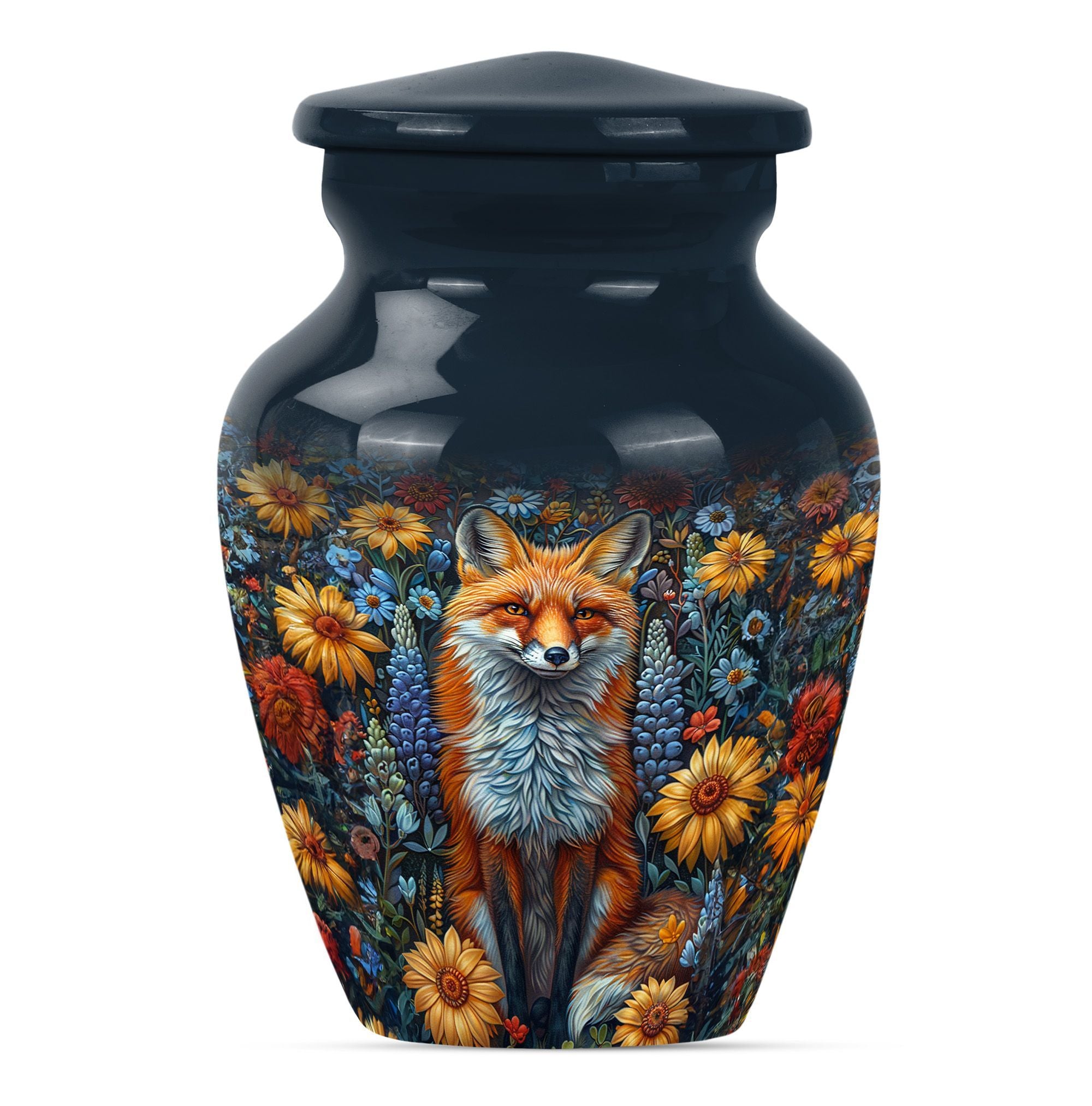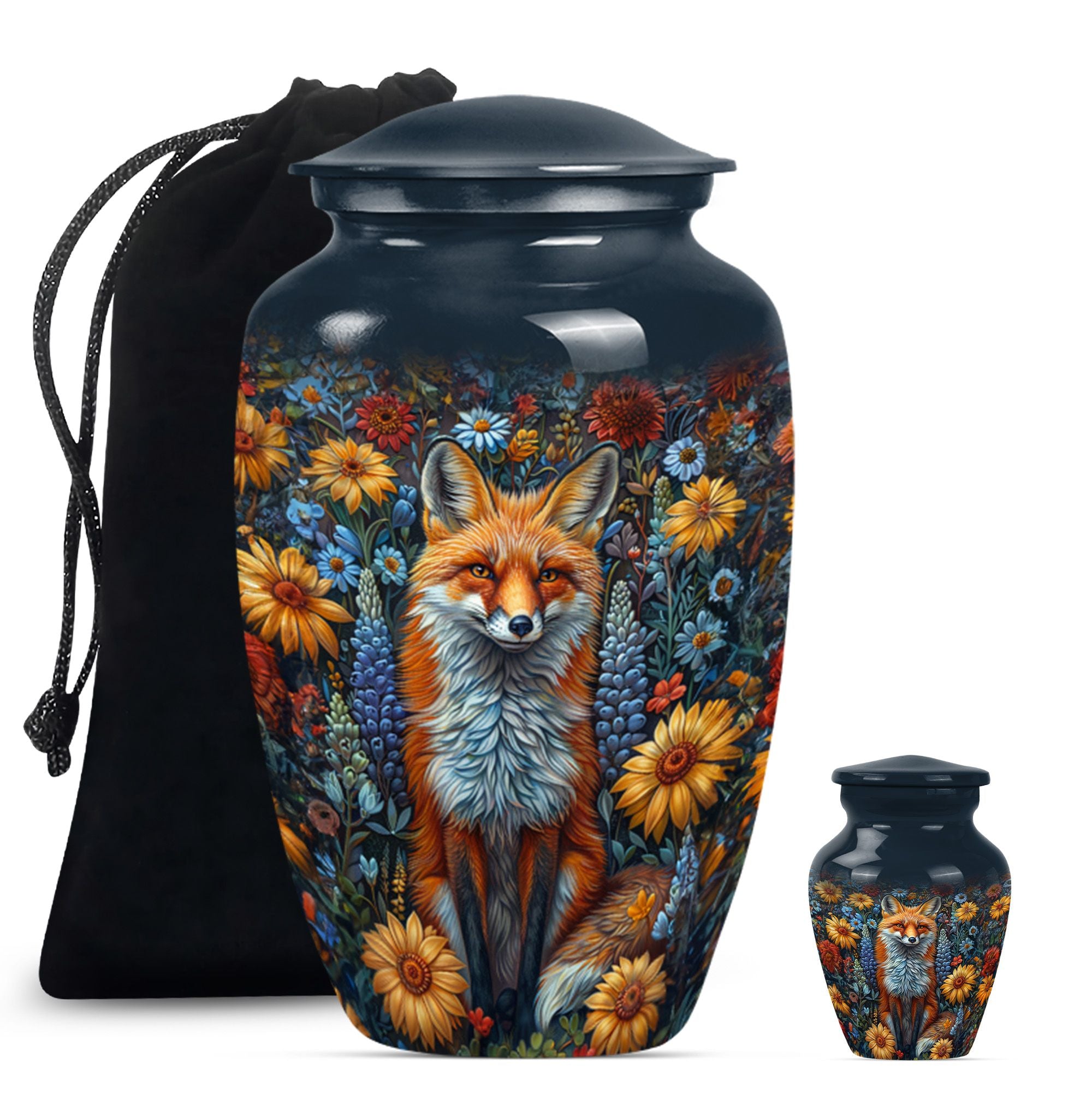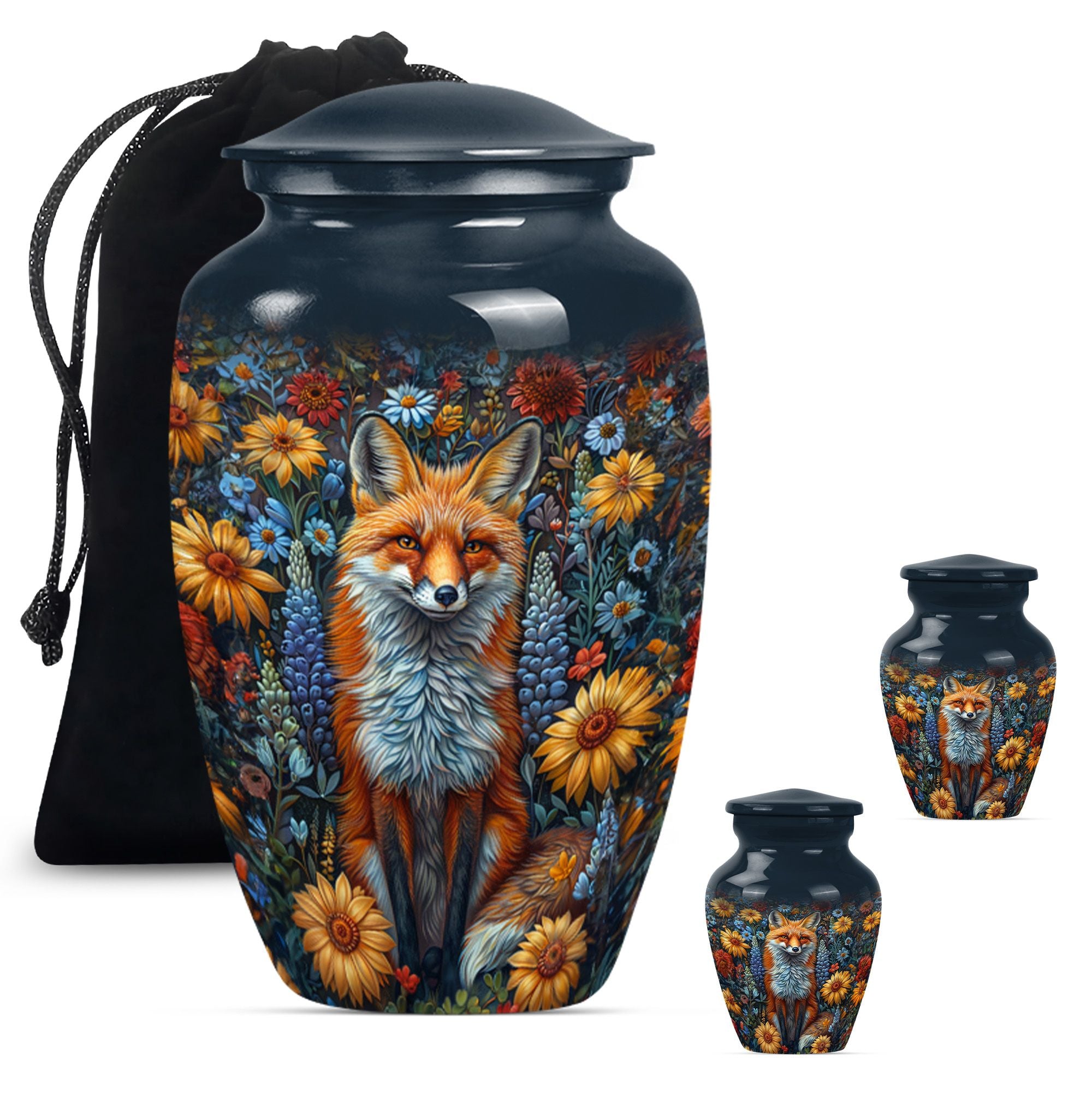 This masterfully designed fox urn, designed specifically for treasured loved ones and sized at a generous 10 inches, is an ideal selection for those seeking memorial urns for adult female ashes. This urn flaunts a timeless, classic design themed with delicate butterflies - a symbol of rebirth and transformation, taking it beyond a simple cremation urn. Crafted from durable aluminium, it carries a comforting weight of 3.3 pounds, and the interior is spacious enough to hold 200 cubic inches of ashes securely. Customize it further by personalizing it with engraved names of your beloved ones, invoking cherished memories with every glance. The urn also includes a velvet pouch for secure containment and respectful carrying of the ashes. Ideal for those in search of funeral urns for adult ashes men and as a tastefully shaped jar for keepsakes. This large urn melds both aesthetic beauty and meaningful purpose, creating a lasting homage to departed loved ones.