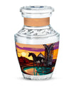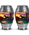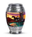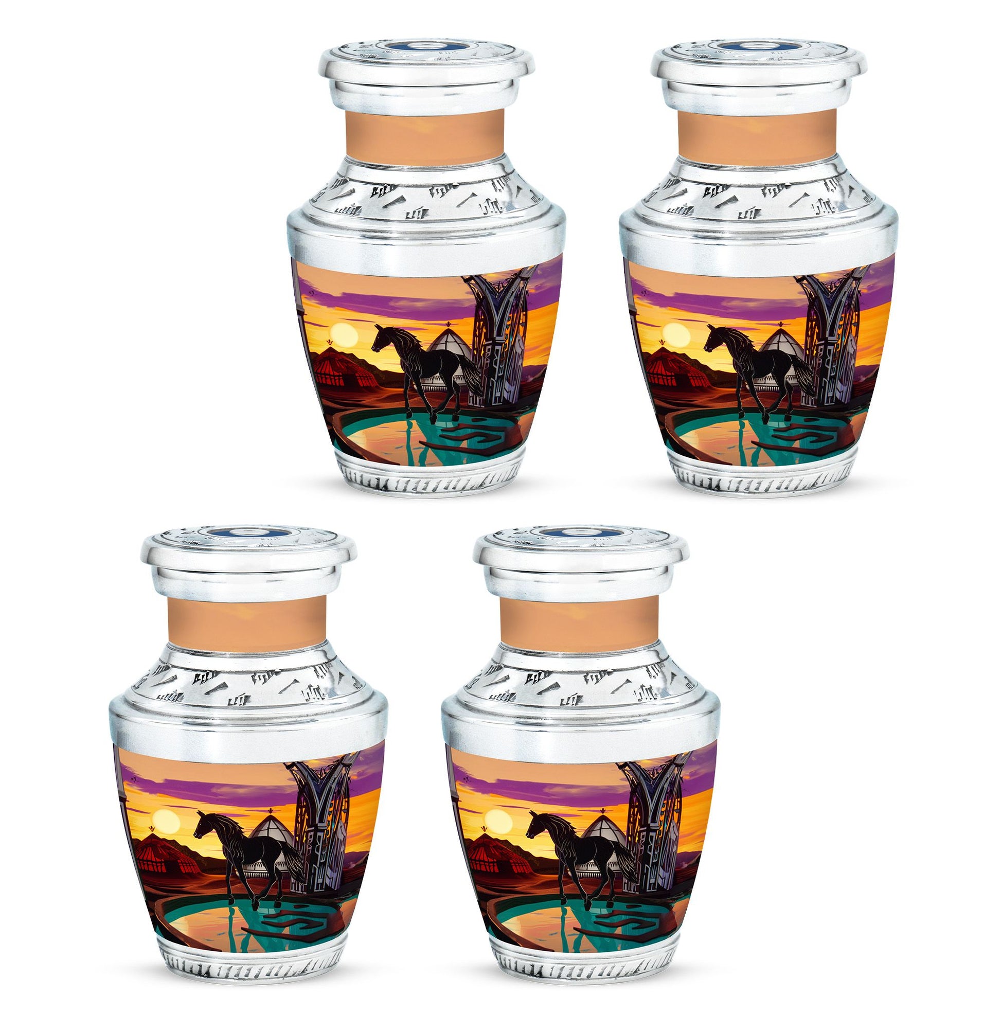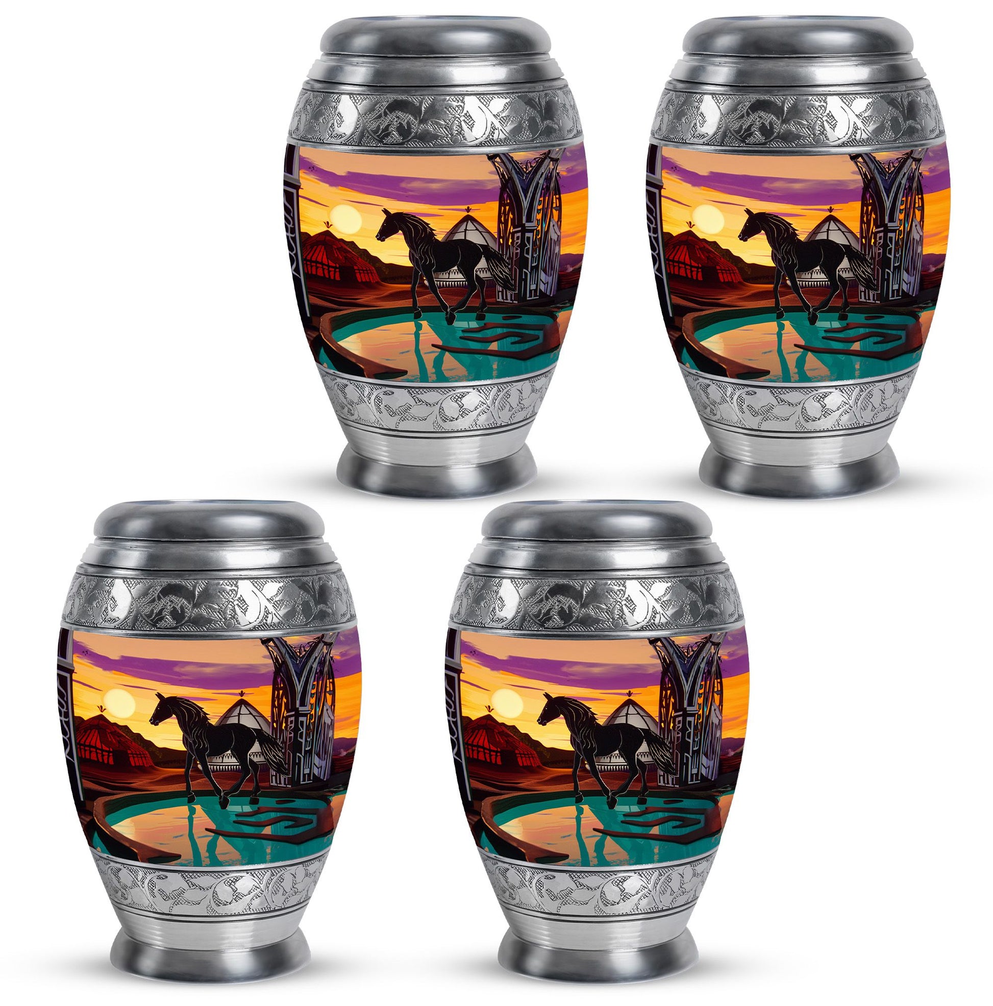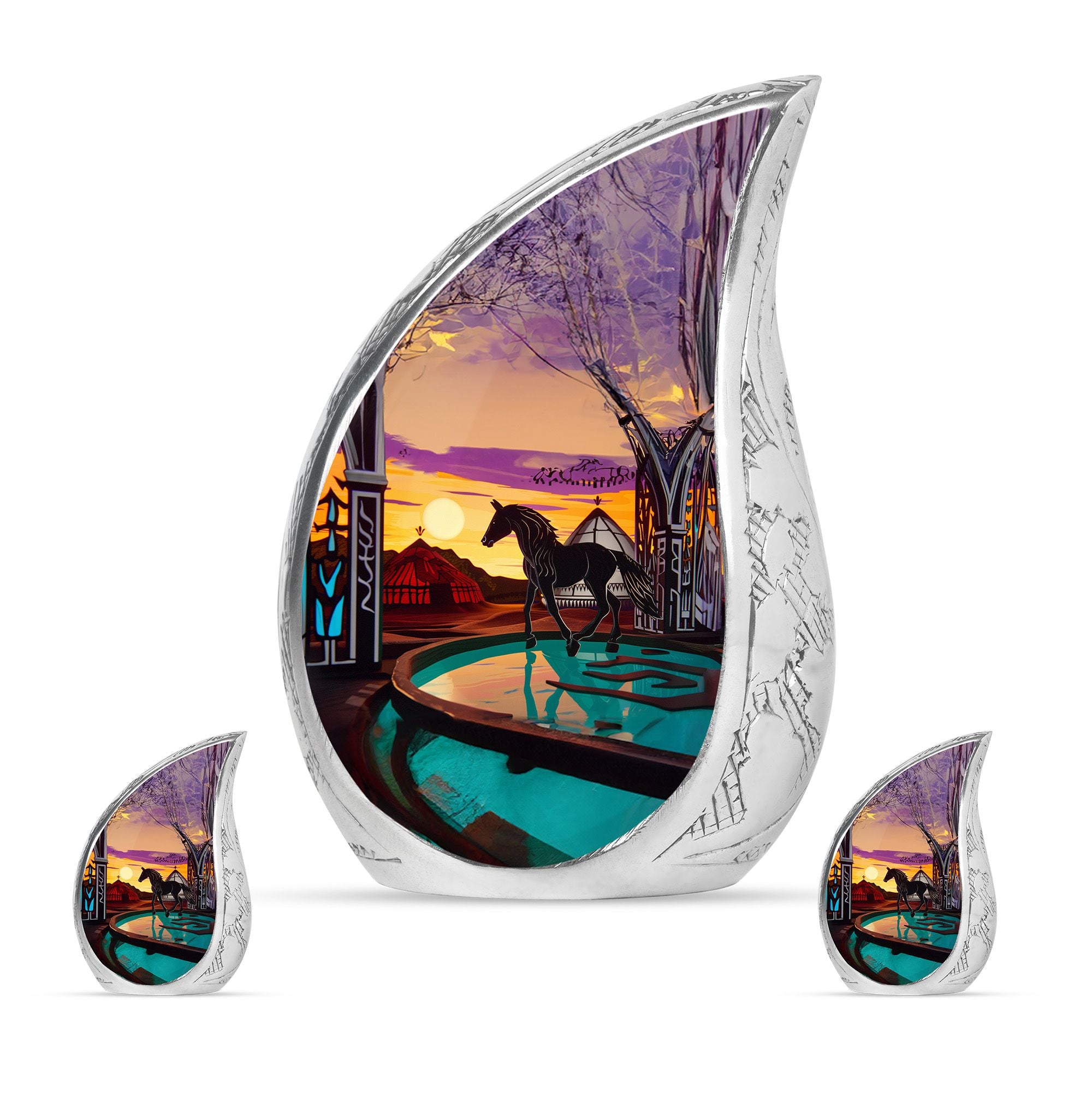 Expertly crafted from durable aluminium, this urn features a striking black horse motif with elegant detailing. Its secure screw-top lid ensures safe storage, making it ideal as a decorative miniature urn, a memorial keepsake, or a keepsake urn for human ashes. Practical yet refined, it also functions as an urn keepsake combo set or urn with keepsake combo.