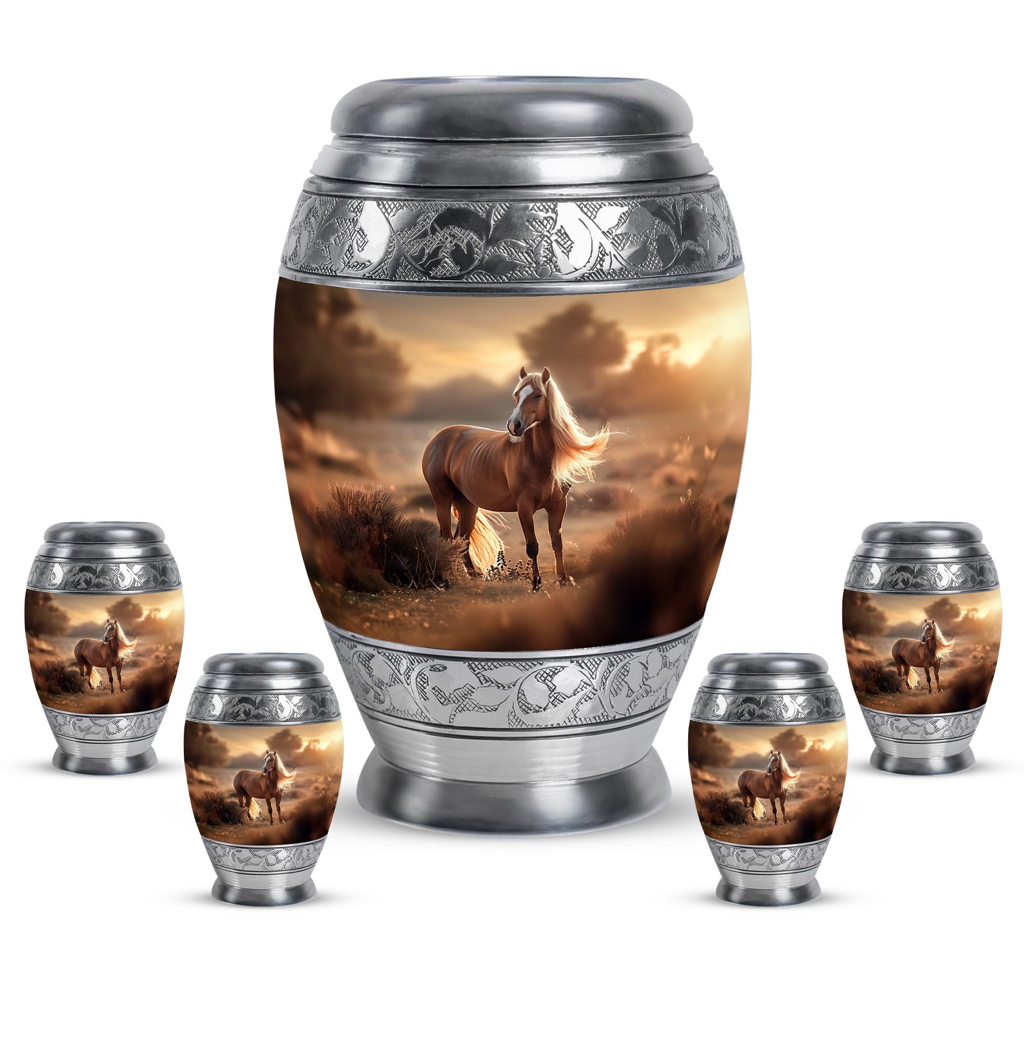 Cherish the memory of your loved one with the Brown Horse Funeral Keepsake Urn, thoughtfully designed to offer a dignified resting place. Perfect as adult cremation urns for human ashes, a cremation urn human, or cremation urn for ashes small, it provides a meaningful tribute that keeps memories alive.
