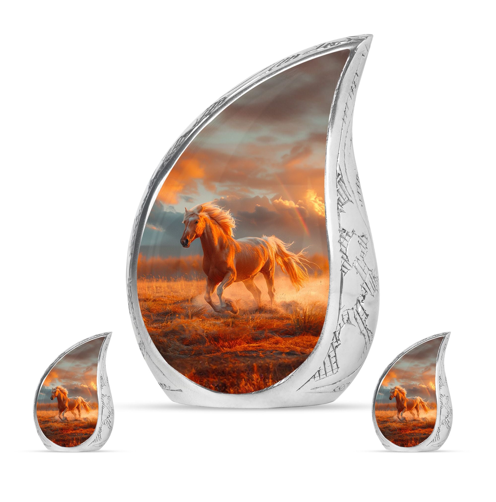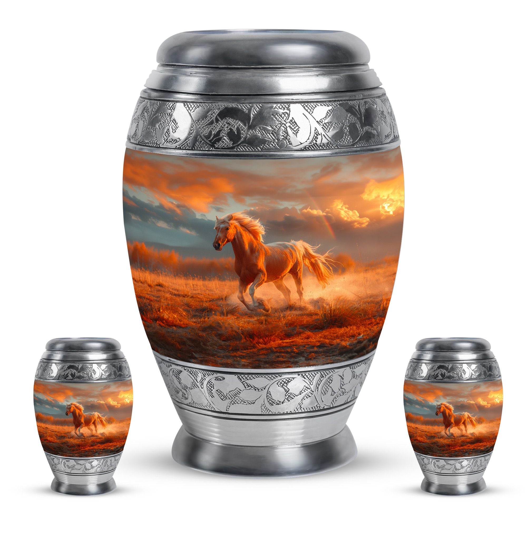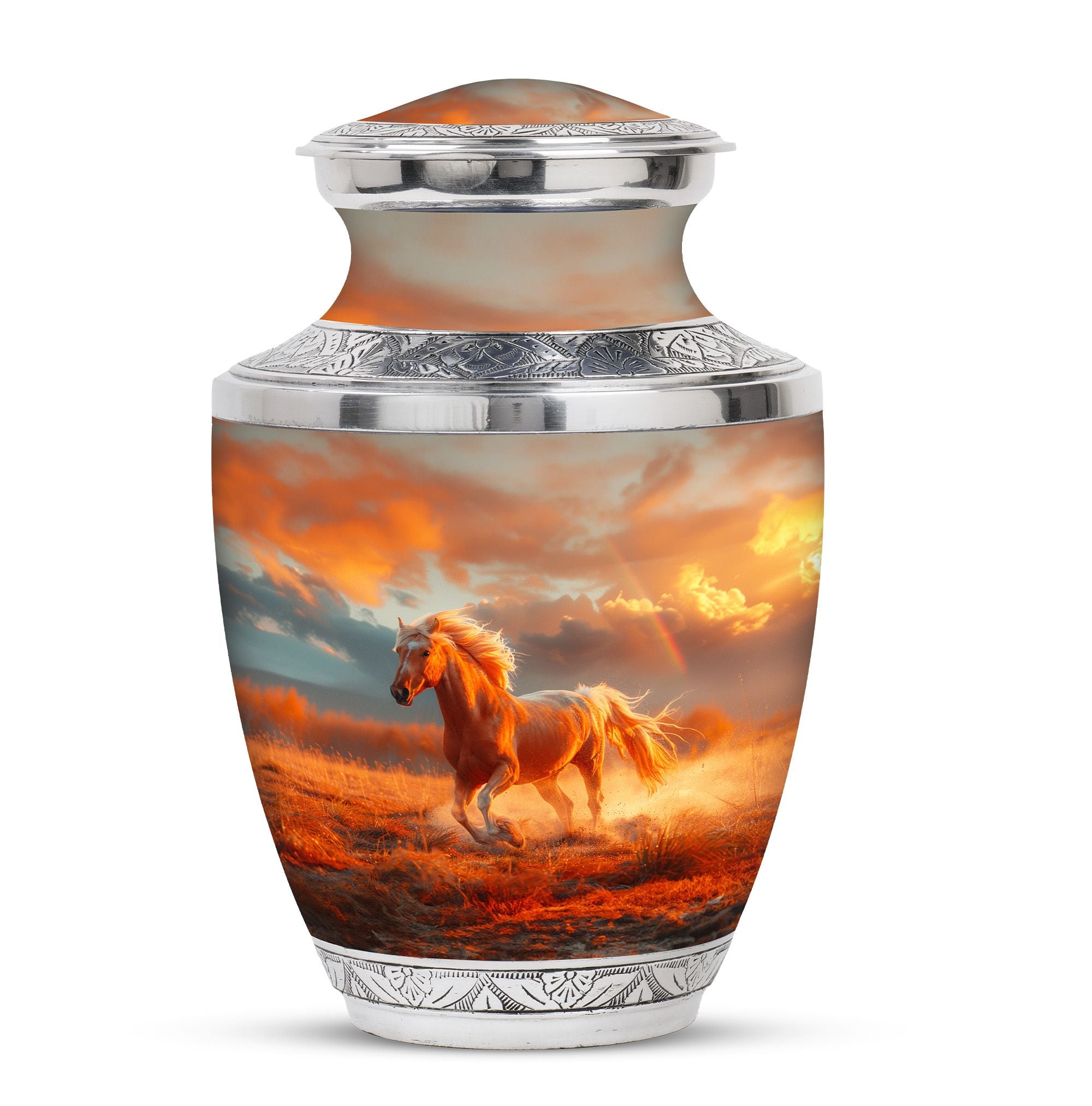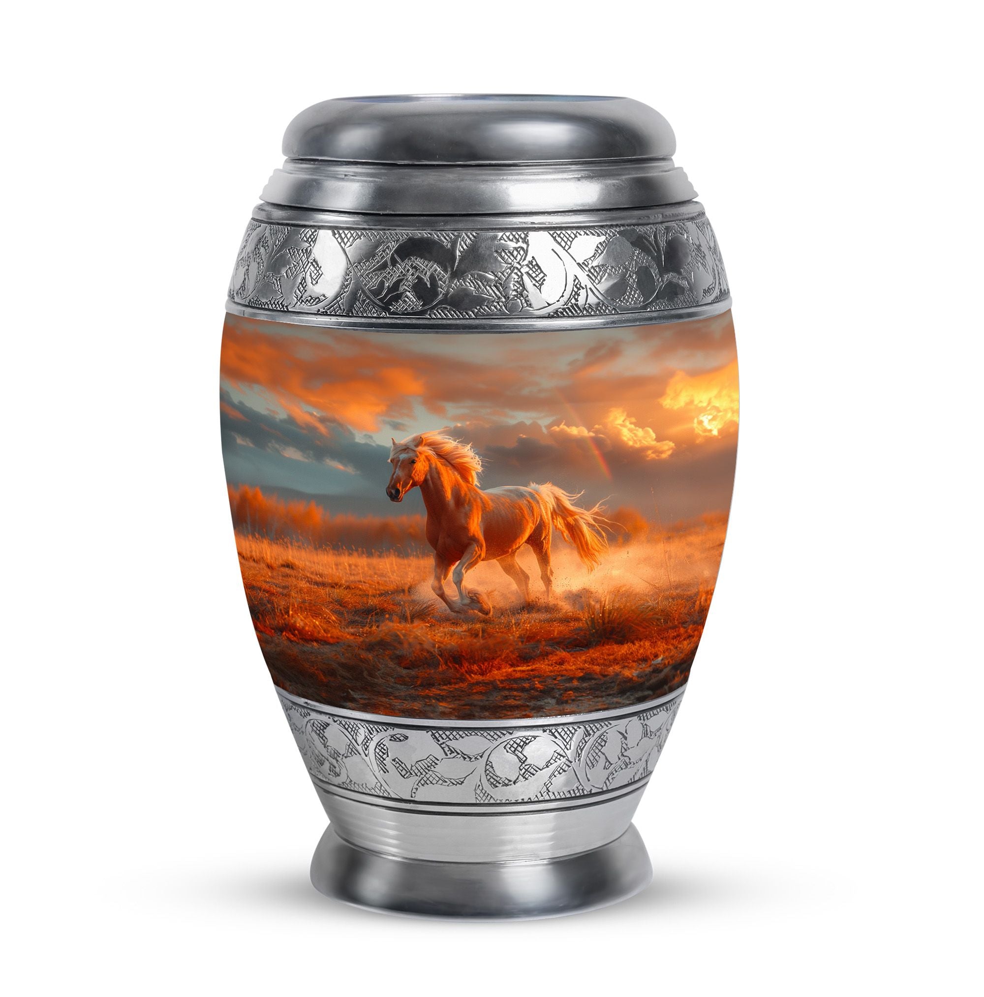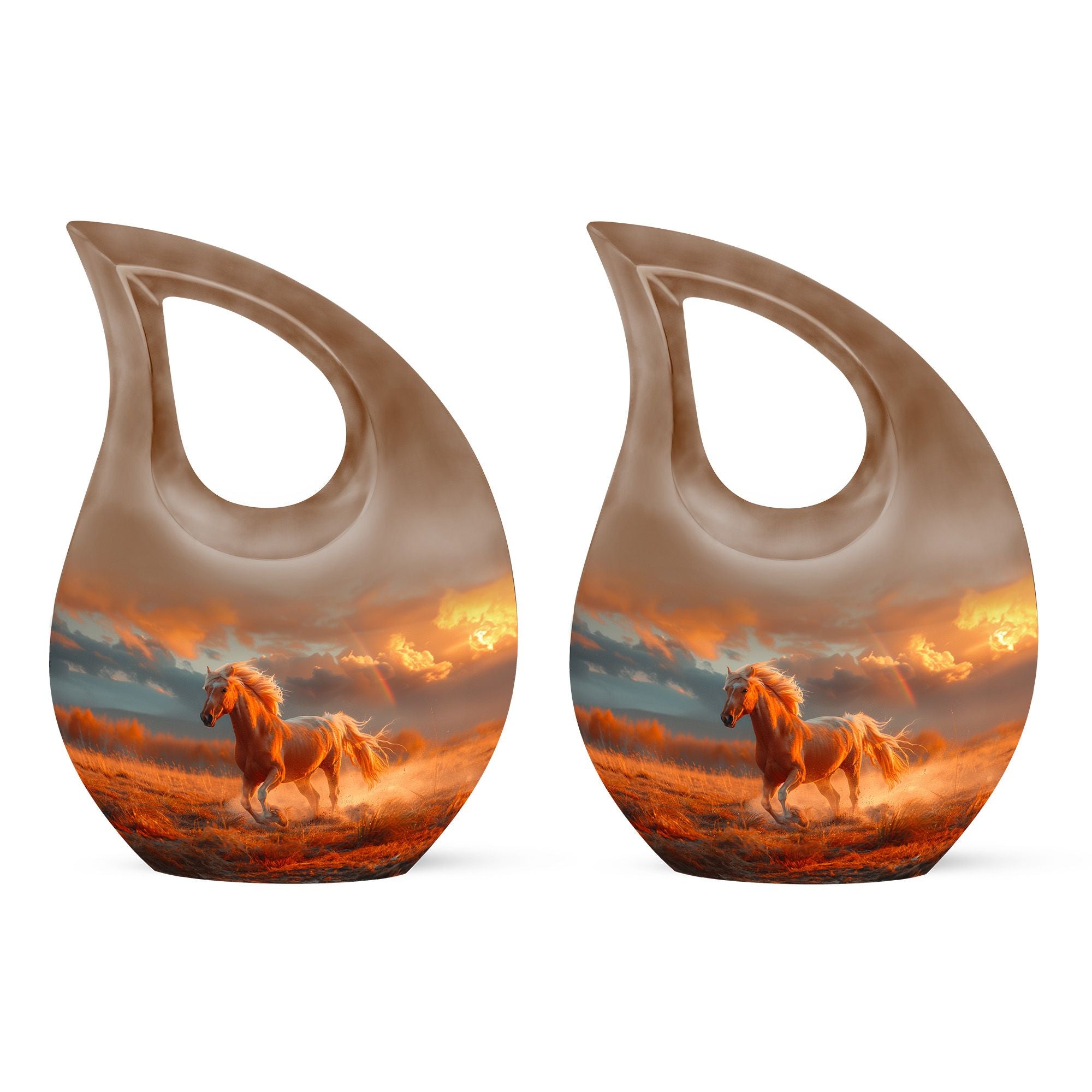 The Running Horse Cremation Urns for Human Ashes capture the strength, freedom, and grace of the horse, symbolizing a life lived with courage and determination. Paired with a sunset adult cremation urns design, these pieces reflect the beauty of life’s journey and provide a dignified resting place for your loved one.