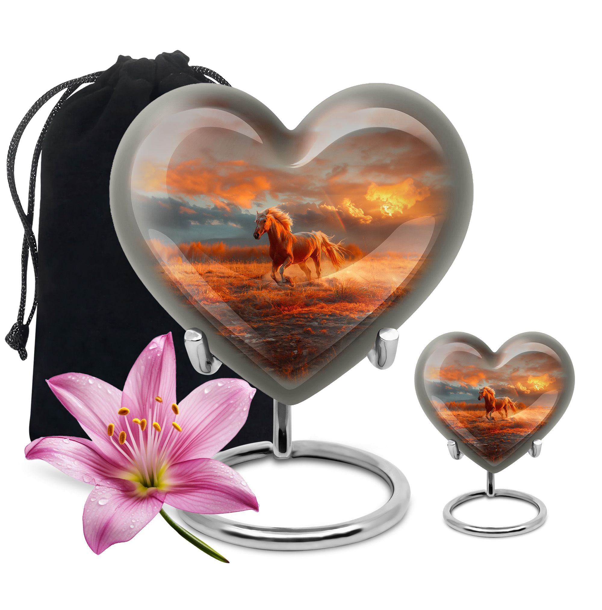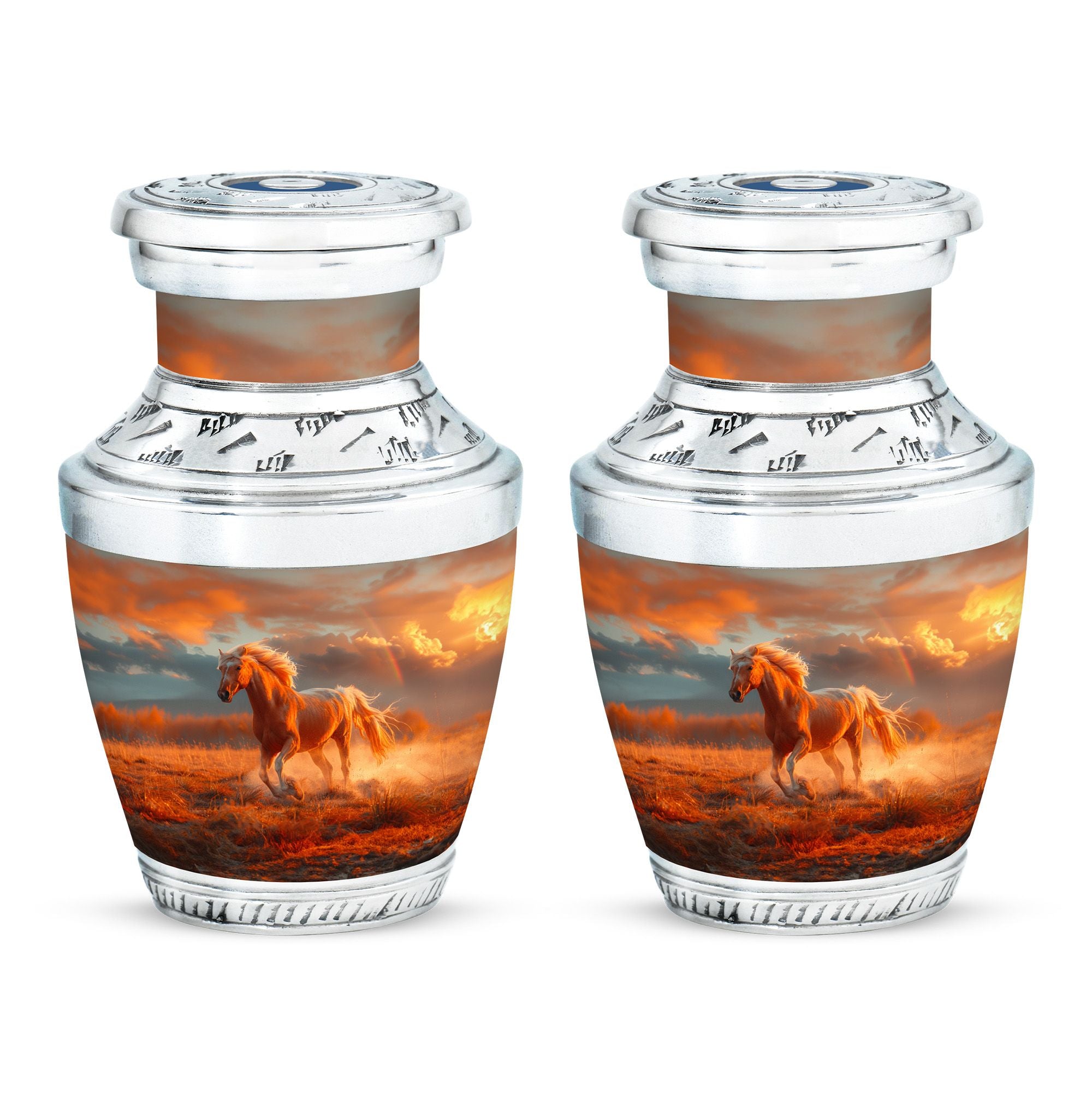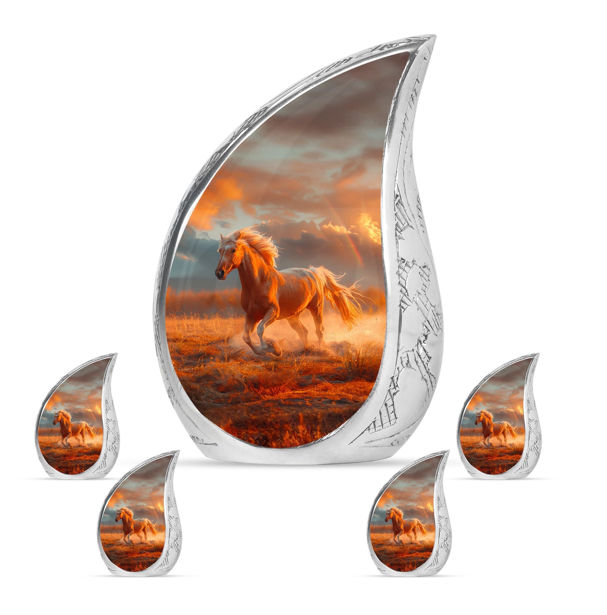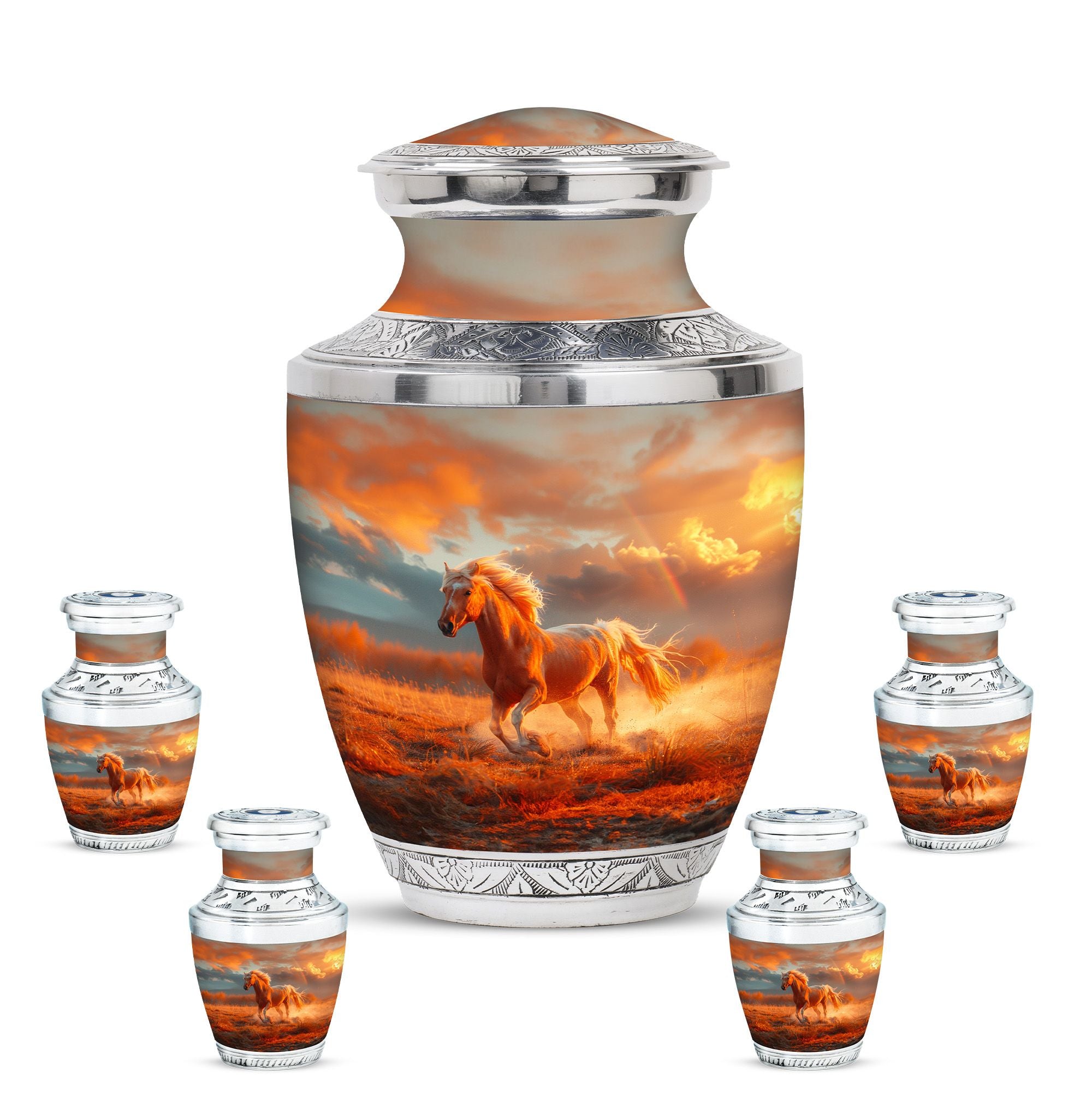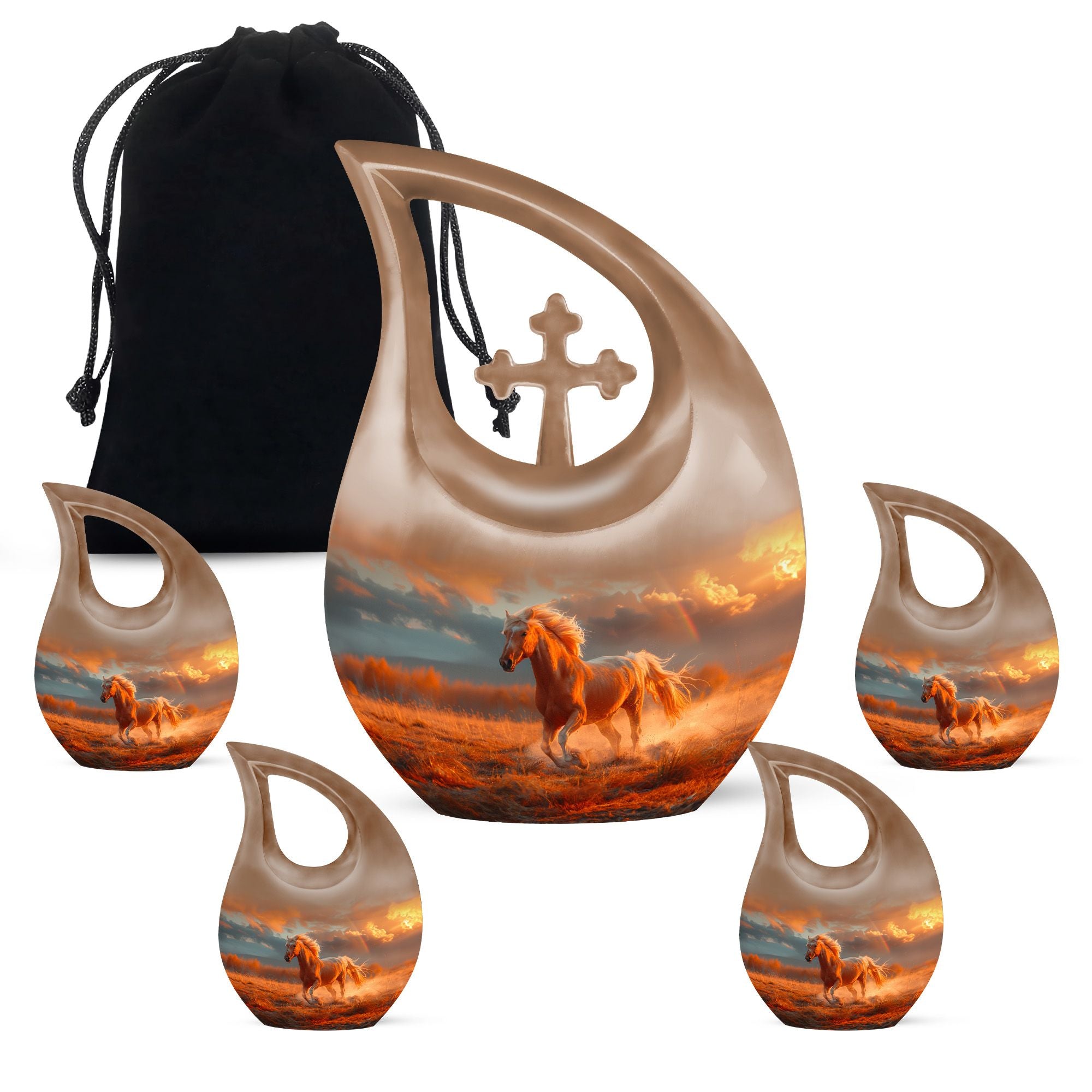 The Running Horse Cremation Urns for Human Ashes capture the strength, freedom, and grace of the horse, symbolizing a life lived with courage and determination. Paired with a sunset adult cremation urns design, these pieces reflect the beauty of life’s journey and provide a dignified resting place for your loved one.