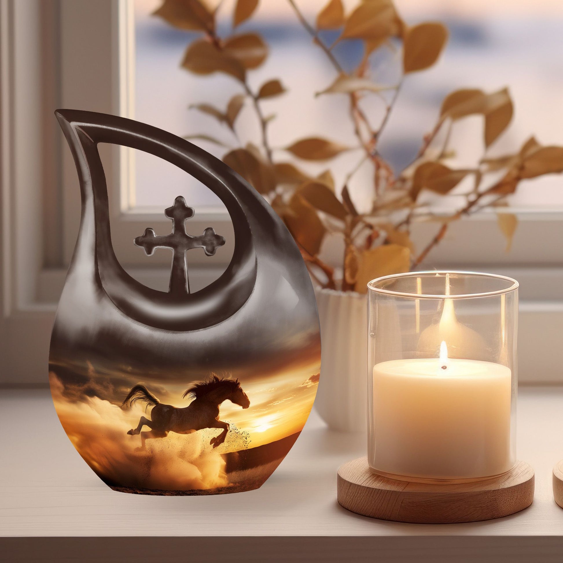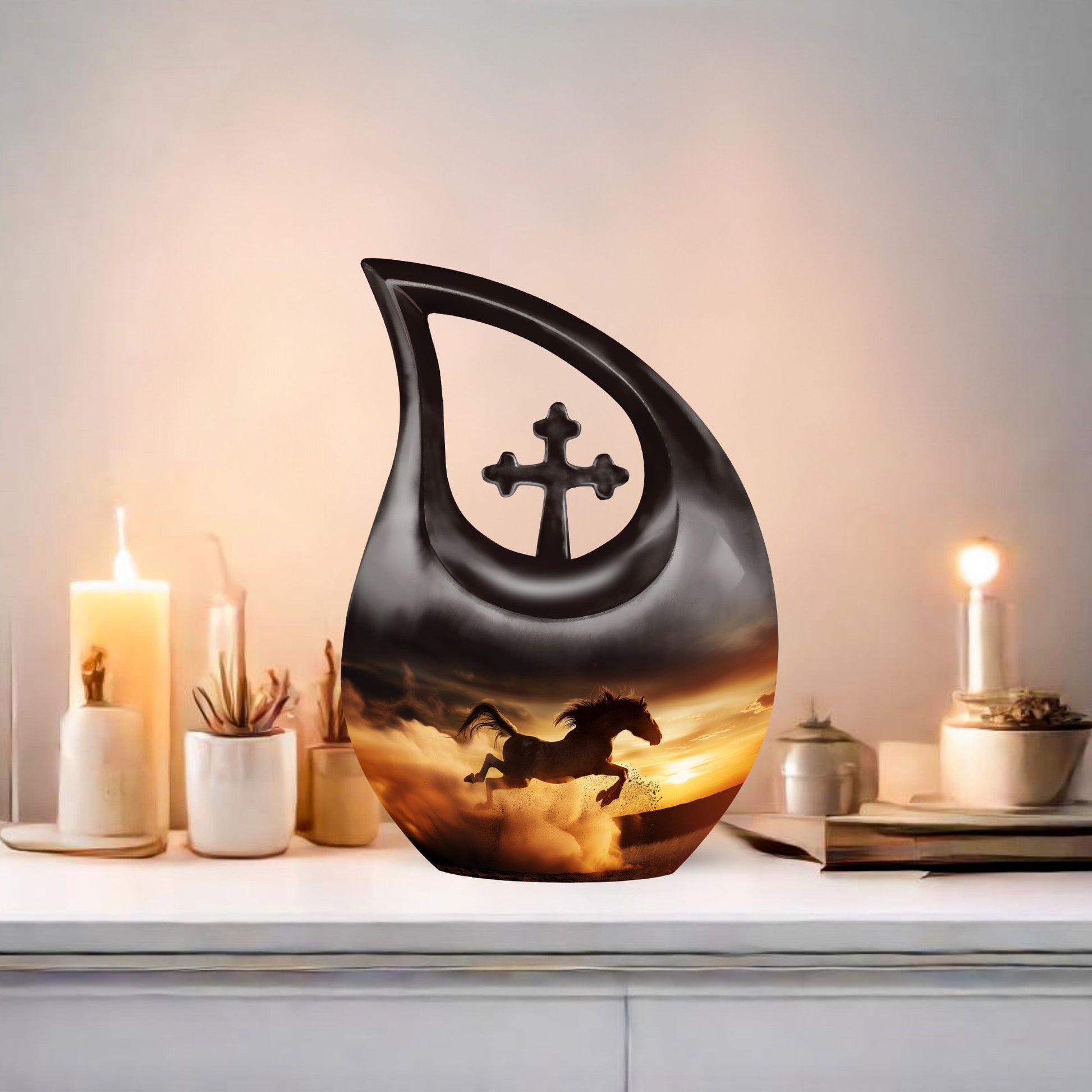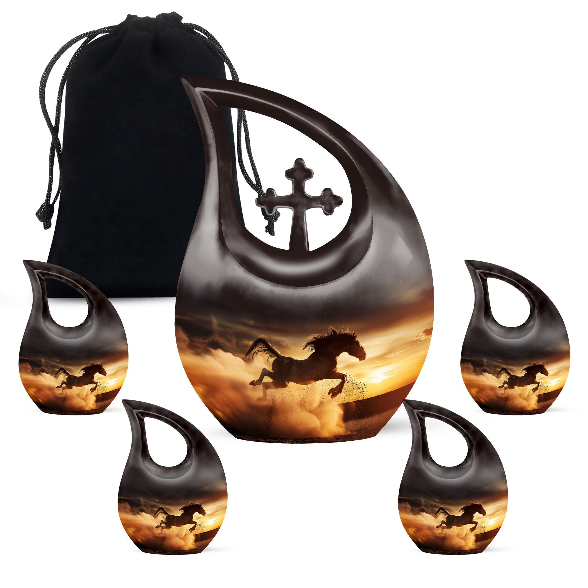 Choosing a memorial that reflects the spirit and love of someone dear is a tender decision. This Horse Memorial Urn Set provides a heartfelt way to honor their journey, offering both a full-size urn and coordinating keepsakes for families seeking a funeral urn ashes tribute with symbolic meaning and timeless beauty.