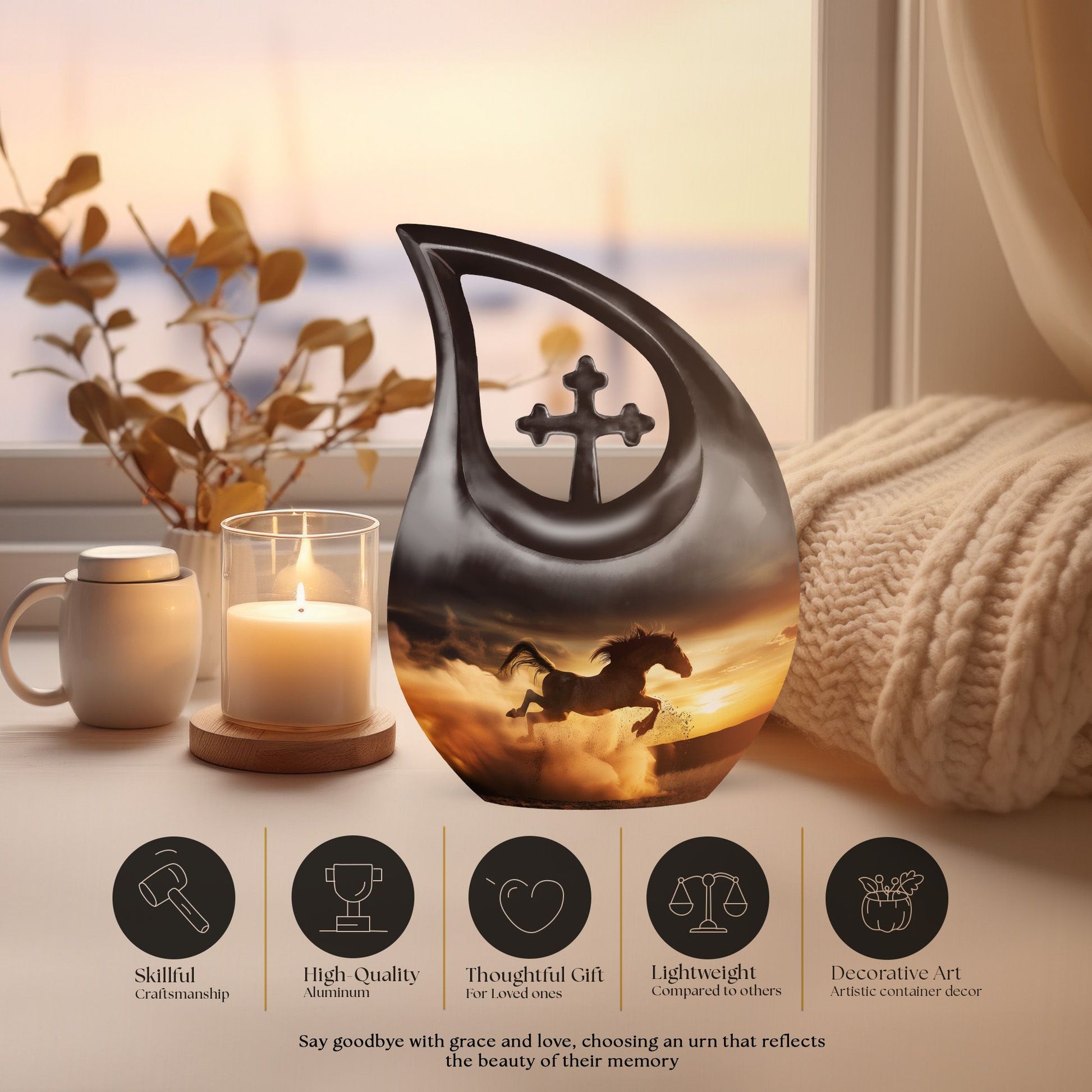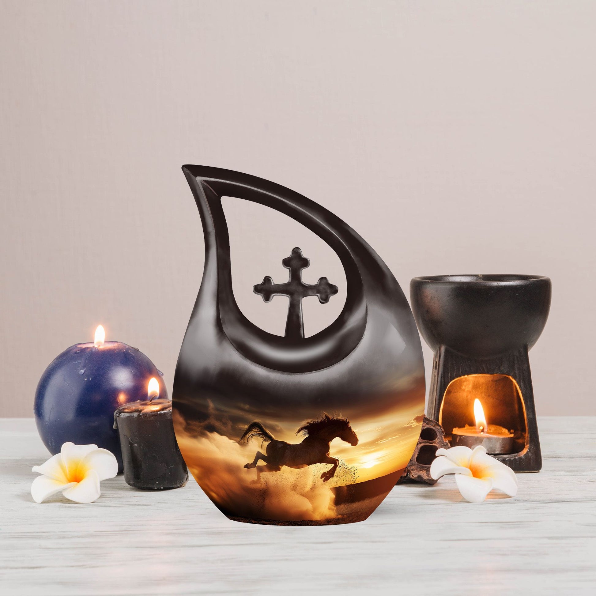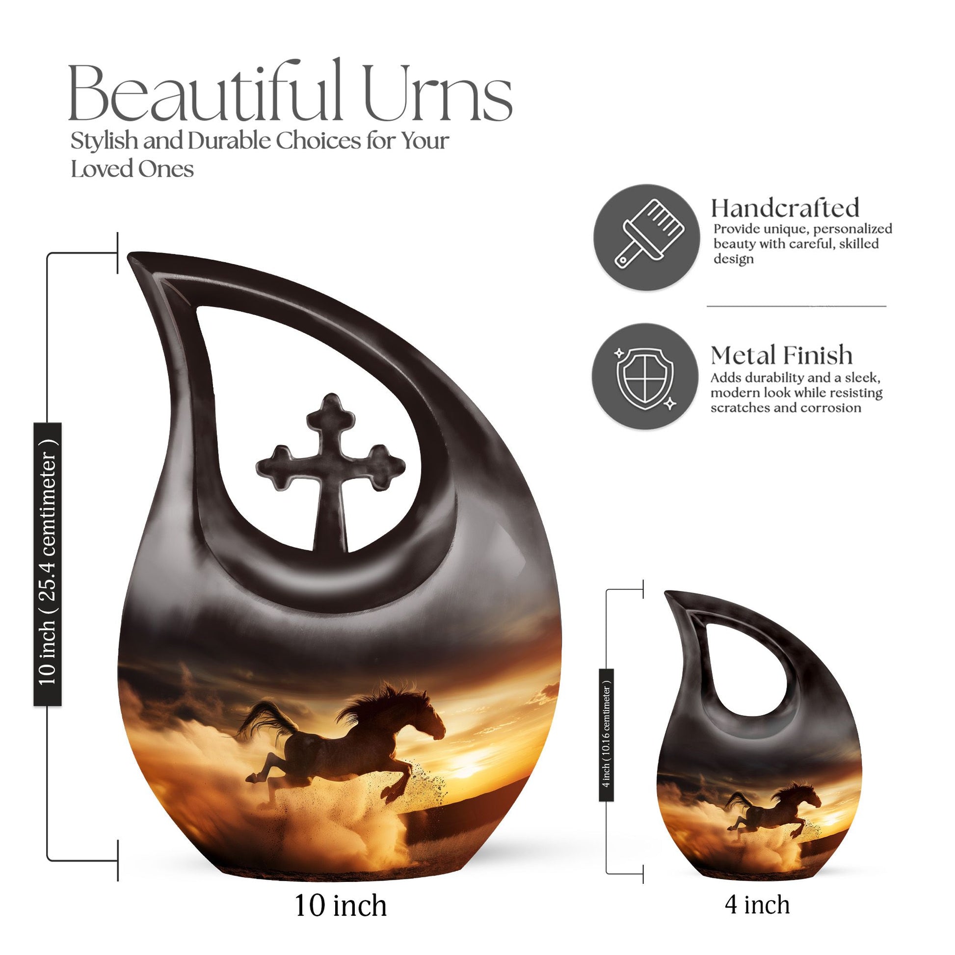 Choosing a memorial that reflects the spirit and love of someone dear is a tender decision. This Horse Memorial Urn Set provides a heartfelt way to honor their journey, offering both a full-size urn and coordinating keepsakes for families seeking a funeral urn ashes tribute with symbolic meaning and timeless beauty.