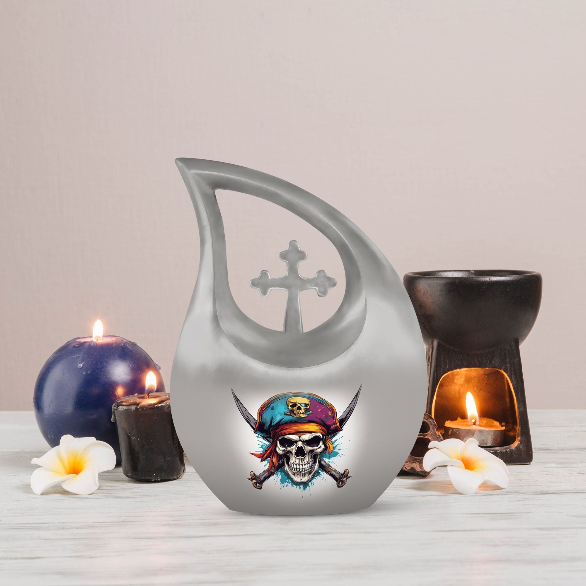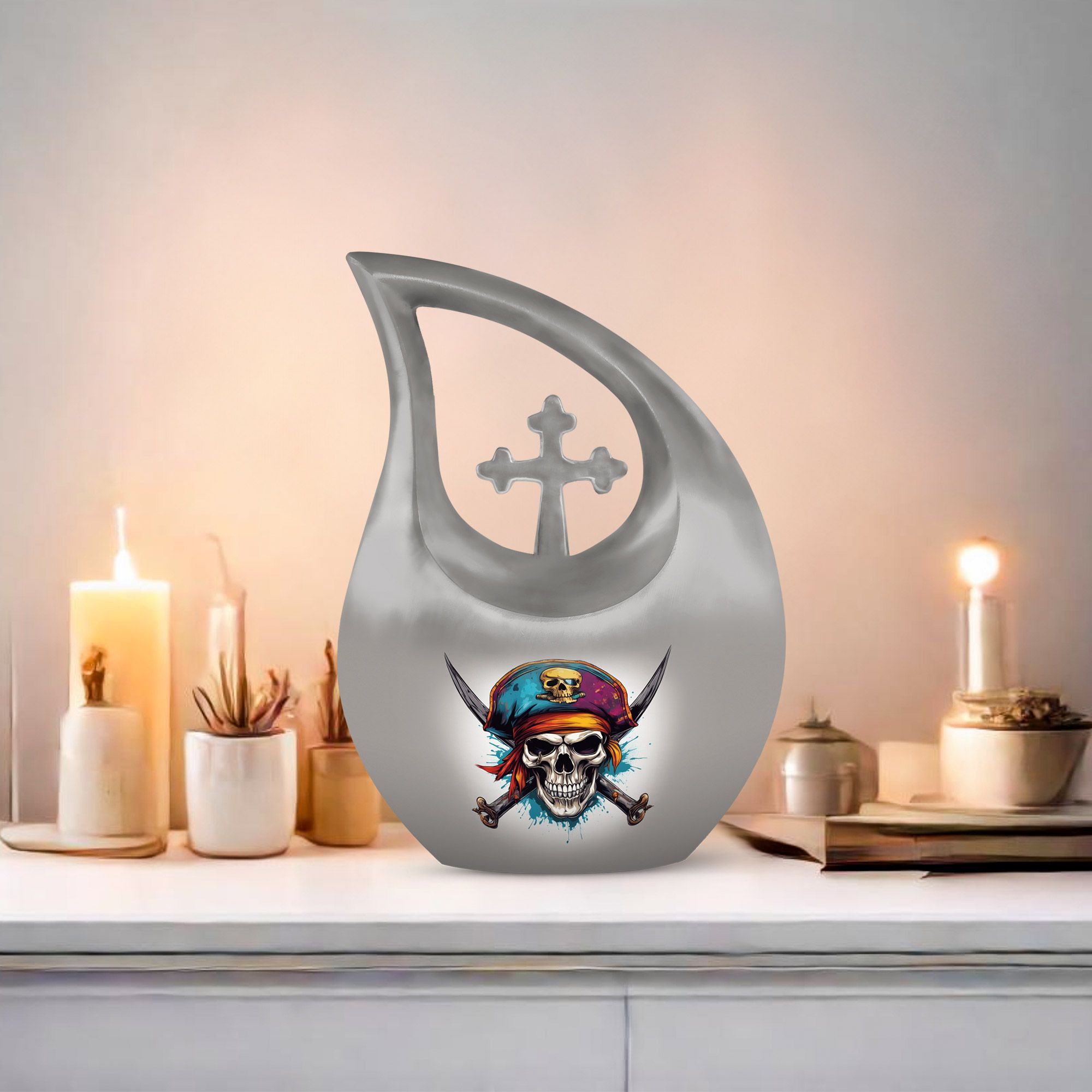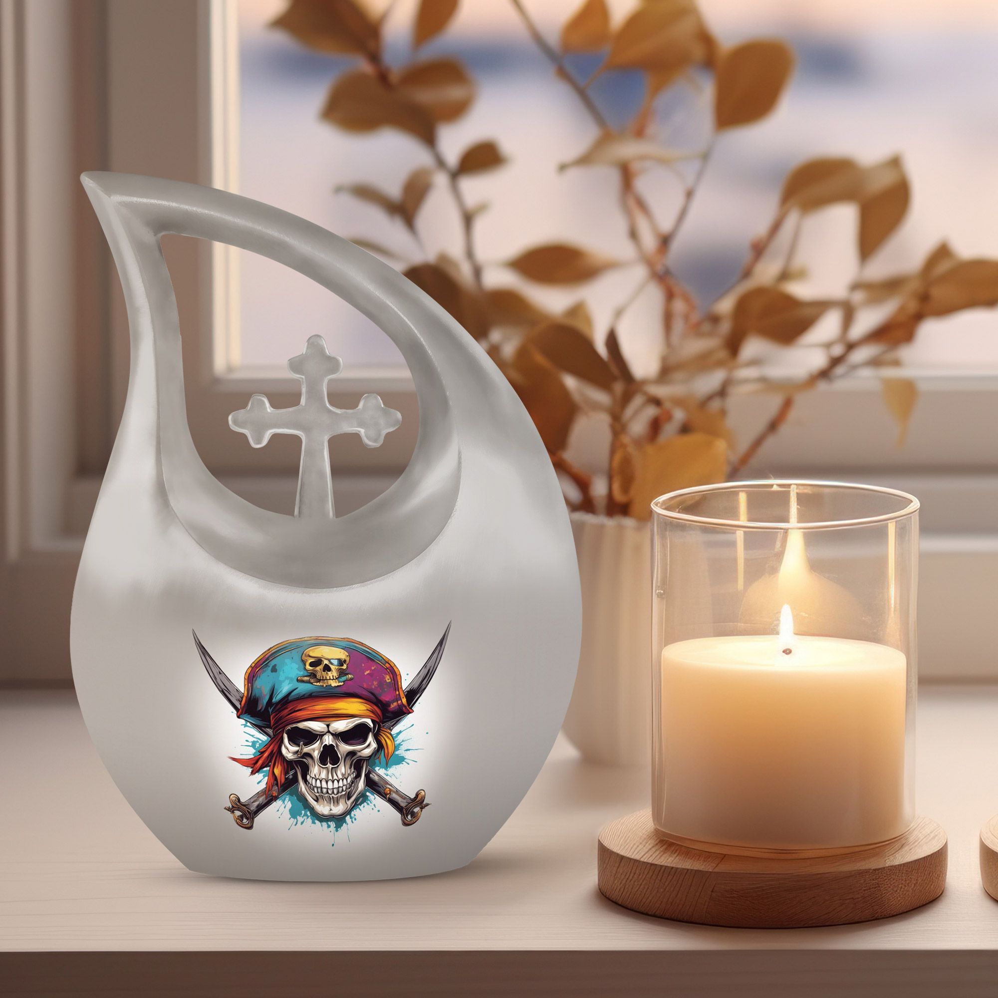 Celebrate a fearless and creative soul with the Graffiti Pirate Skull Funeral Urn, a one-of-a-kind tribute that captures rebellion, strength, and individuality. Perfect for those who lived life unapologetically, this striking design stands out among burial urns for adult human ashes — blending artistic expression with heartfelt remembrance.
