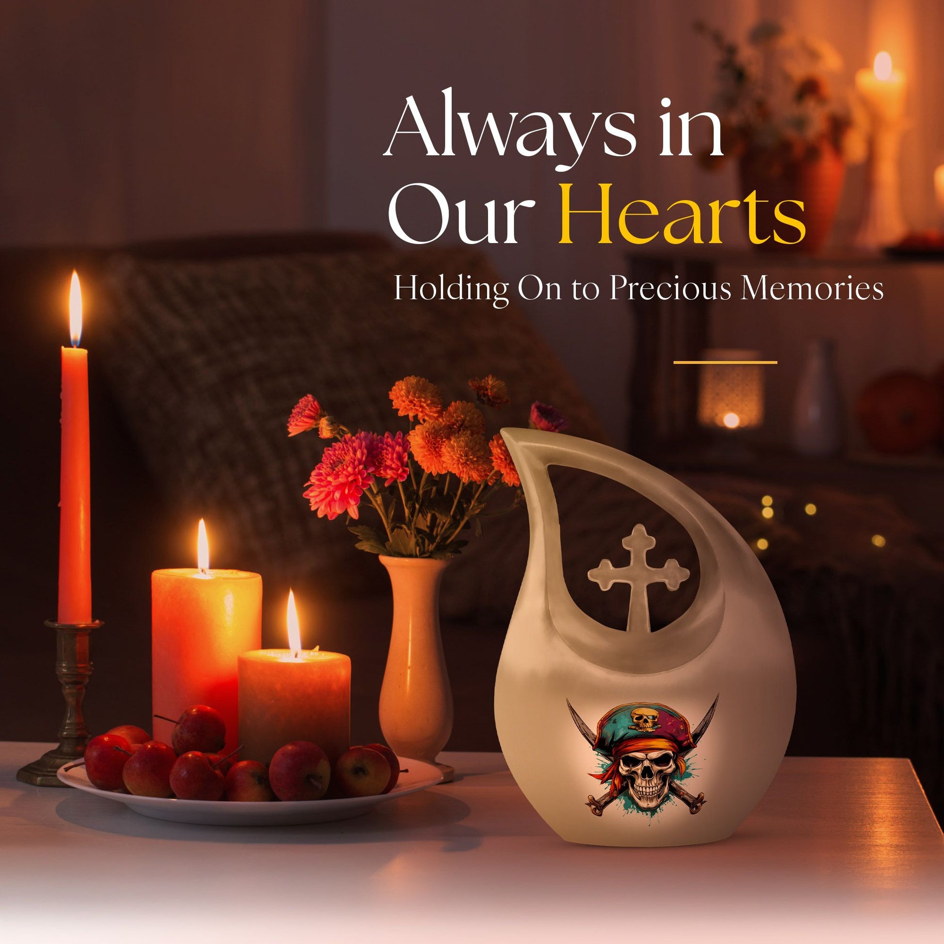 Celebrate a fearless and creative soul with the Graffiti Pirate Skull Funeral Urn, a one-of-a-kind tribute that captures rebellion, strength, and individuality. Perfect for those who lived life unapologetically, this striking design stands out among burial urns for adult human ashes — blending artistic expression with heartfelt remembrance.