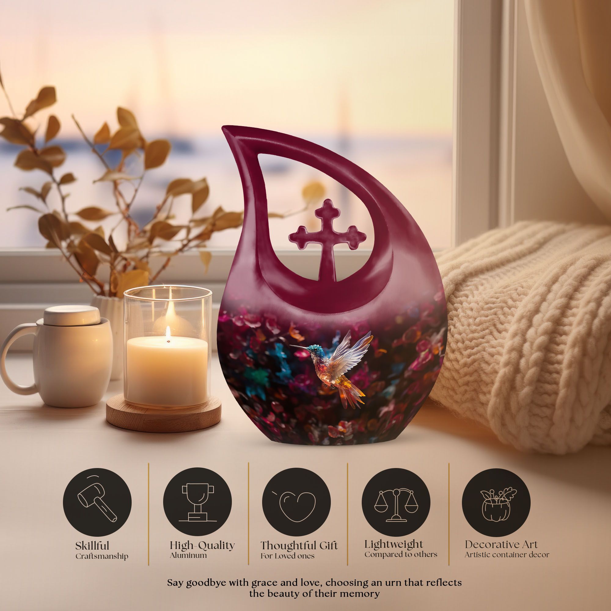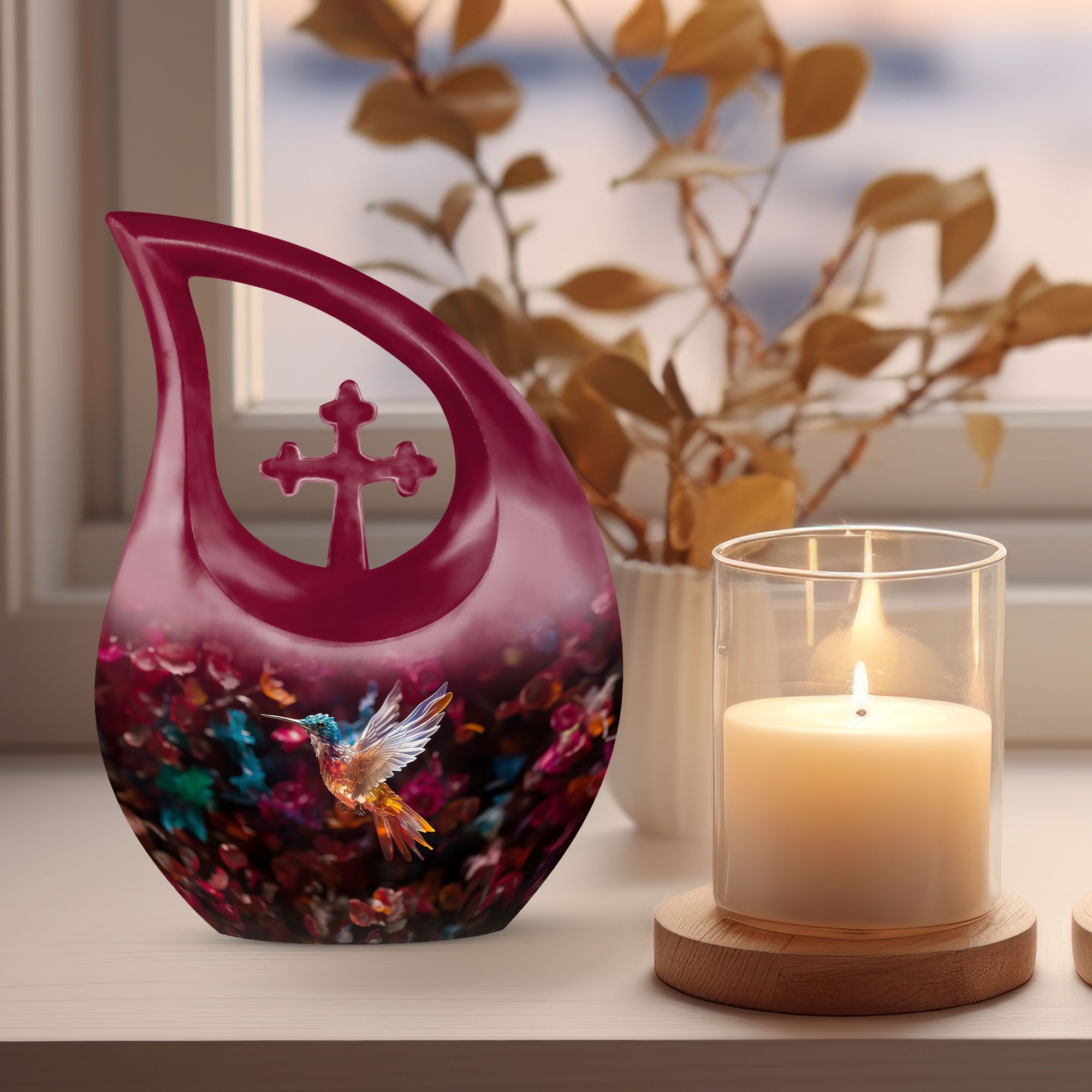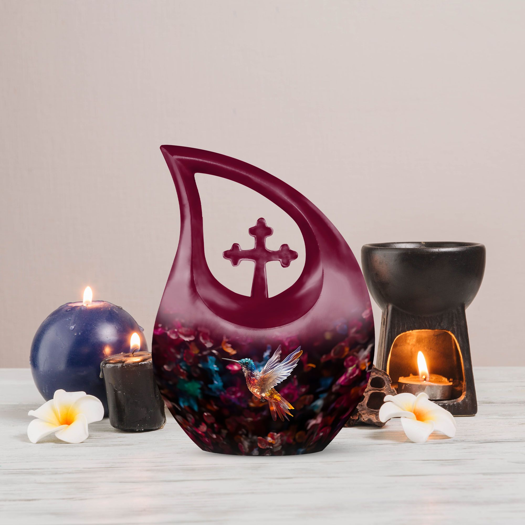 The Crystal Humming Bird Cremation Urn – Maroon Memorial Urn for Men & Women is a stunning symbol of love and eternal connection. This elegant ashes keepsake urn captures the grace of the hummingbird — a timeless emblem of hope, renewal, and the beauty of life’s journey. Perfect as a full-size memorial or part of a mini keepsake urns for human ashes collection, it reflects both compassion and craftsmanship.