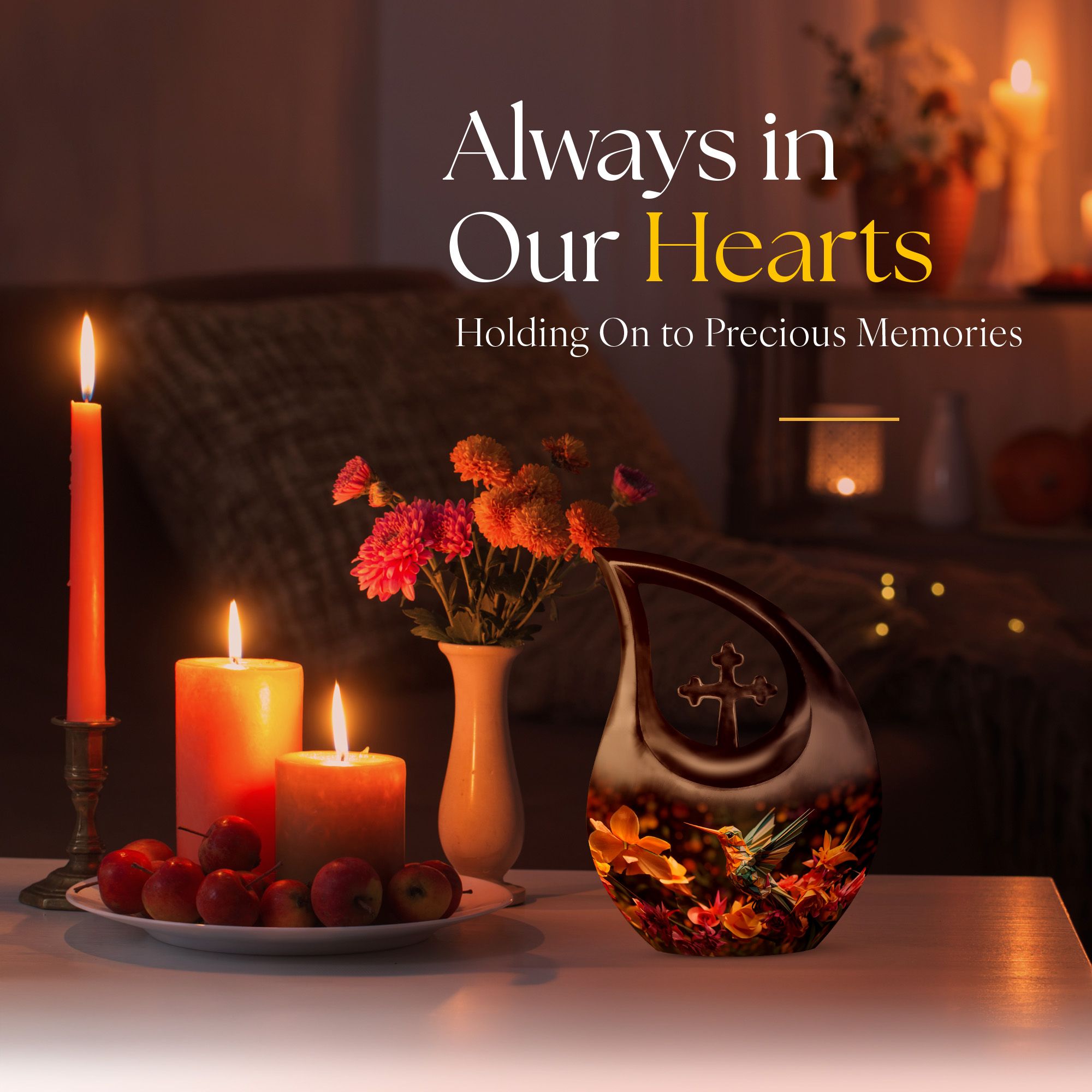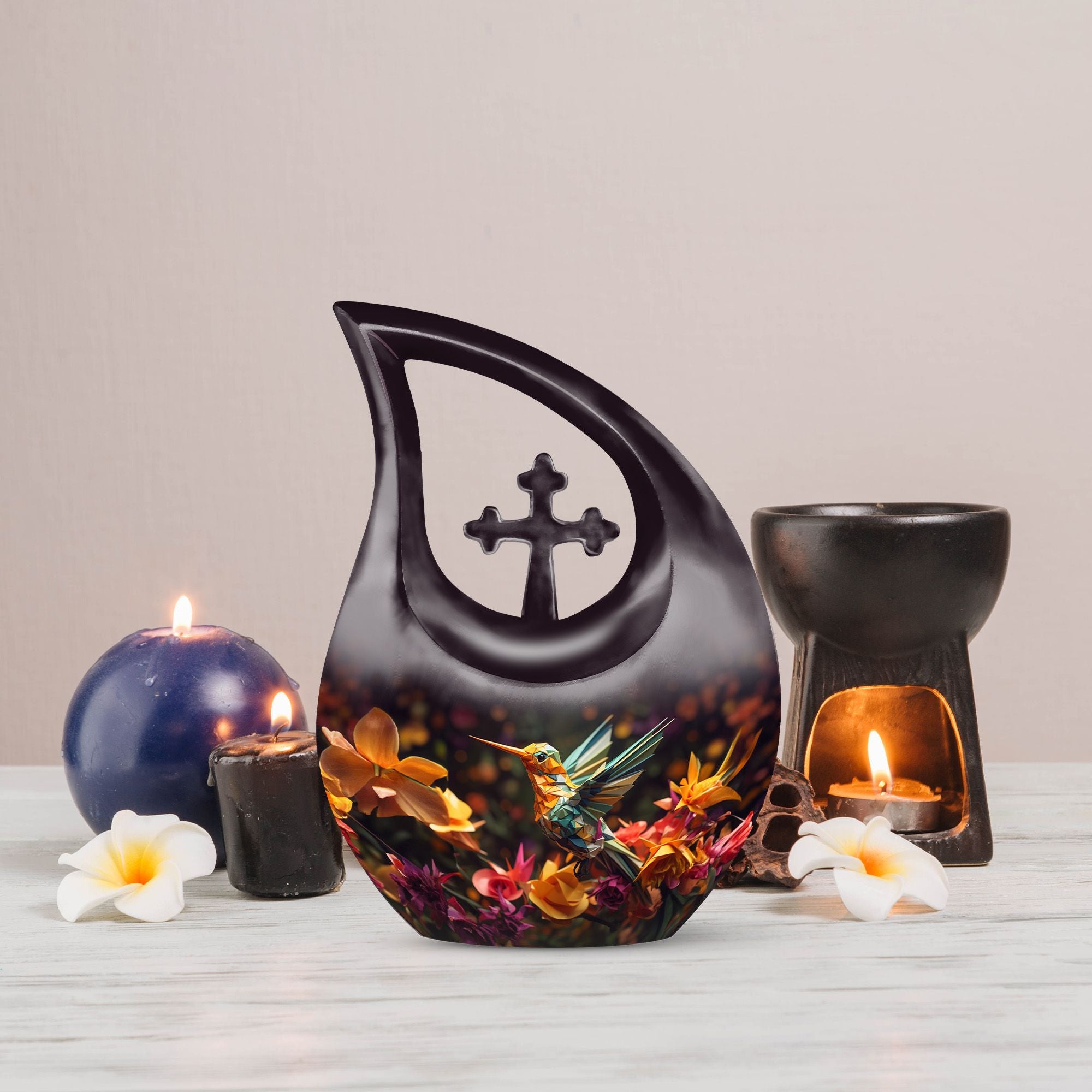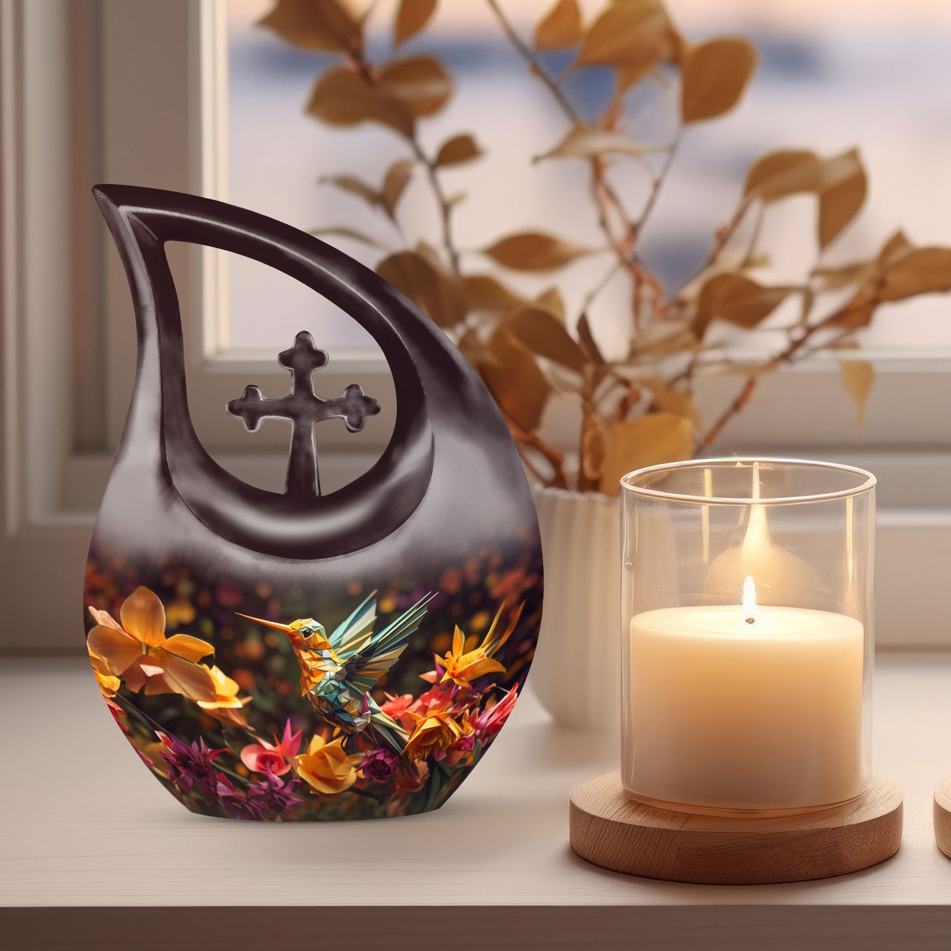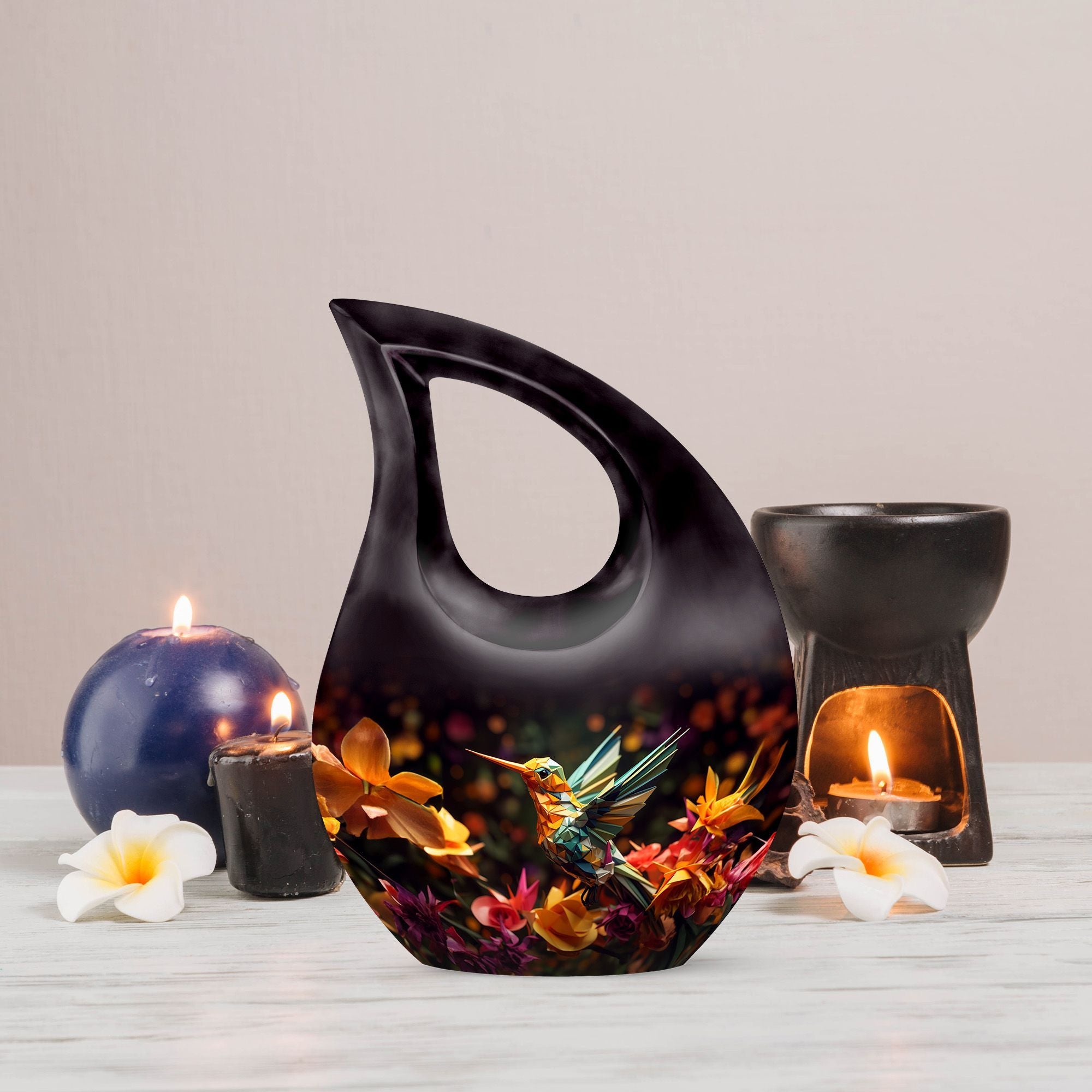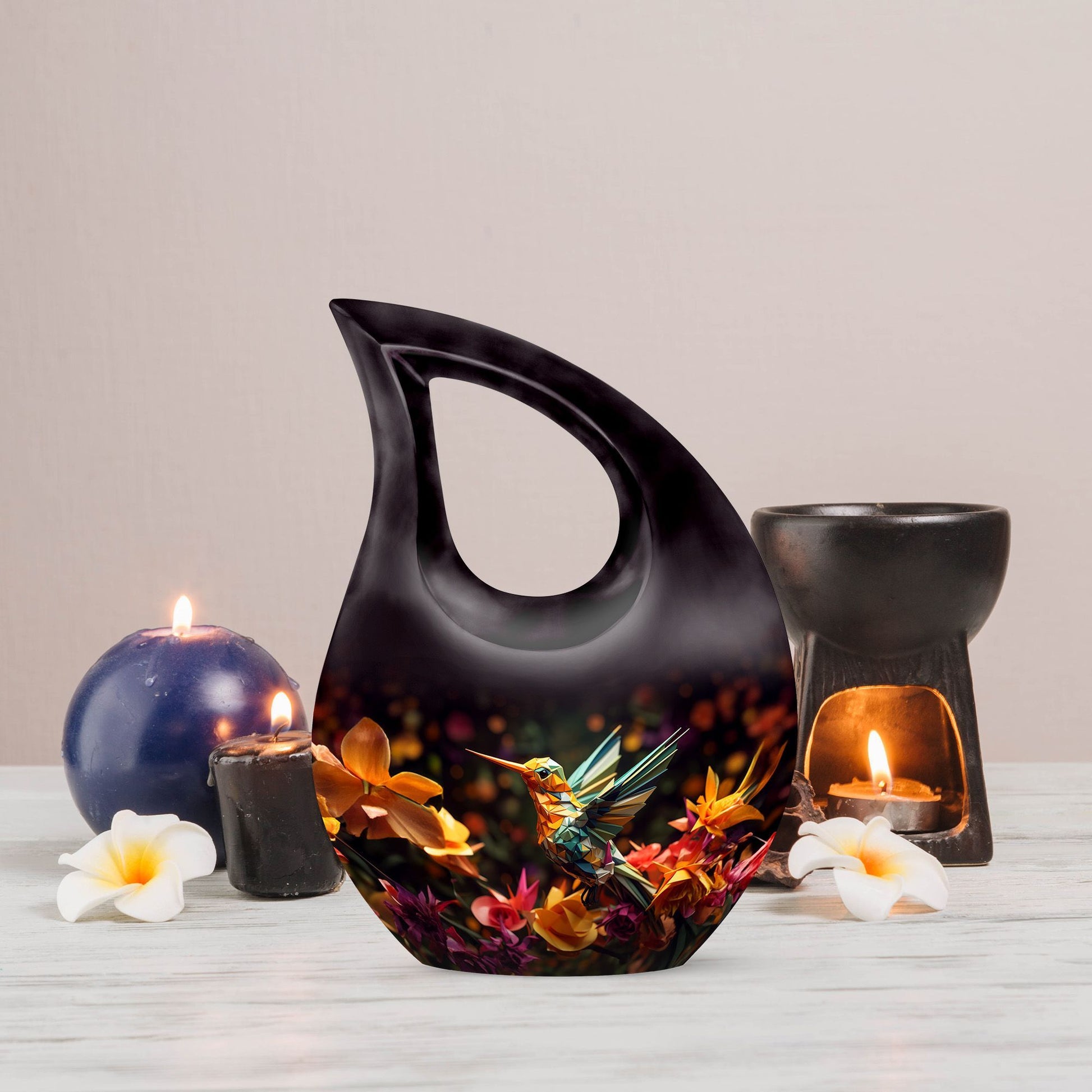 This Humming Bird memorial urn for ashes offers a peaceful and uplifting tribute, symbolizing renewal, hope, and eternal love. Designed with a soft paper-art bird motif, it provides a comforting choice for families seeking a small urn for ashes for women, a heartfelt urn for ashes for women small, or a dignified memorial option for men with choices such as urn for ashes for men or ashes keepsake for men.