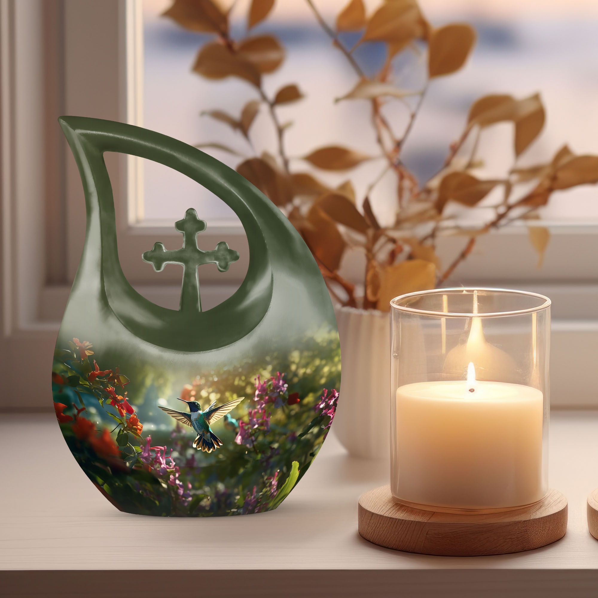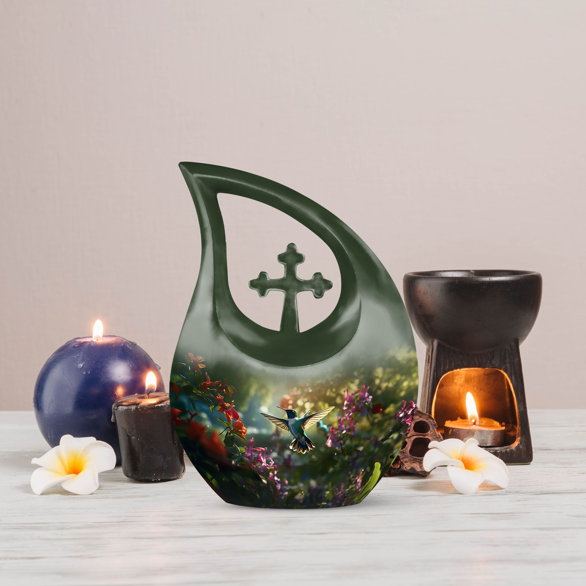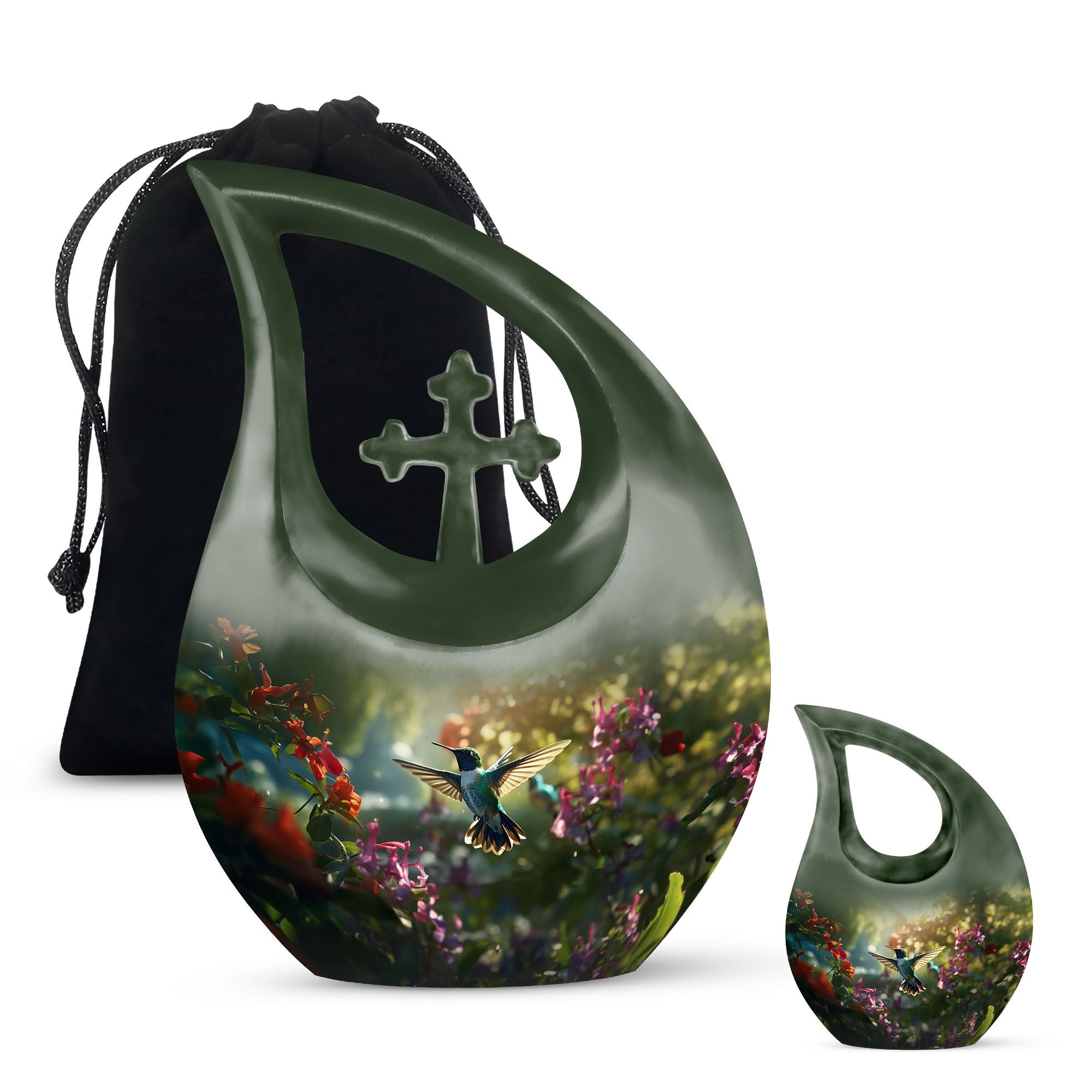 The Humming Bird Urn Combo Set for Men & Women represents grace, freedom, and everlasting love. This artistic cremation urn for human ashes captures the delicate beauty of the hummingbird in flight — a powerful symbol of the soul’s eternal journey. Designed for dignity and serenity, it’s a heartfelt tribute to your loved one’s spirit.